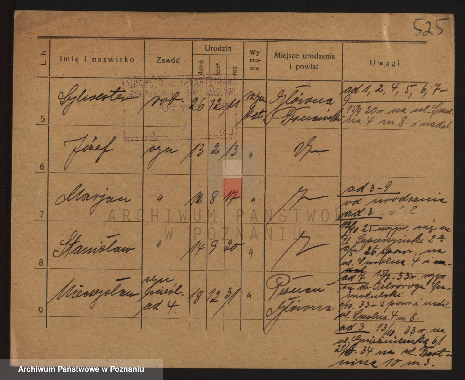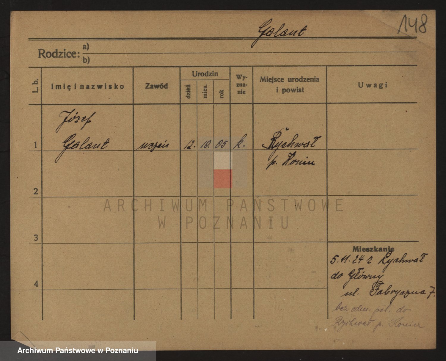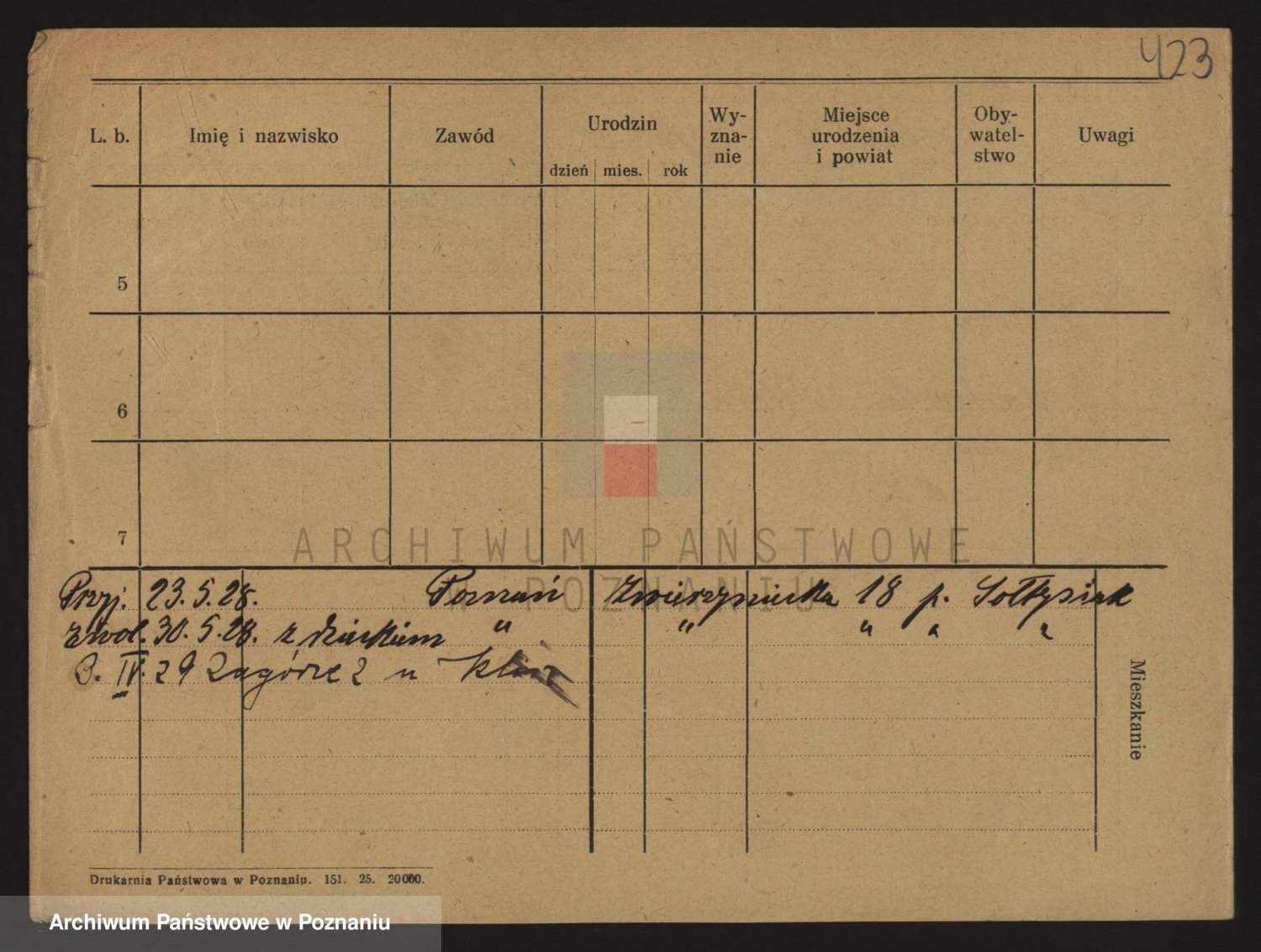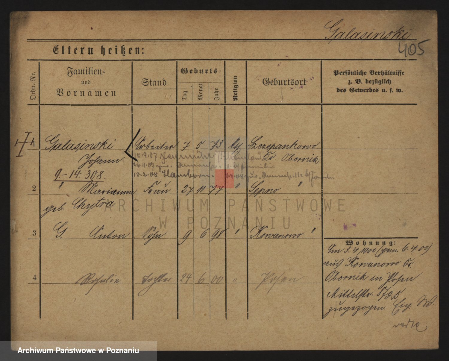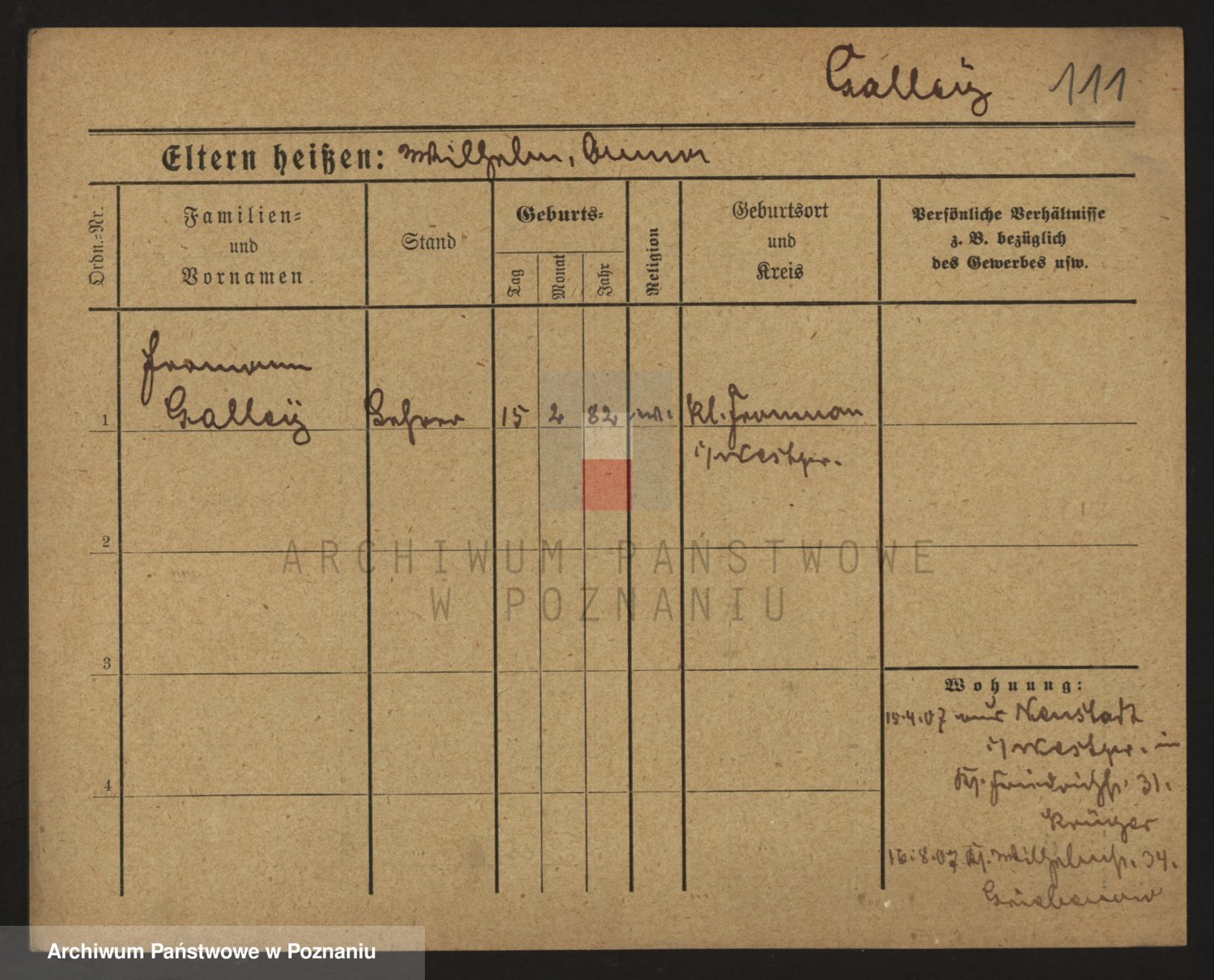 Podgląd karty osobowej dostępny jest po kliknięciu na nazwisko lub ikonkę karty. Można dokonywać powiększenia (ikony na górze) lub przechodzić między kolejnymi skanami (strzałki po bokach).