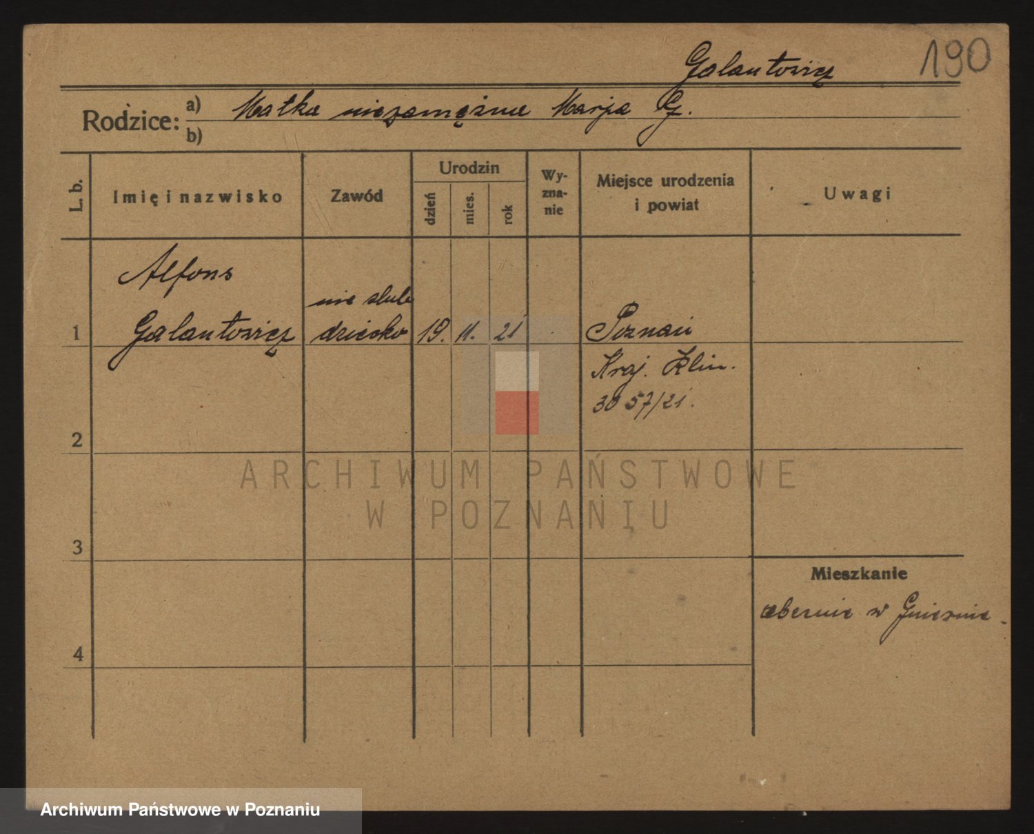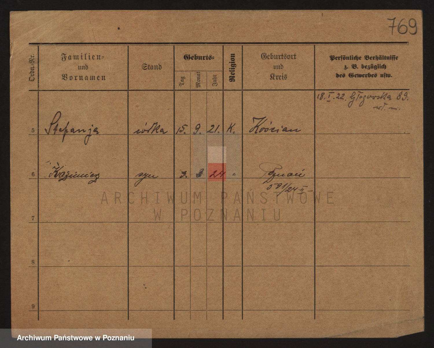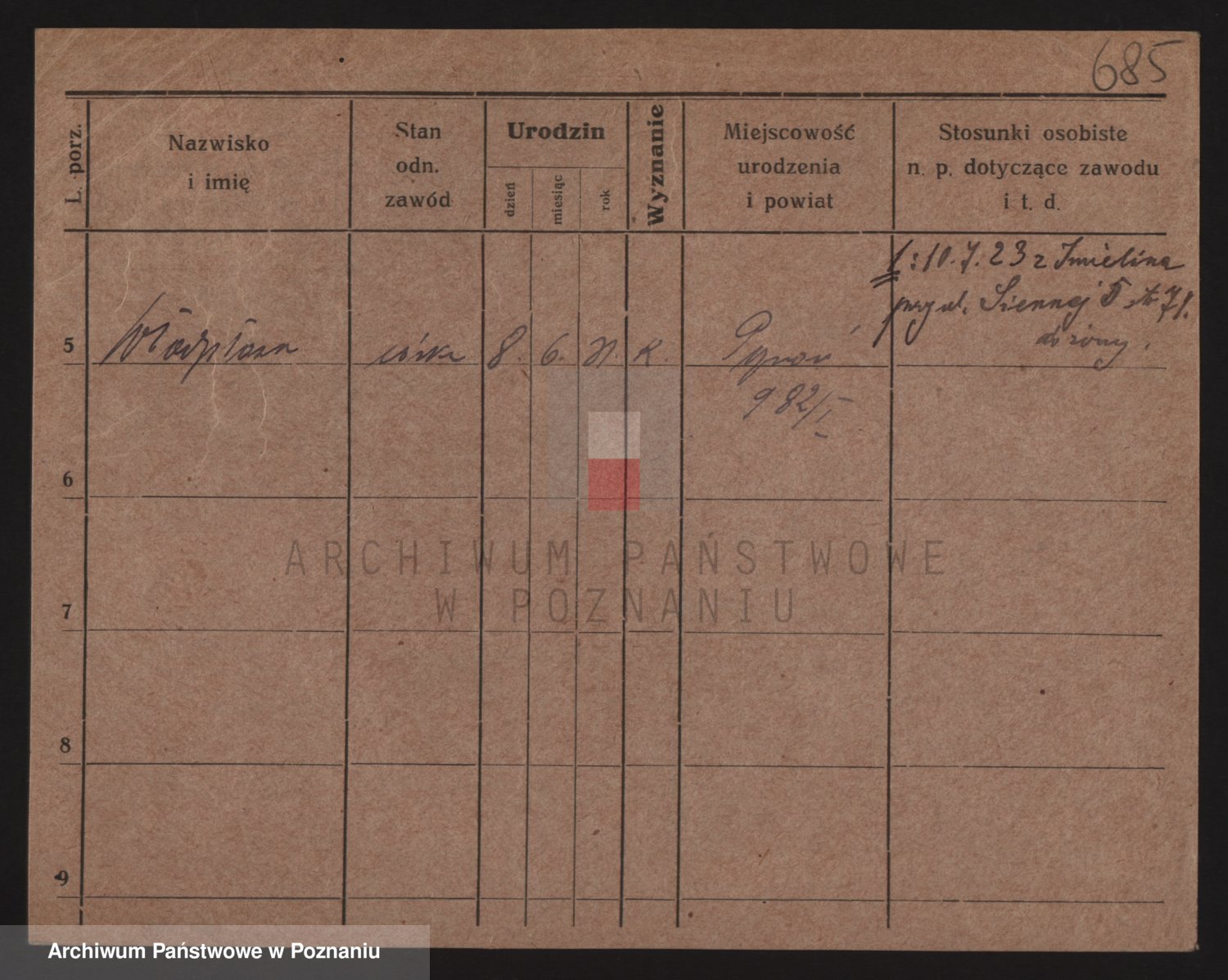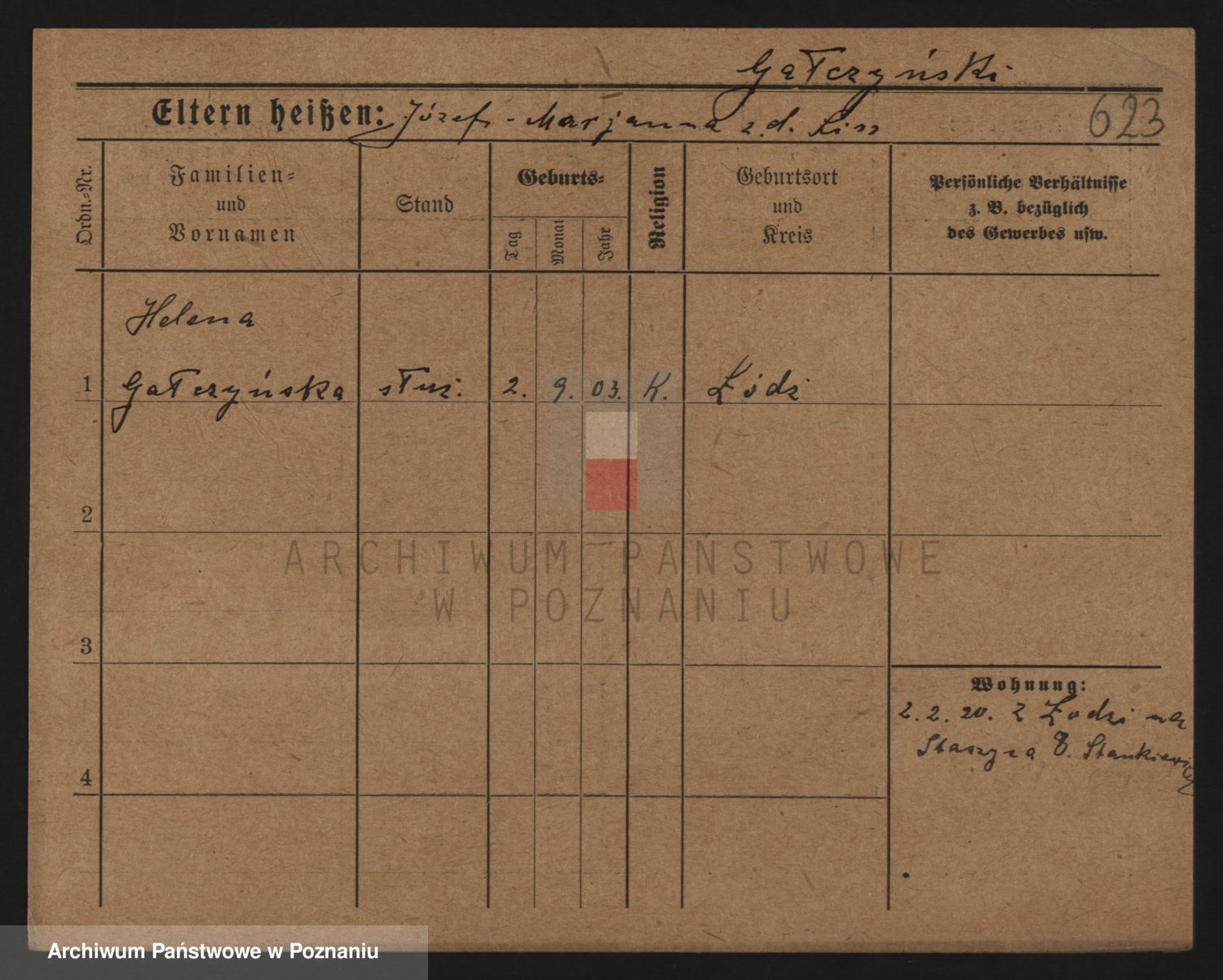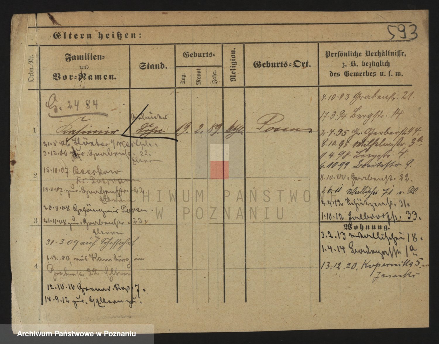 Podgląd karty osobowej dostępny jest po kliknięciu na nazwisko lub ikonkę karty. Można dokonywać powiększenia (ikony na górze) lub przechodzić między kolejnymi skanami (strzałki po bokach).