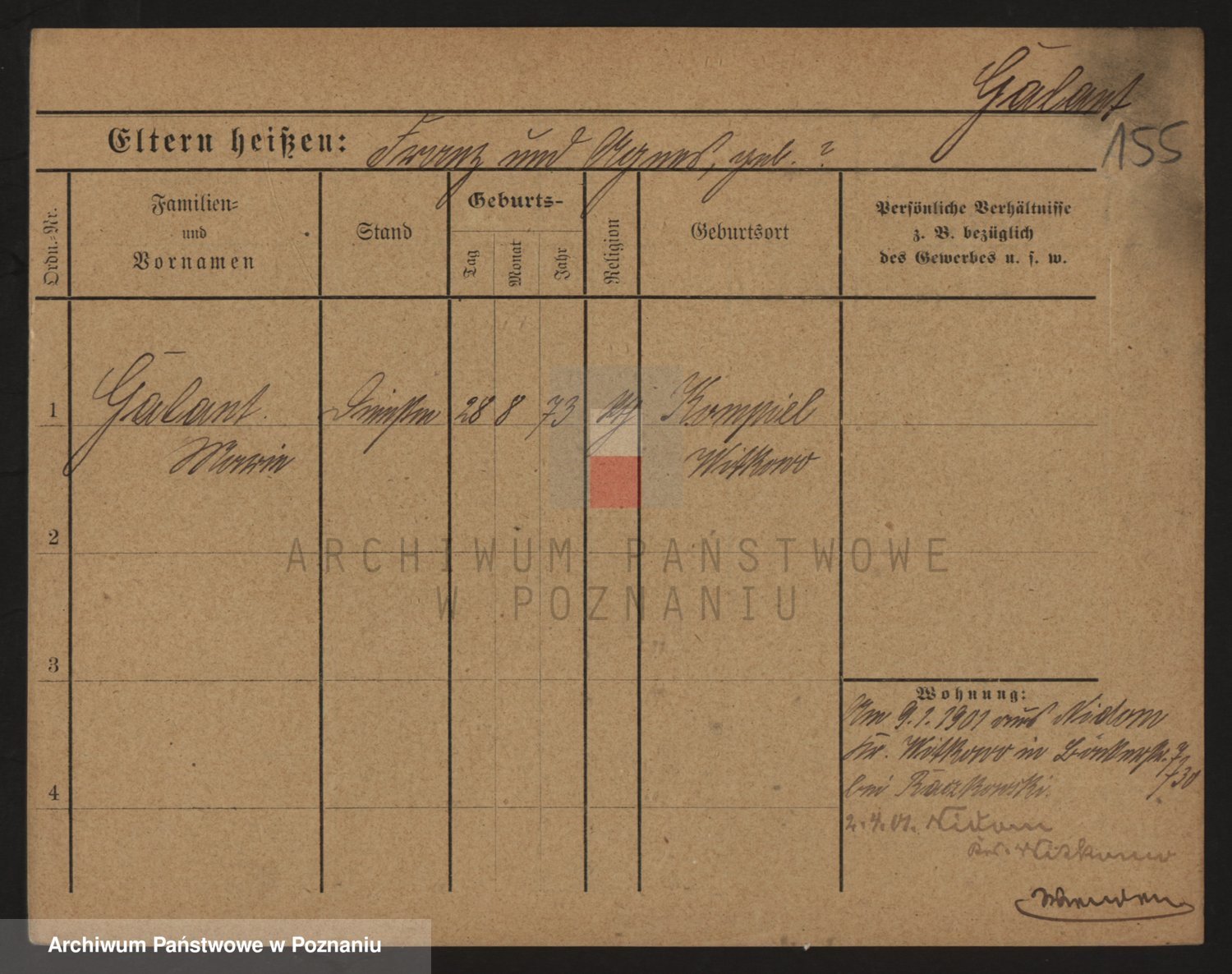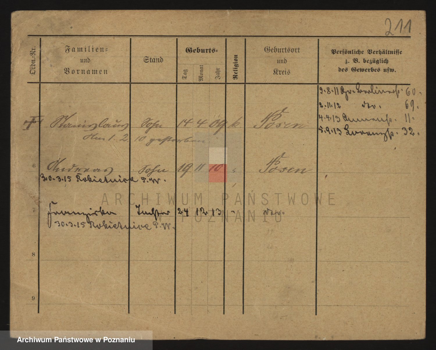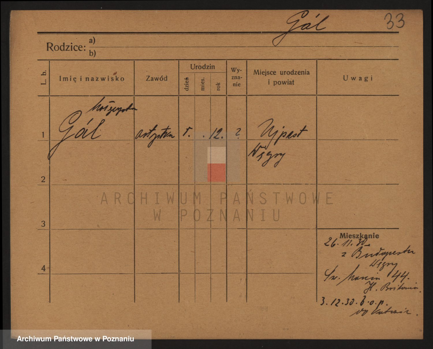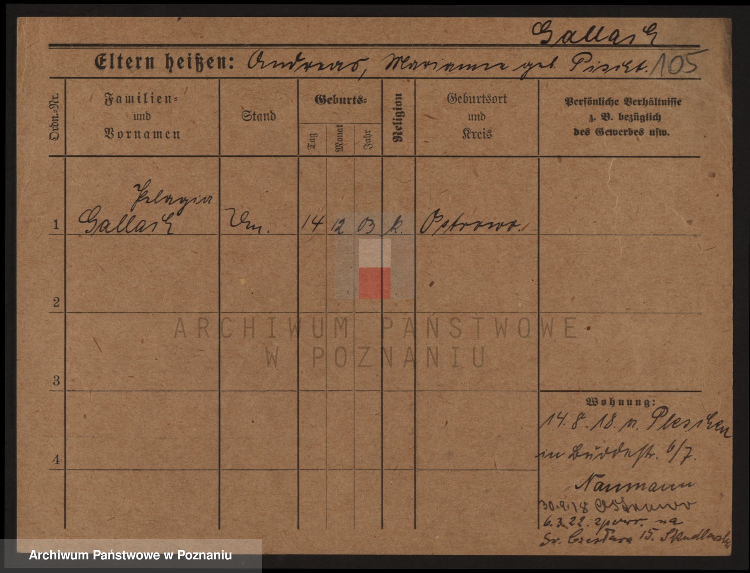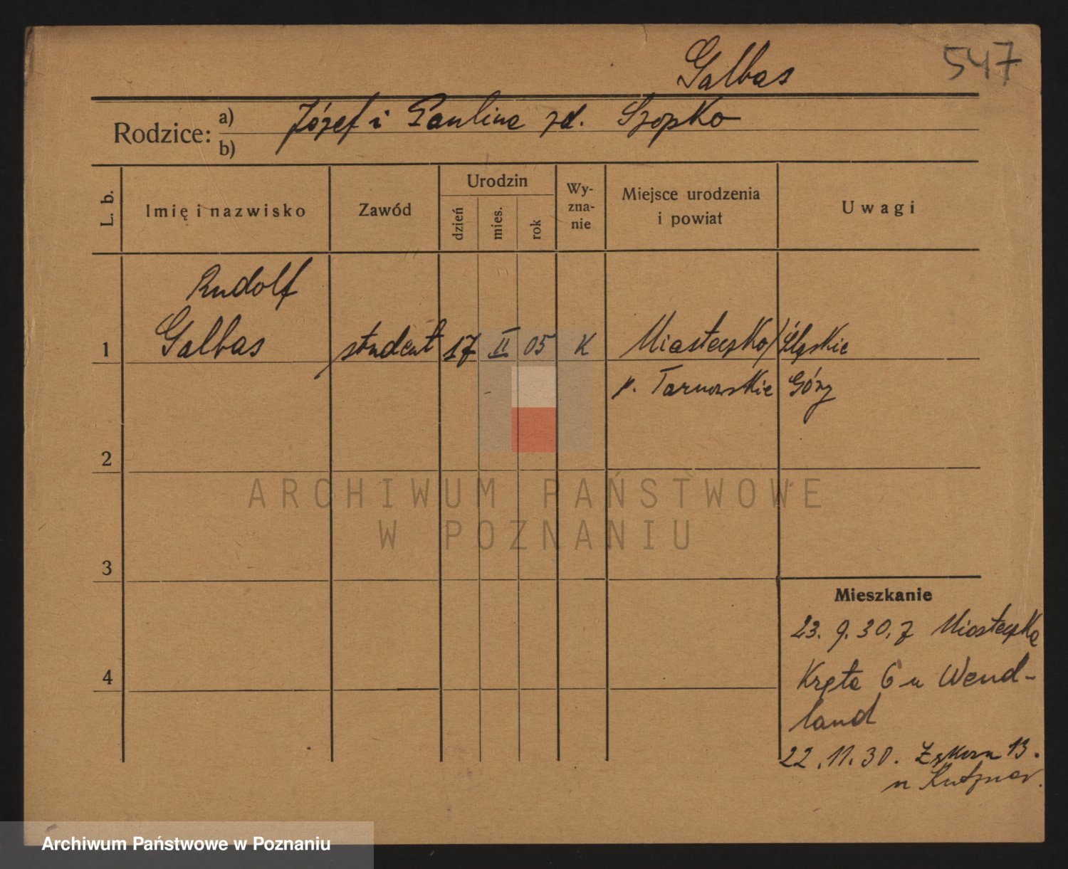 Podgląd karty osobowej dostępny jest po kliknięciu na nazwisko lub ikonkę karty. Można dokonywać powiększenia (ikony na górze) lub przechodzić między kolejnymi skanami (strzałki po bokach).