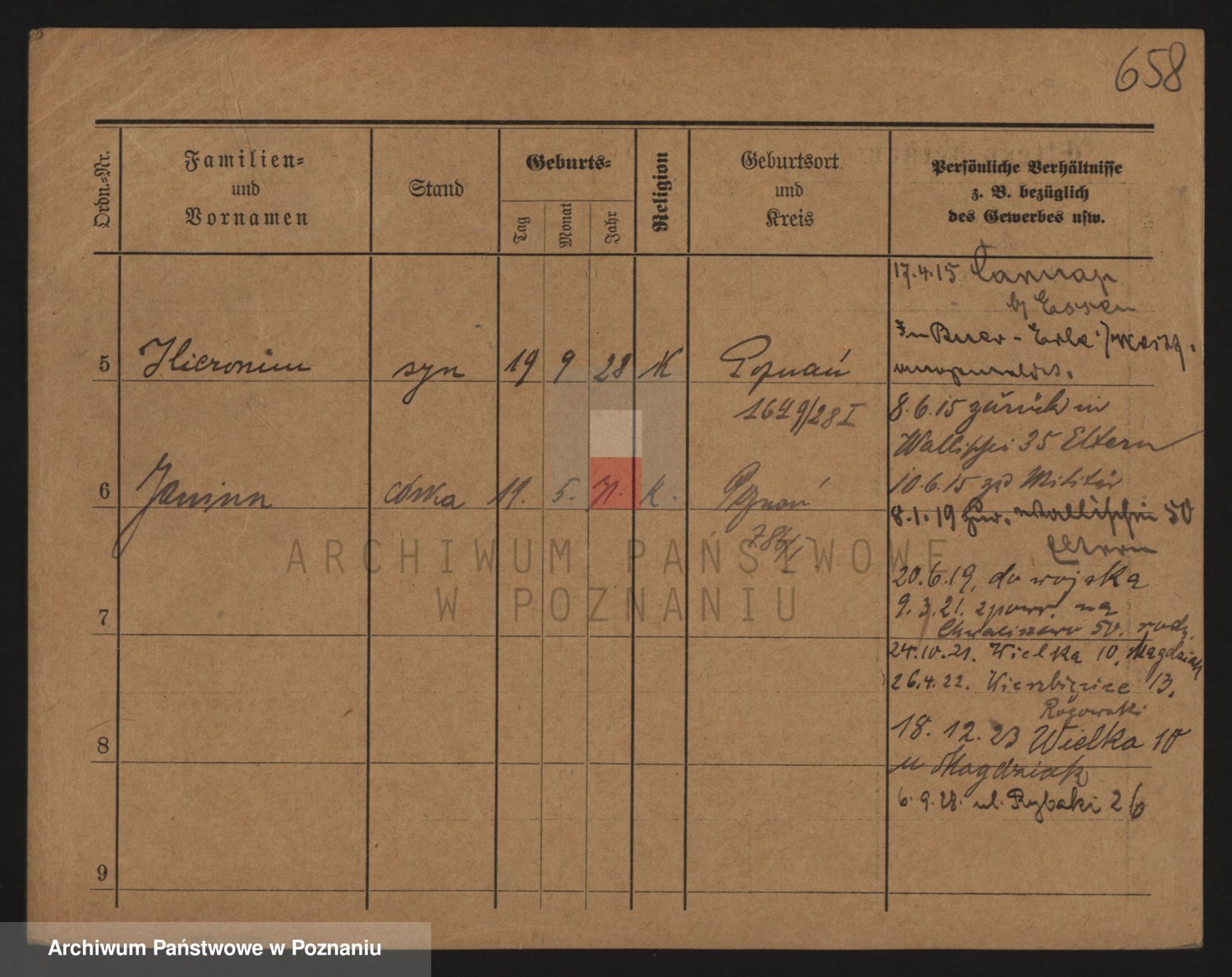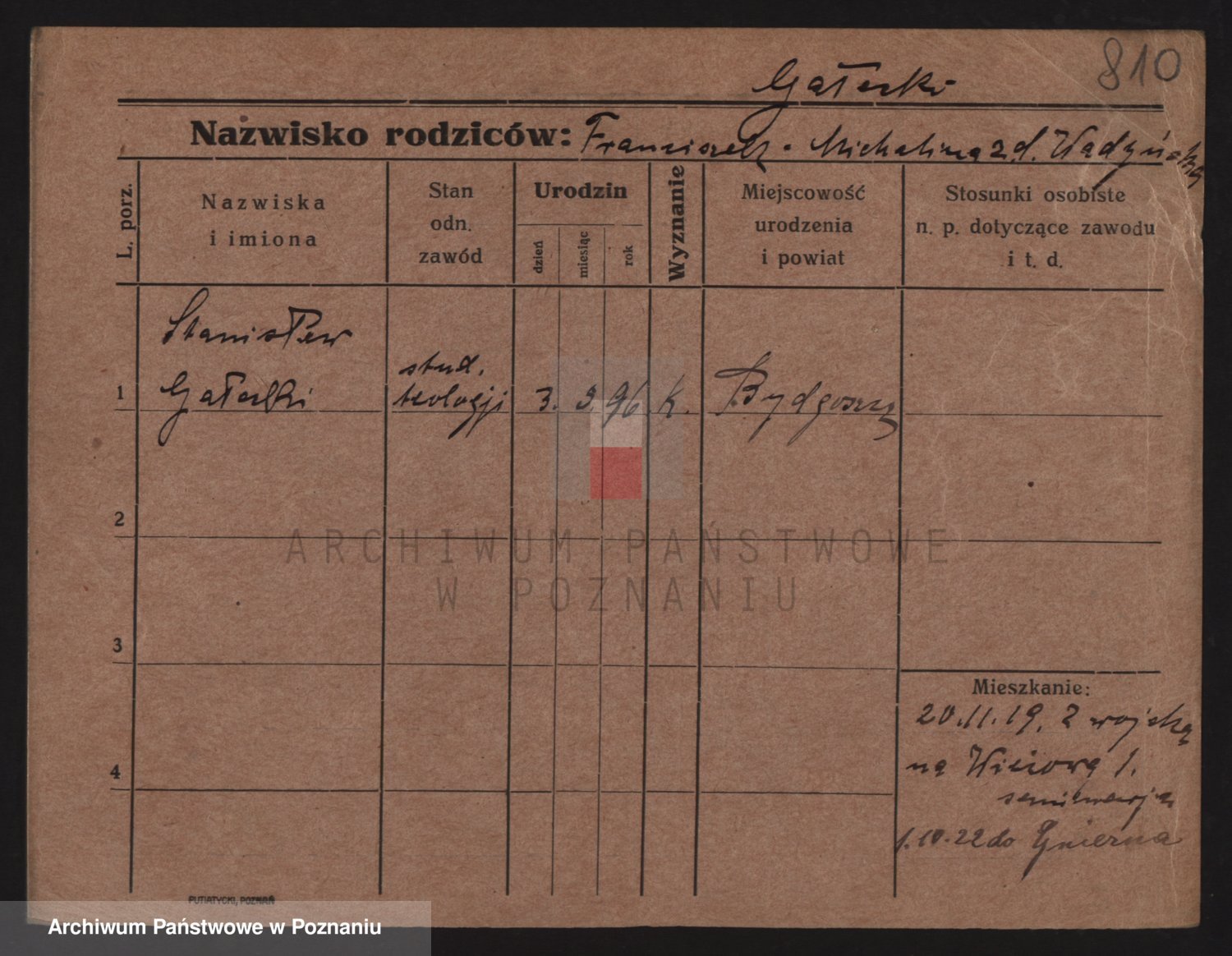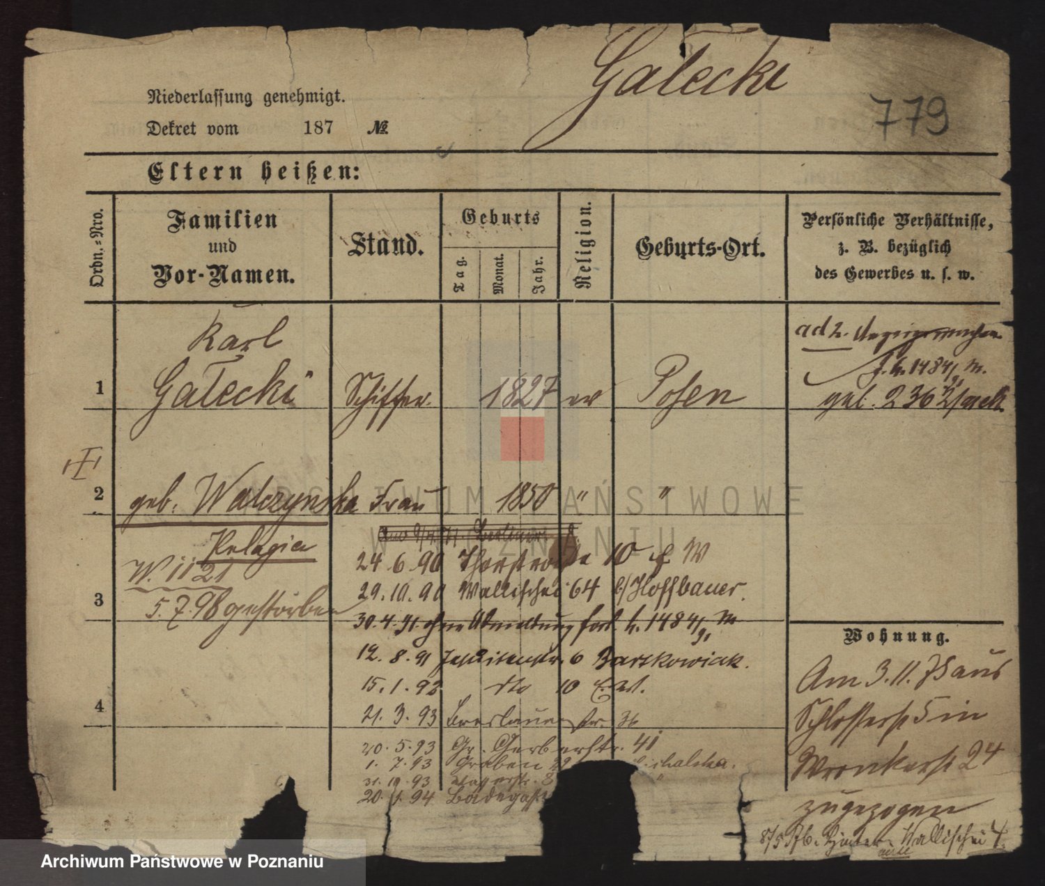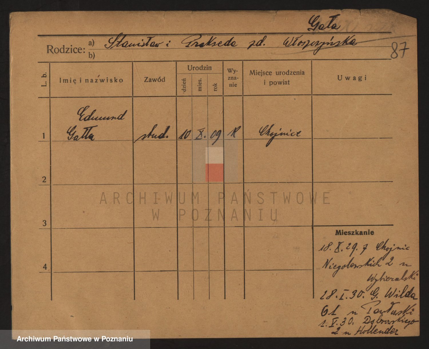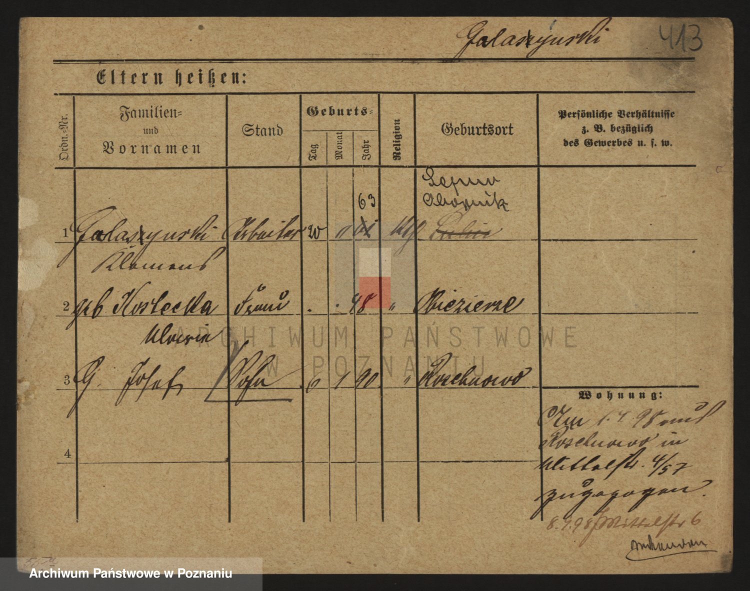 Podgląd karty osobowej dostępny jest po kliknięciu na nazwisko lub ikonkę karty. Można dokonywać powiększenia (ikony na górze) lub przechodzić między kolejnymi skanami (strzałki po bokach).