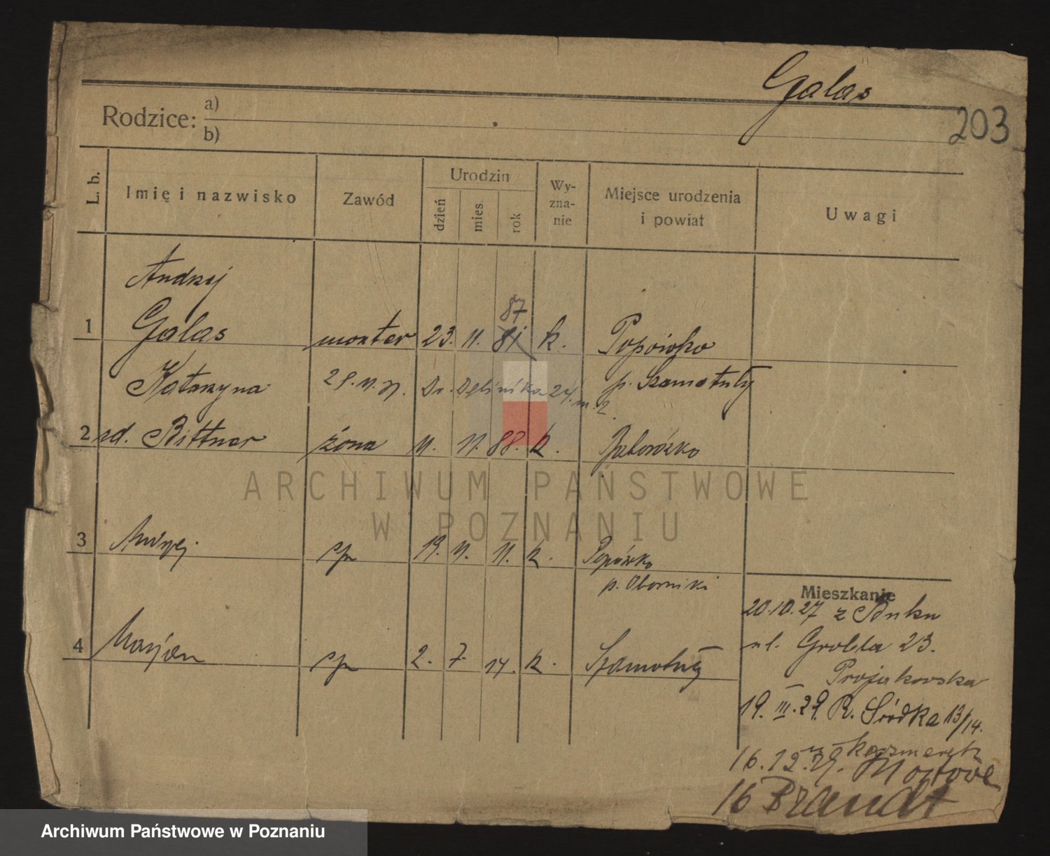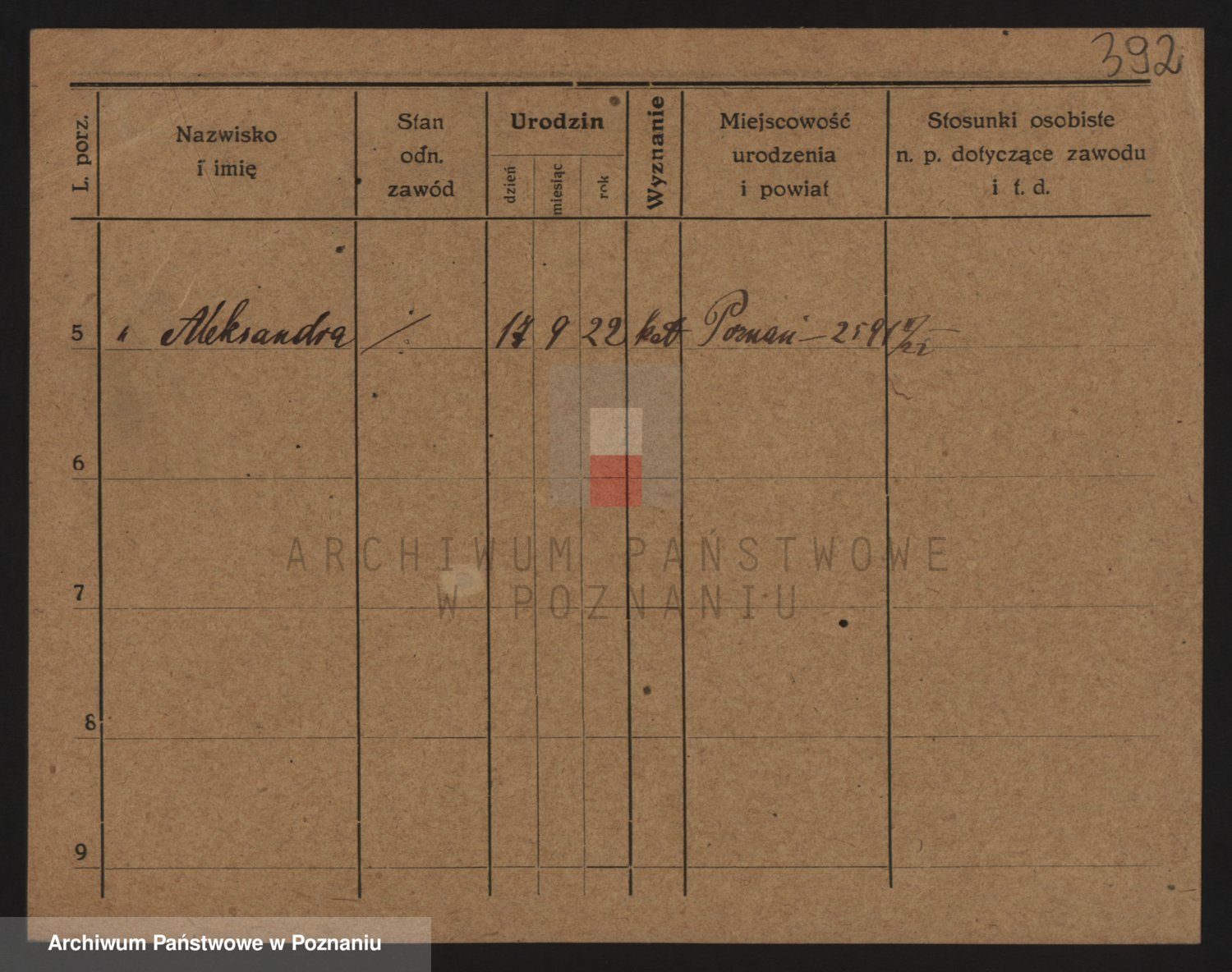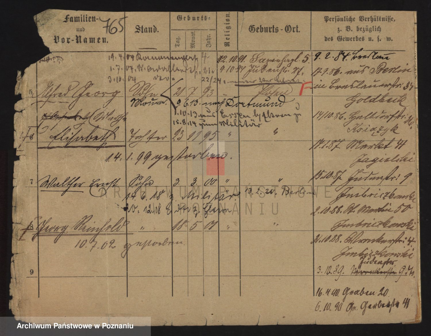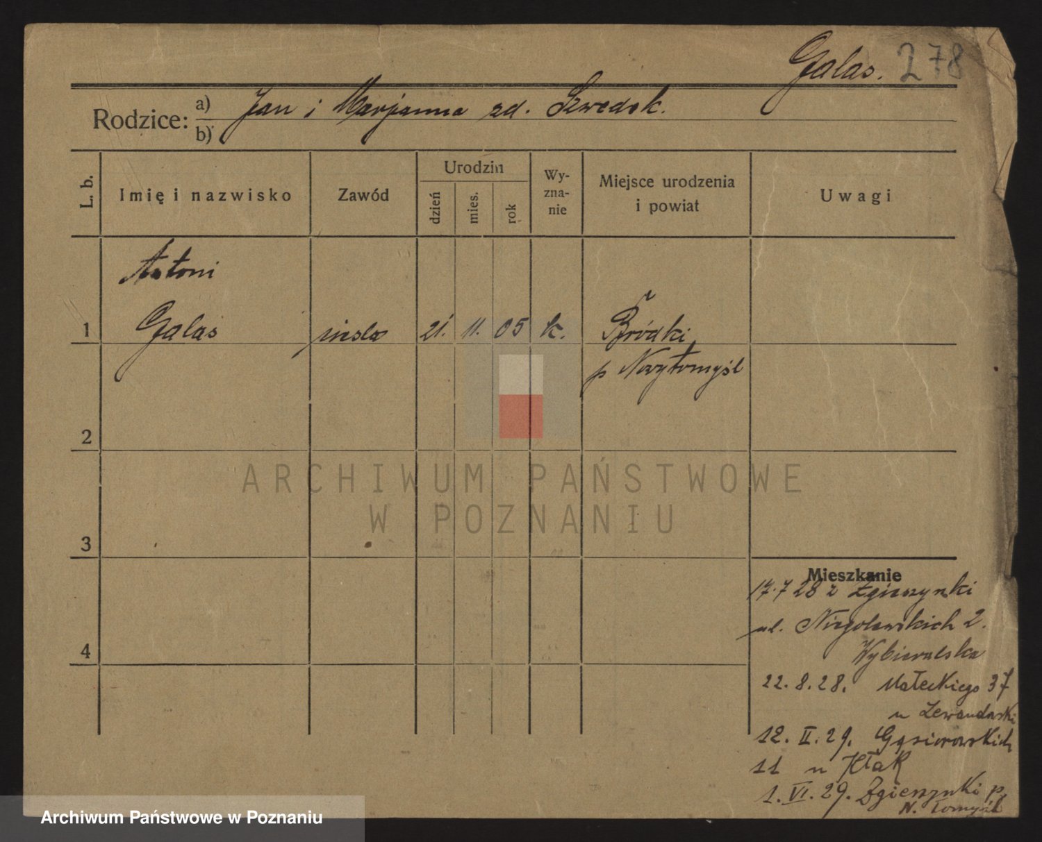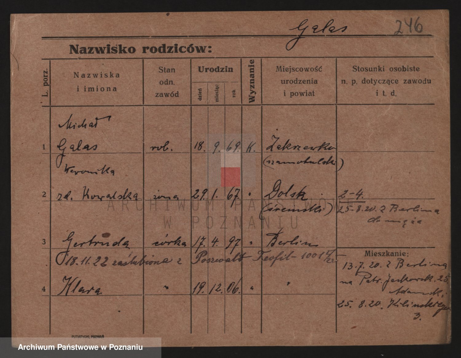 Podgląd karty osobowej dostępny jest po kliknięciu na nazwisko lub ikonkę karty. Można dokonywać powiększenia (ikony na górze) lub przechodzić między kolejnymi skanami (strzałki po bokach).