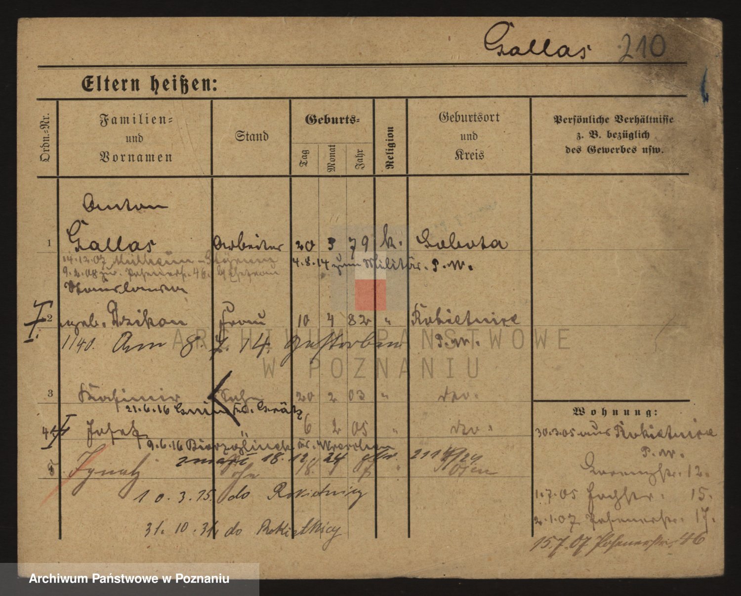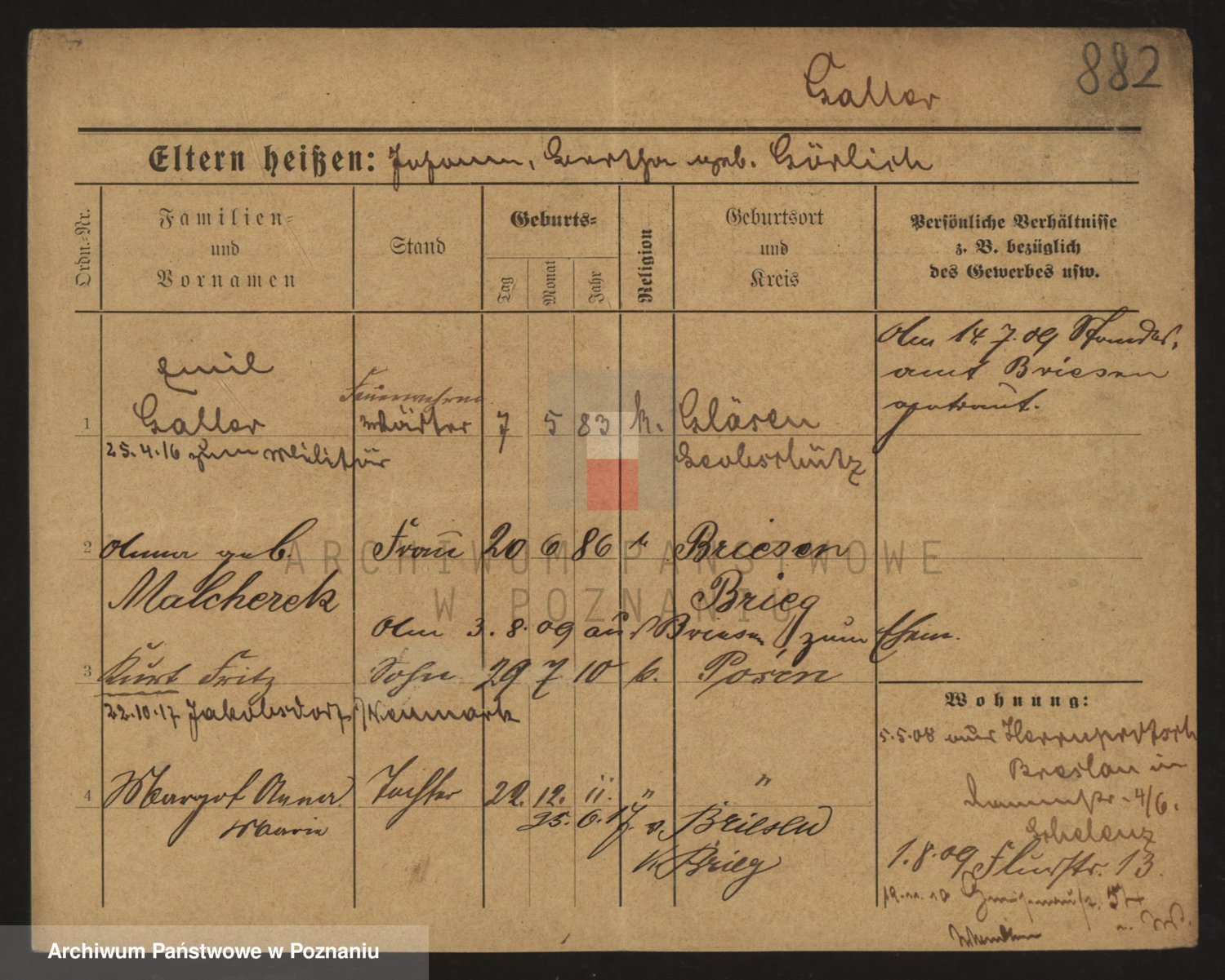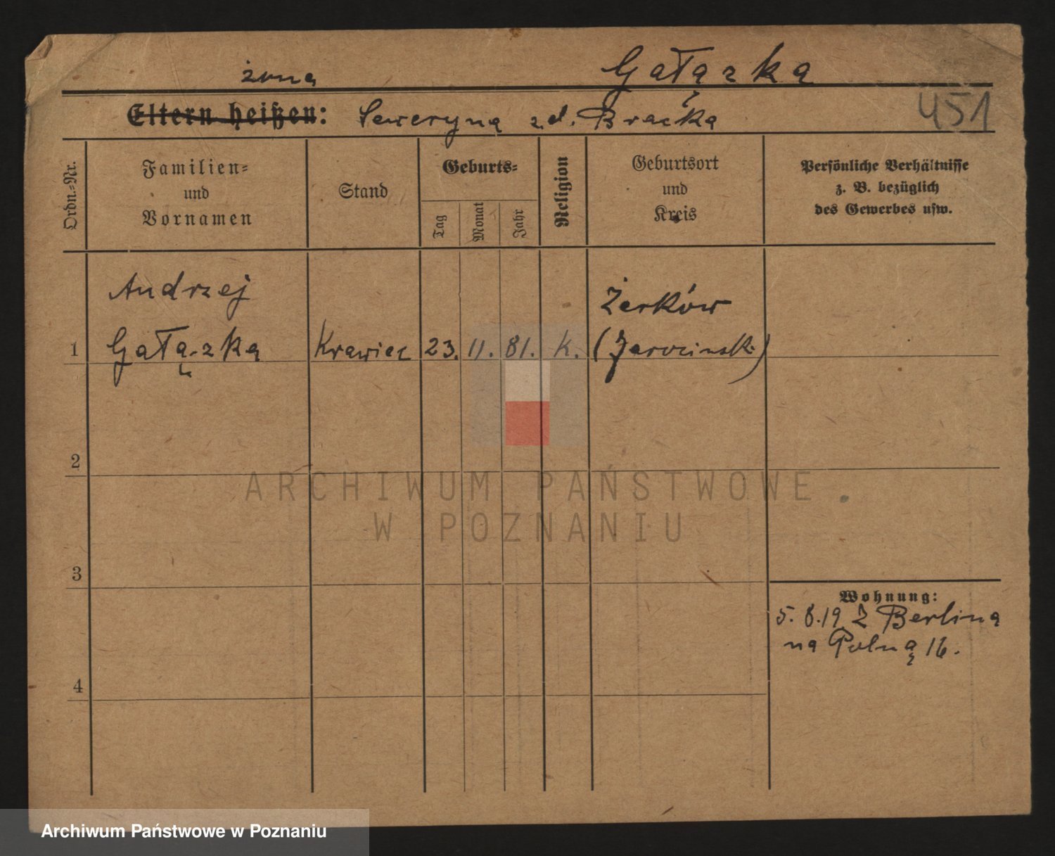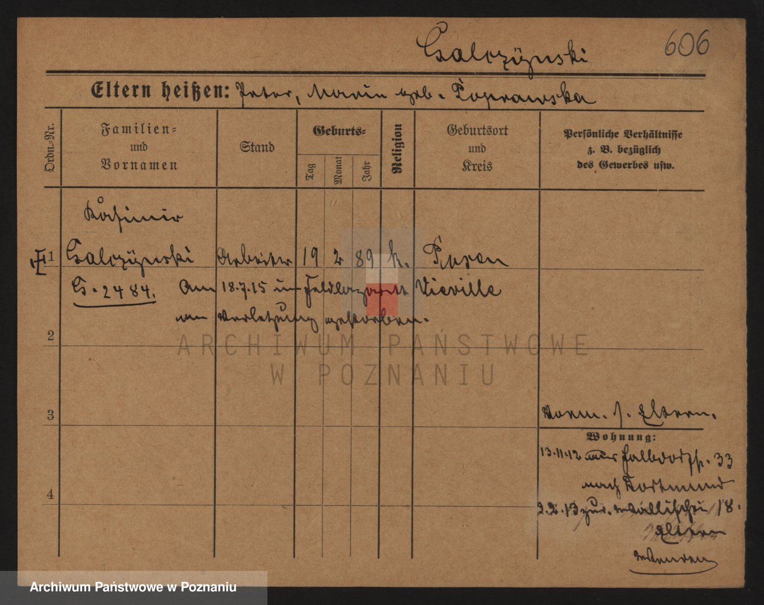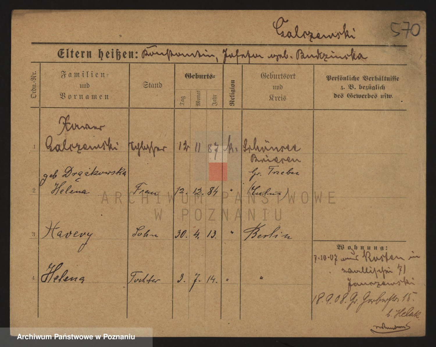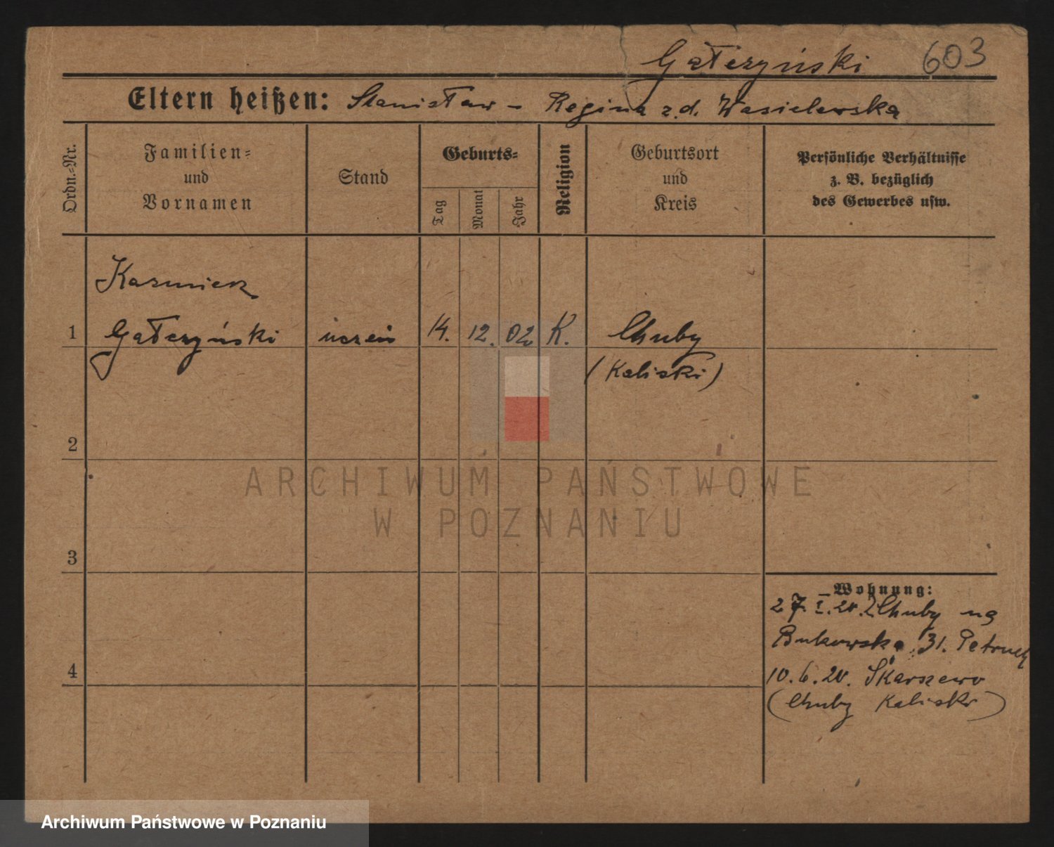 Podgląd karty osobowej dostępny jest po kliknięciu na nazwisko lub ikonkę karty. Można dokonywać powiększenia (ikony na górze) lub przechodzić między kolejnymi skanami (strzałki po bokach).