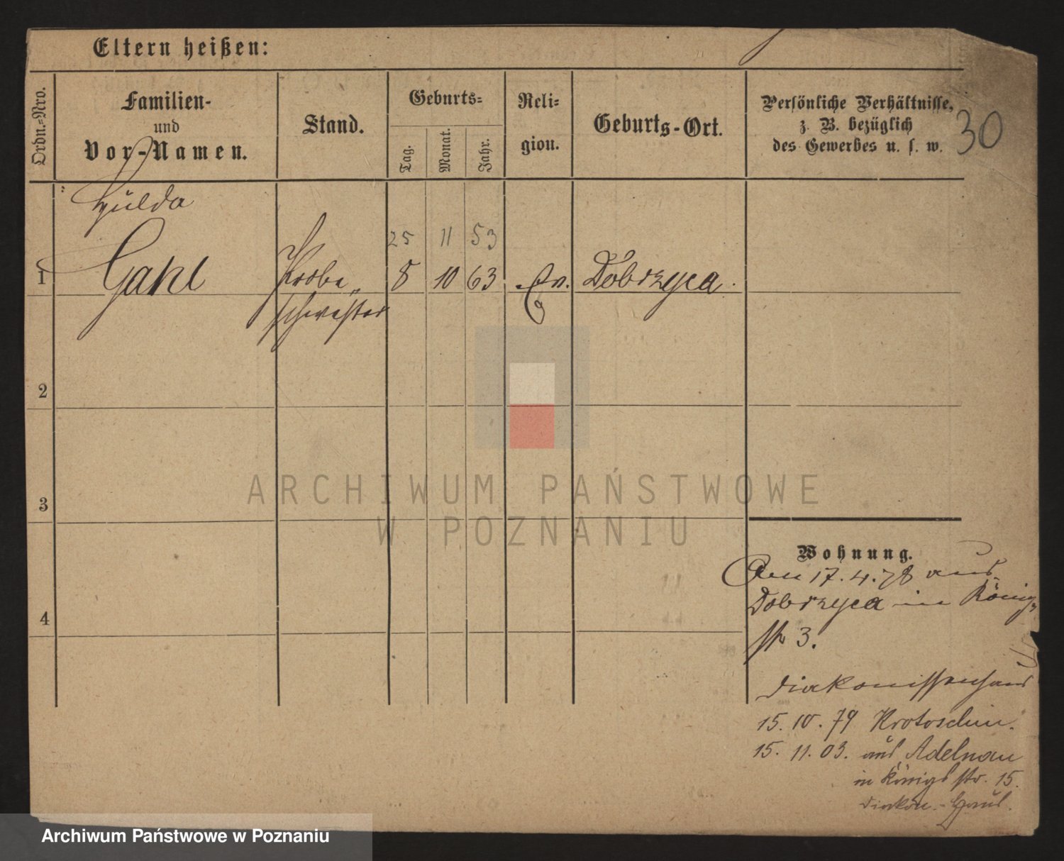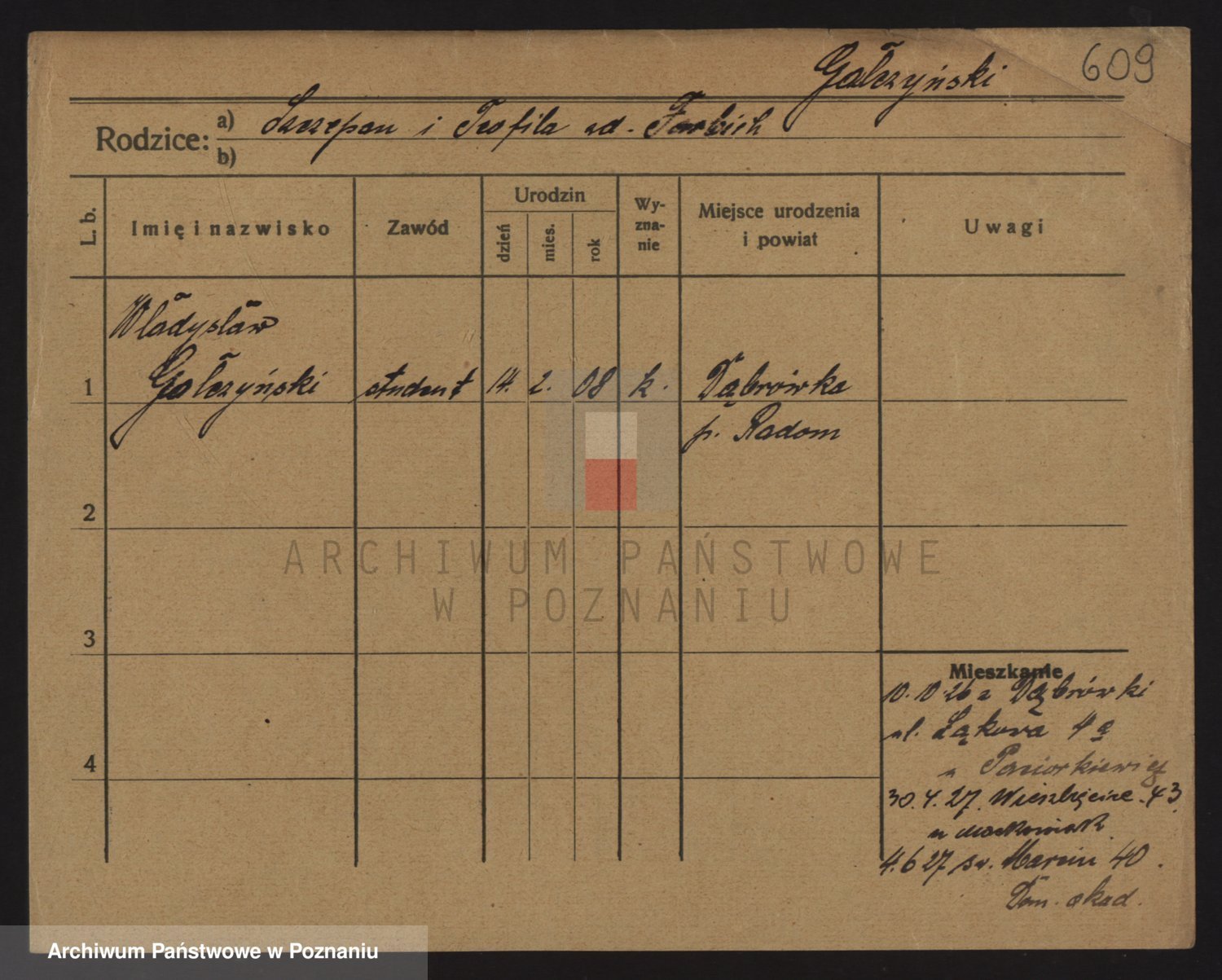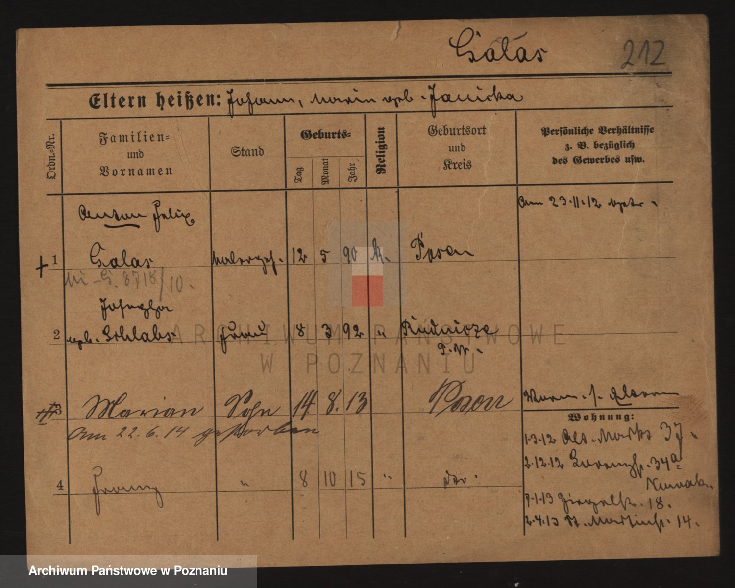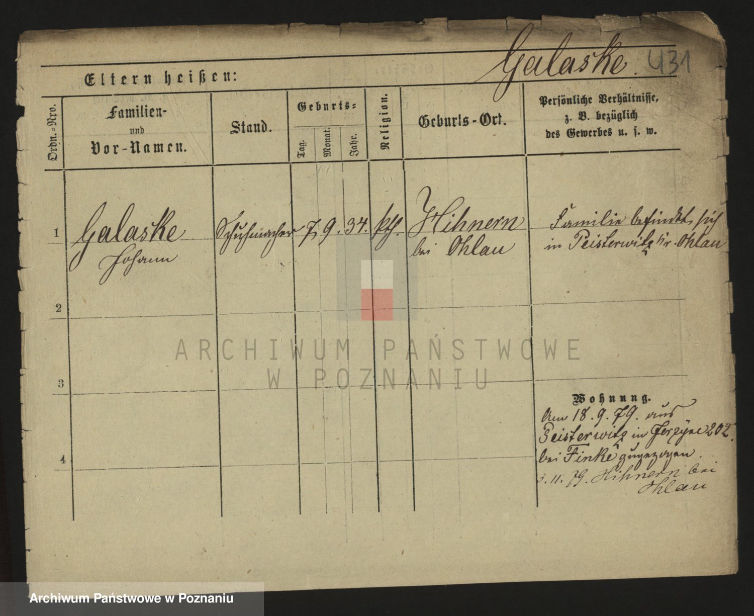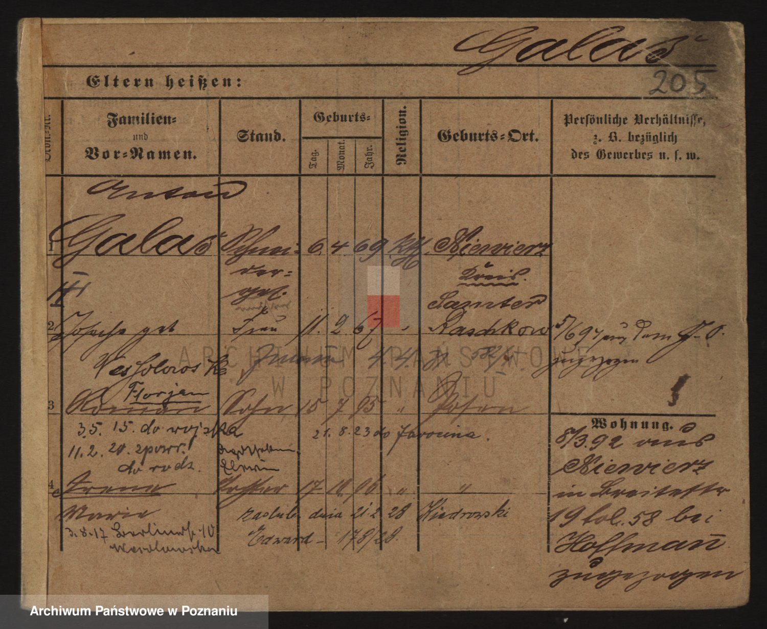 Podgląd karty osobowej dostępny jest po kliknięciu na nazwisko lub ikonkę karty. Można dokonywać powiększenia (ikony na górze) lub przechodzić między kolejnymi skanami (strzałki po bokach).