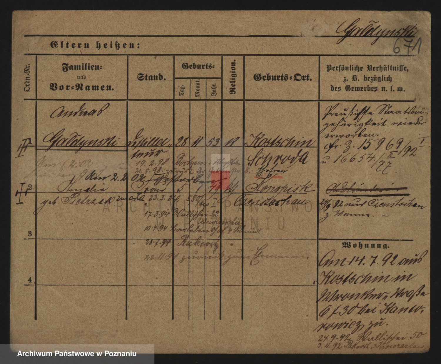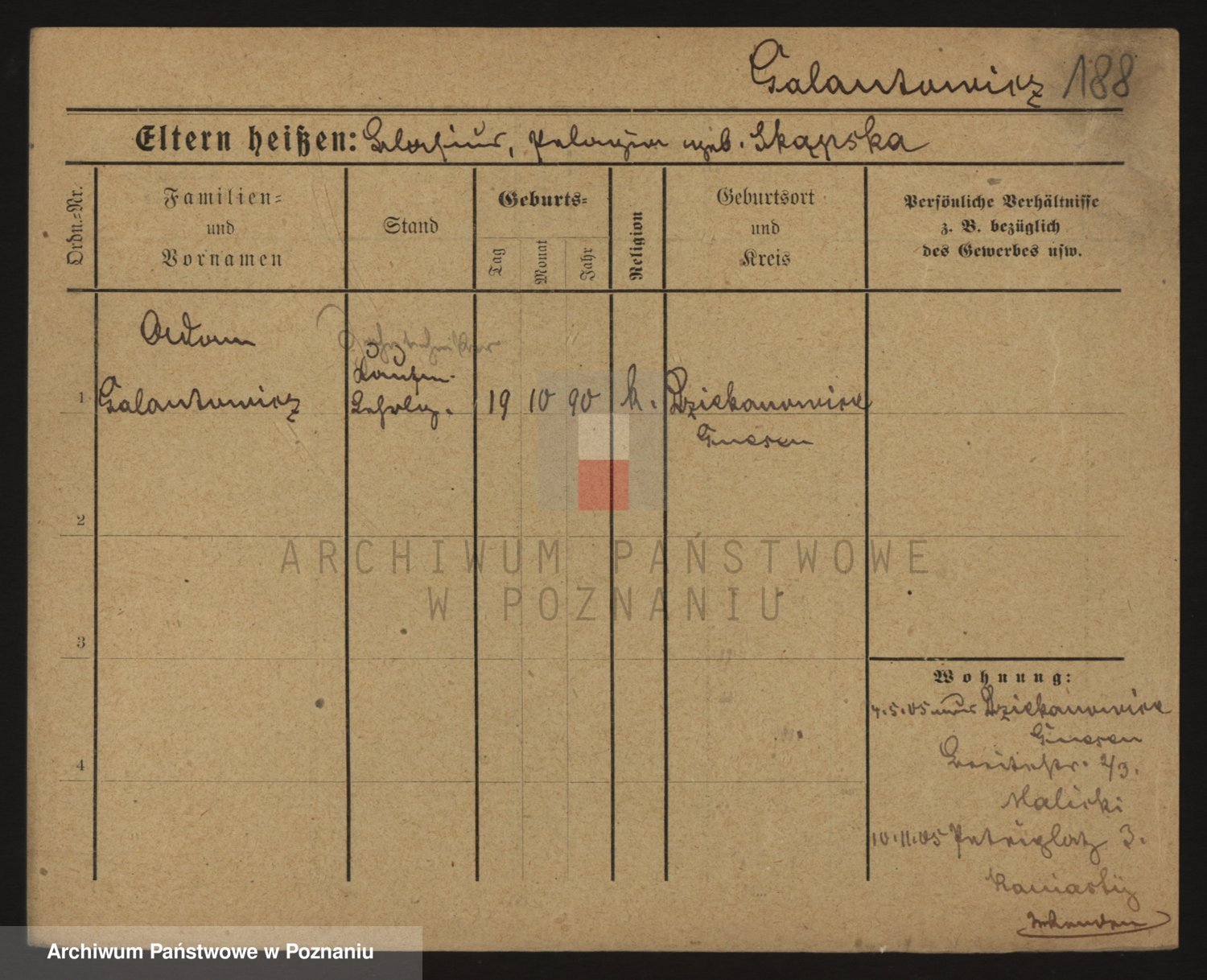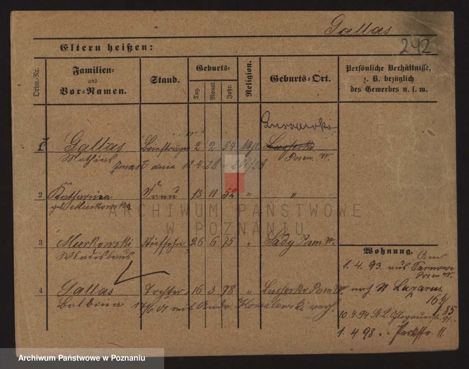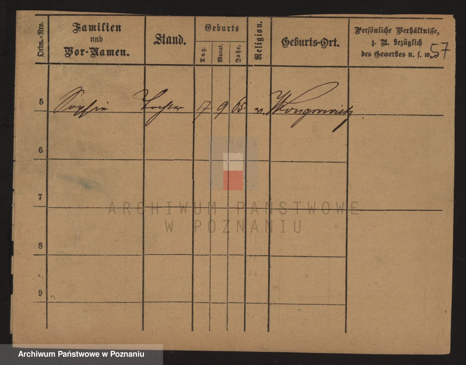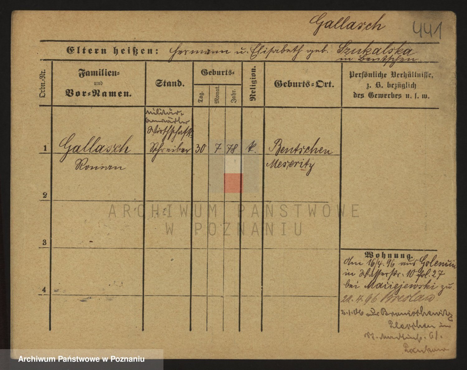 Podgląd karty osobowej dostępny jest po kliknięciu na nazwisko lub ikonkę karty. Można dokonywać powiększenia (ikony na górze) lub przechodzić między kolejnymi skanami (strzałki po bokach).