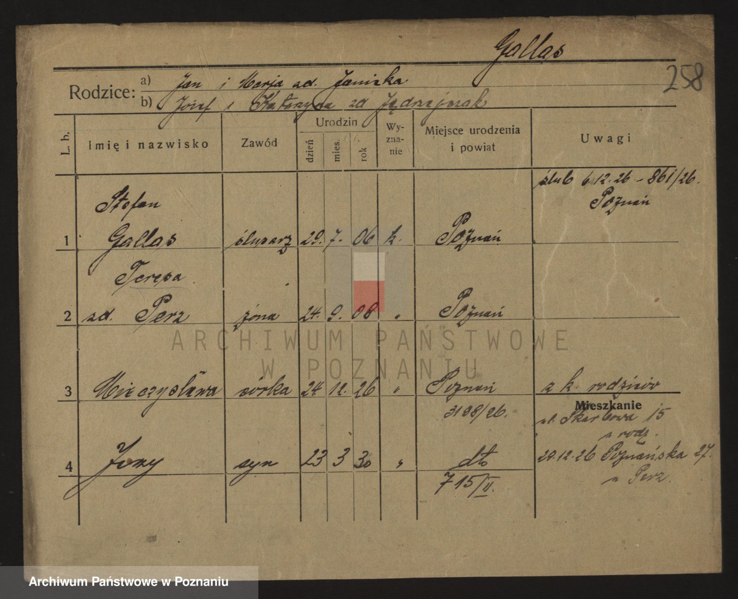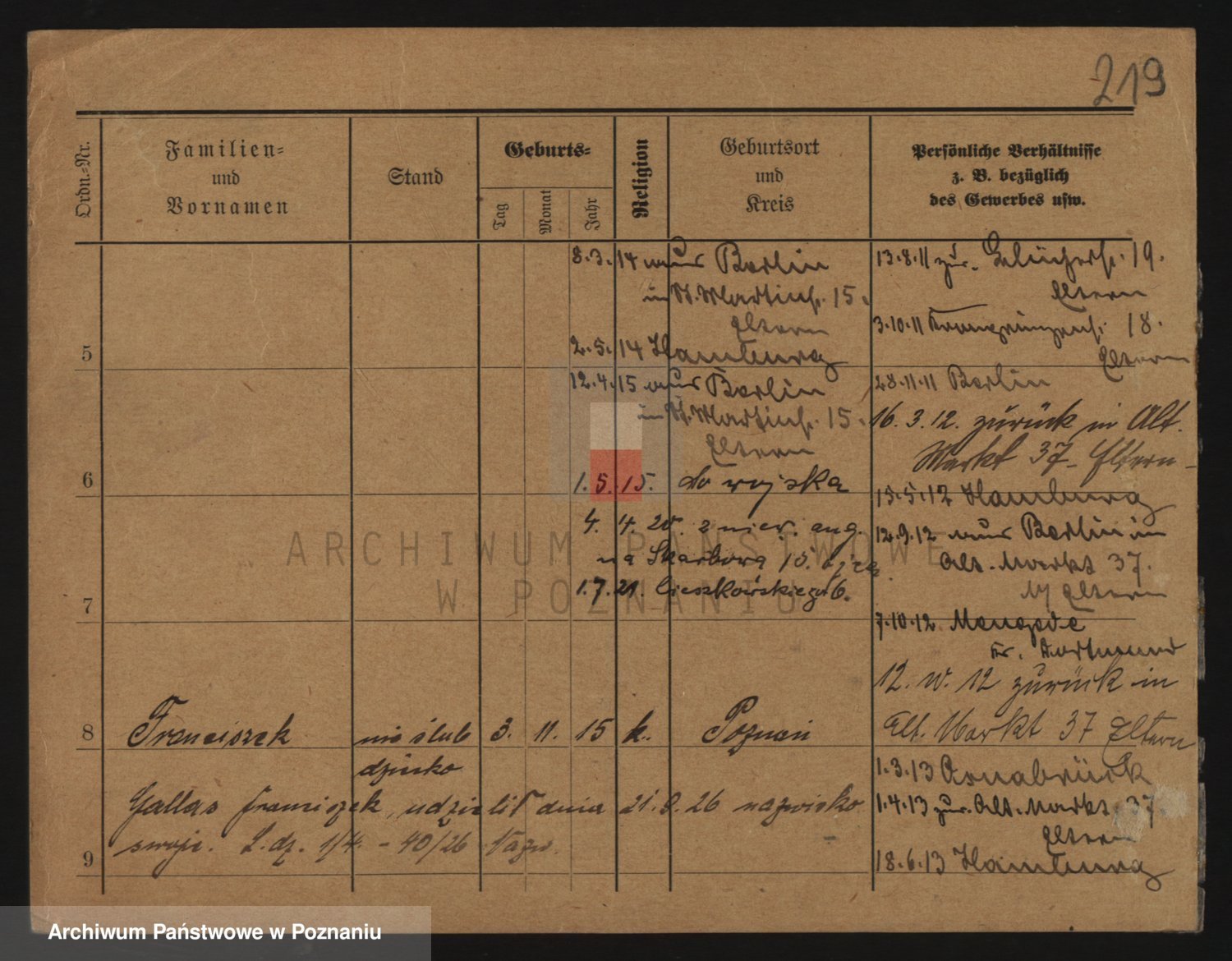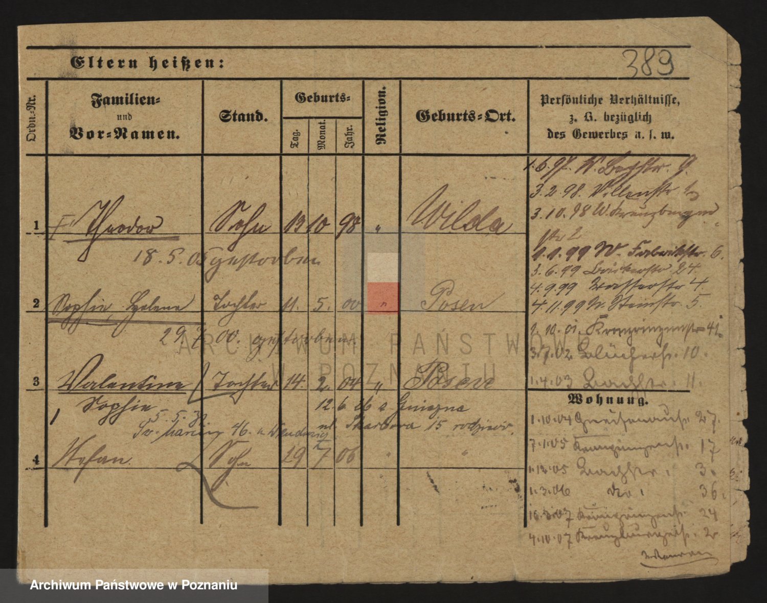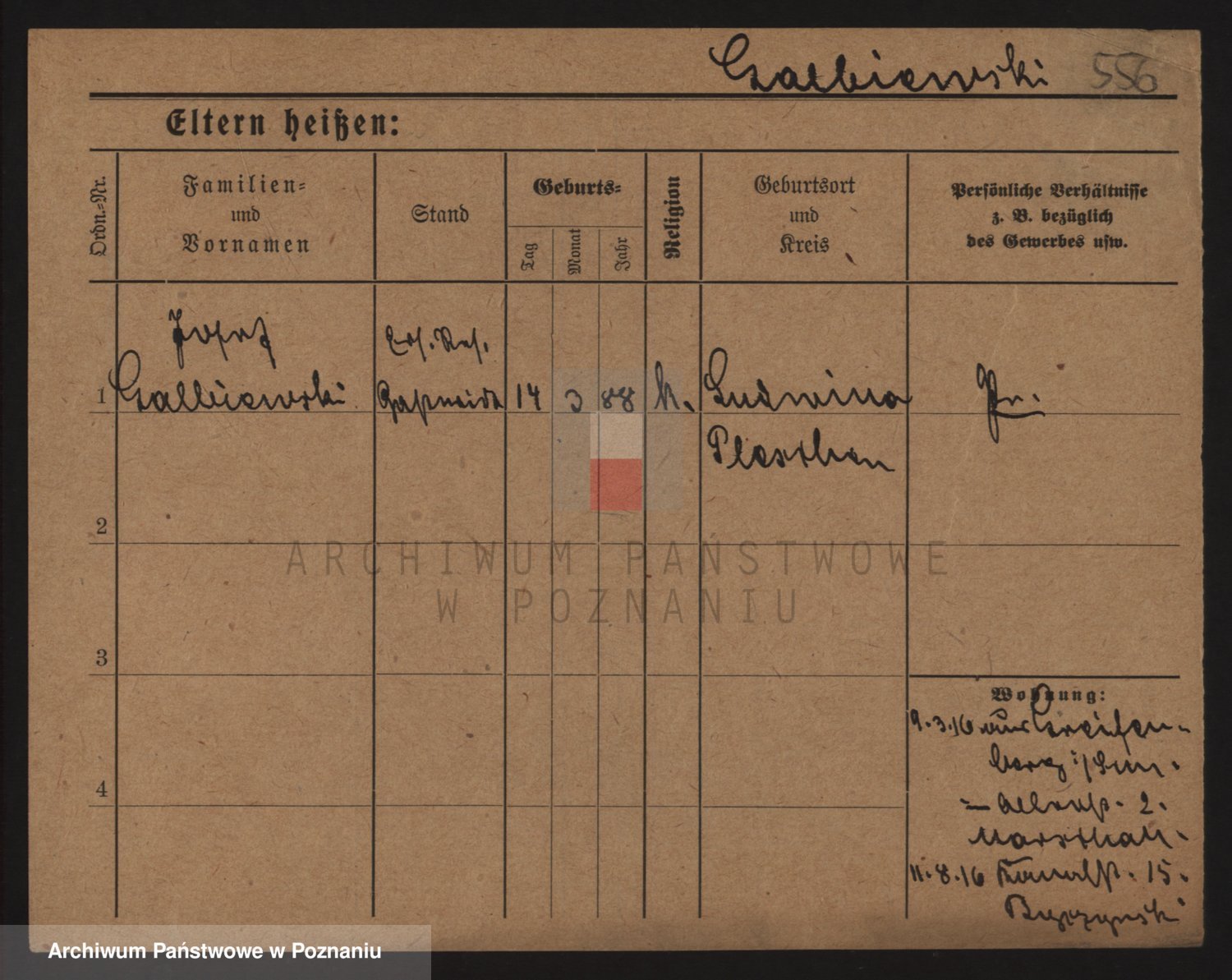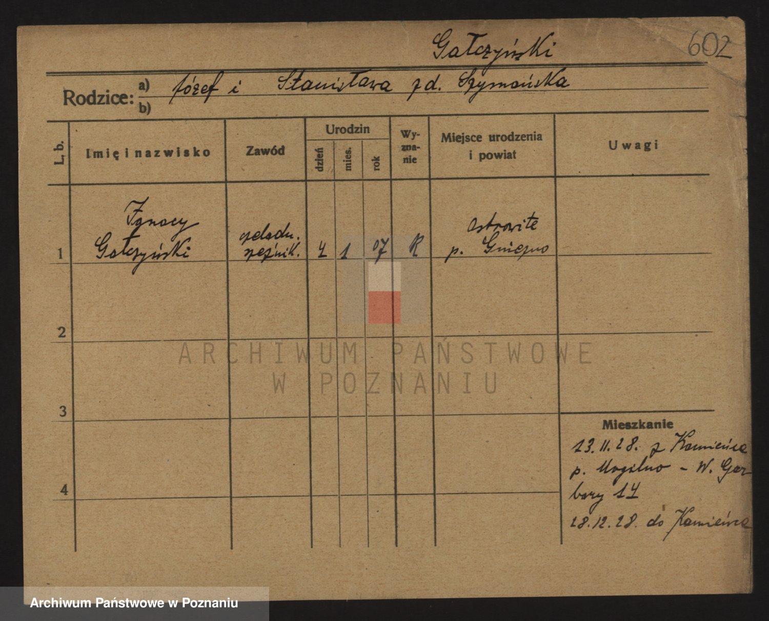 Podgląd karty osobowej dostępny jest po kliknięciu na nazwisko lub ikonkę karty. Można dokonywać powiększenia (ikony na górze) lub przechodzić między kolejnymi skanami (strzałki po bokach).