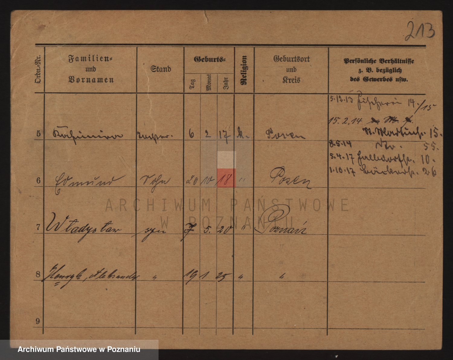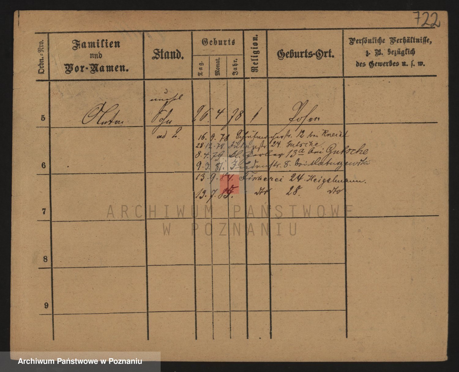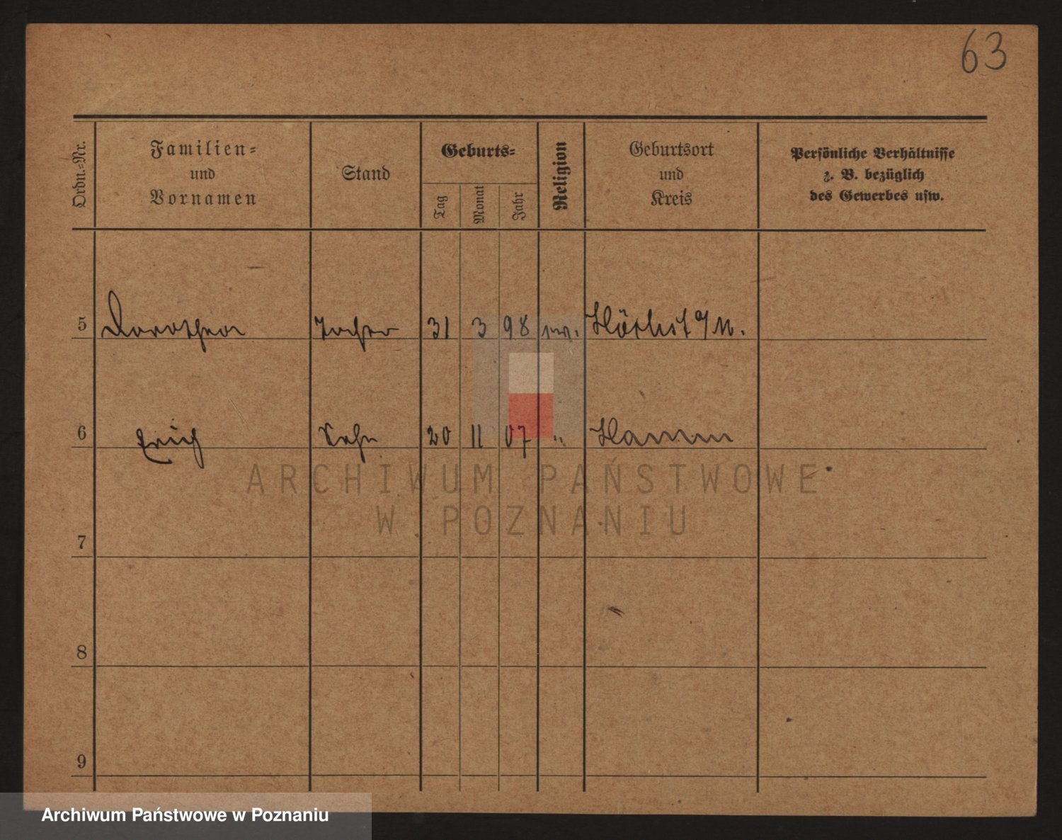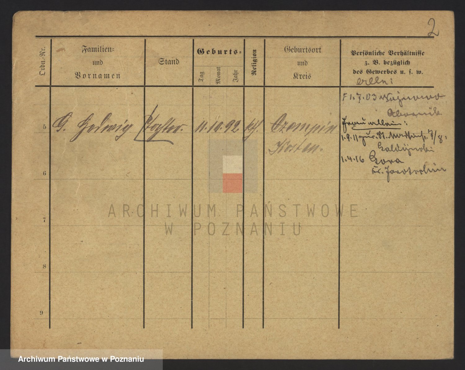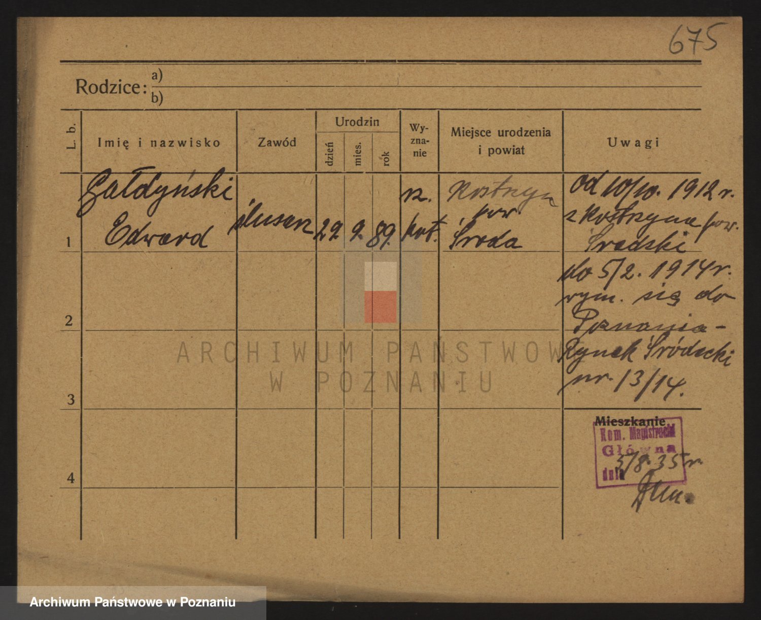 Podgląd karty osobowej dostępny jest po kliknięciu na nazwisko lub ikonkę karty. Można dokonywać powiększenia (ikony na górze) lub przechodzić między kolejnymi skanami (strzałki po bokach).