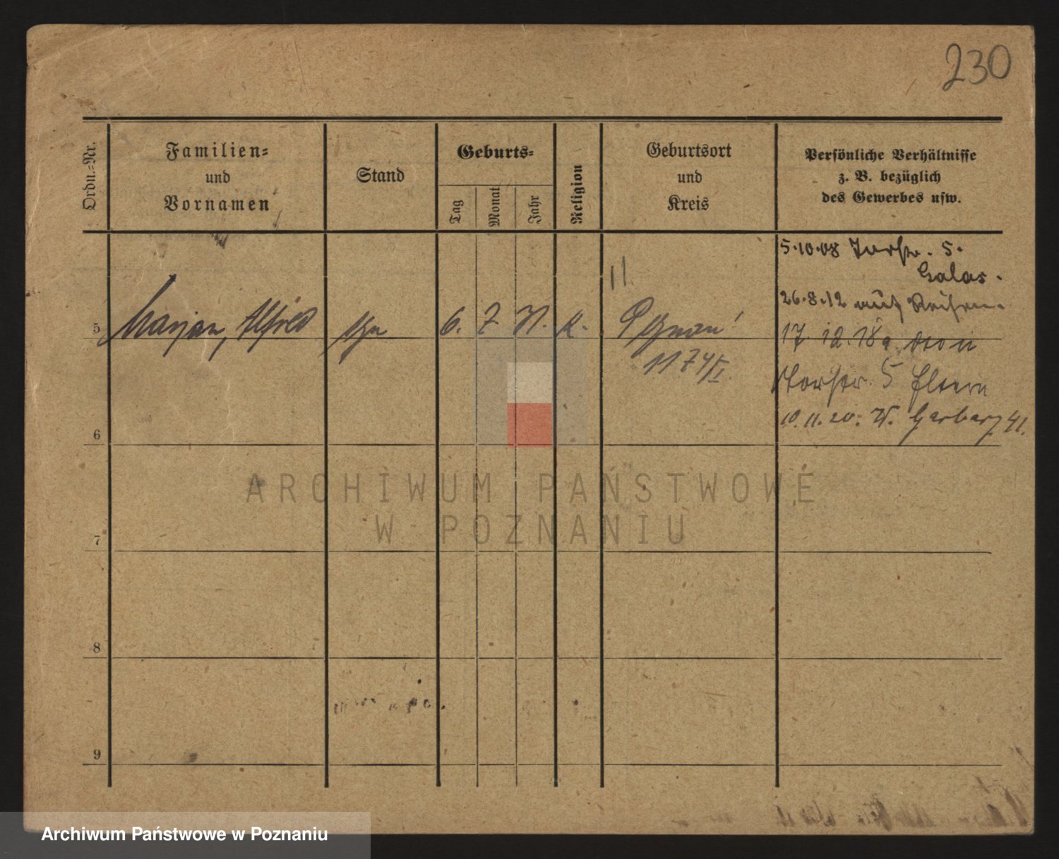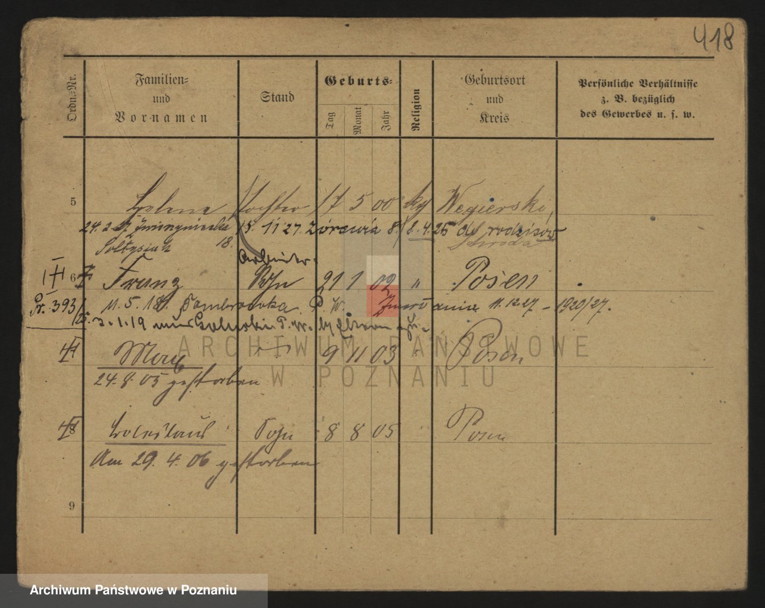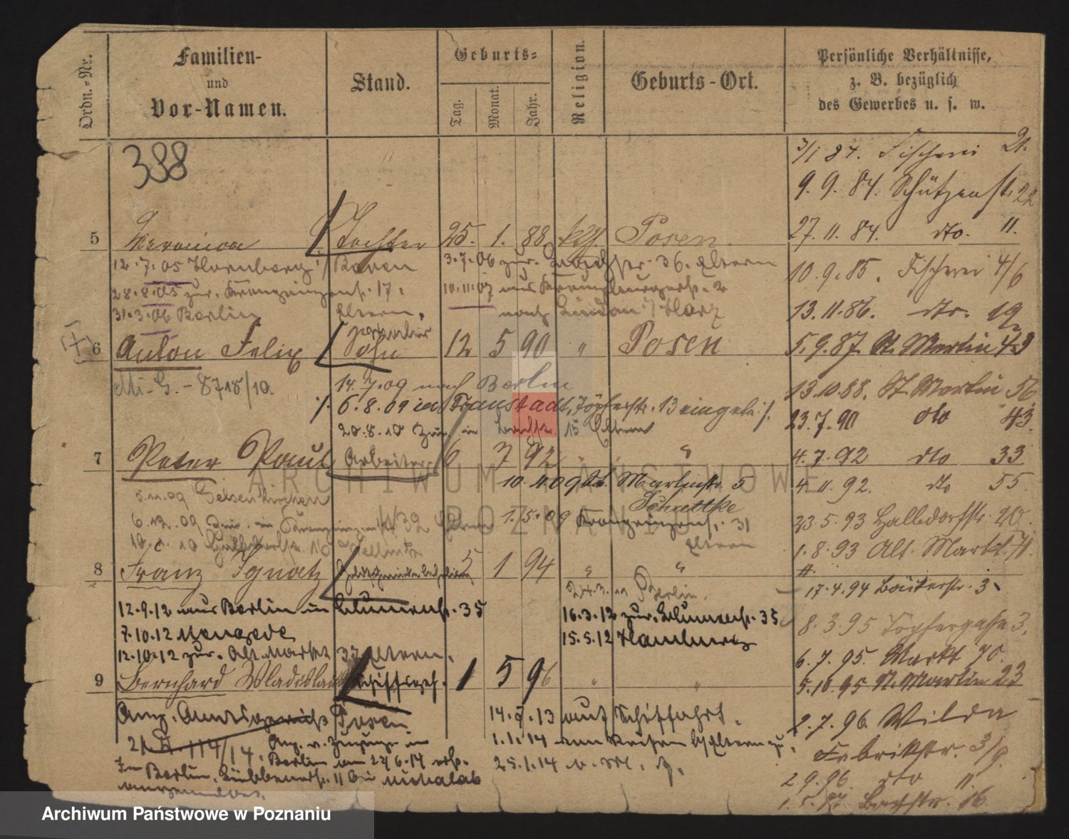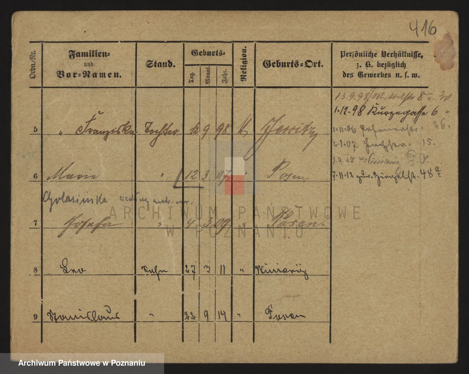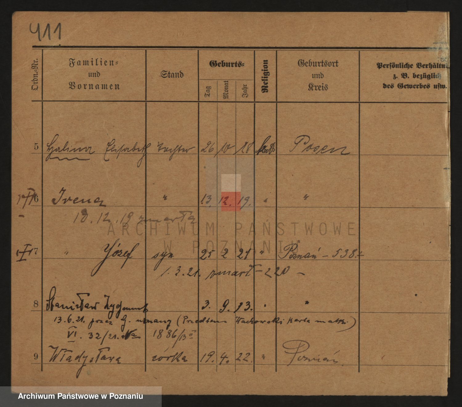 Podgląd karty osobowej dostępny jest po kliknięciu na nazwisko lub ikonkę karty. Można dokonywać powiększenia (ikony na górze) lub przechodzić między kolejnymi skanami (strzałki po bokach).