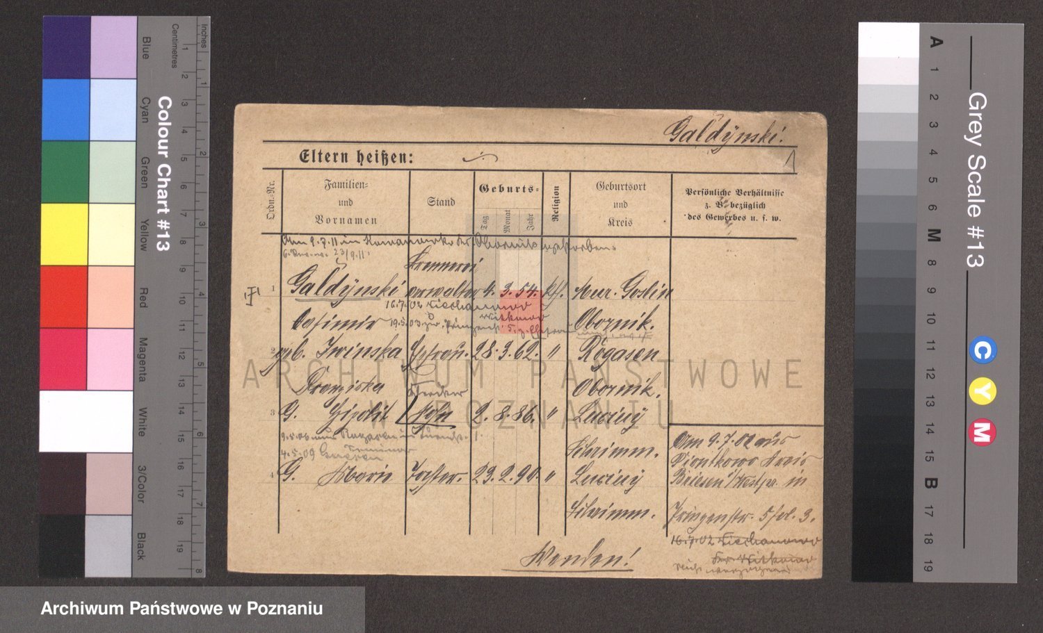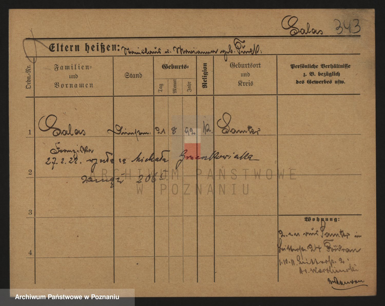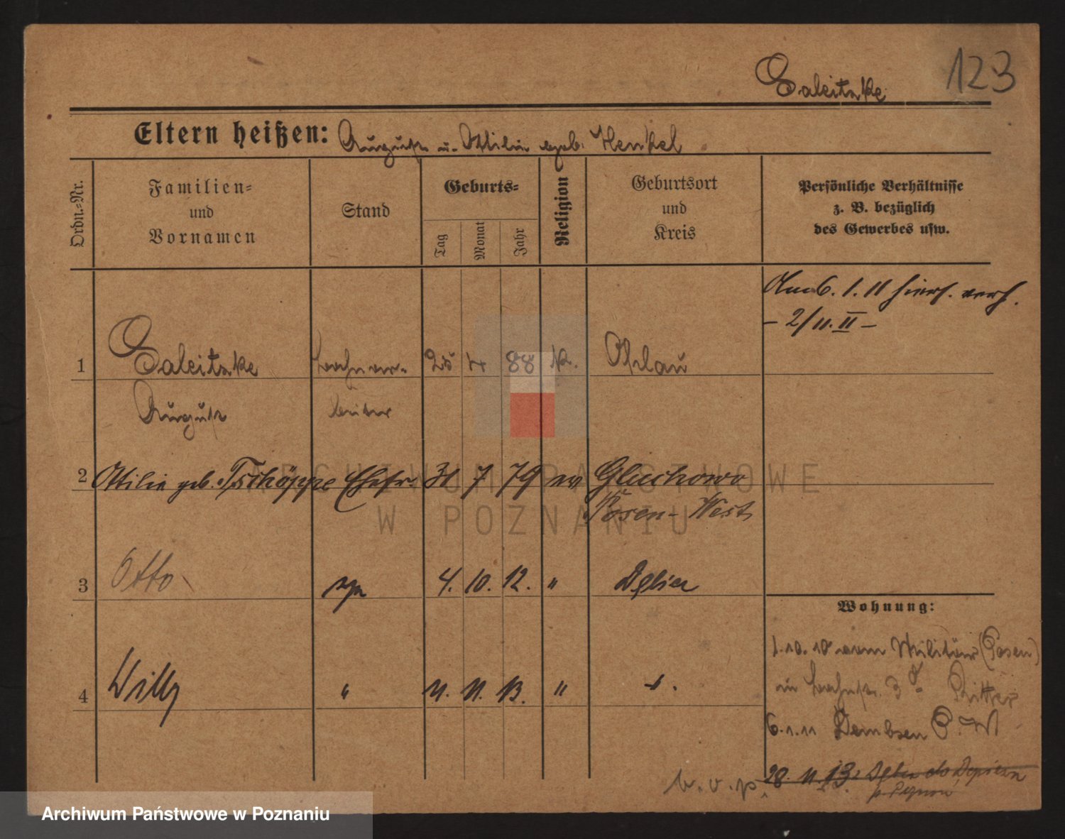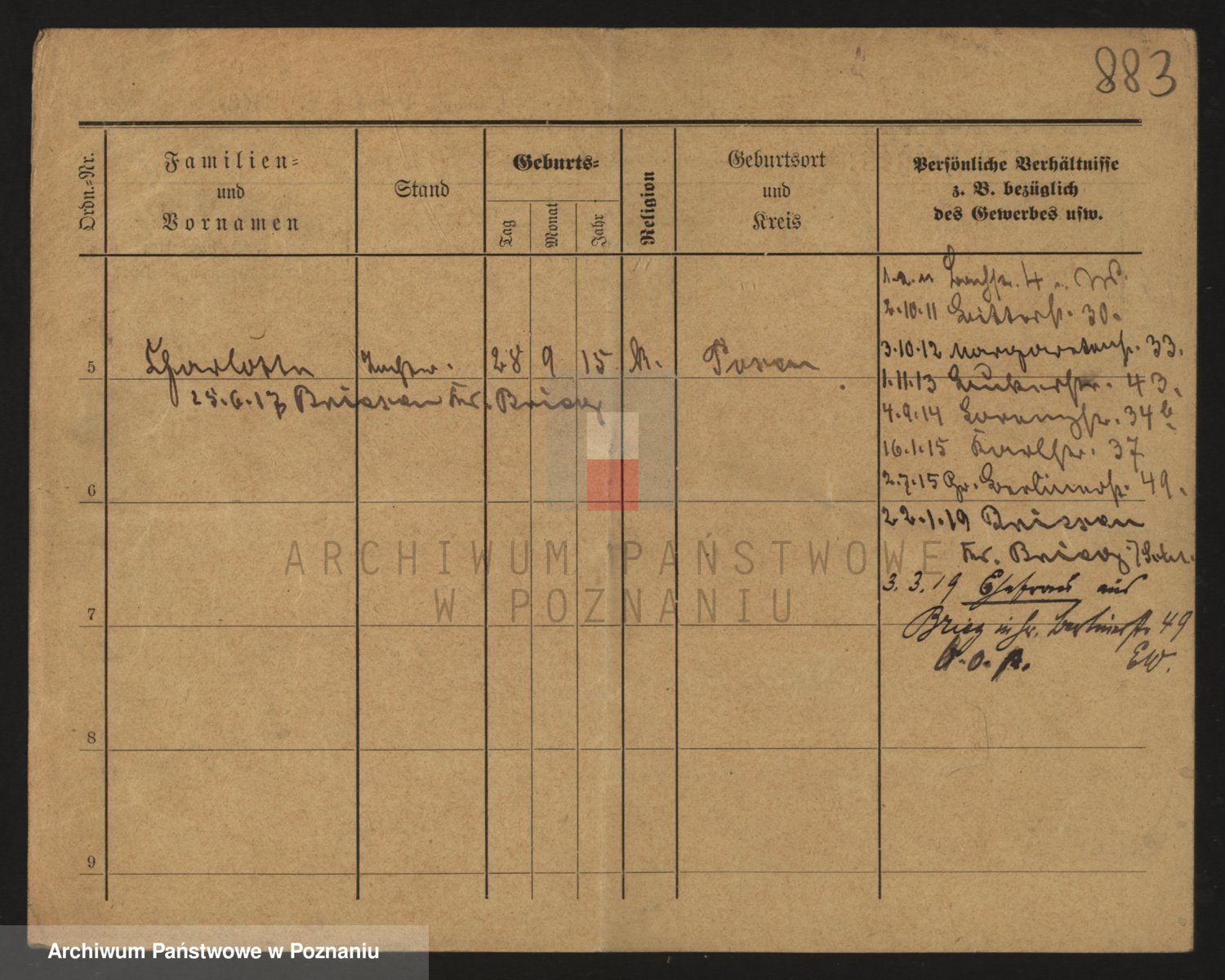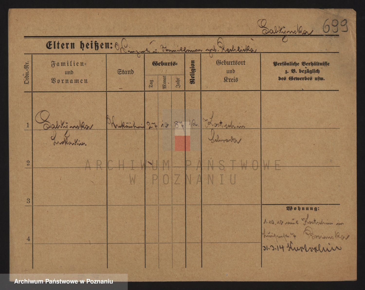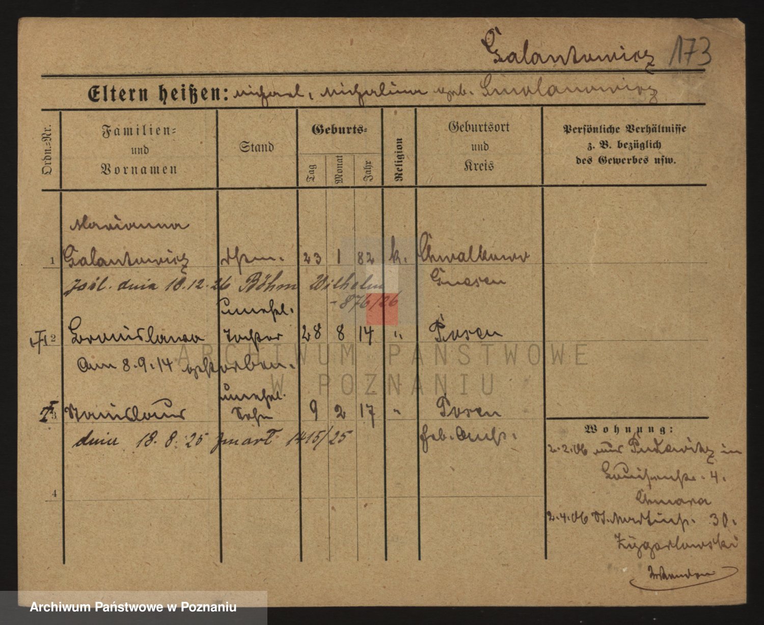 Podgląd karty osobowej dostępny jest po kliknięciu na nazwisko lub ikonkę karty. Można dokonywać powiększenia (ikony na górze) lub przechodzić między kolejnymi skanami (strzałki po bokach).