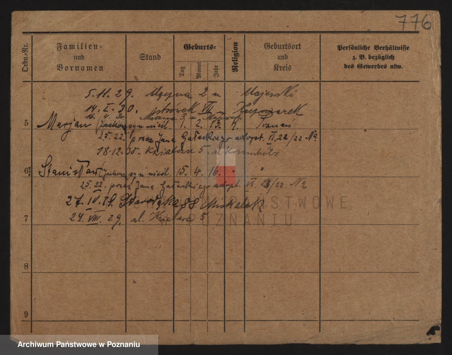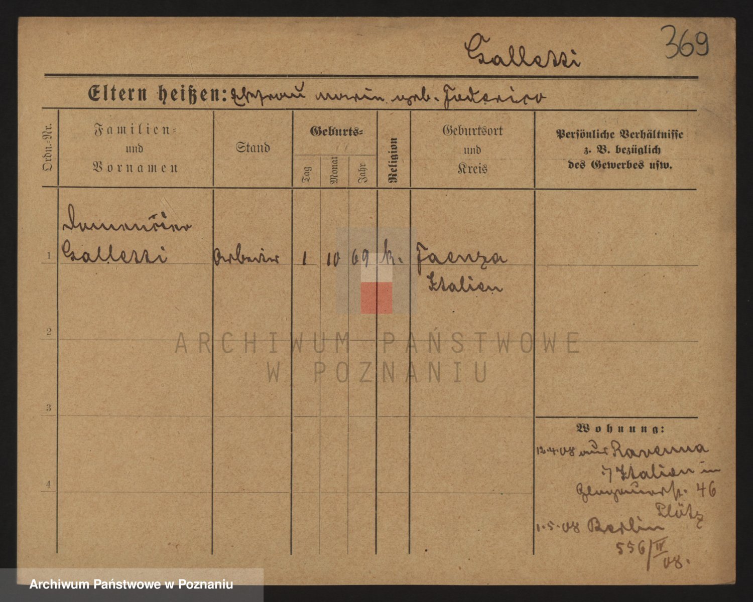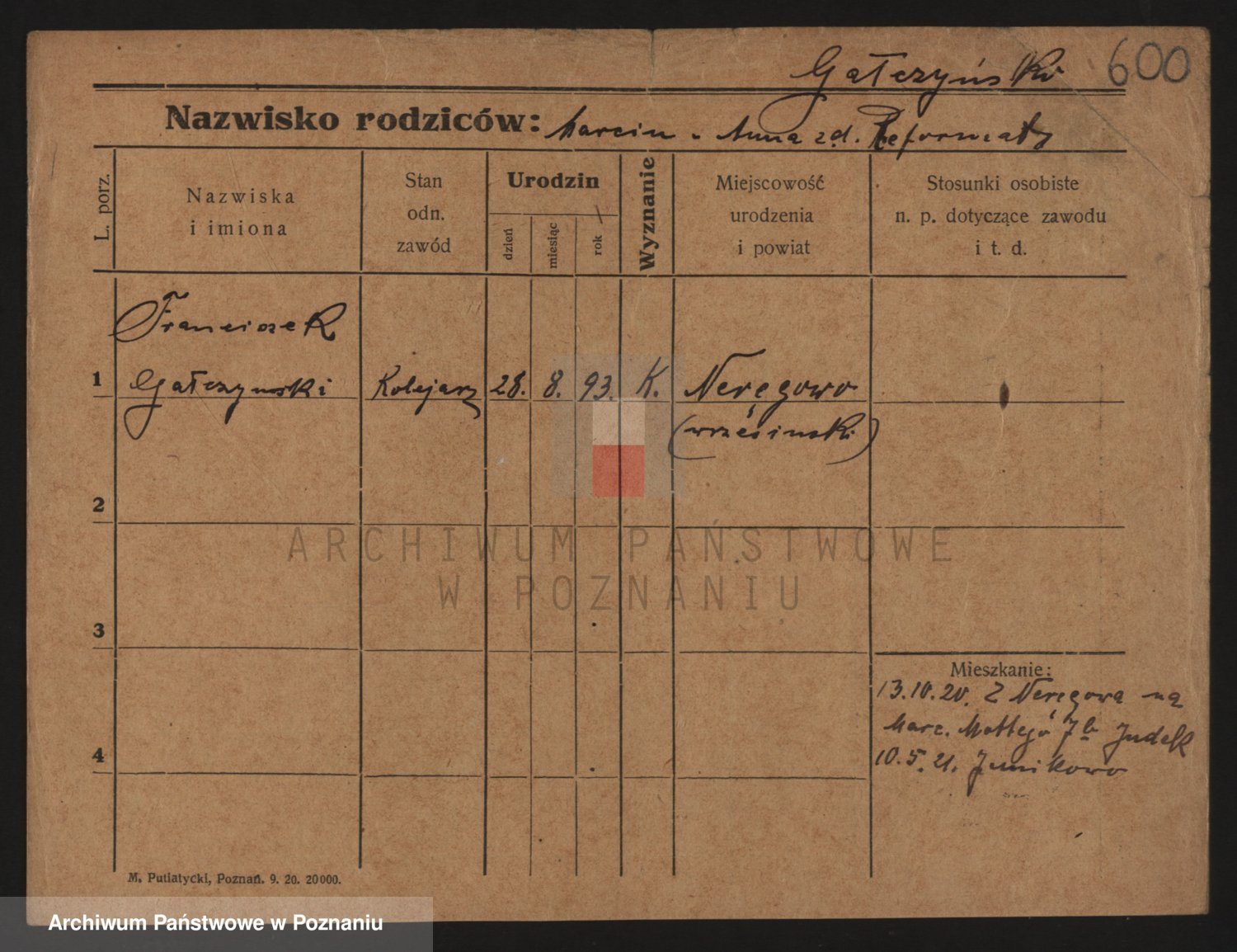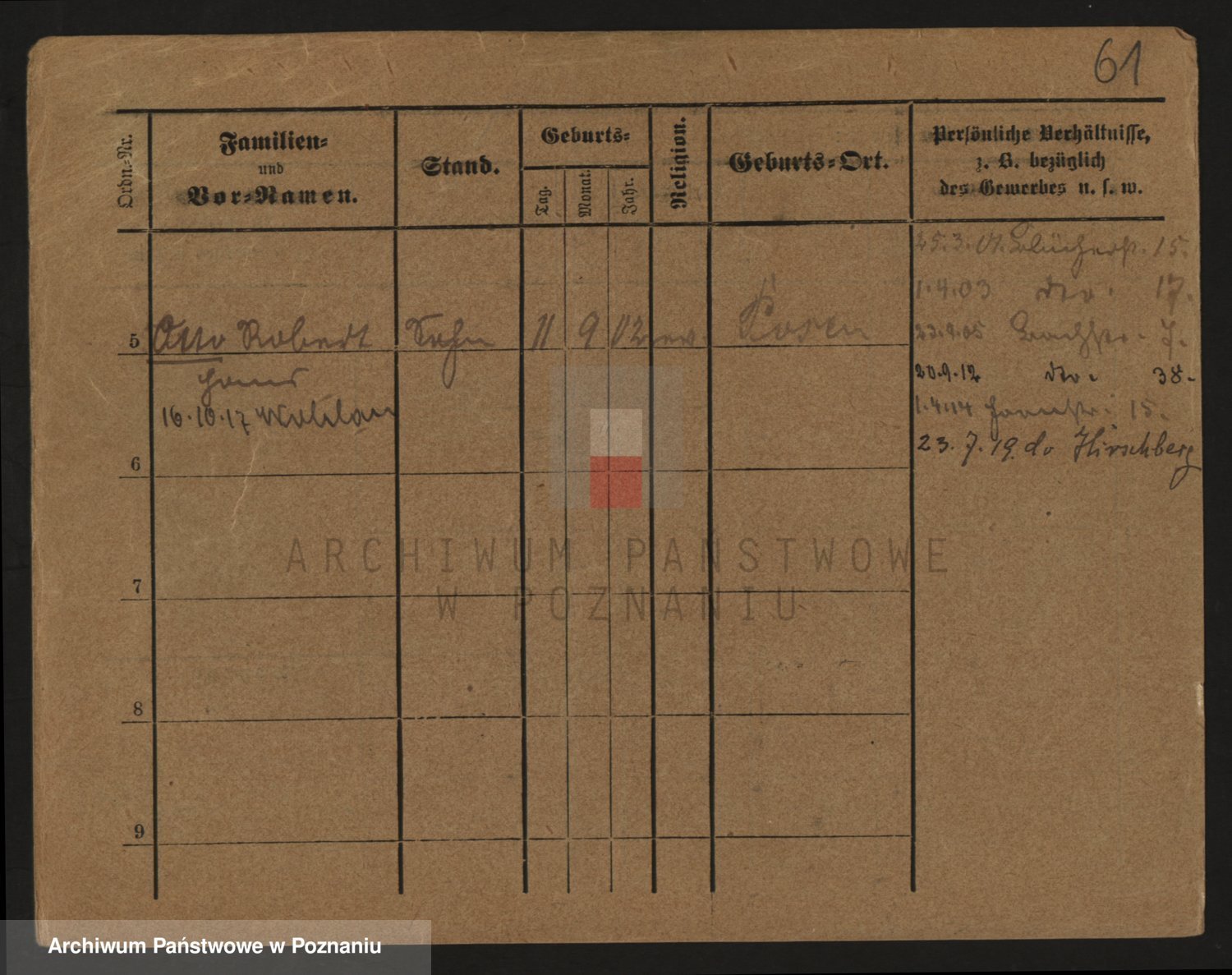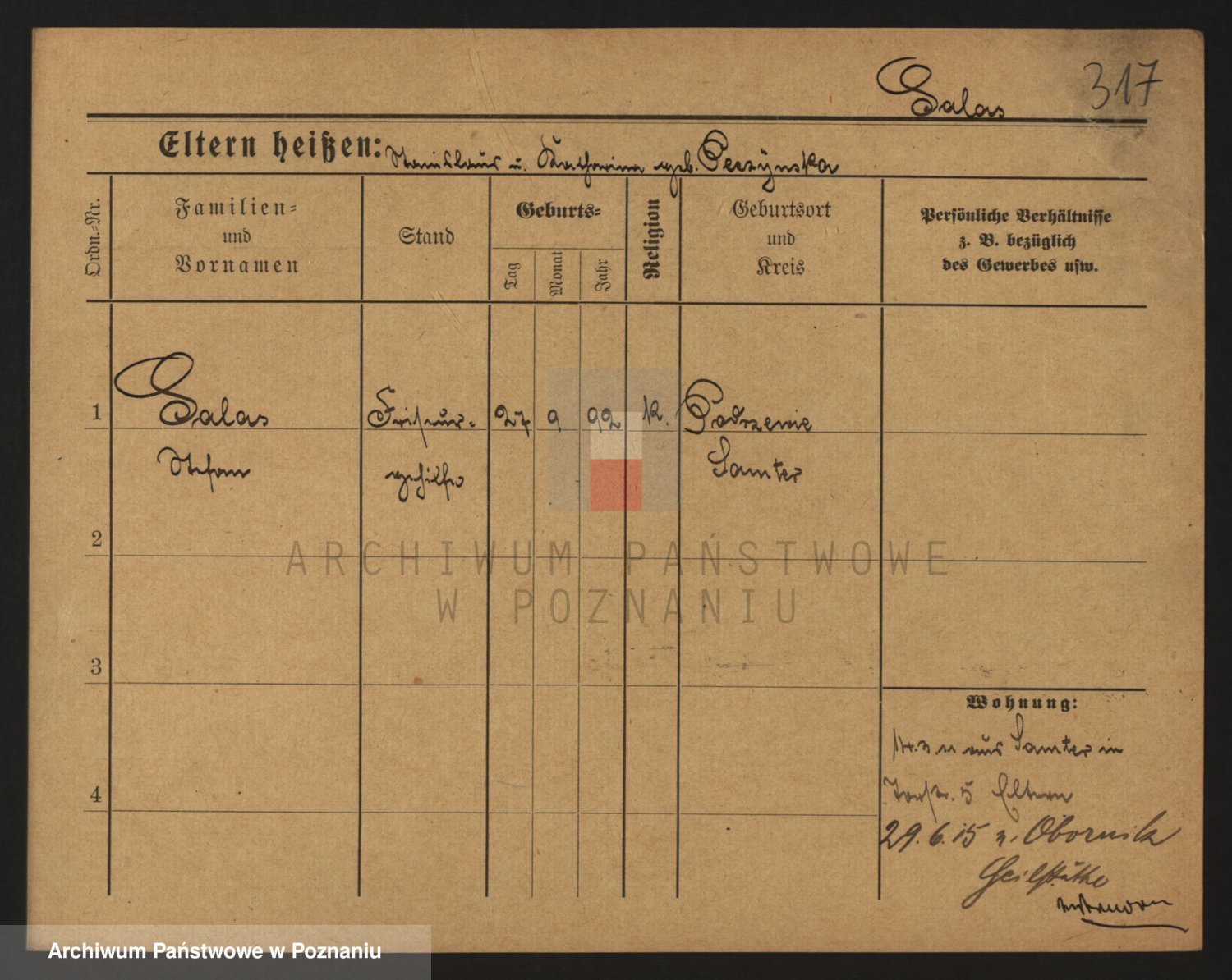 Podgląd karty osobowej dostępny jest po kliknięciu na nazwisko lub ikonkę karty. Można dokonywać powiększenia (ikony na górze) lub przechodzić między kolejnymi skanami (strzałki po bokach).