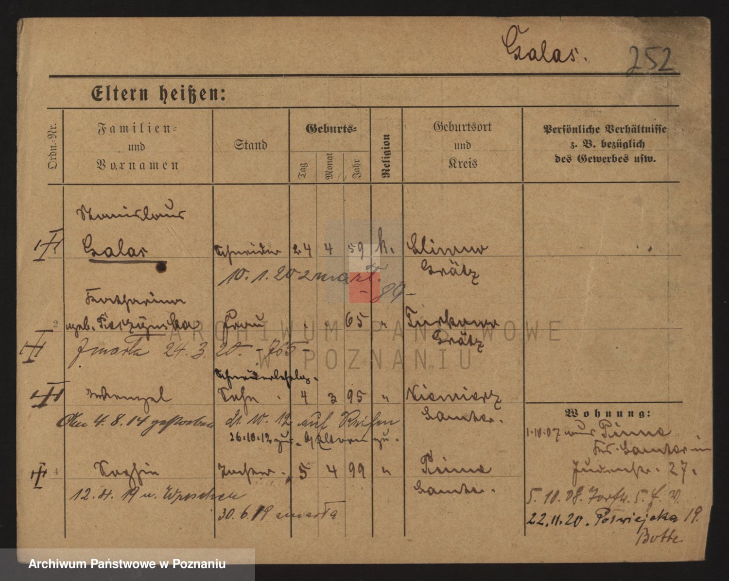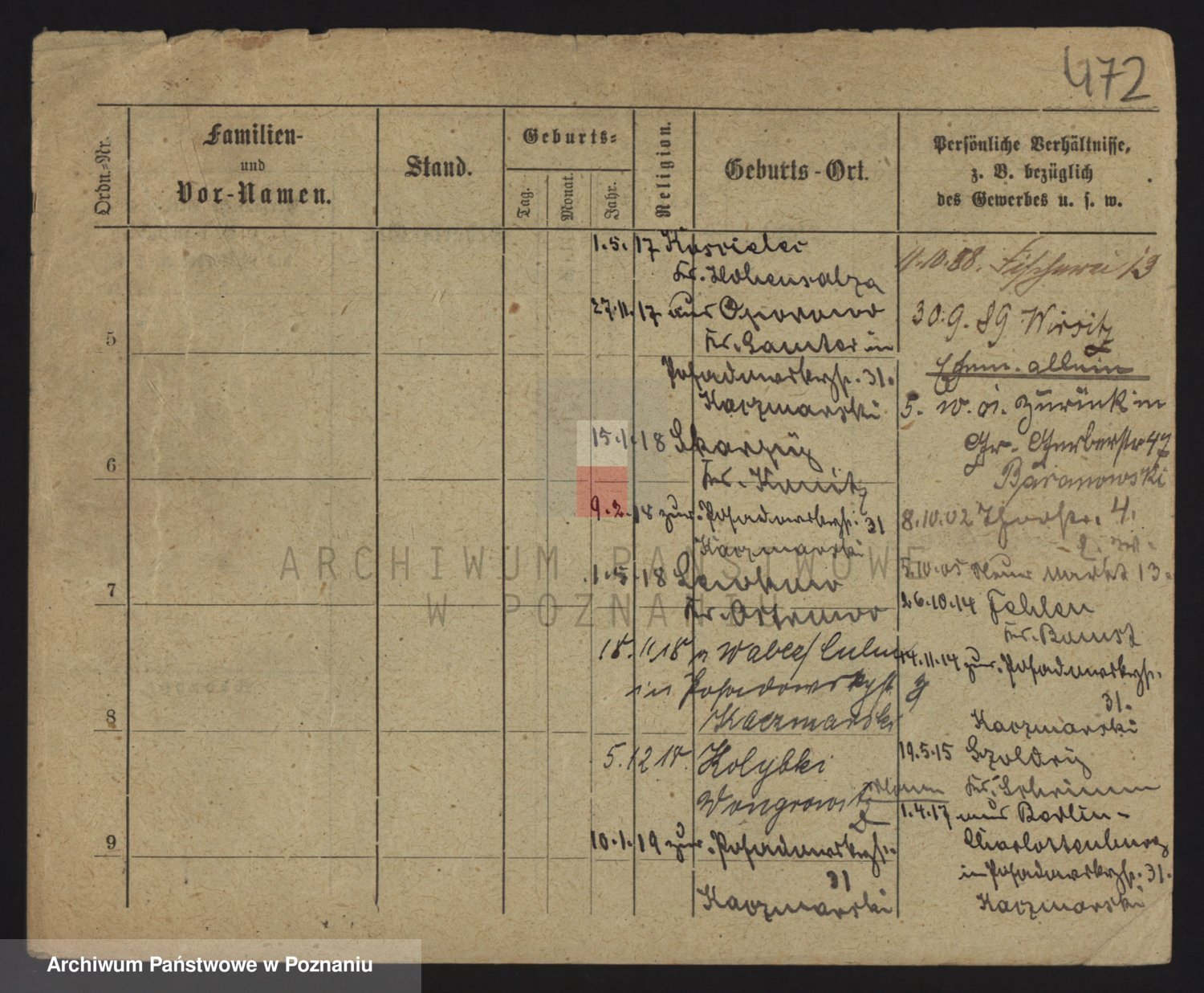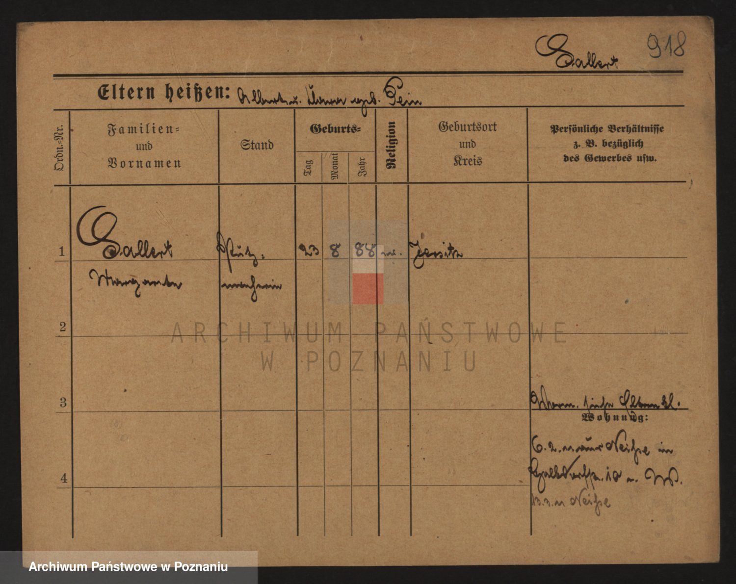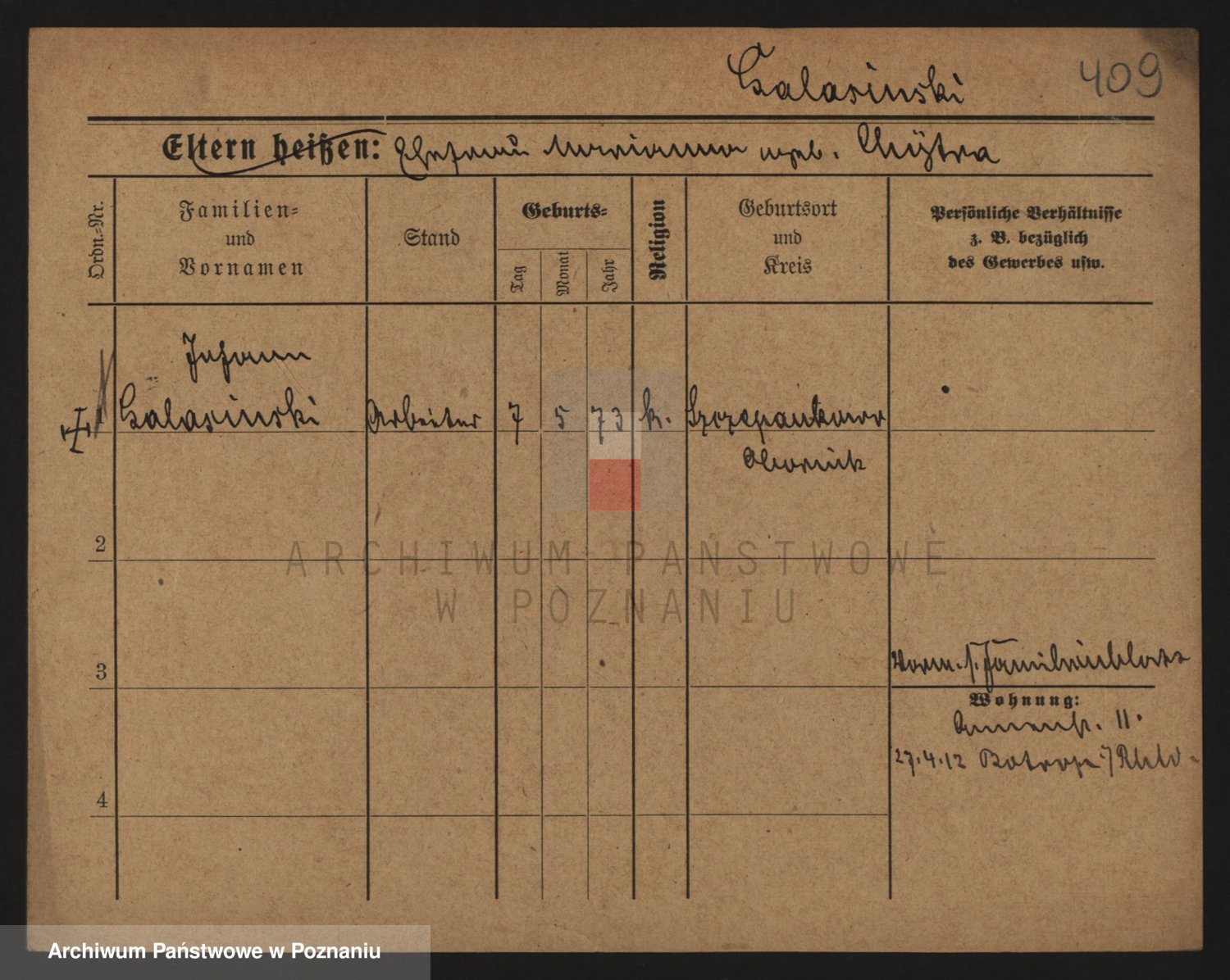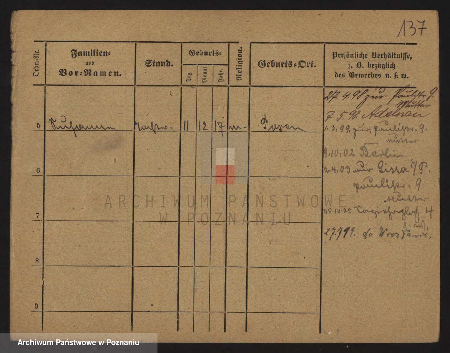 Podgląd karty osobowej dostępny jest po kliknięciu na nazwisko lub ikonkę karty. Można dokonywać powiększenia (ikony na górze) lub przechodzić między kolejnymi skanami (strzałki po bokach).