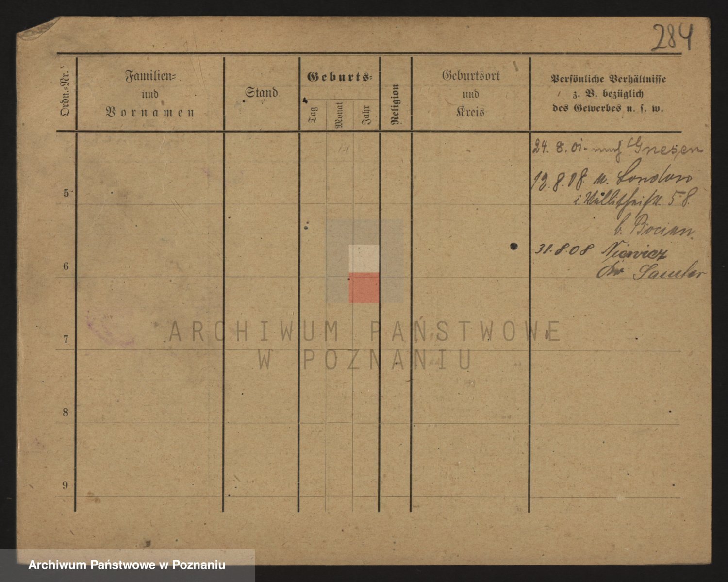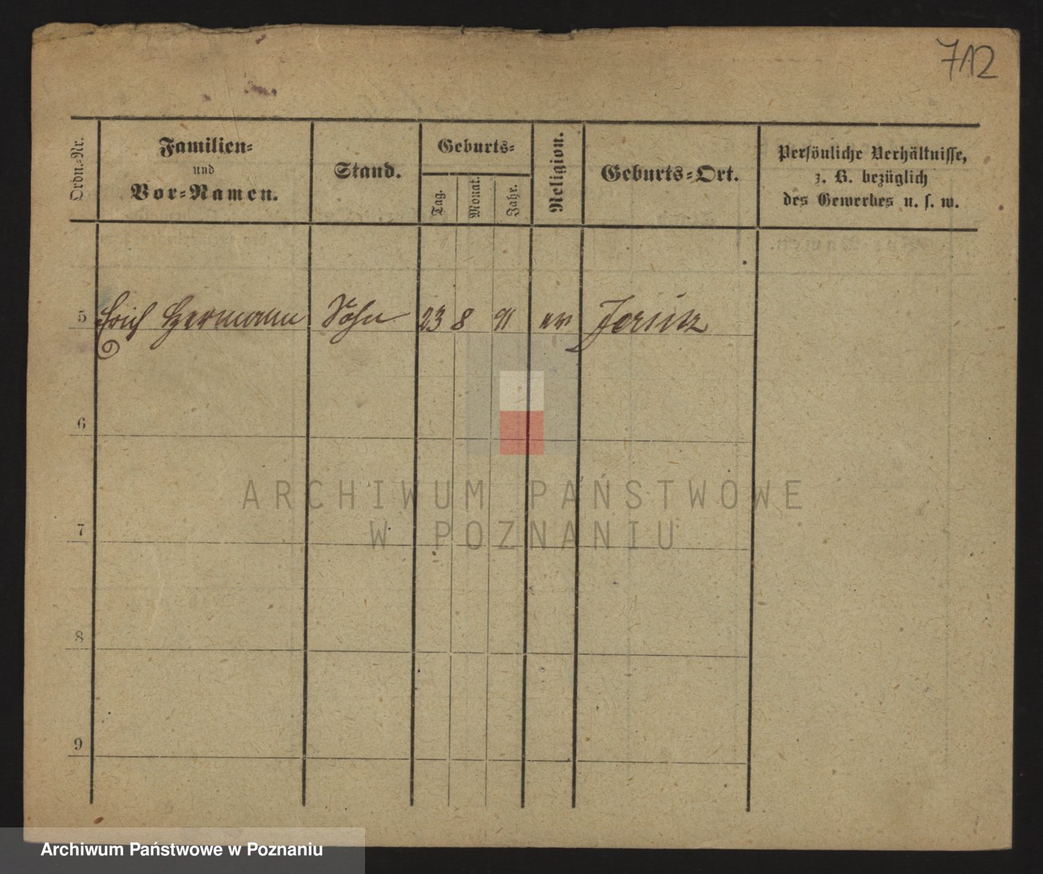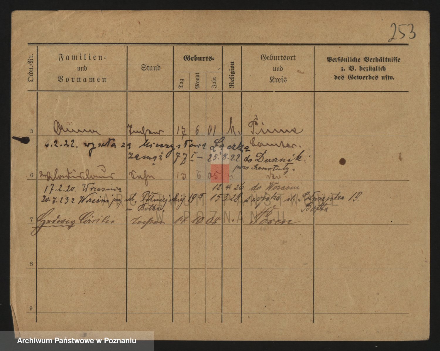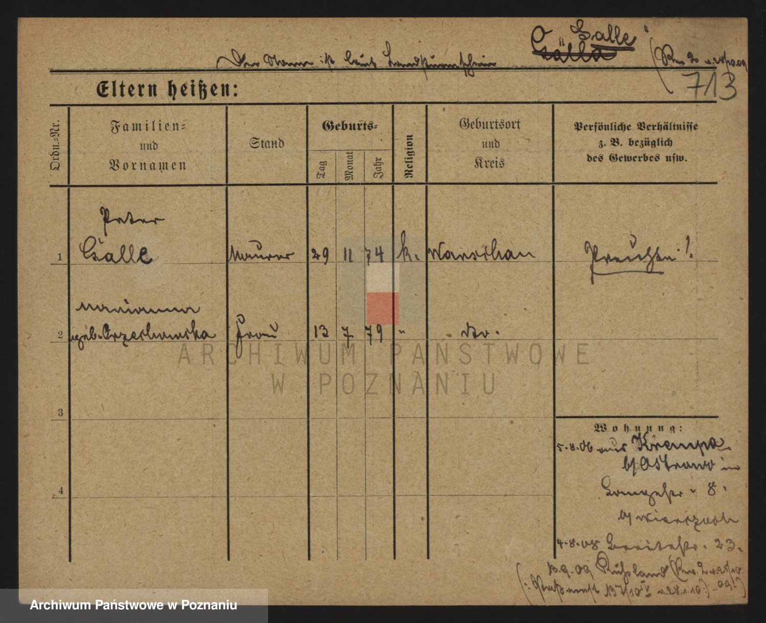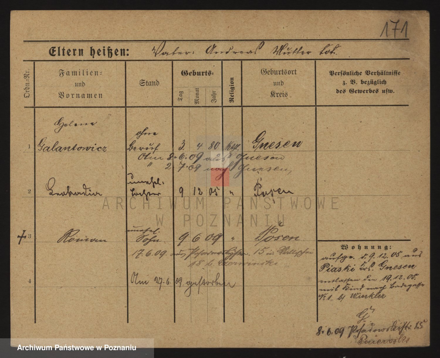 Podgląd karty osobowej dostępny jest po kliknięciu na nazwisko lub ikonkę karty. Można dokonywać powiększenia (ikony na górze) lub przechodzić między kolejnymi skanami (strzałki po bokach).