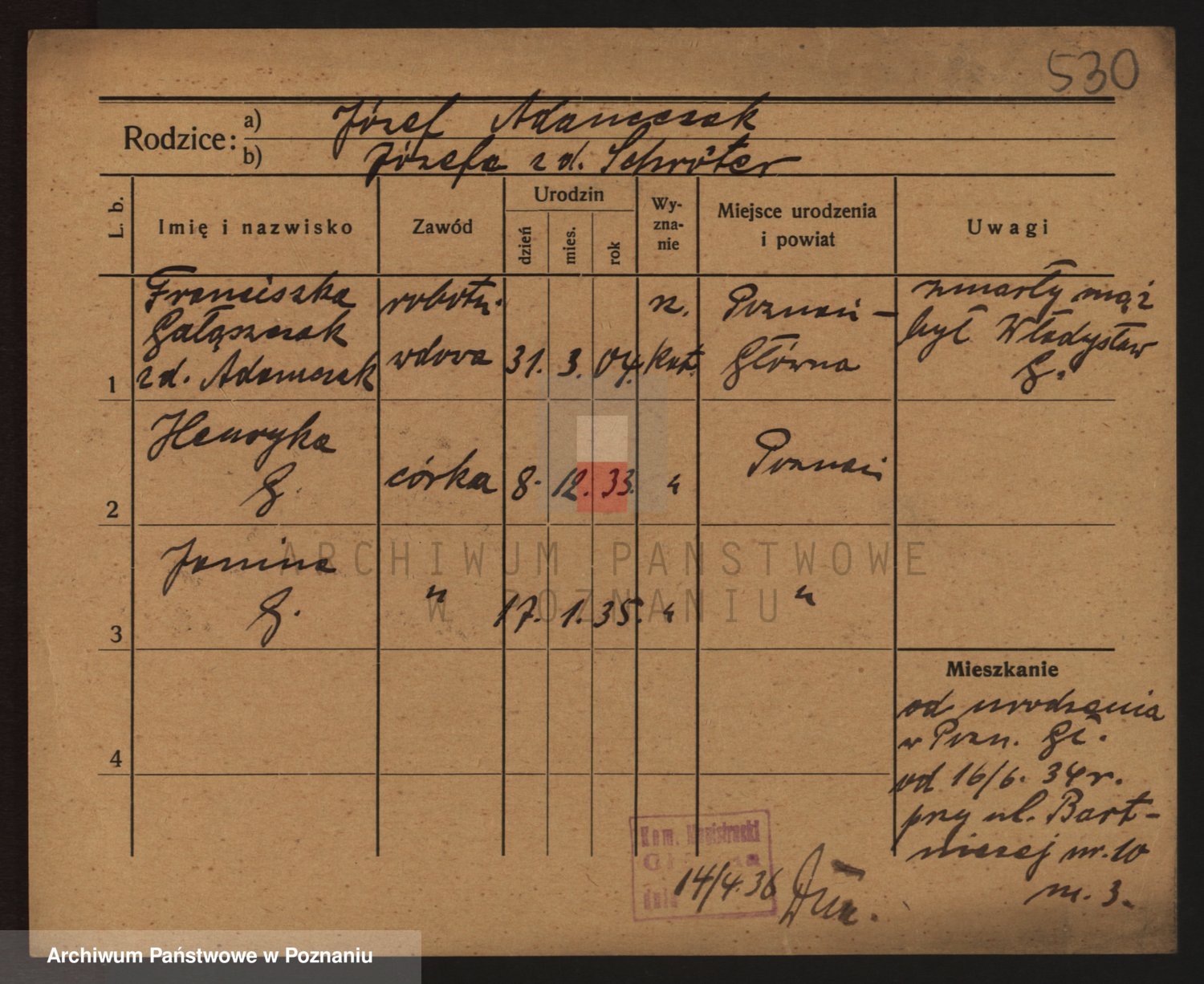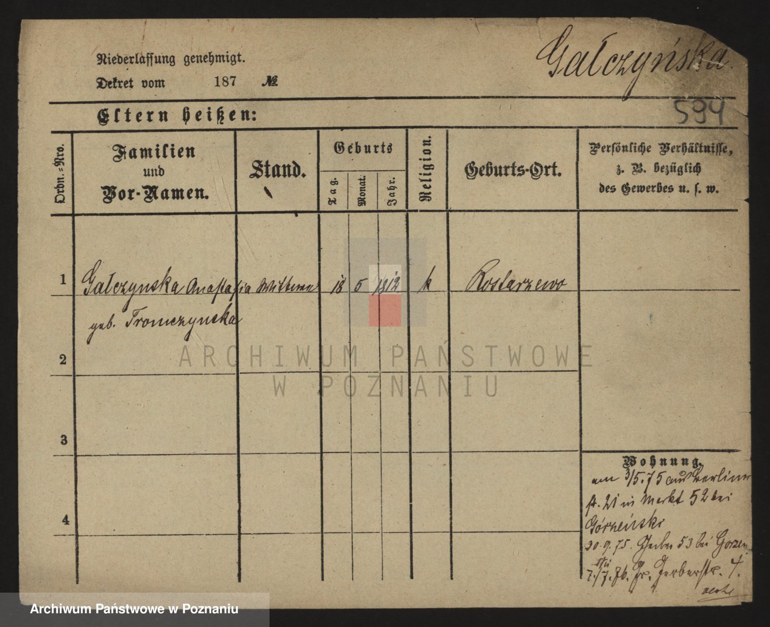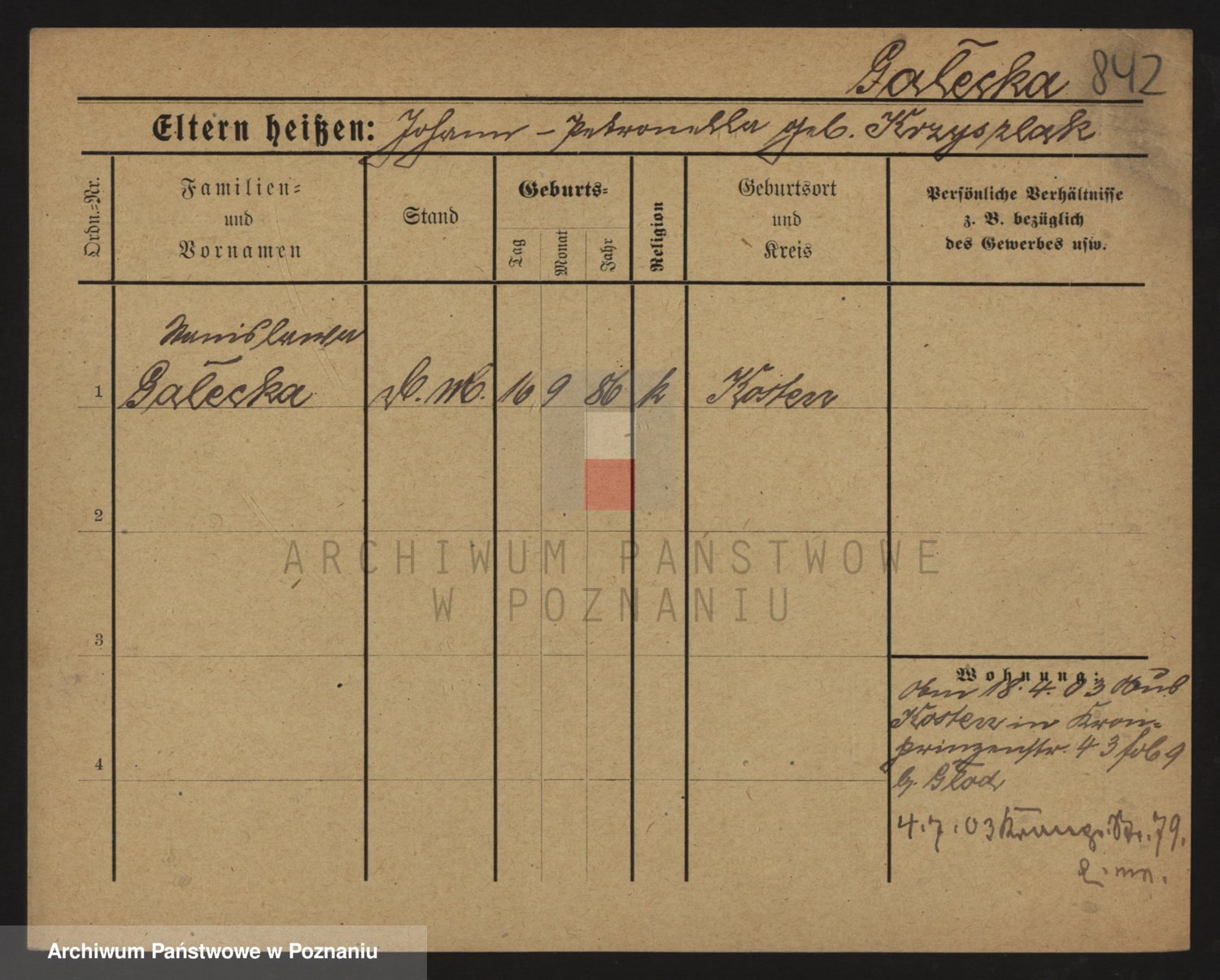 Galewski z.d.Adamska, Franziska