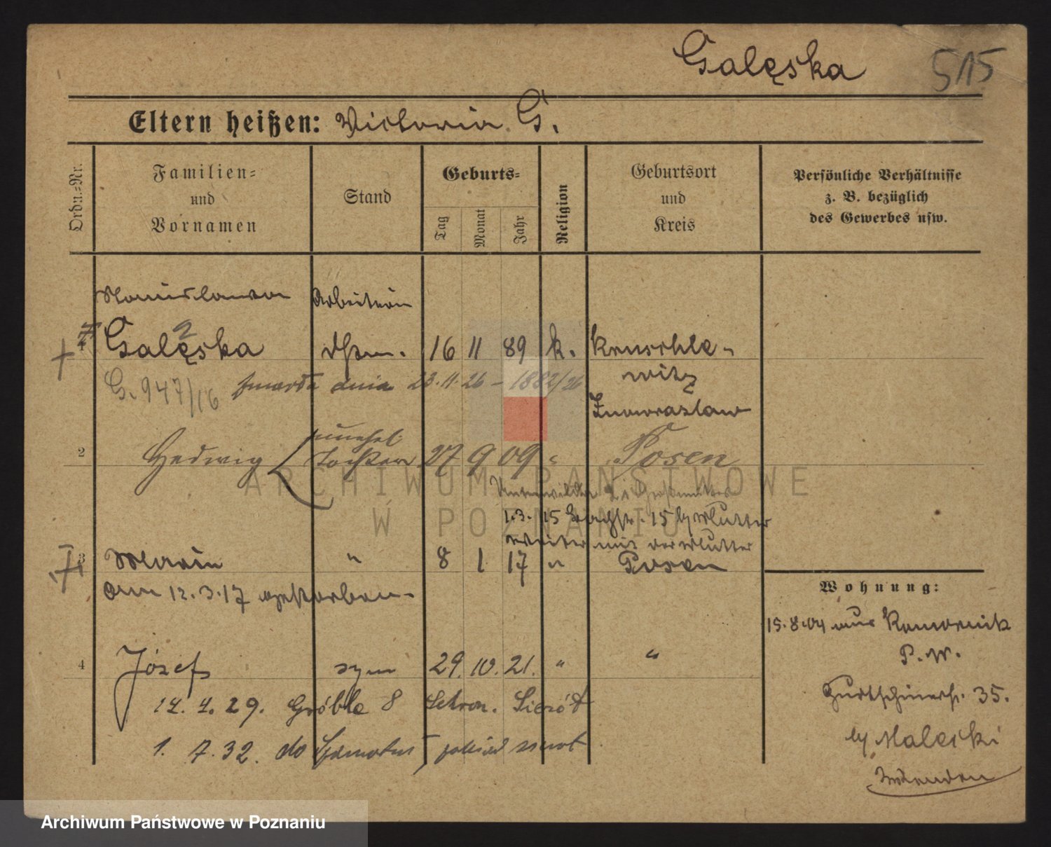 Galewski z.d.Kolińska, Józefa