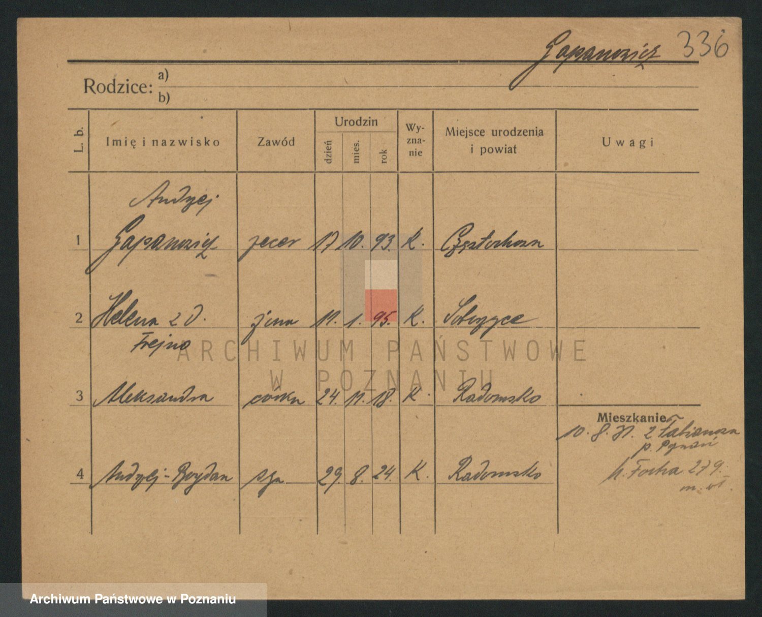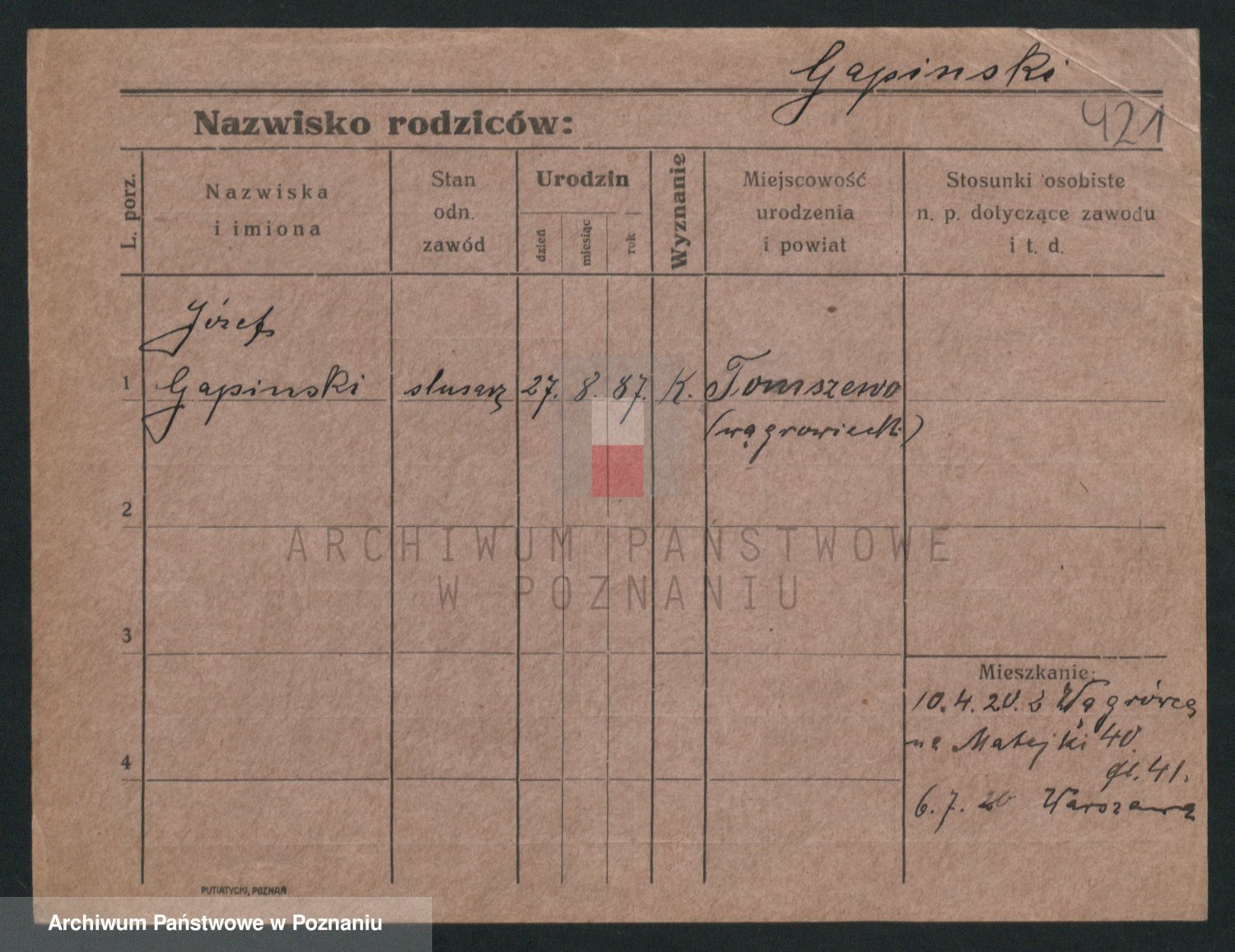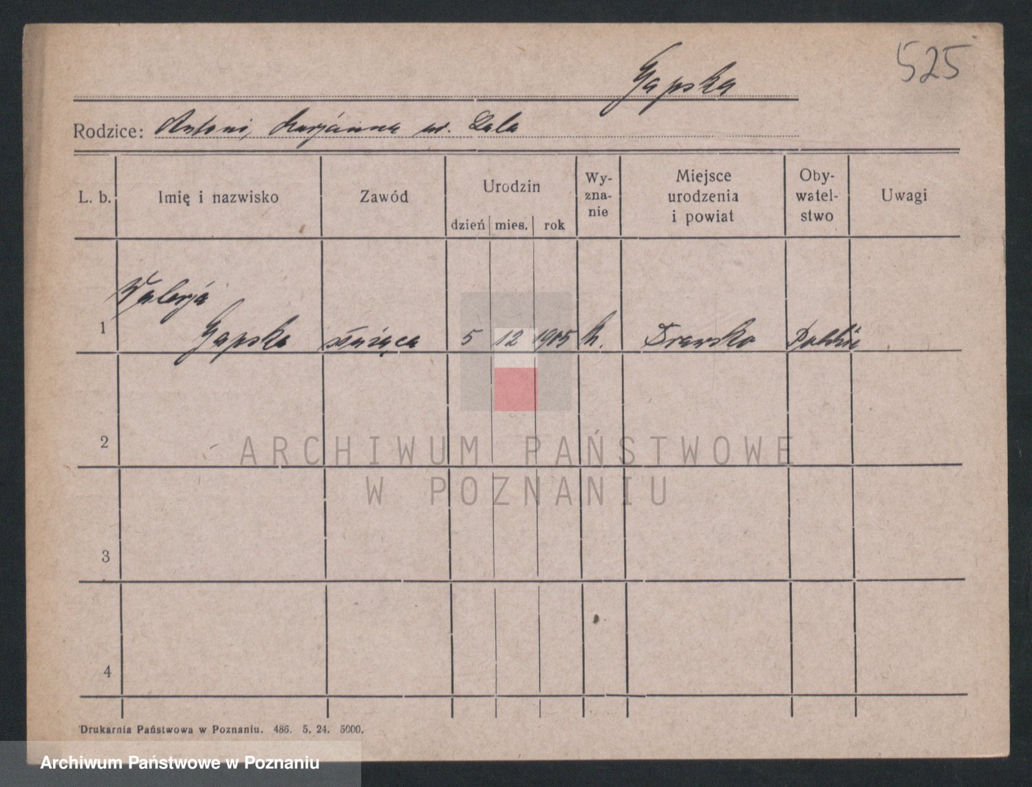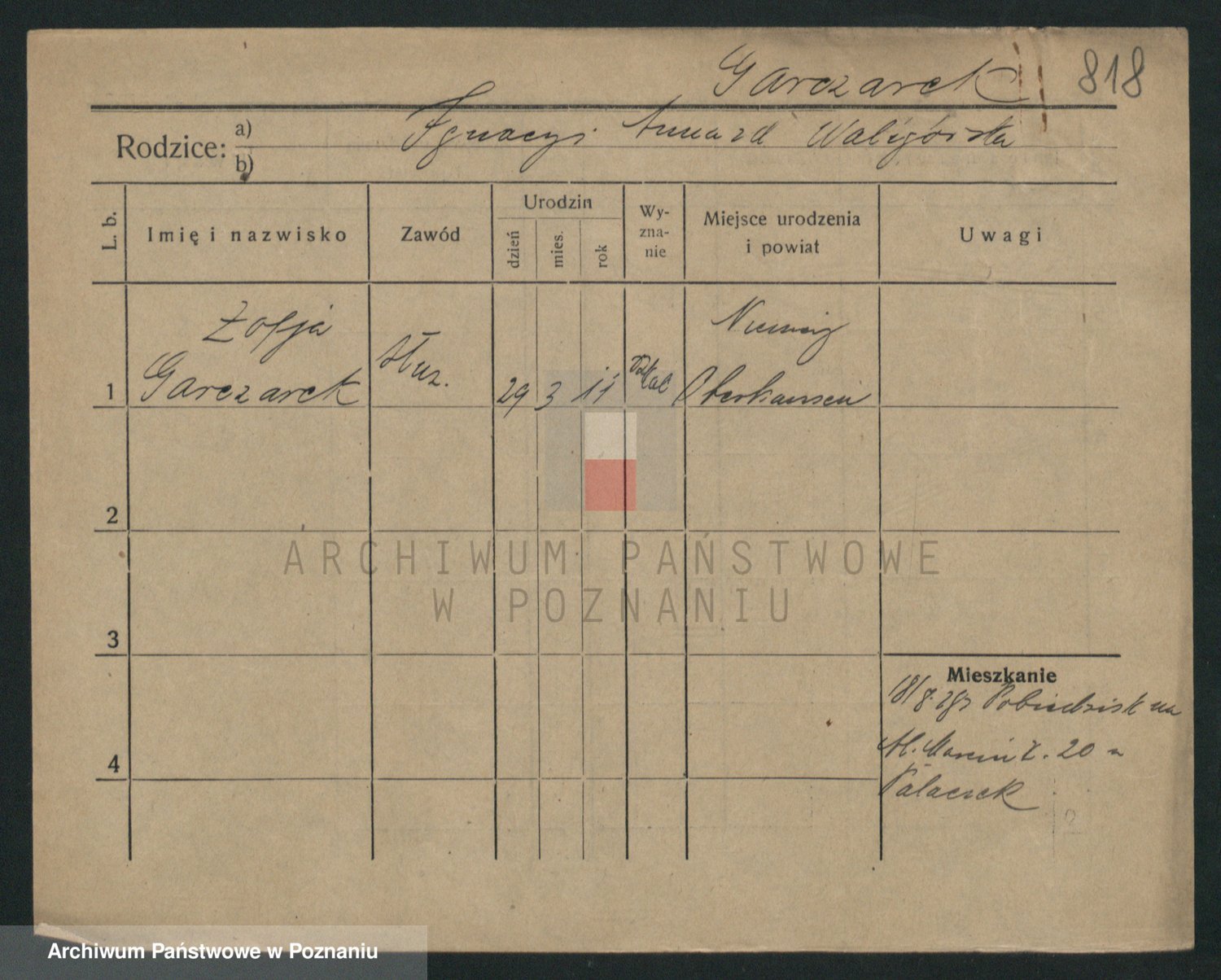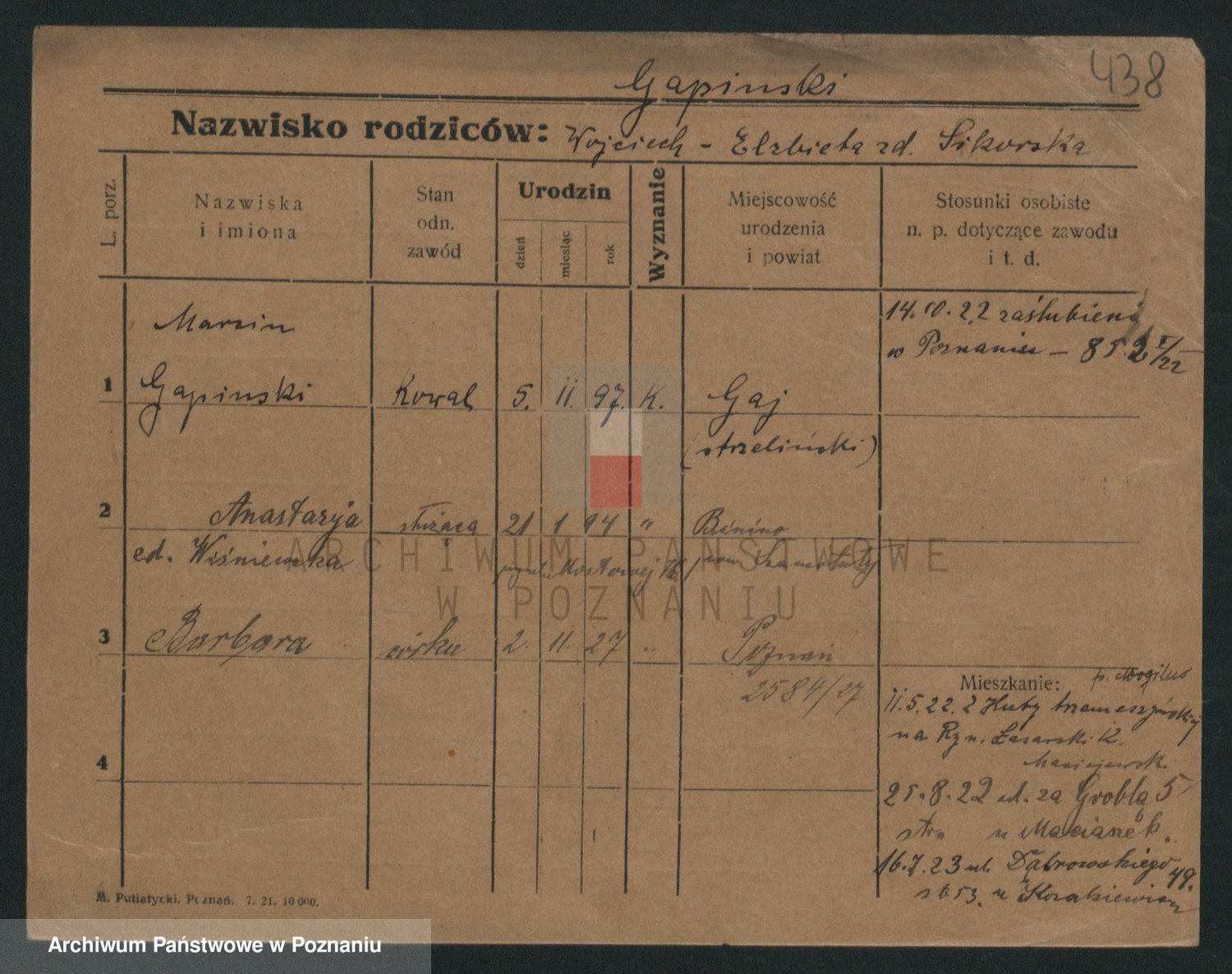 Podgląd karty osobowej dostępny jest po kliknięciu na nazwisko lub ikonkę karty. Można dokonywać powiększenia (ikony na górze) lub przechodzić między kolejnymi skanami (strzałki po bokach).