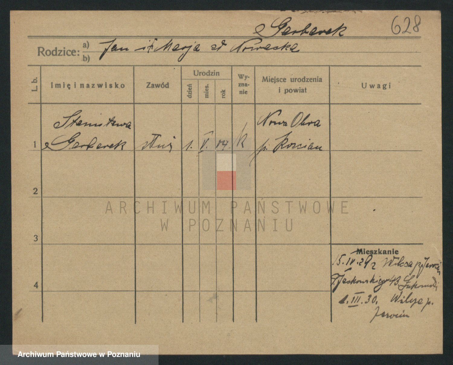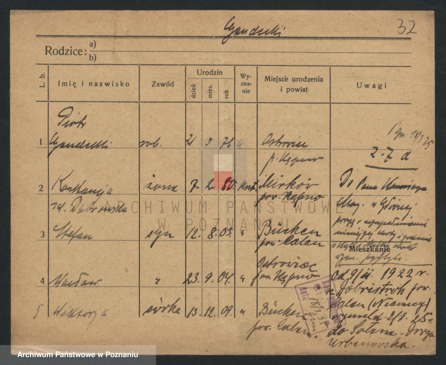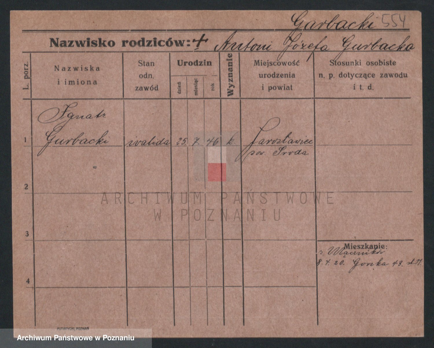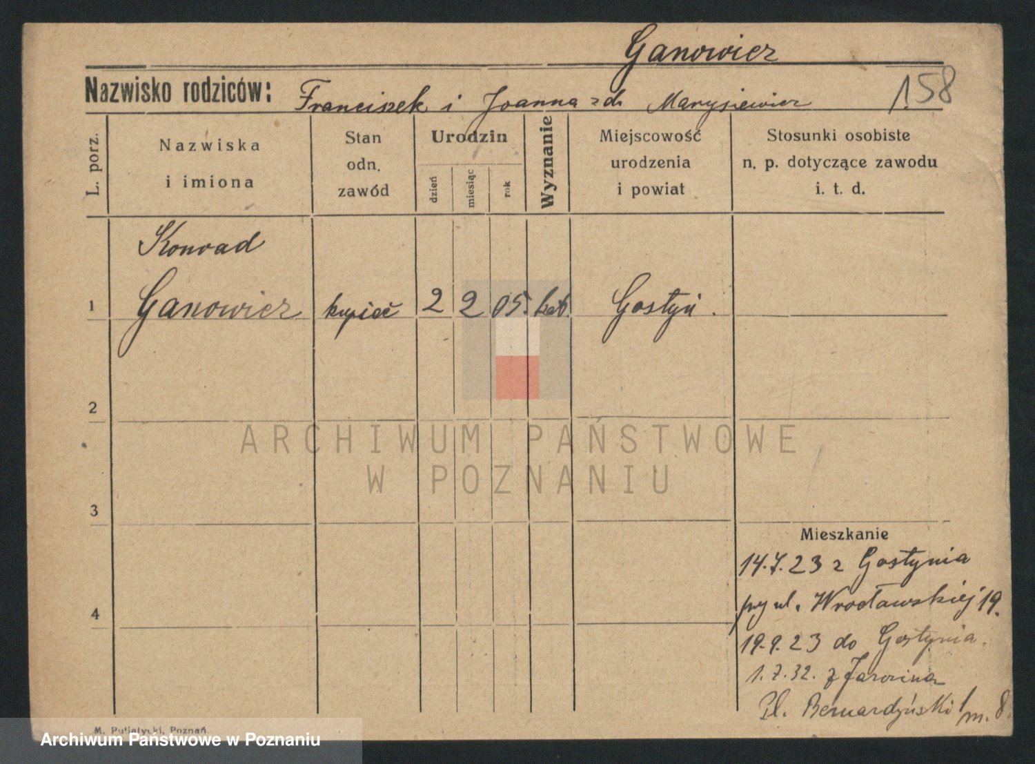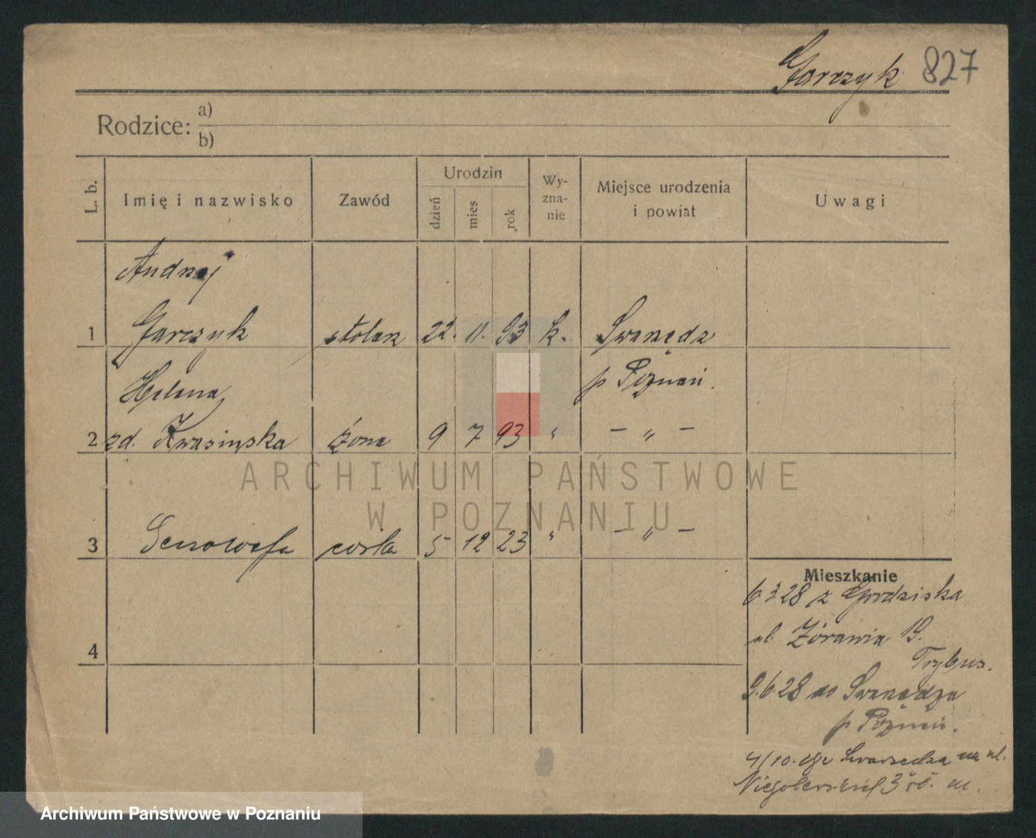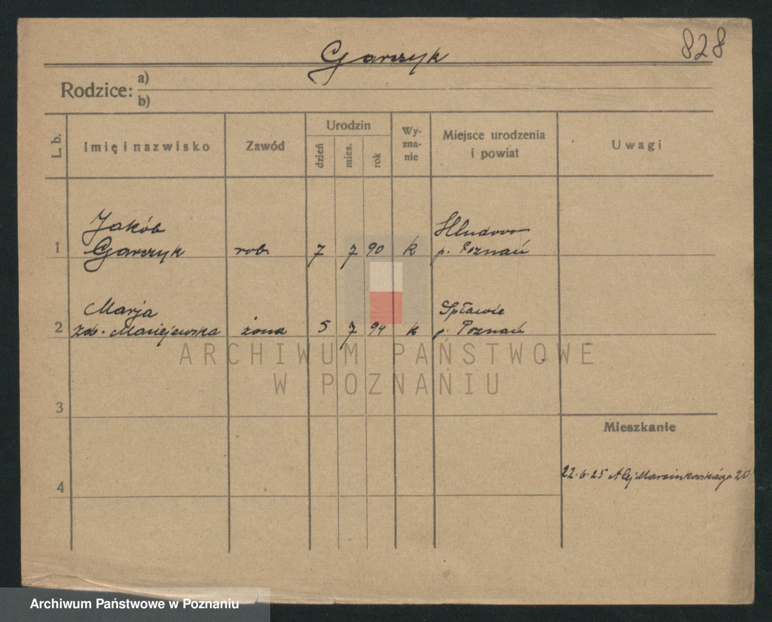 Podgląd karty osobowej dostępny jest po kliknięciu na nazwisko lub ikonkę karty. Można dokonywać powiększenia (ikony na górze) lub przechodzić między kolejnymi skanami (strzałki po bokach).