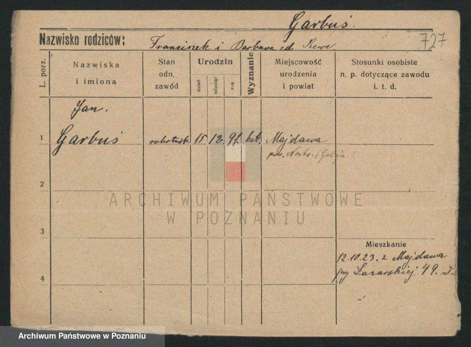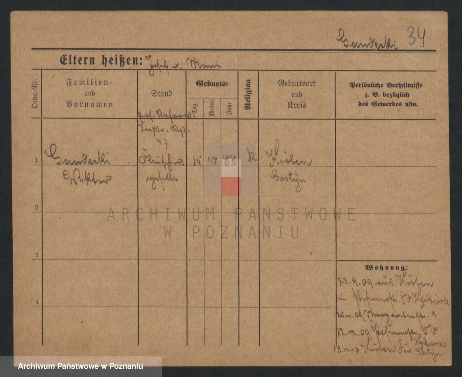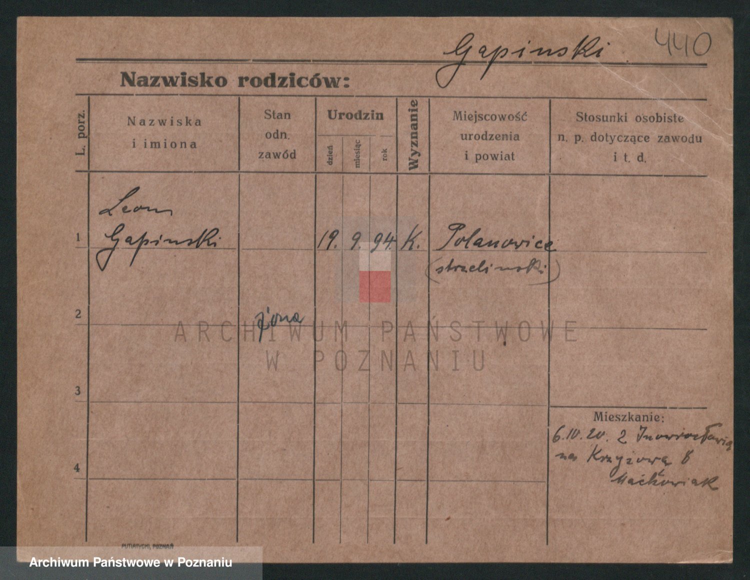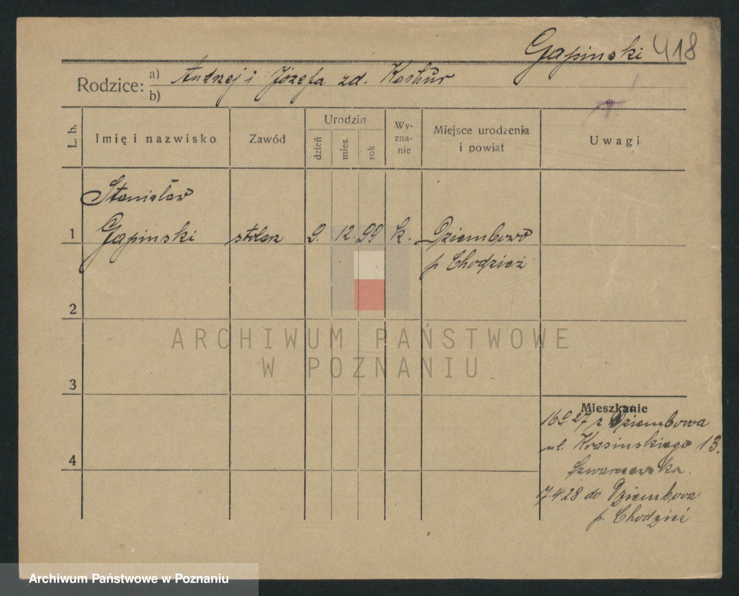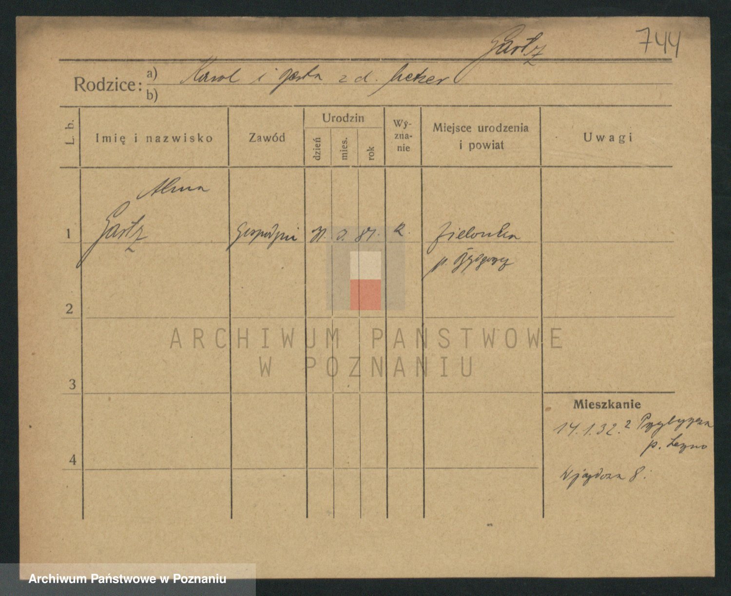 Podgląd karty osobowej dostępny jest po kliknięciu na nazwisko lub ikonkę karty. Można dokonywać powiększenia (ikony na górze) lub przechodzić między kolejnymi skanami (strzałki po bokach).