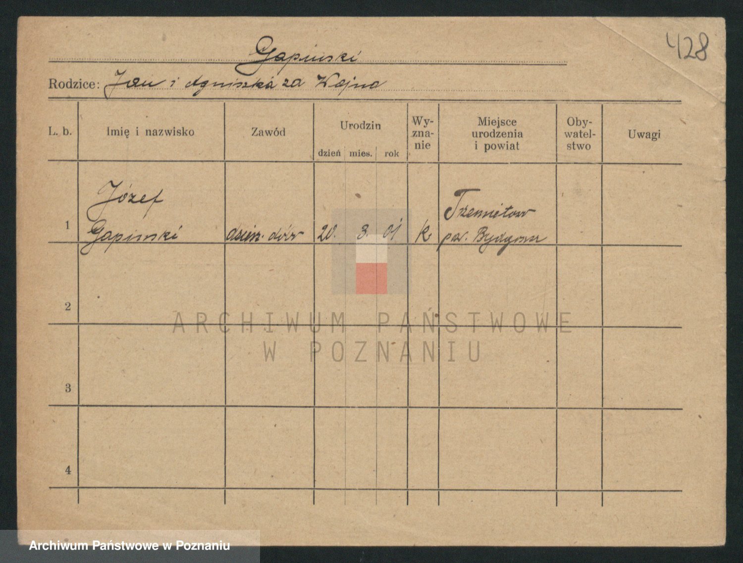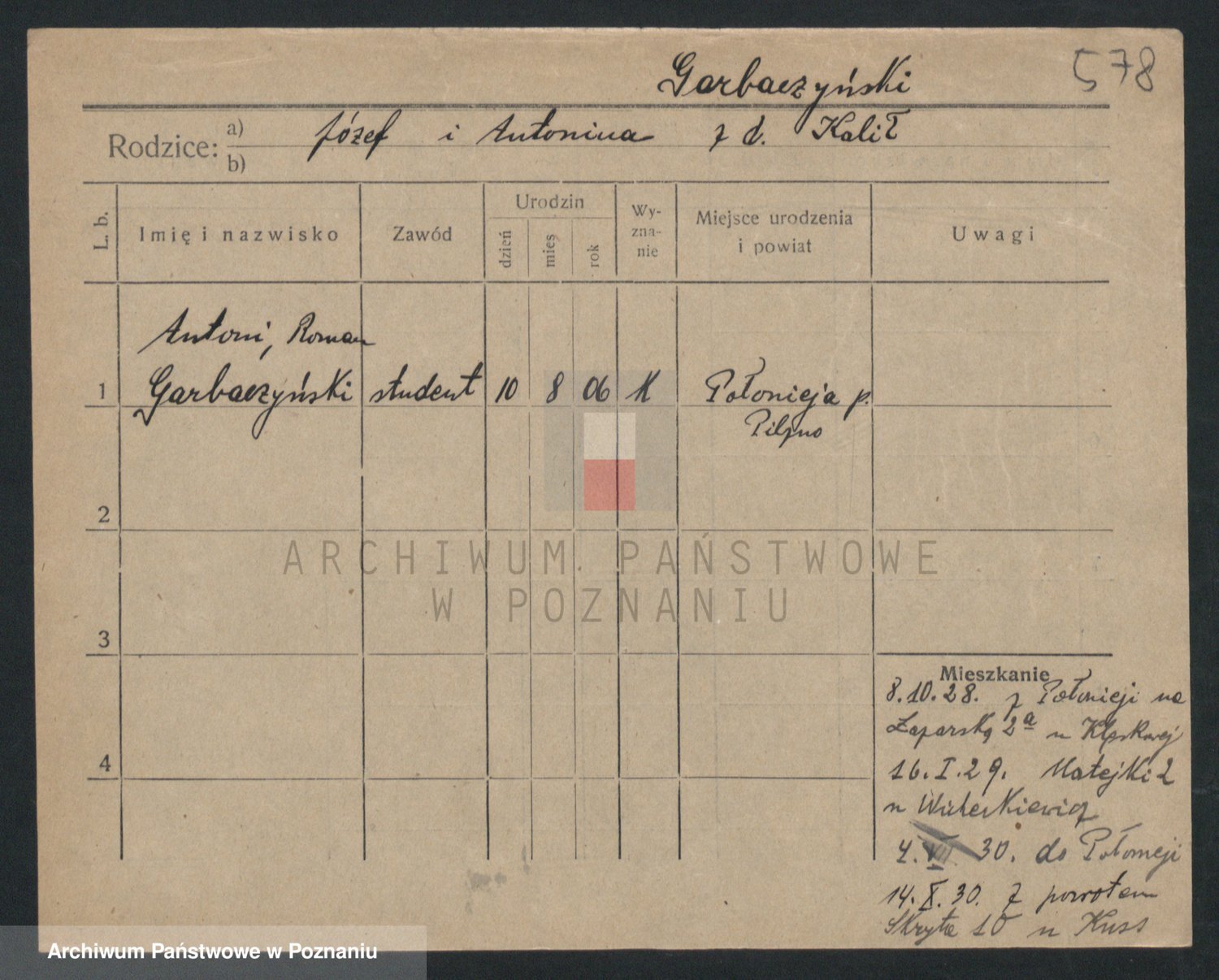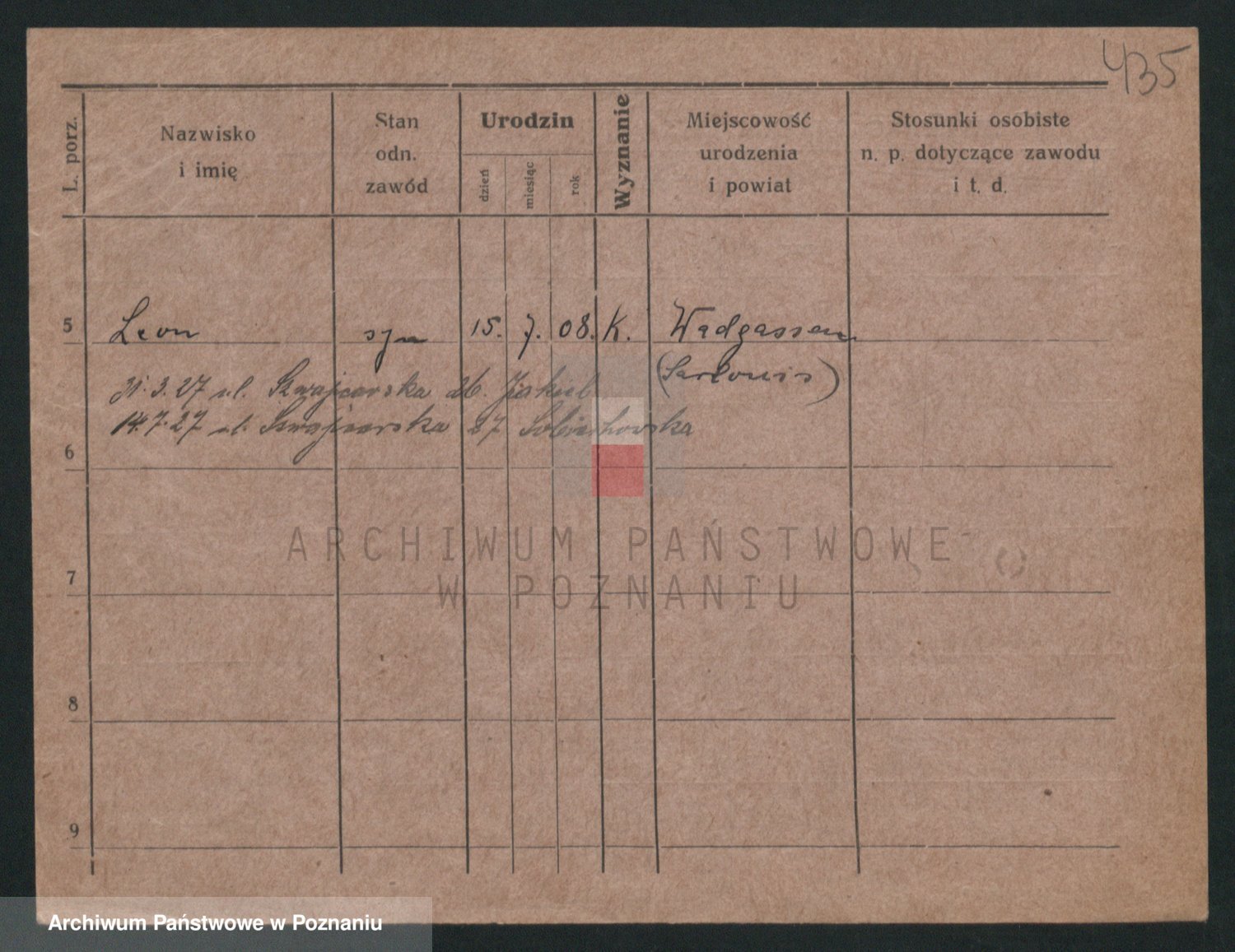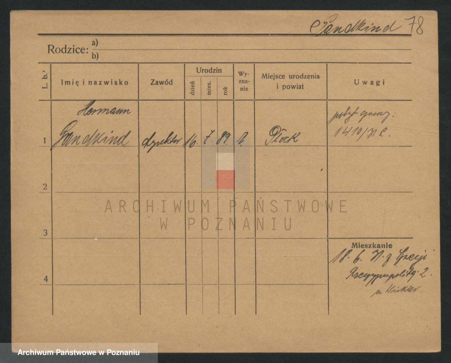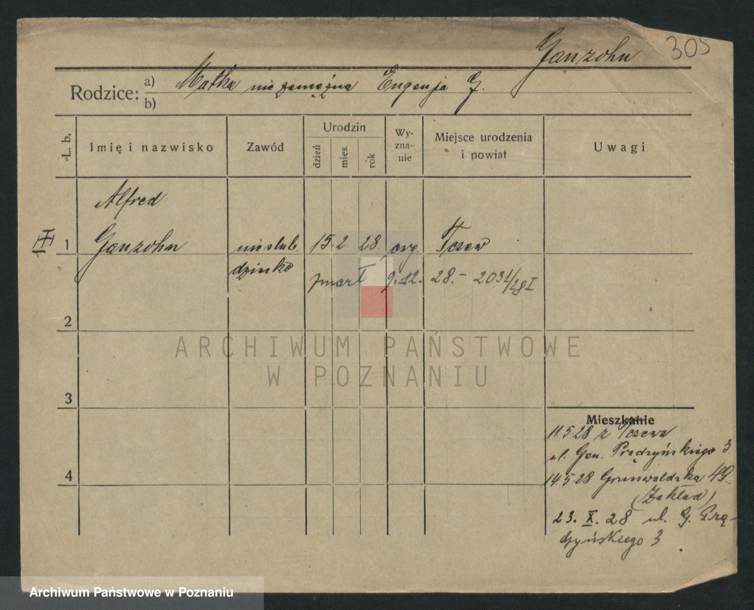 Podgląd karty osobowej dostępny jest po kliknięciu na nazwisko lub ikonkę karty. Można dokonywać powiększenia (ikony na górze) lub przechodzić między kolejnymi skanami (strzałki po bokach).