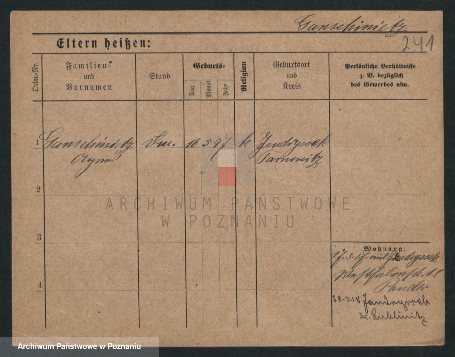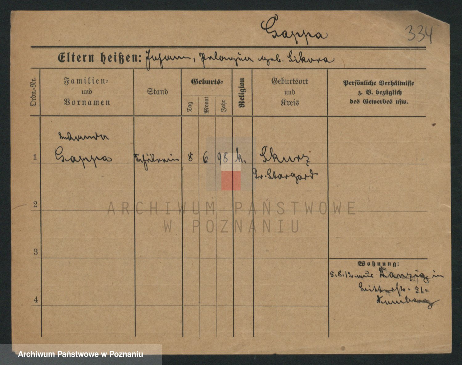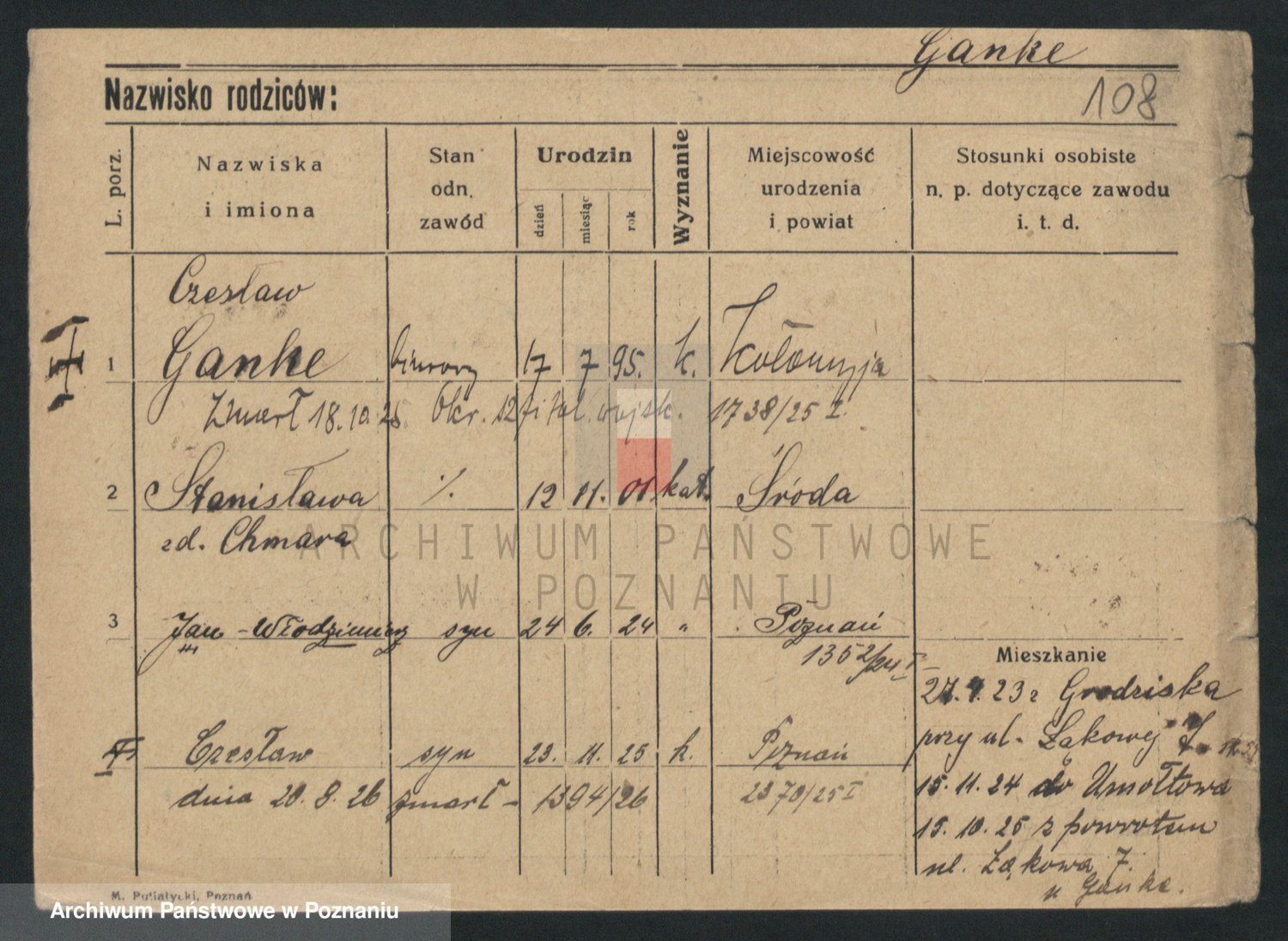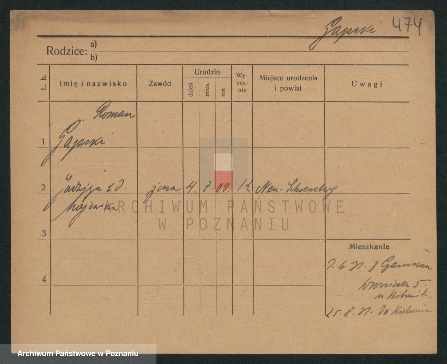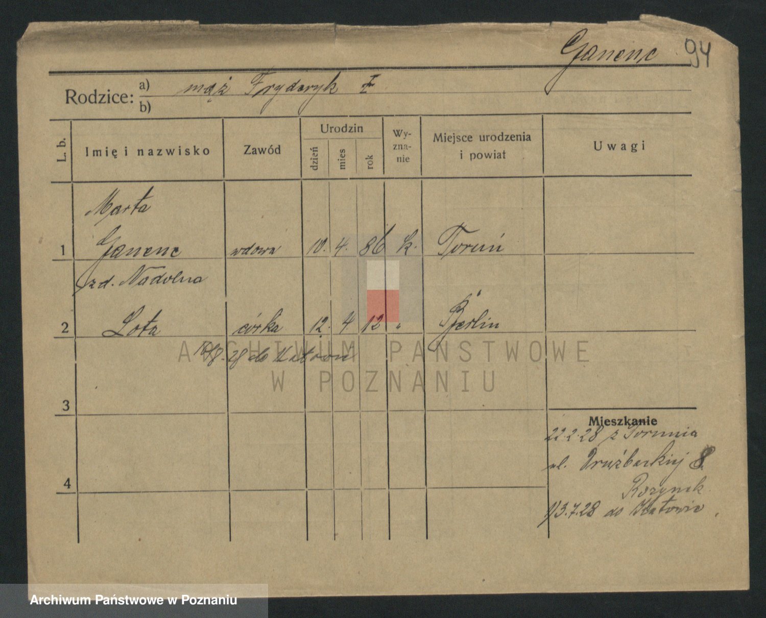 Podgląd karty osobowej dostępny jest po kliknięciu na nazwisko lub ikonkę karty. Można dokonywać powiększenia (ikony na górze) lub przechodzić między kolejnymi skanami (strzałki po bokach).