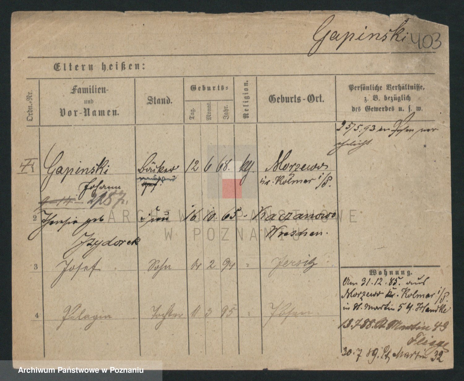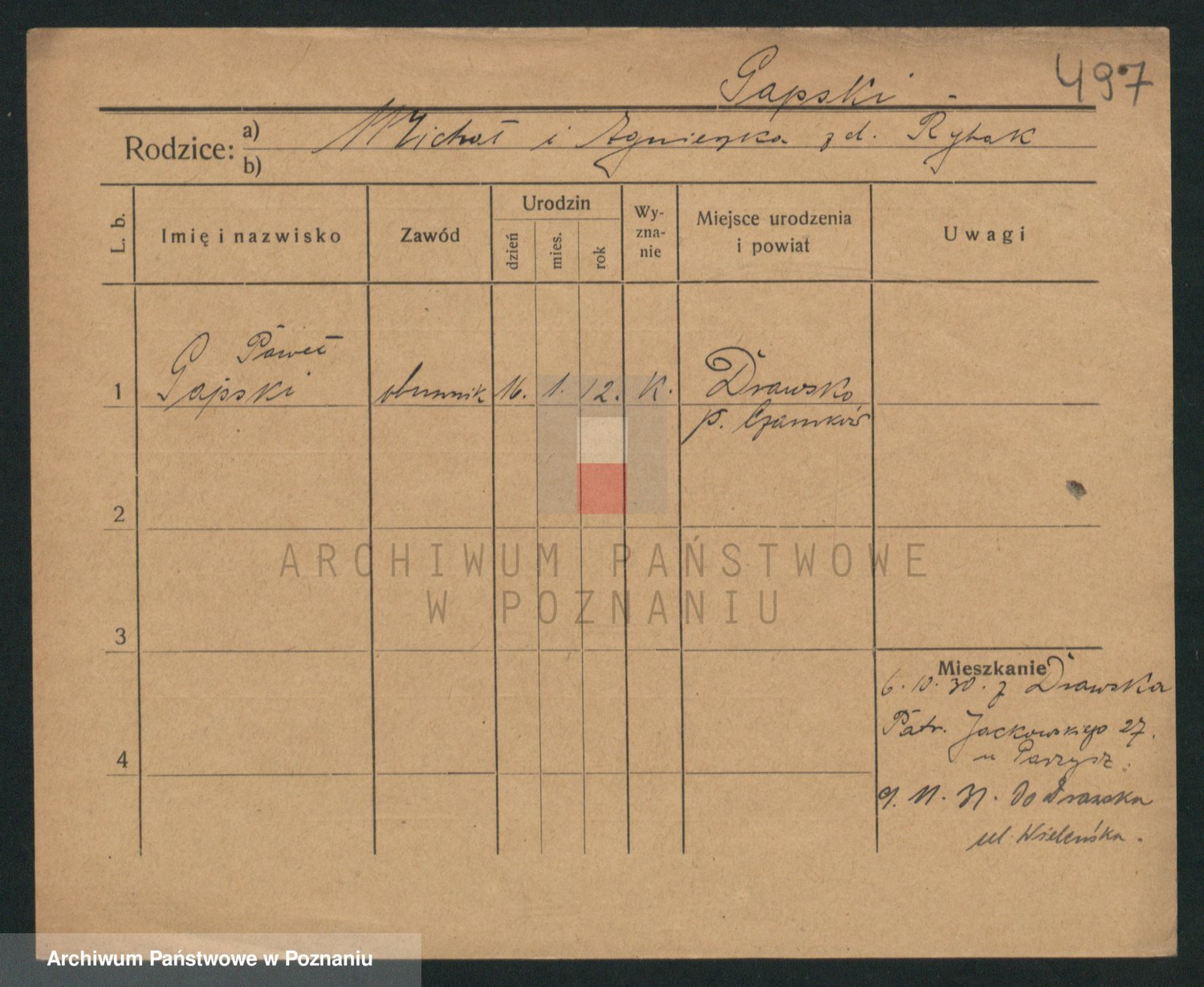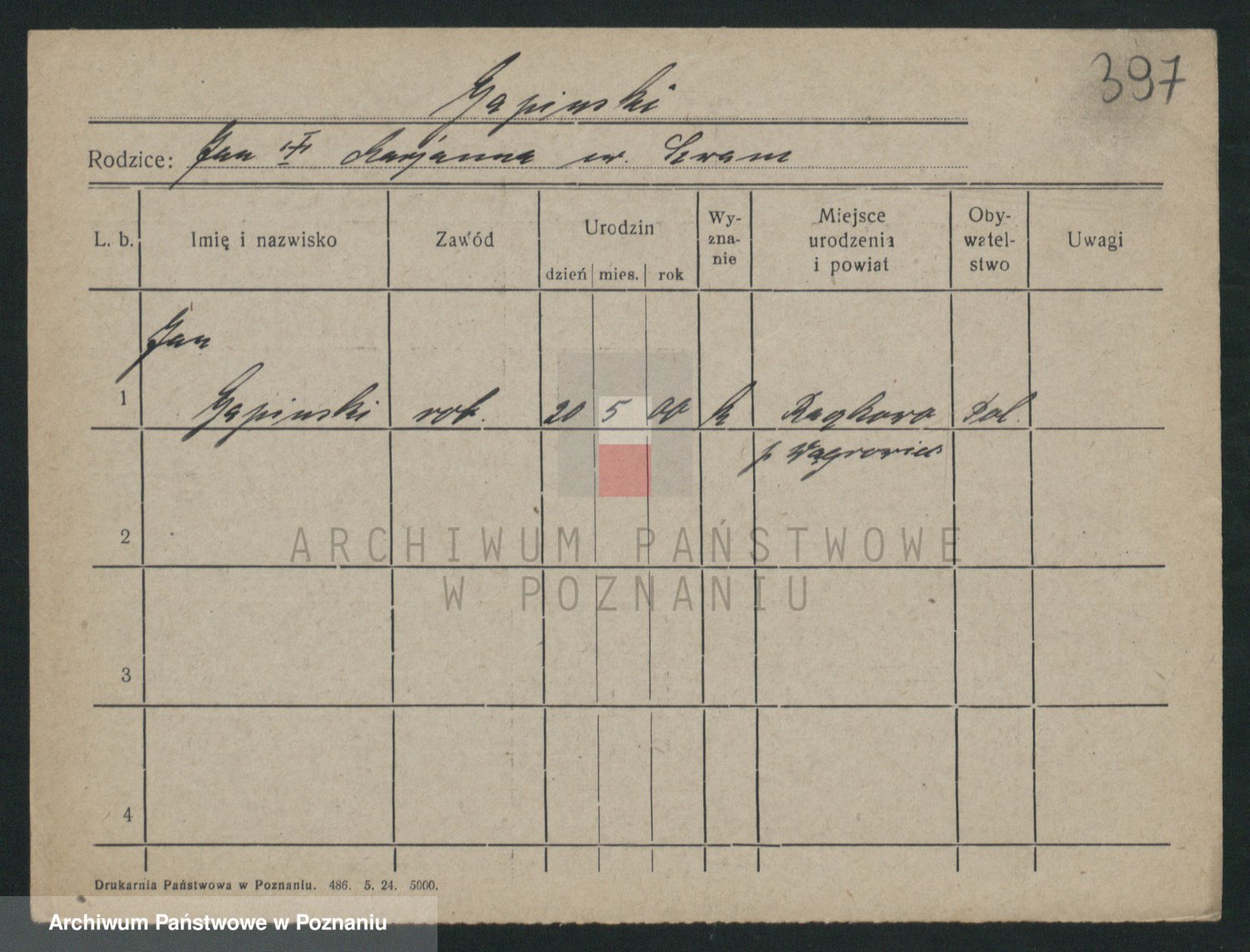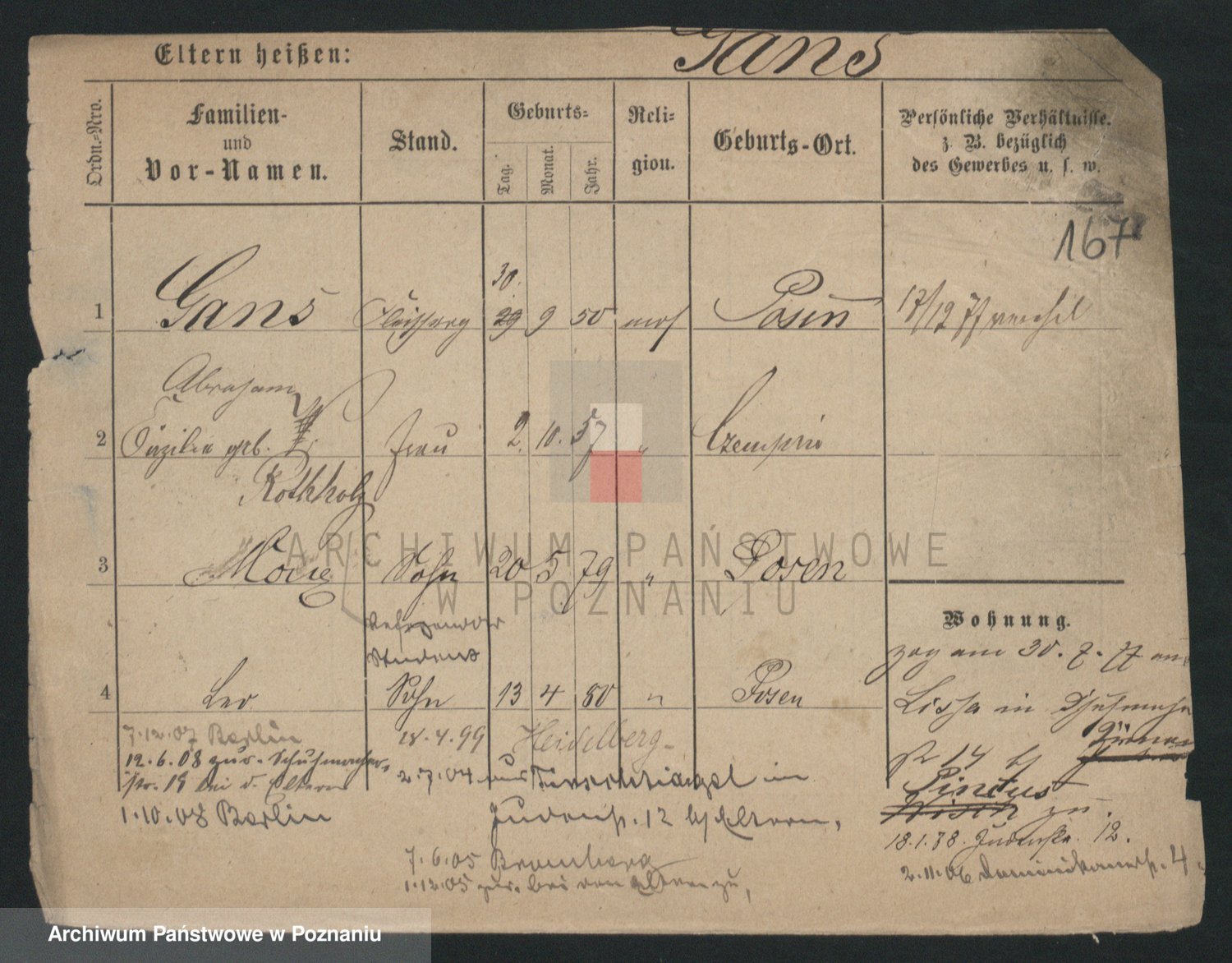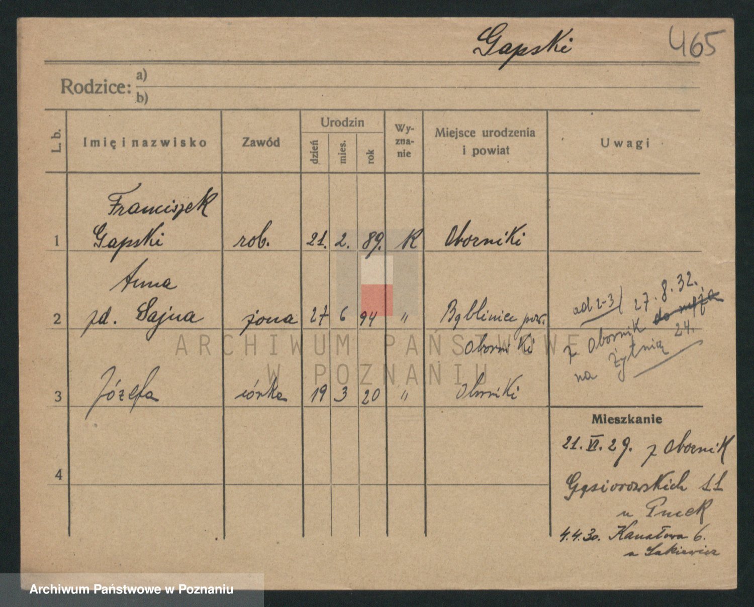 Podgląd karty osobowej dostępny jest po kliknięciu na nazwisko lub ikonkę karty. Można dokonywać powiększenia (ikony na górze) lub przechodzić między kolejnymi skanami (strzałki po bokach).