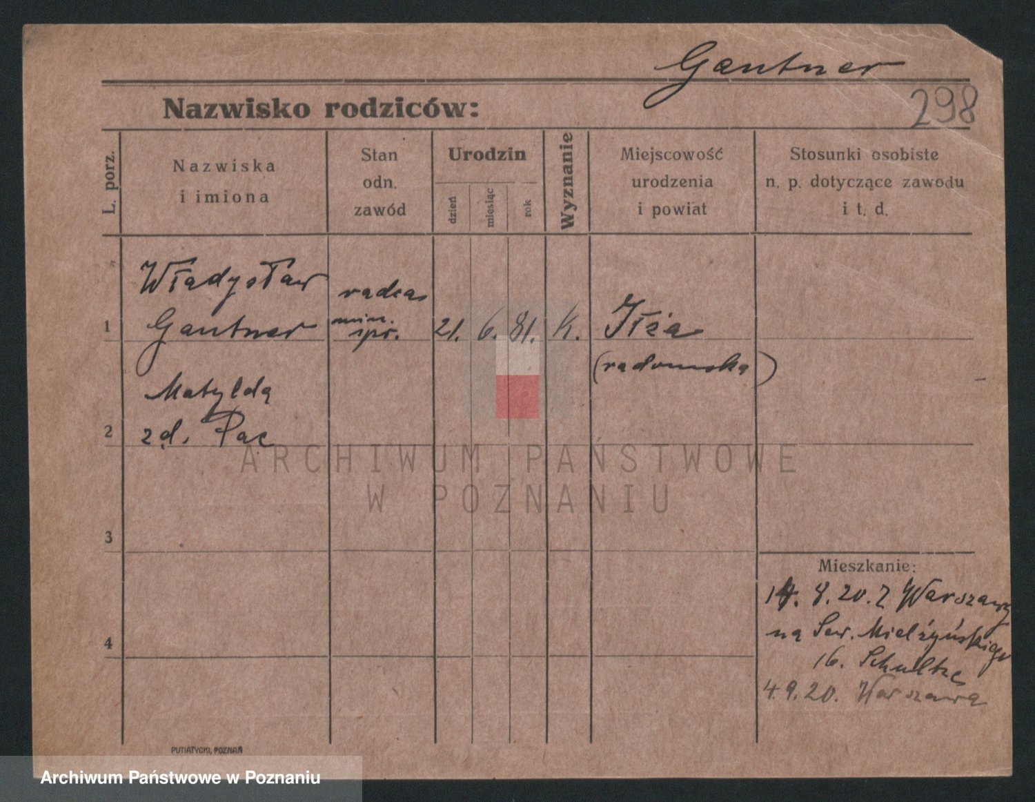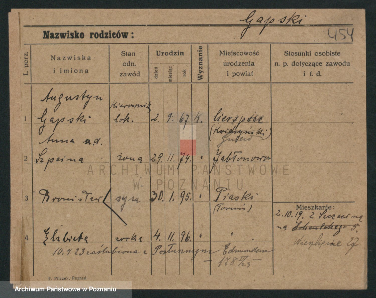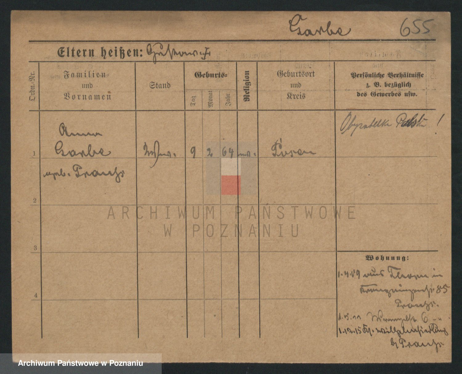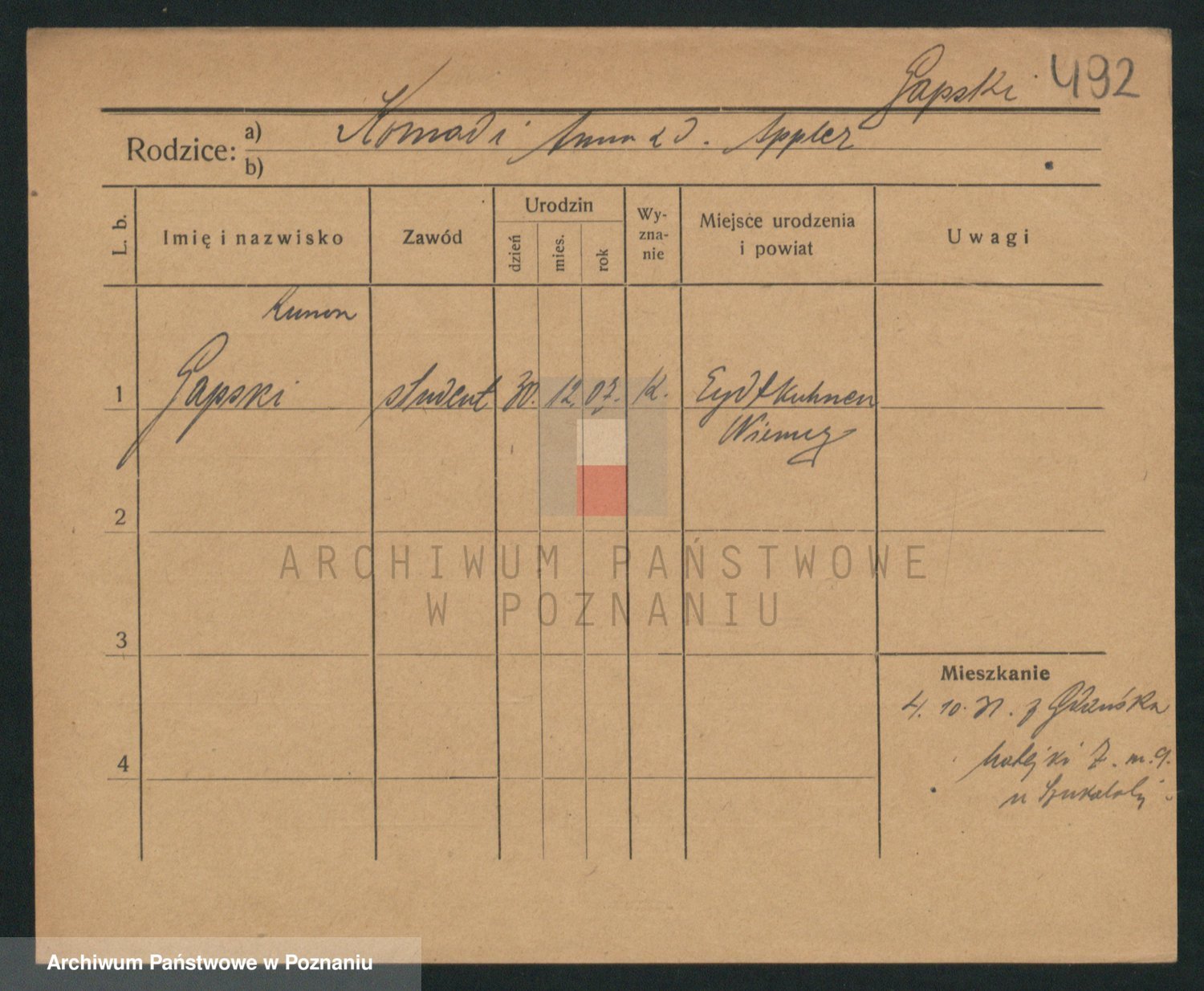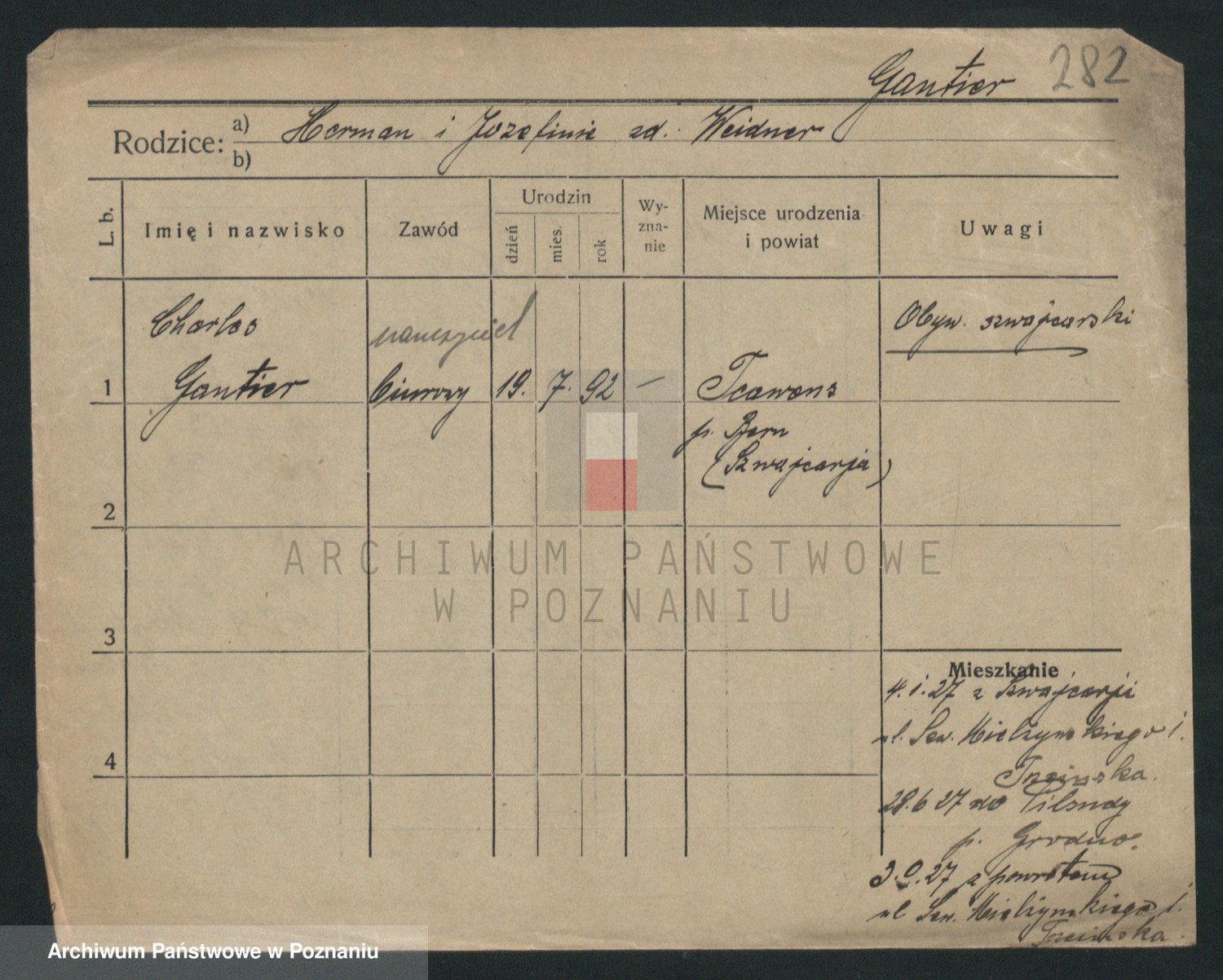 Podgląd karty osobowej dostępny jest po kliknięciu na nazwisko lub ikonkę karty. Można dokonywać powiększenia (ikony na górze) lub przechodzić między kolejnymi skanami (strzałki po bokach).