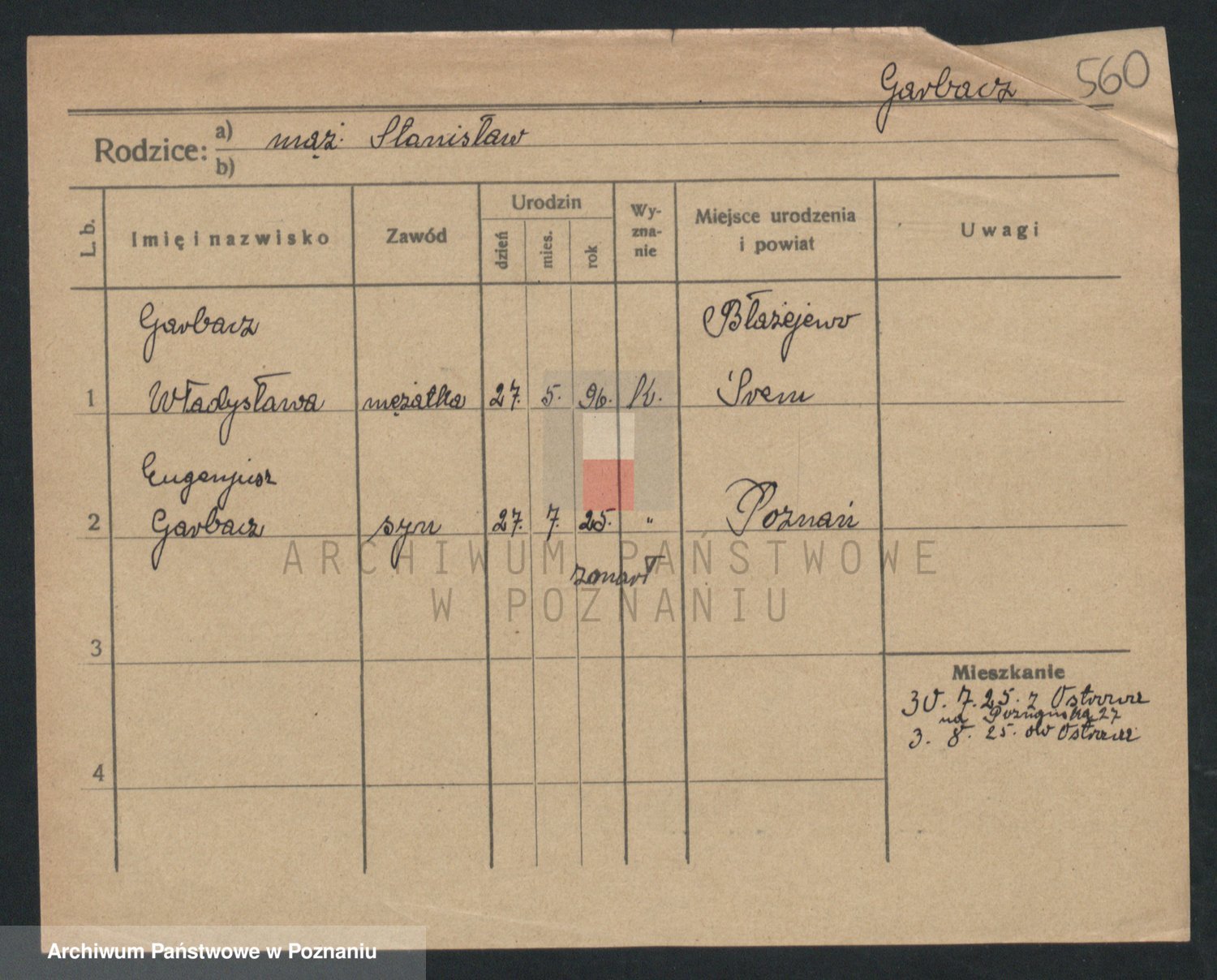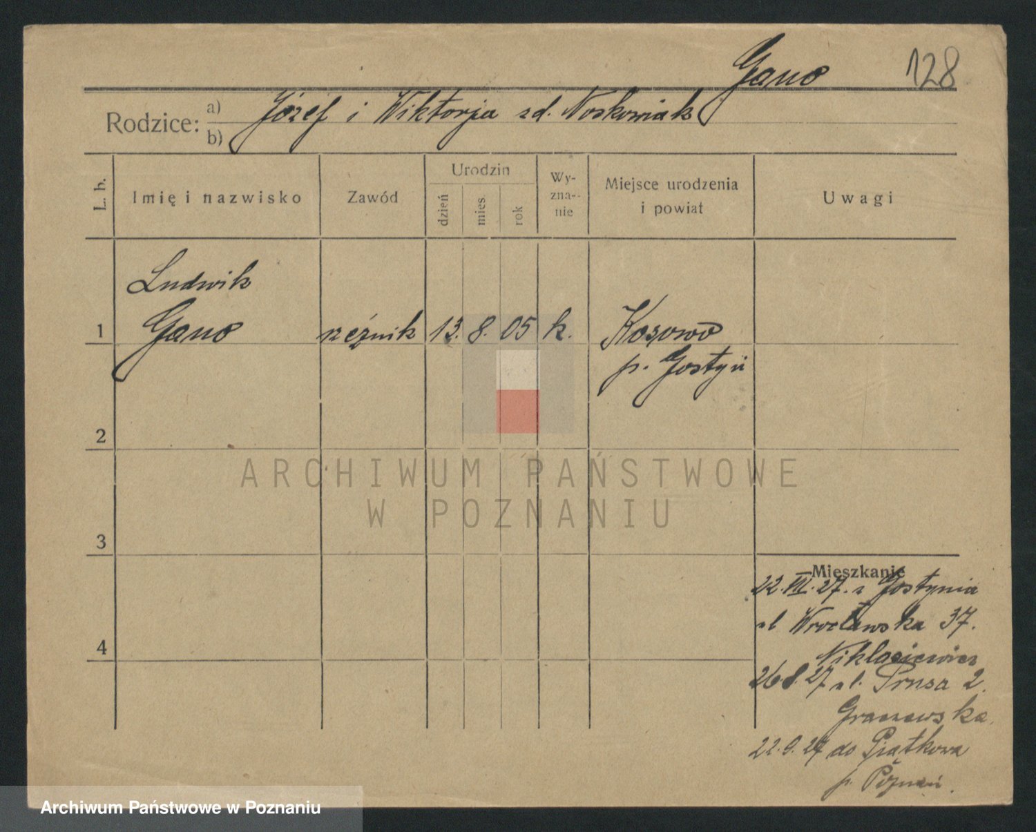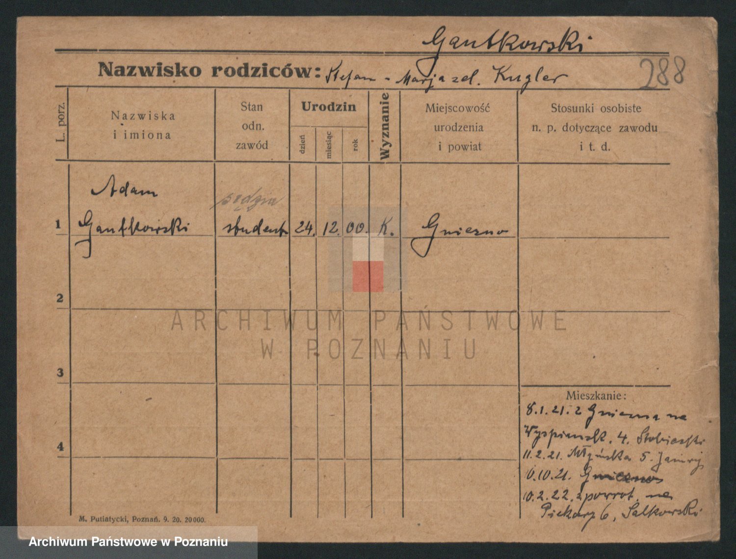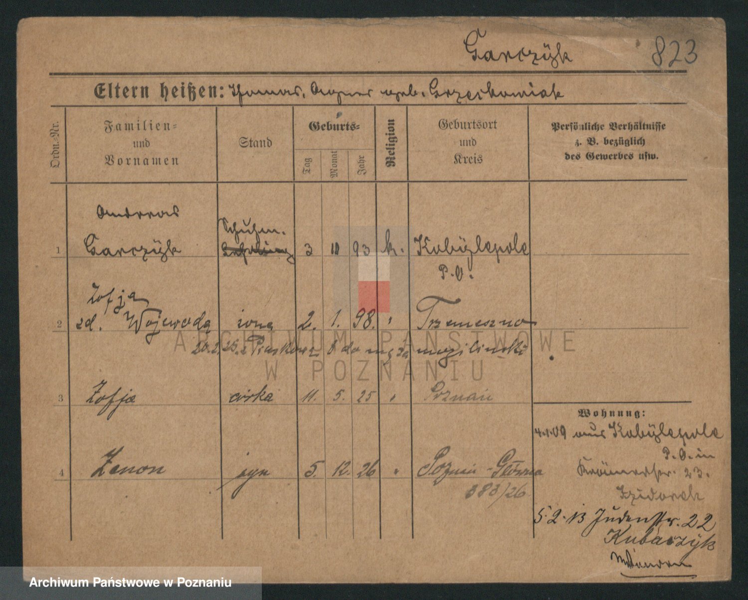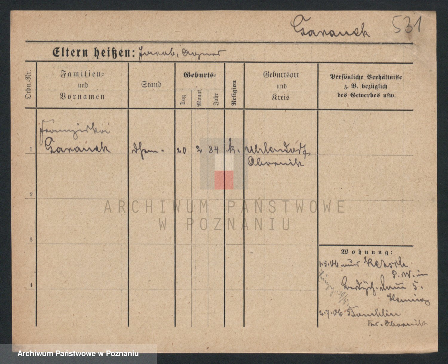 Podgląd karty osobowej dostępny jest po kliknięciu na nazwisko lub ikonkę karty. Można dokonywać powiększenia (ikony na górze) lub przechodzić między kolejnymi skanami (strzałki po bokach).