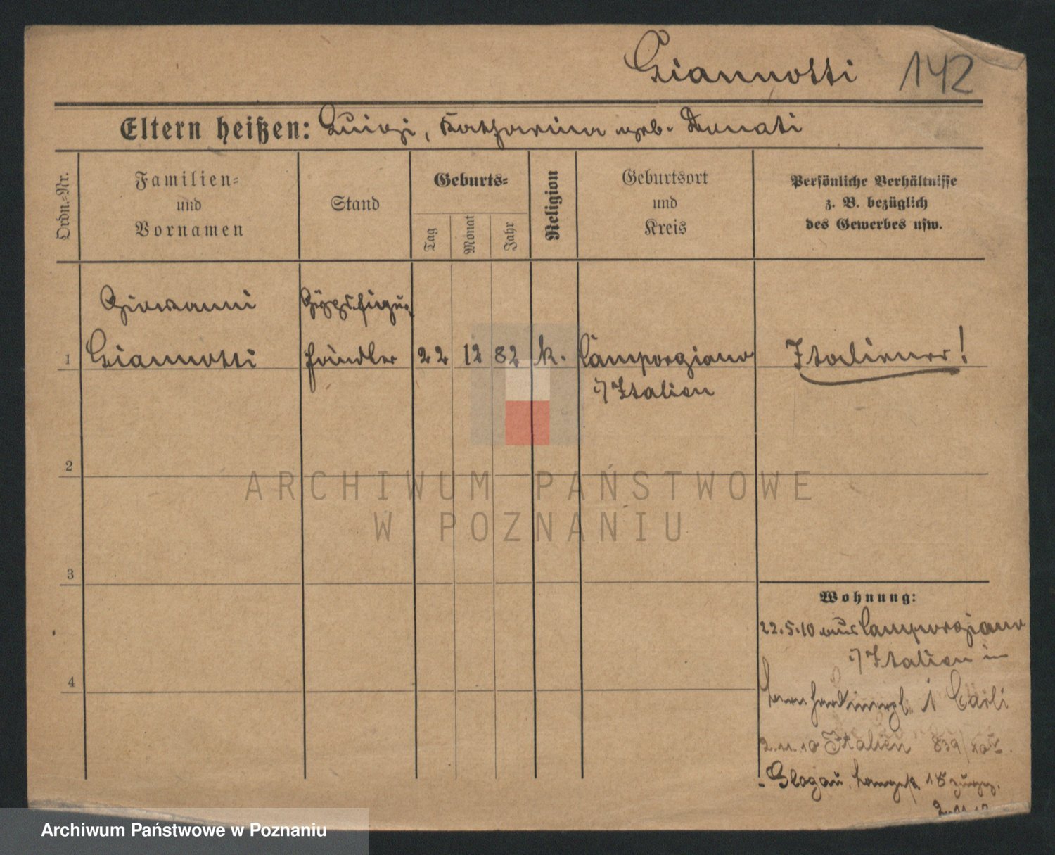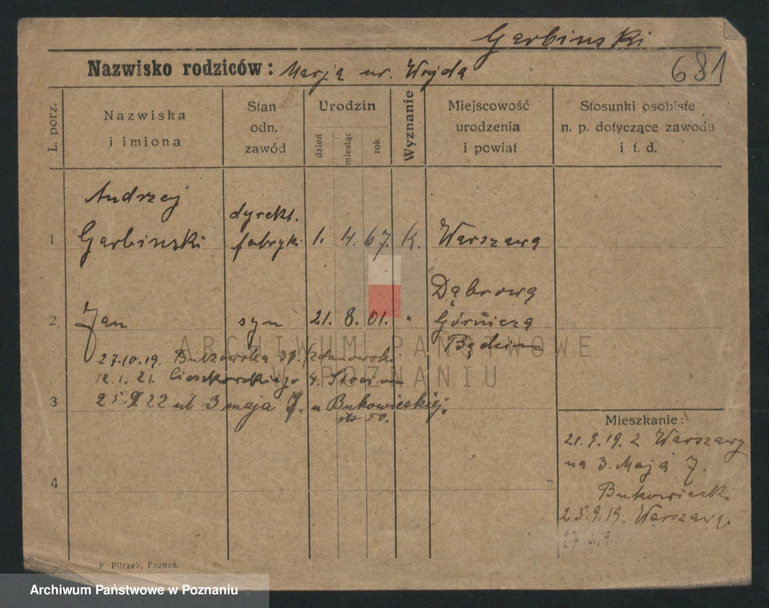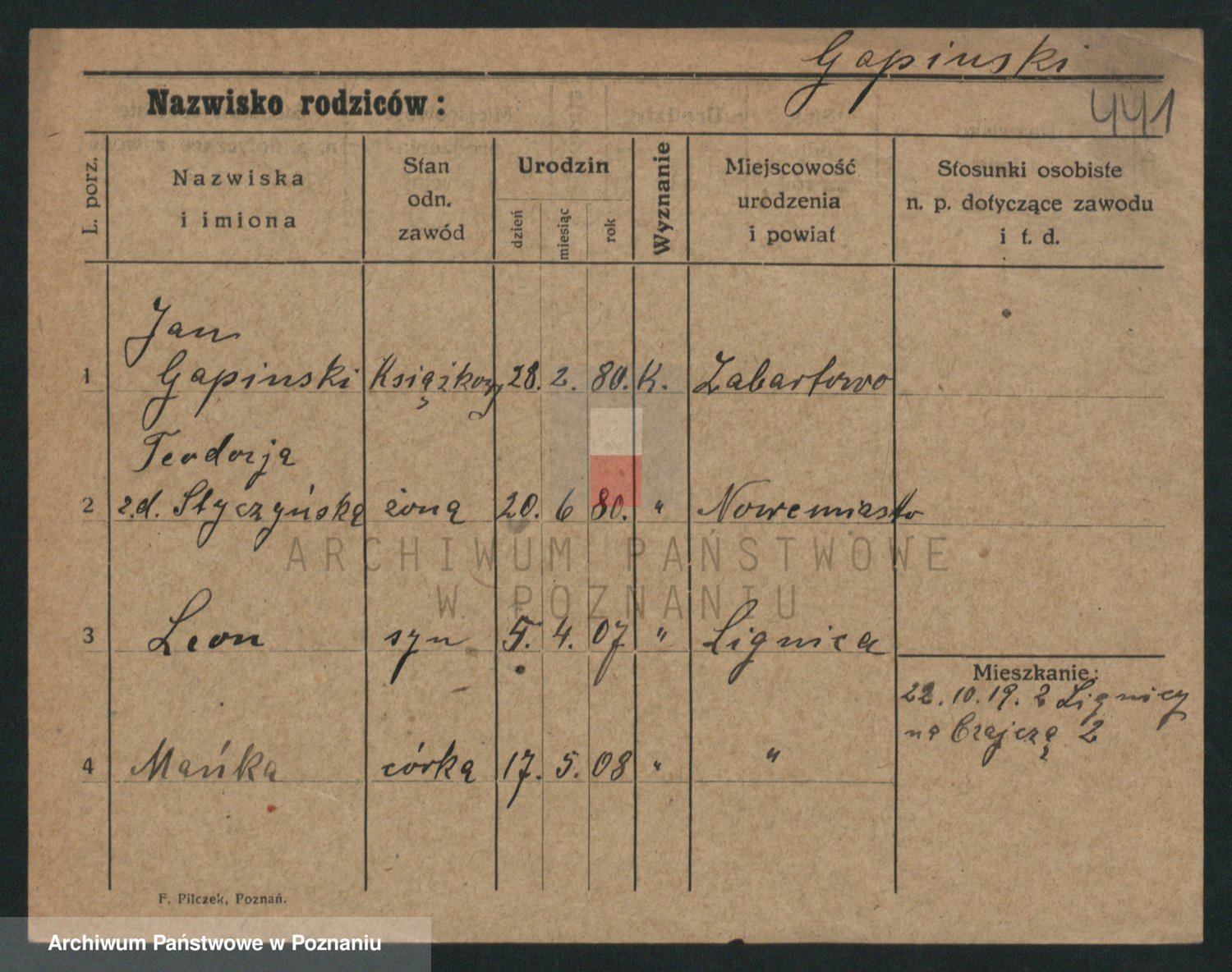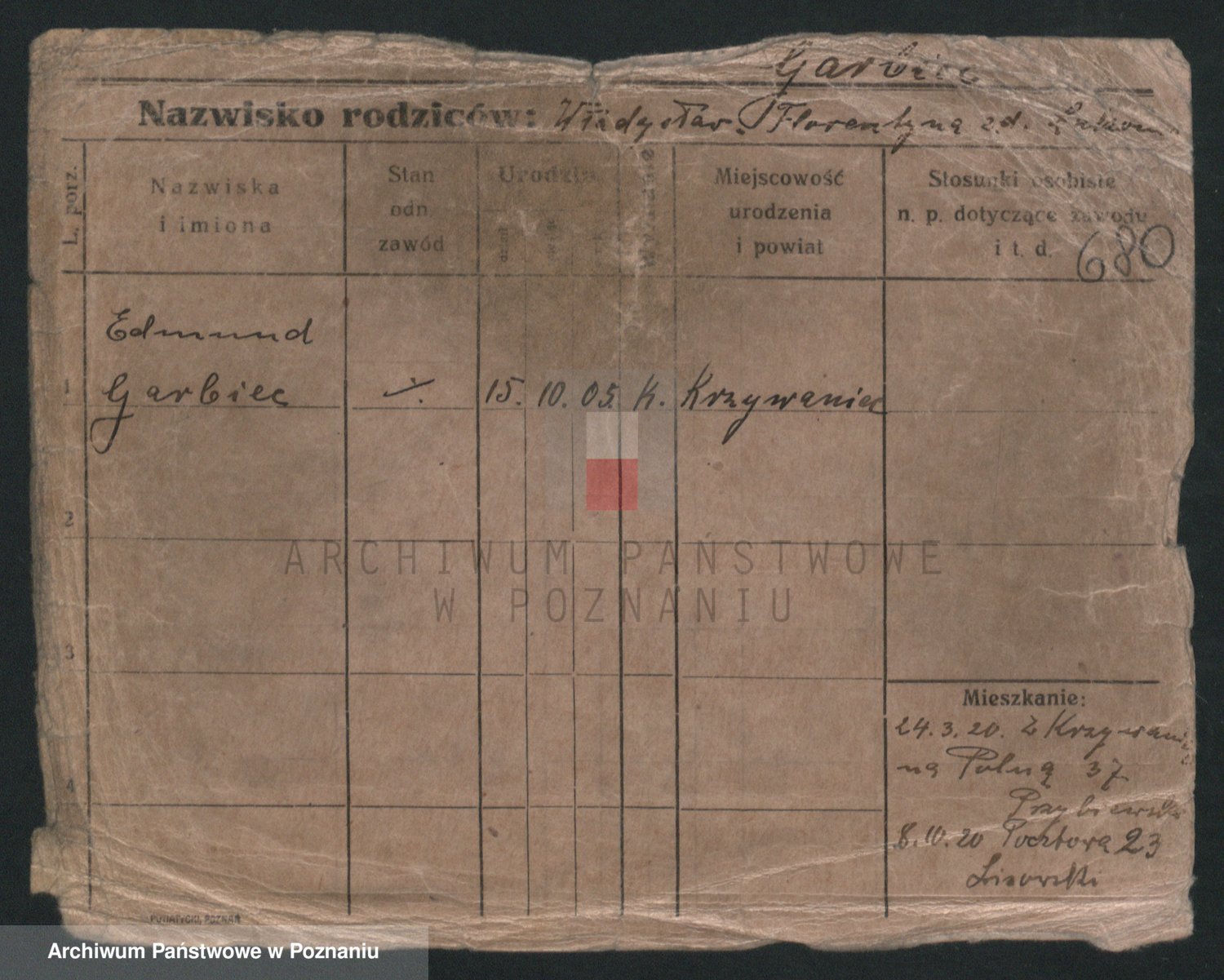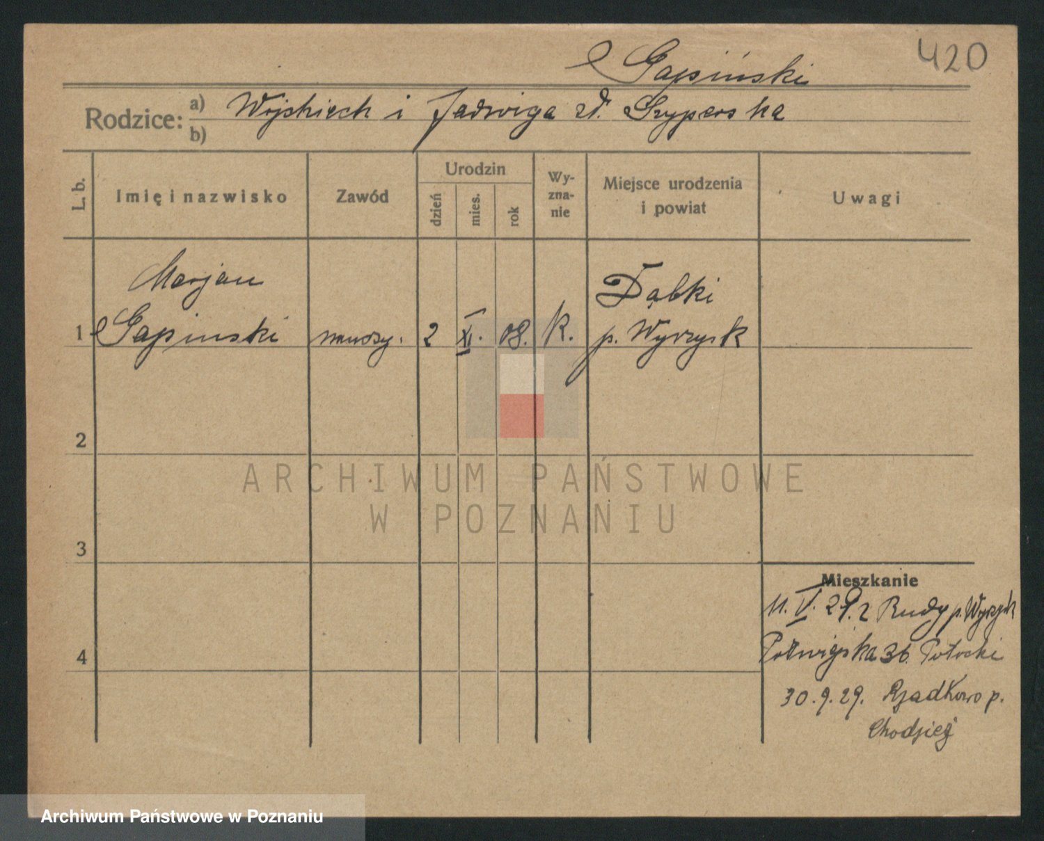 Podgląd karty osobowej dostępny jest po kliknięciu na nazwisko lub ikonkę karty. Można dokonywać powiększenia (ikony na górze) lub przechodzić między kolejnymi skanami (strzałki po bokach).
