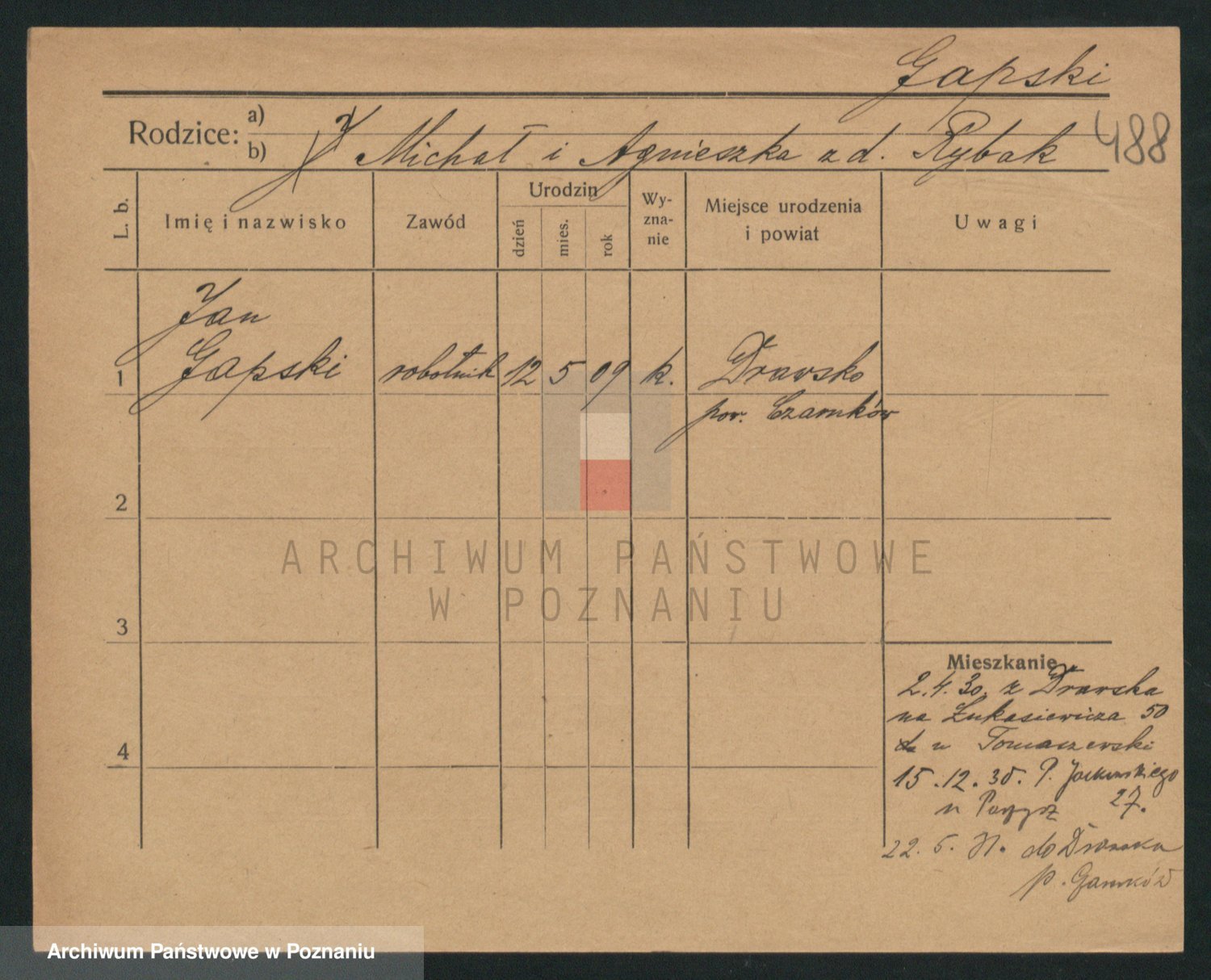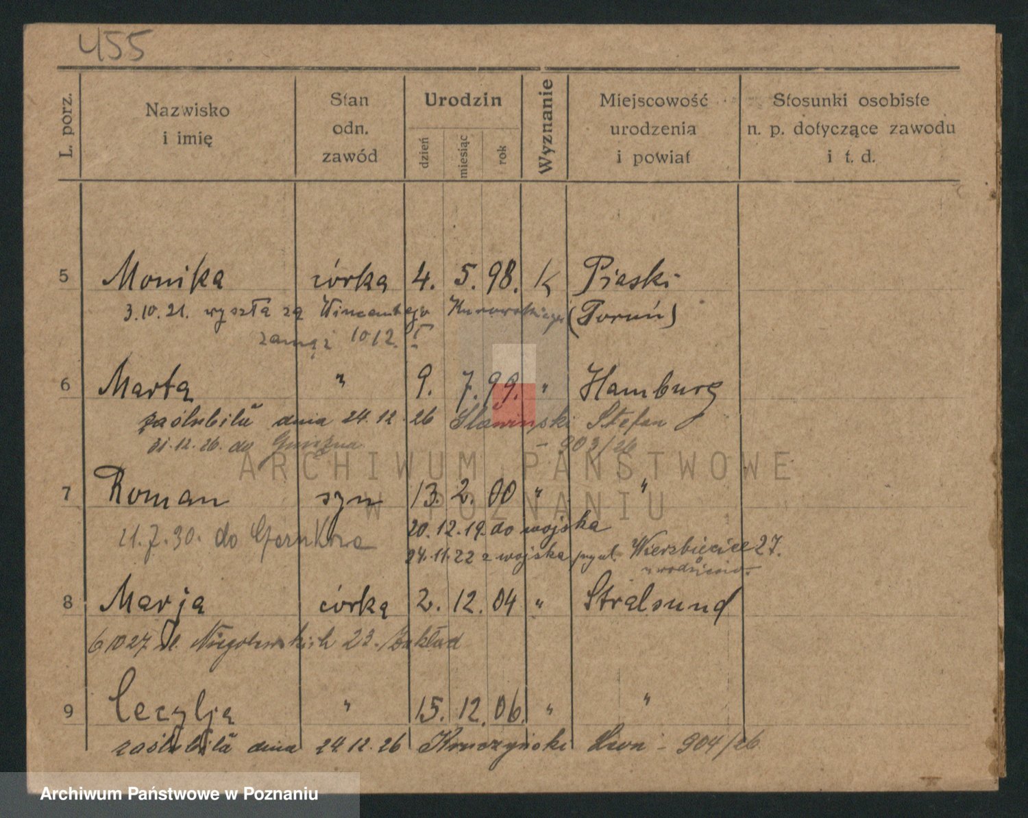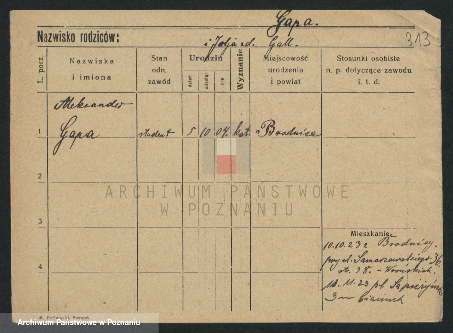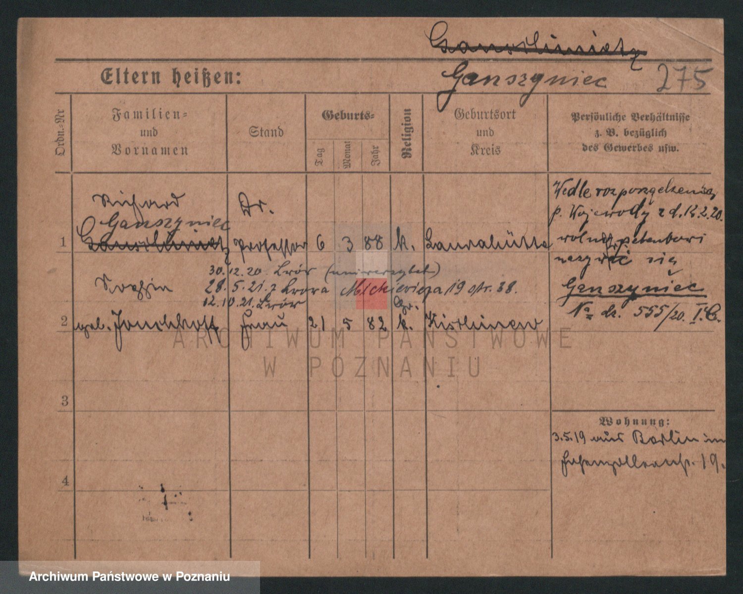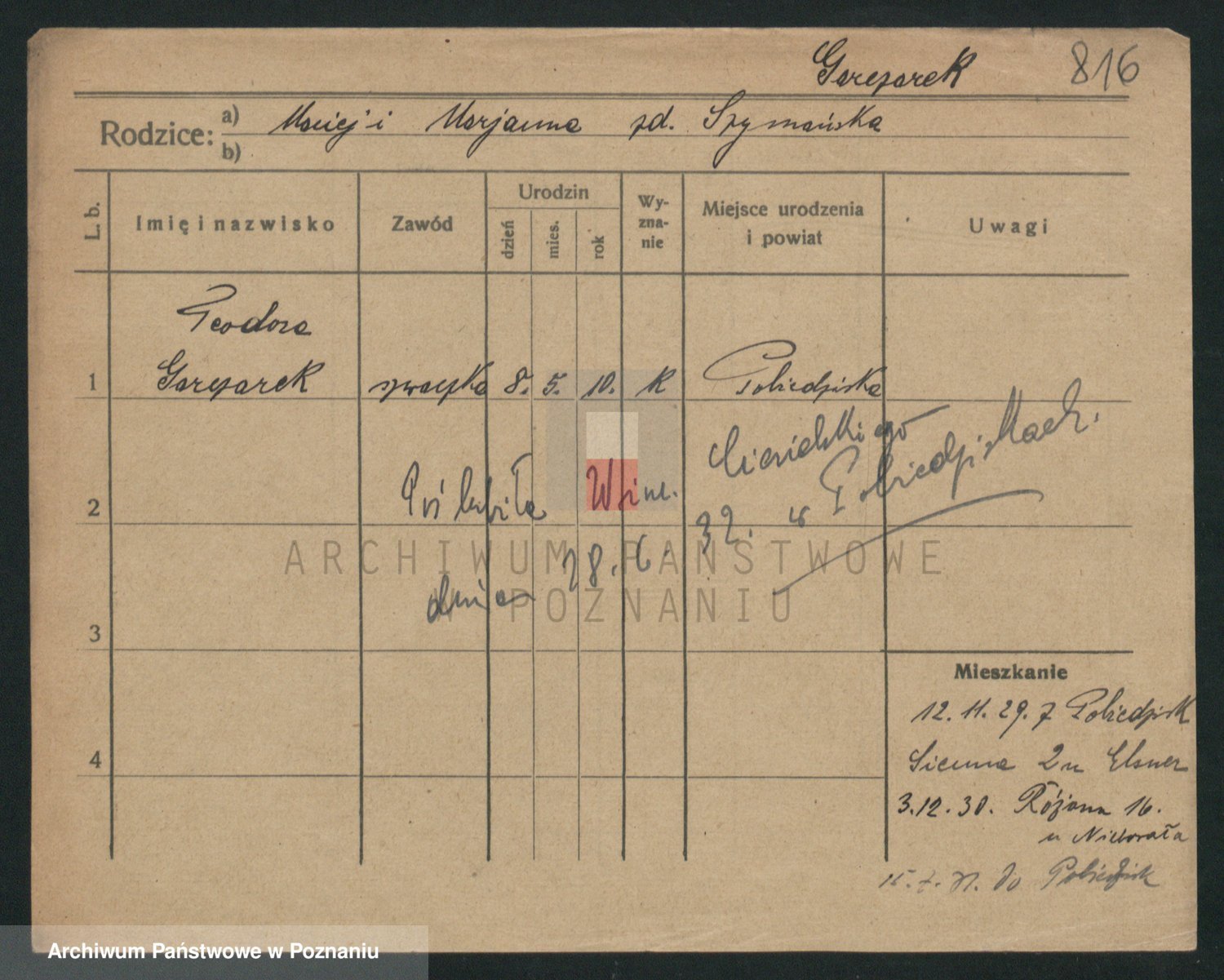 Podgląd karty osobowej dostępny jest po kliknięciu na nazwisko lub ikonkę karty. Można dokonywać powiększenia (ikony na górze) lub przechodzić między kolejnymi skanami (strzałki po bokach).