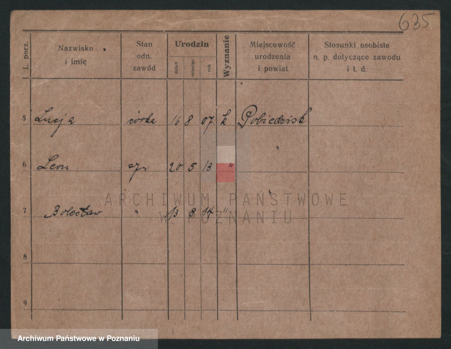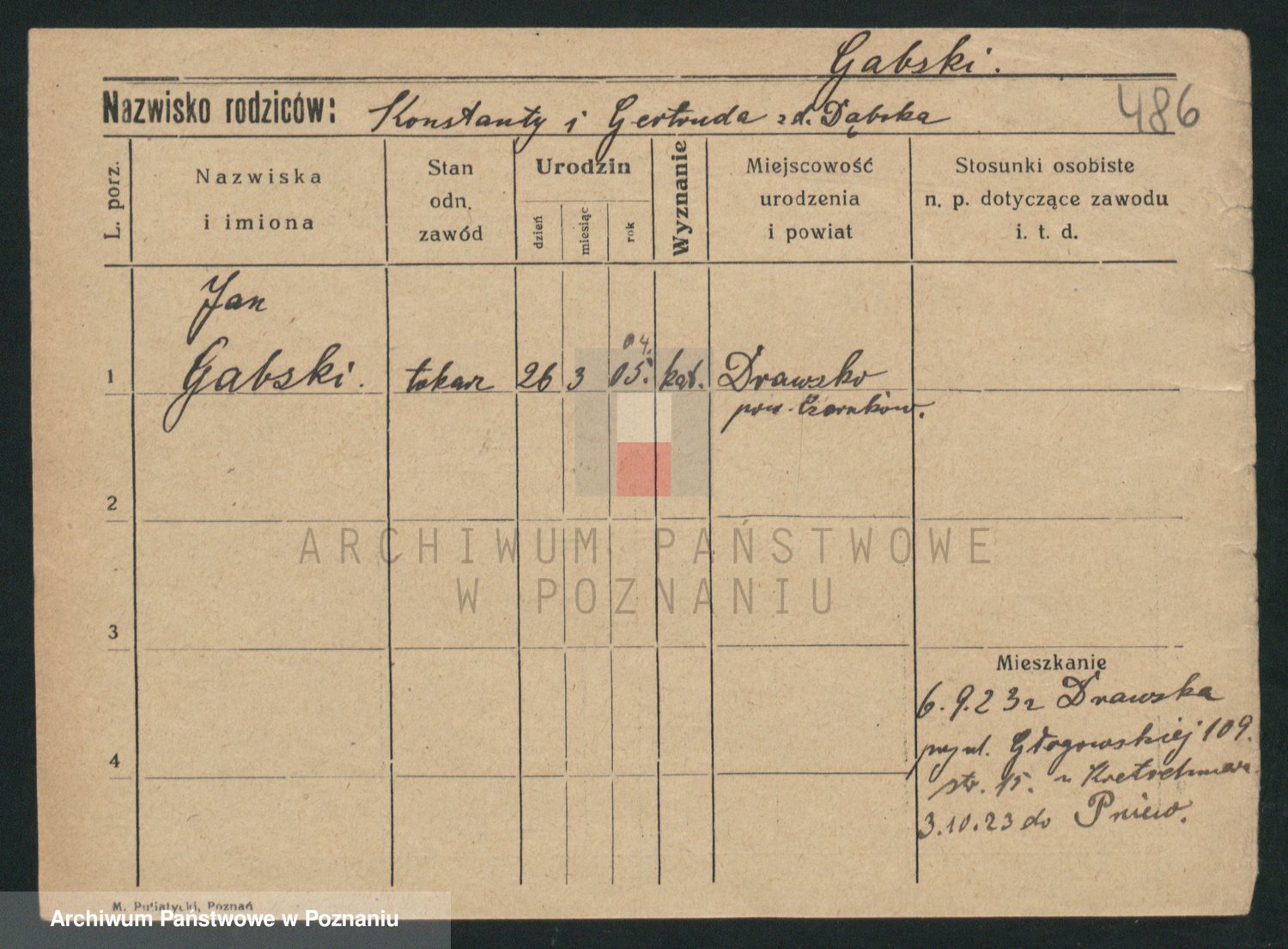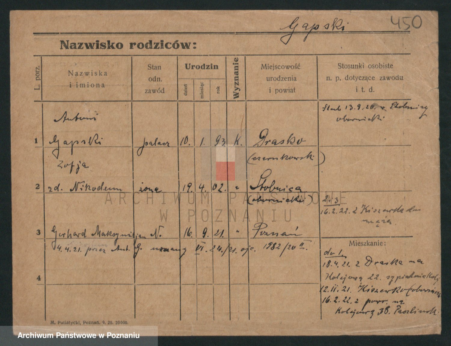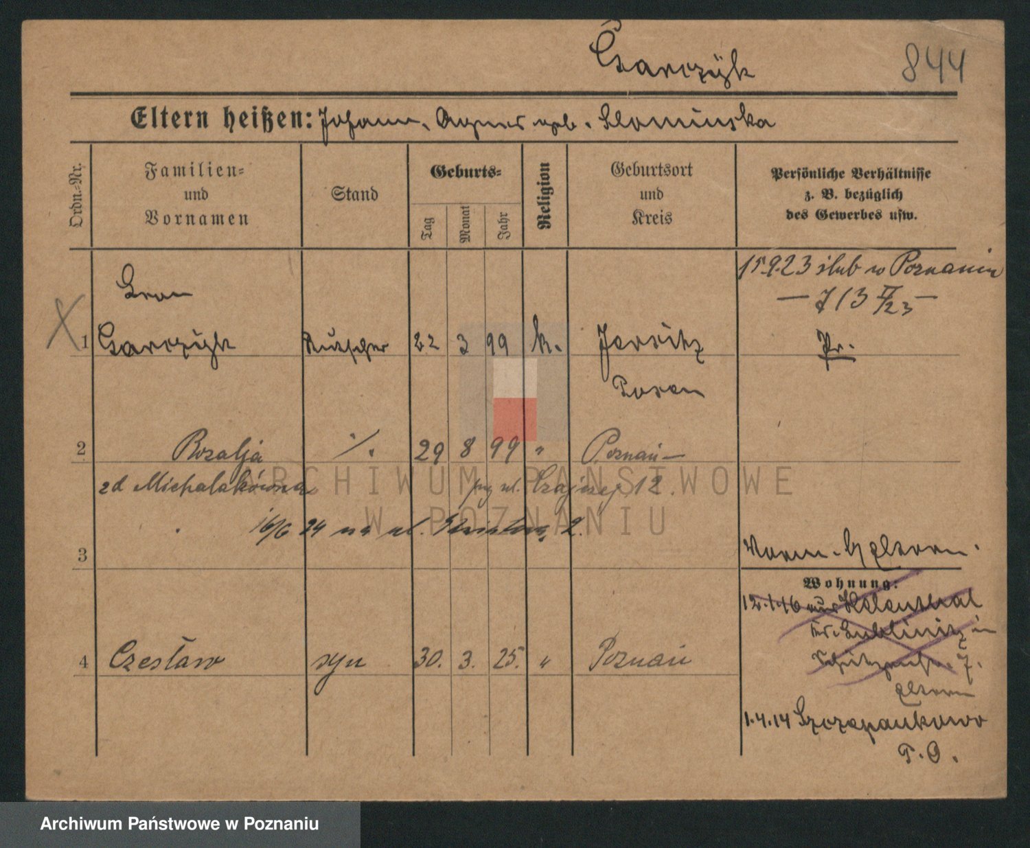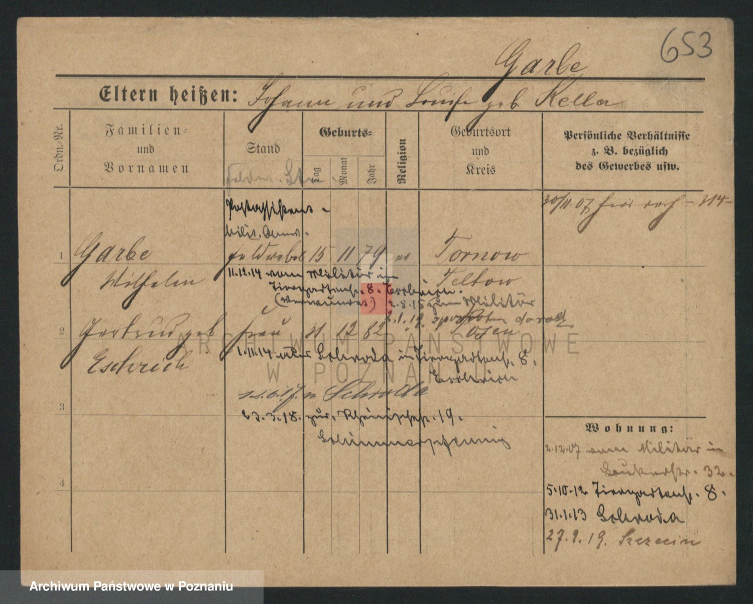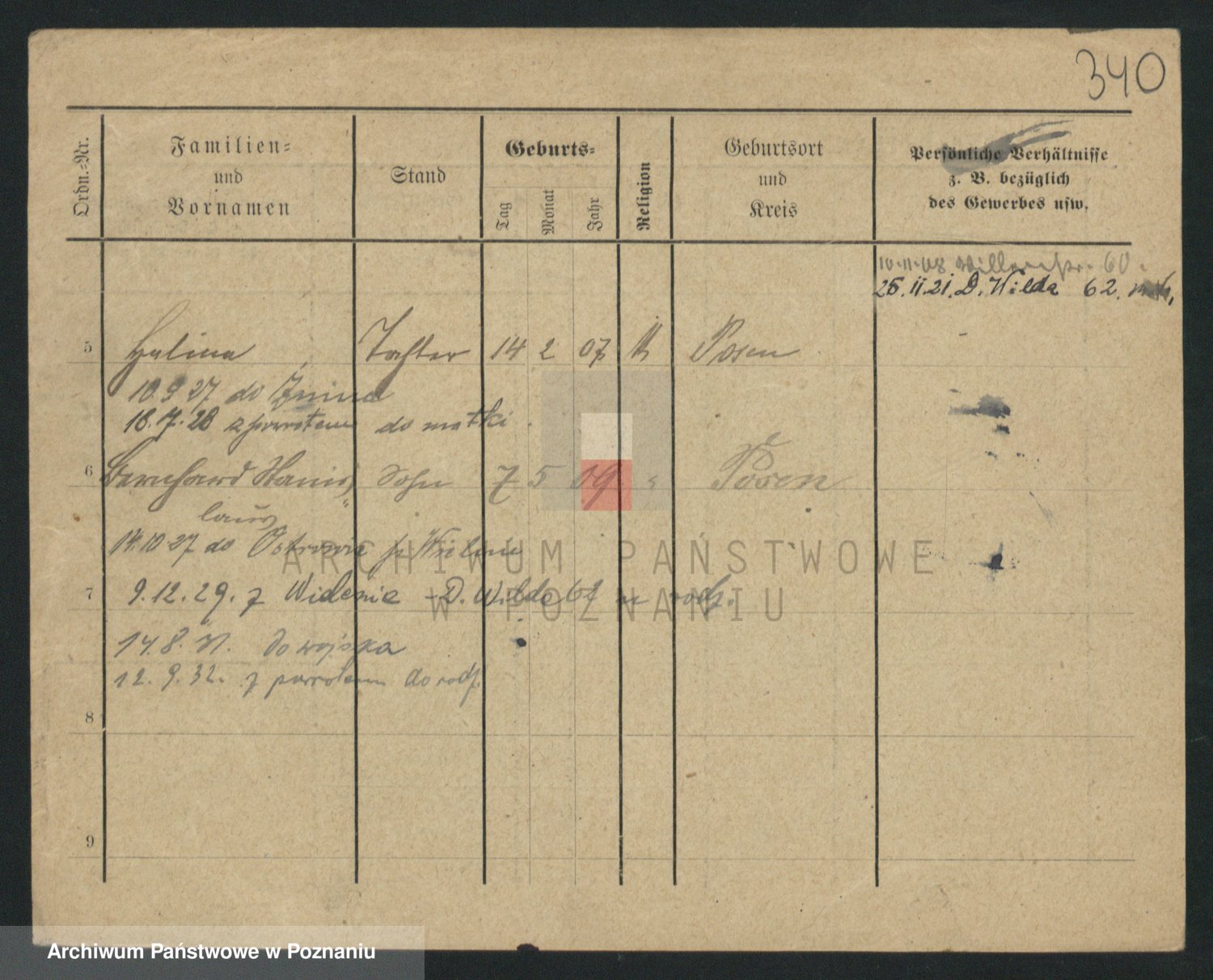 Podgląd karty osobowej dostępny jest po kliknięciu na nazwisko lub ikonkę karty. Można dokonywać powiększenia (ikony na górze) lub przechodzić między kolejnymi skanami (strzałki po bokach).