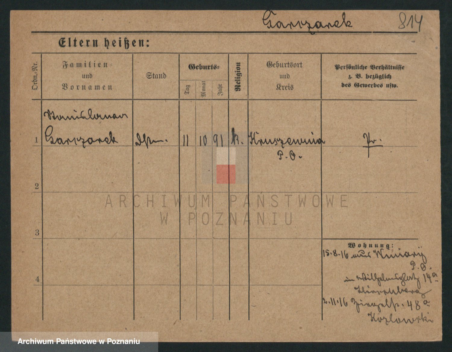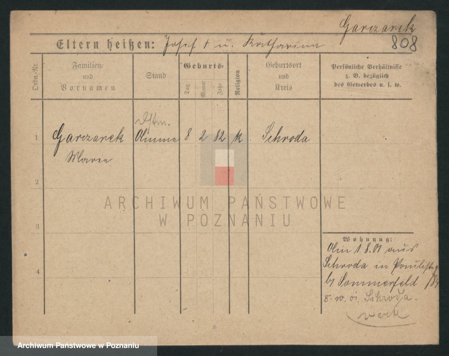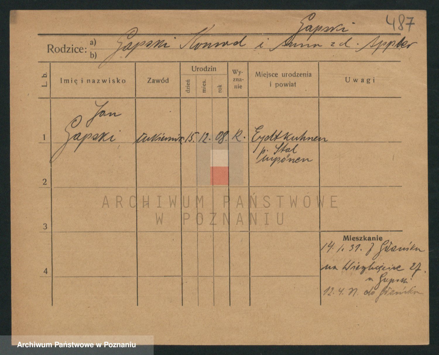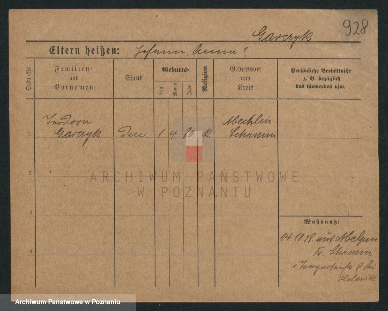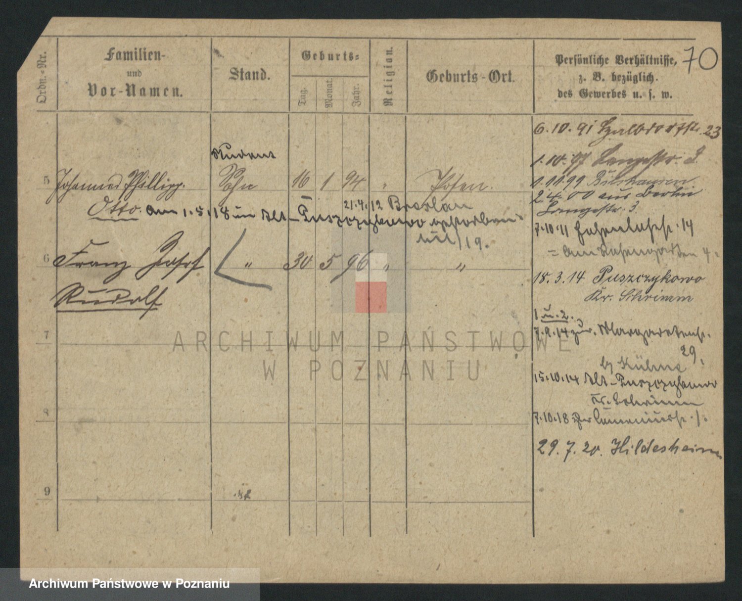 Podgląd karty osobowej dostępny jest po kliknięciu na nazwisko lub ikonkę karty. Można dokonywać powiększenia (ikony na górze) lub przechodzić między kolejnymi skanami (strzałki po bokach).