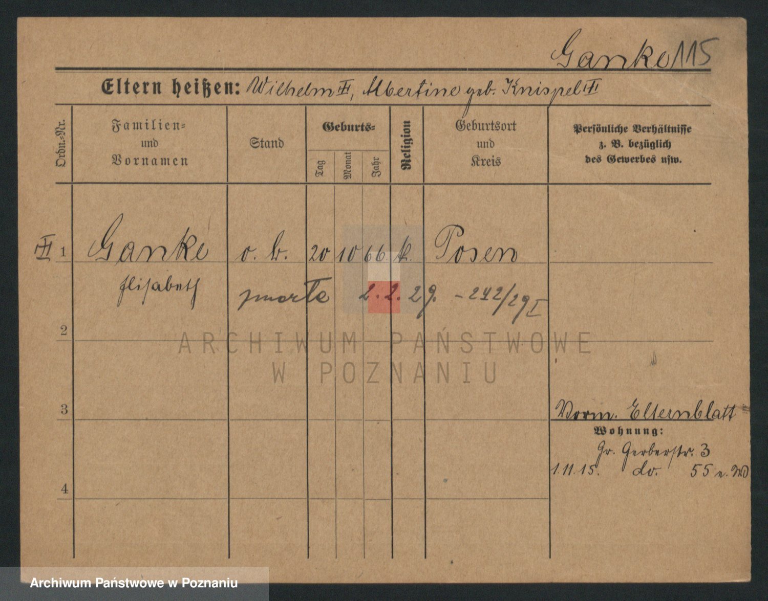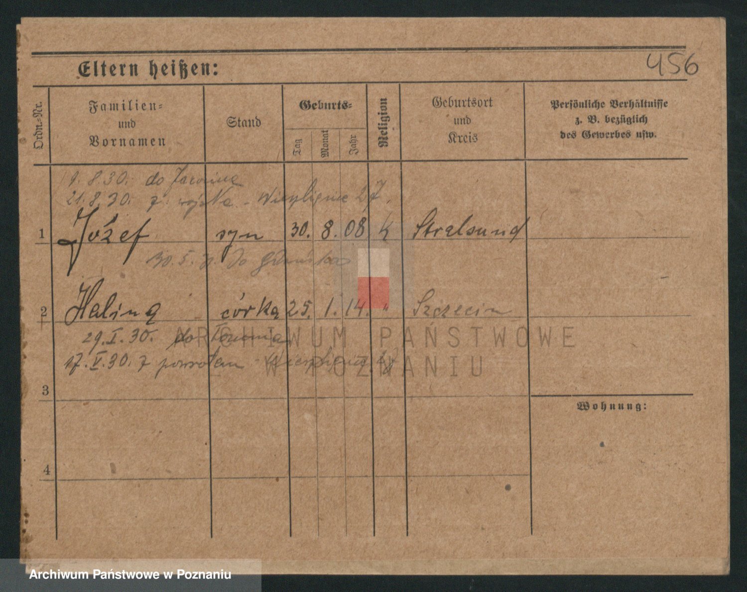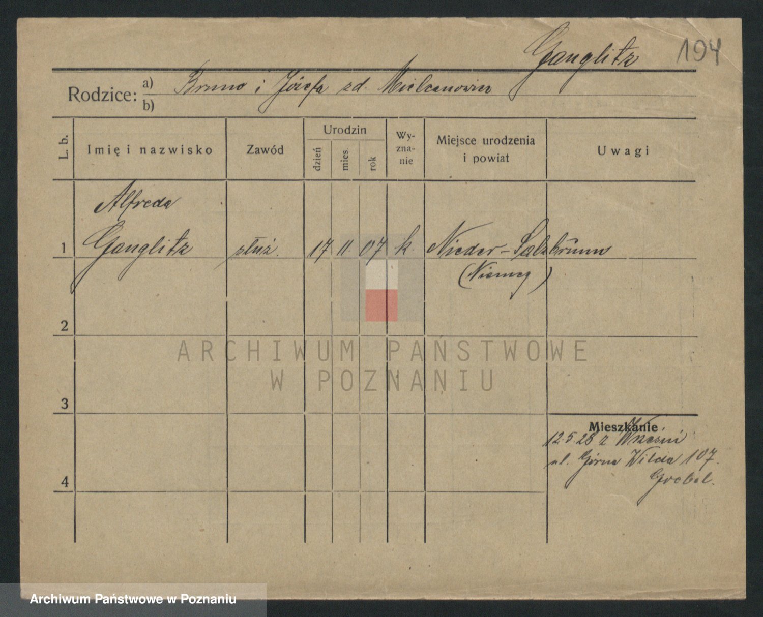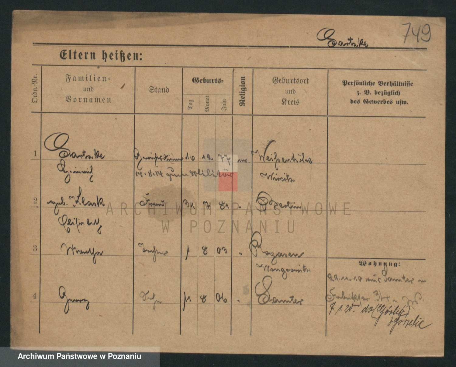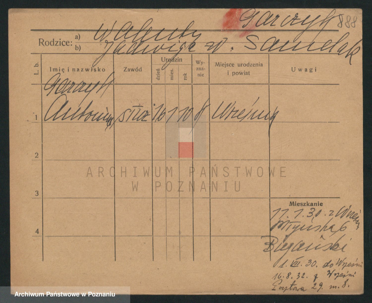 Podgląd karty osobowej dostępny jest po kliknięciu na nazwisko lub ikonkę karty. Można dokonywać powiększenia (ikony na górze) lub przechodzić między kolejnymi skanami (strzałki po bokach).