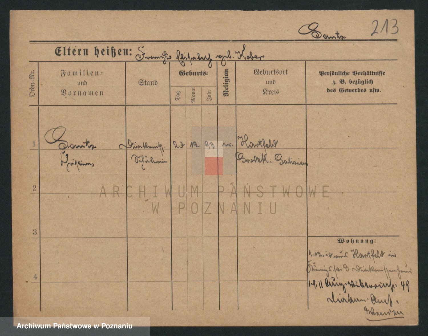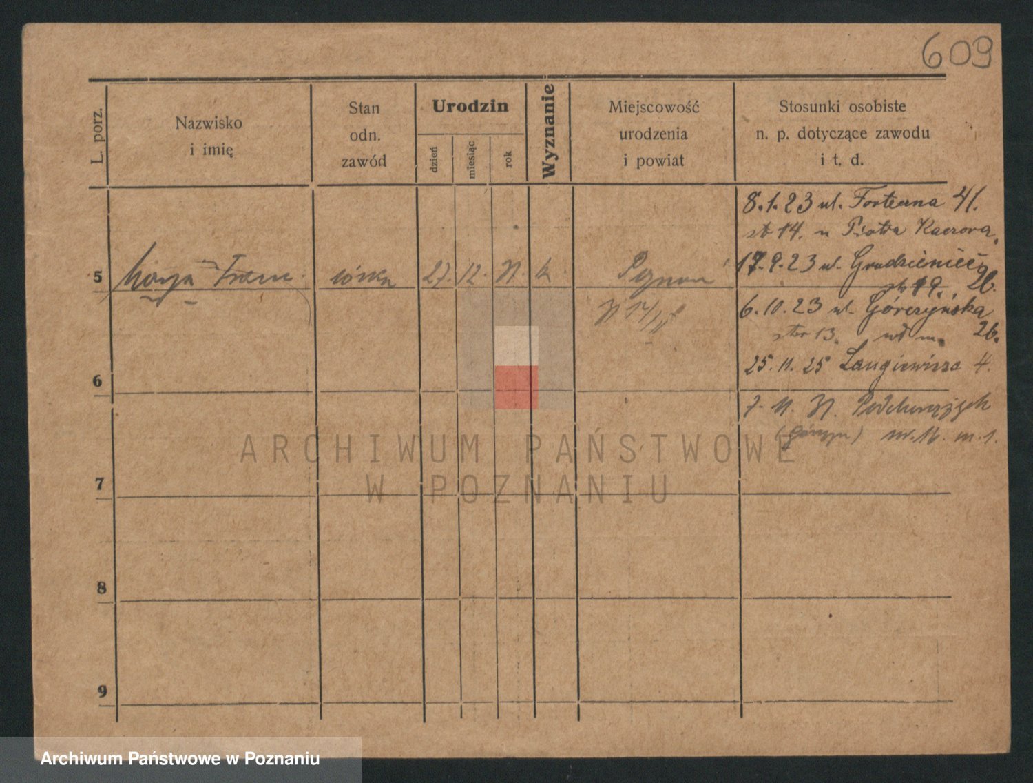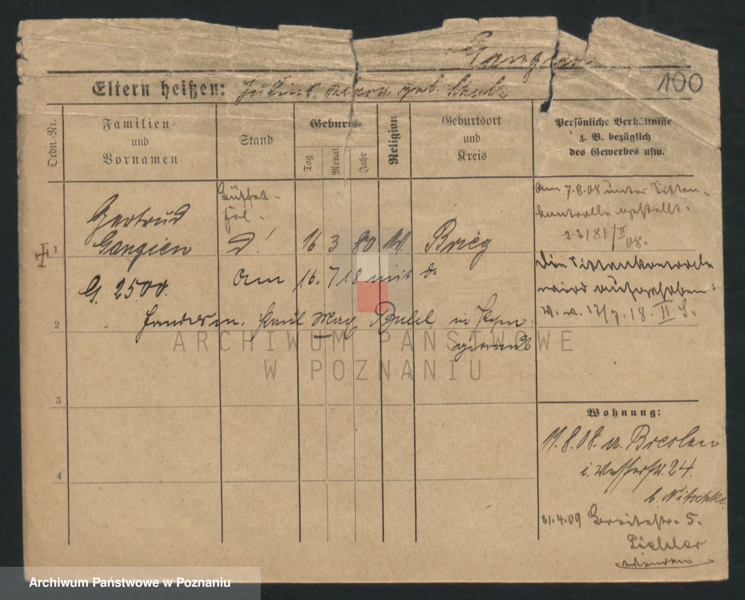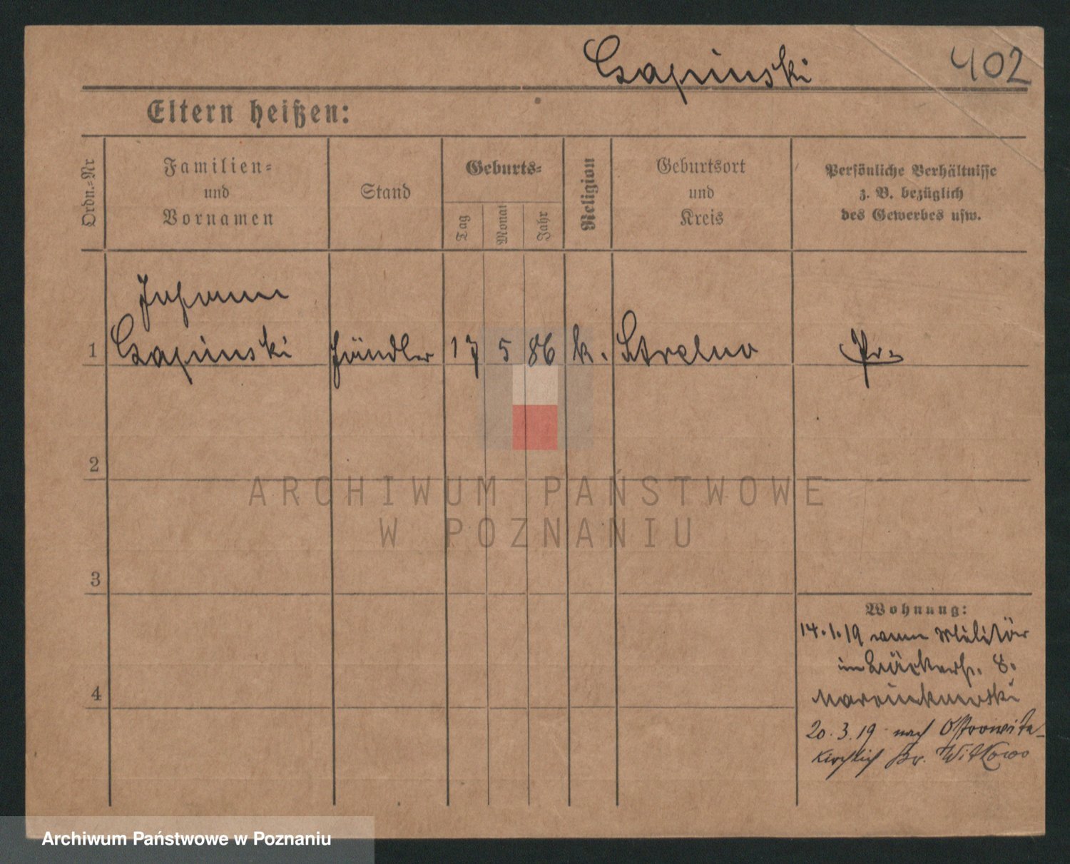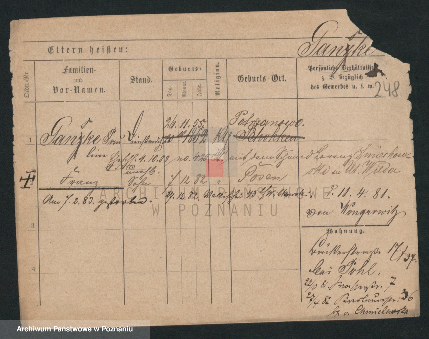 Podgląd karty osobowej dostępny jest po kliknięciu na nazwisko lub ikonkę karty. Można dokonywać powiększenia (ikony na górze) lub przechodzić między kolejnymi skanami (strzałki po bokach).