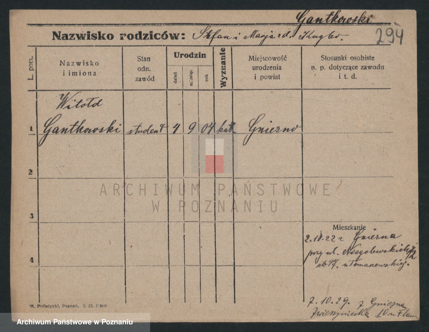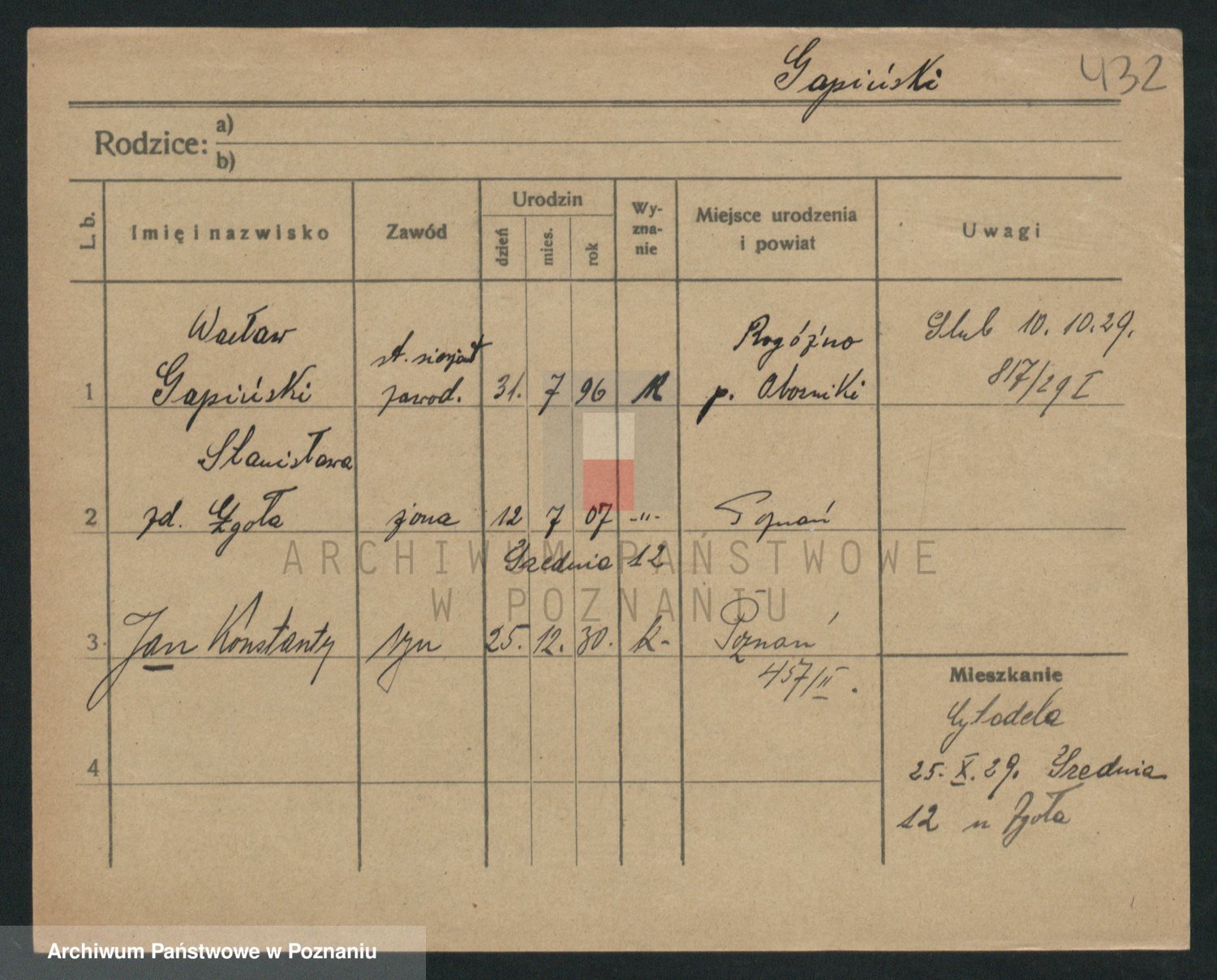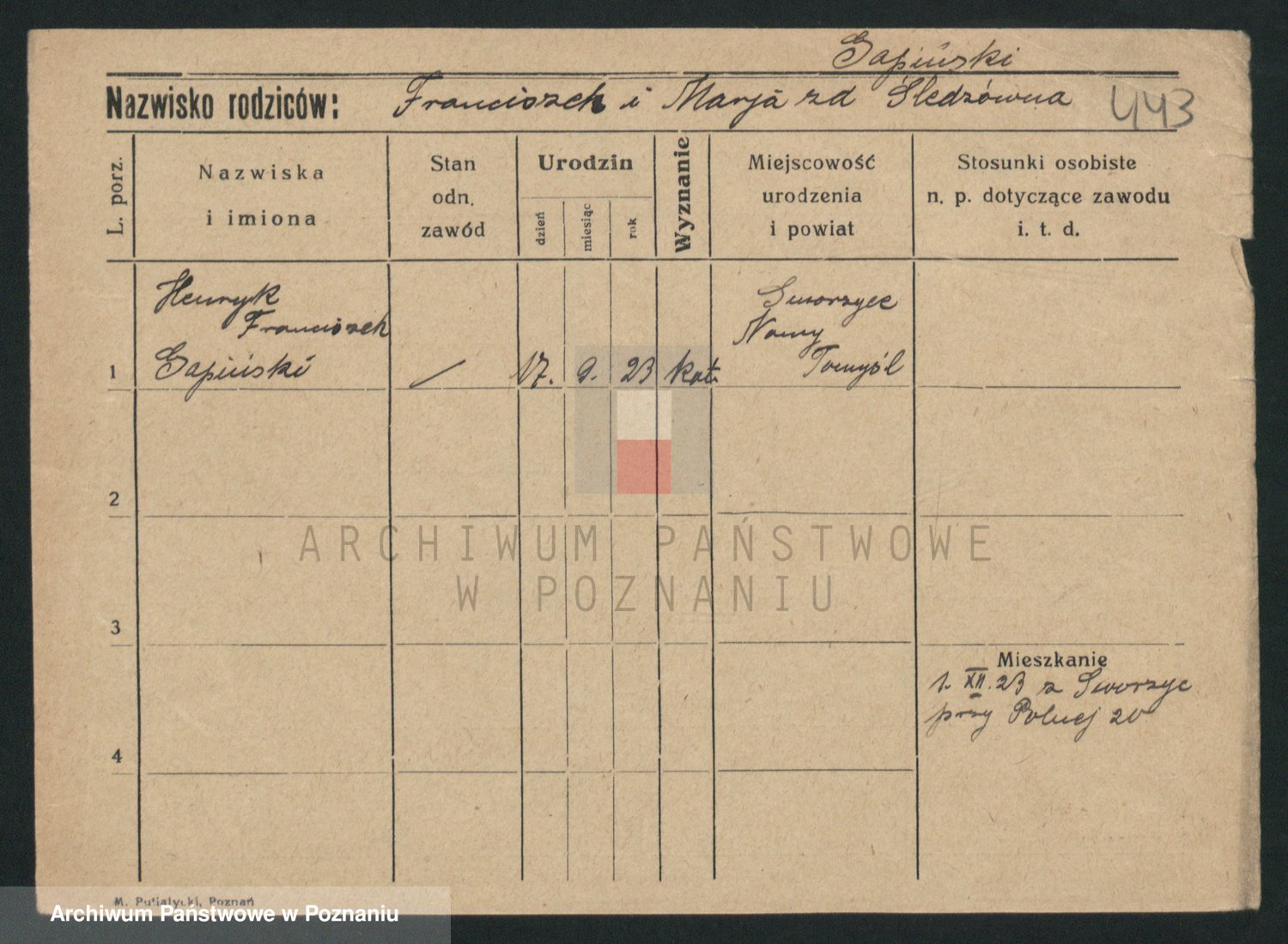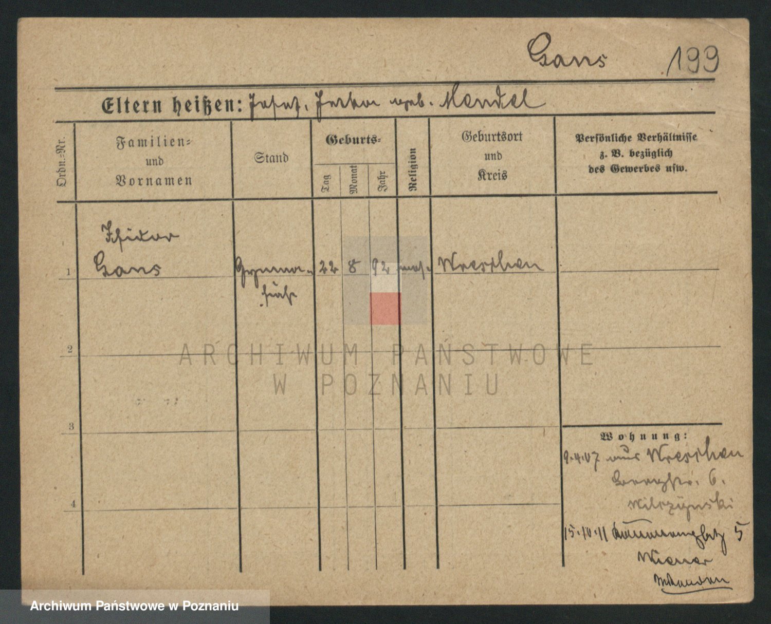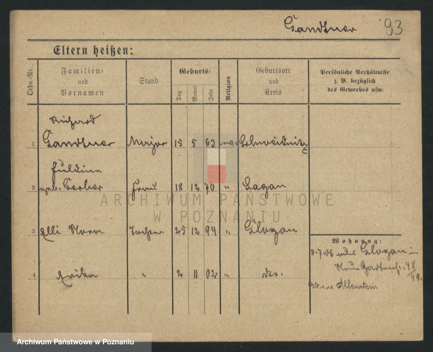 Podgląd karty osobowej dostępny jest po kliknięciu na nazwisko lub ikonkę karty. Można dokonywać powiększenia (ikony na górze) lub przechodzić między kolejnymi skanami (strzałki po bokach).