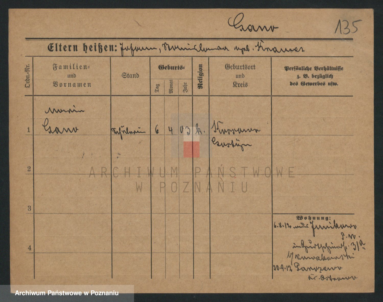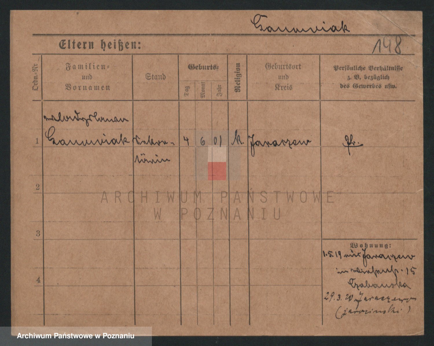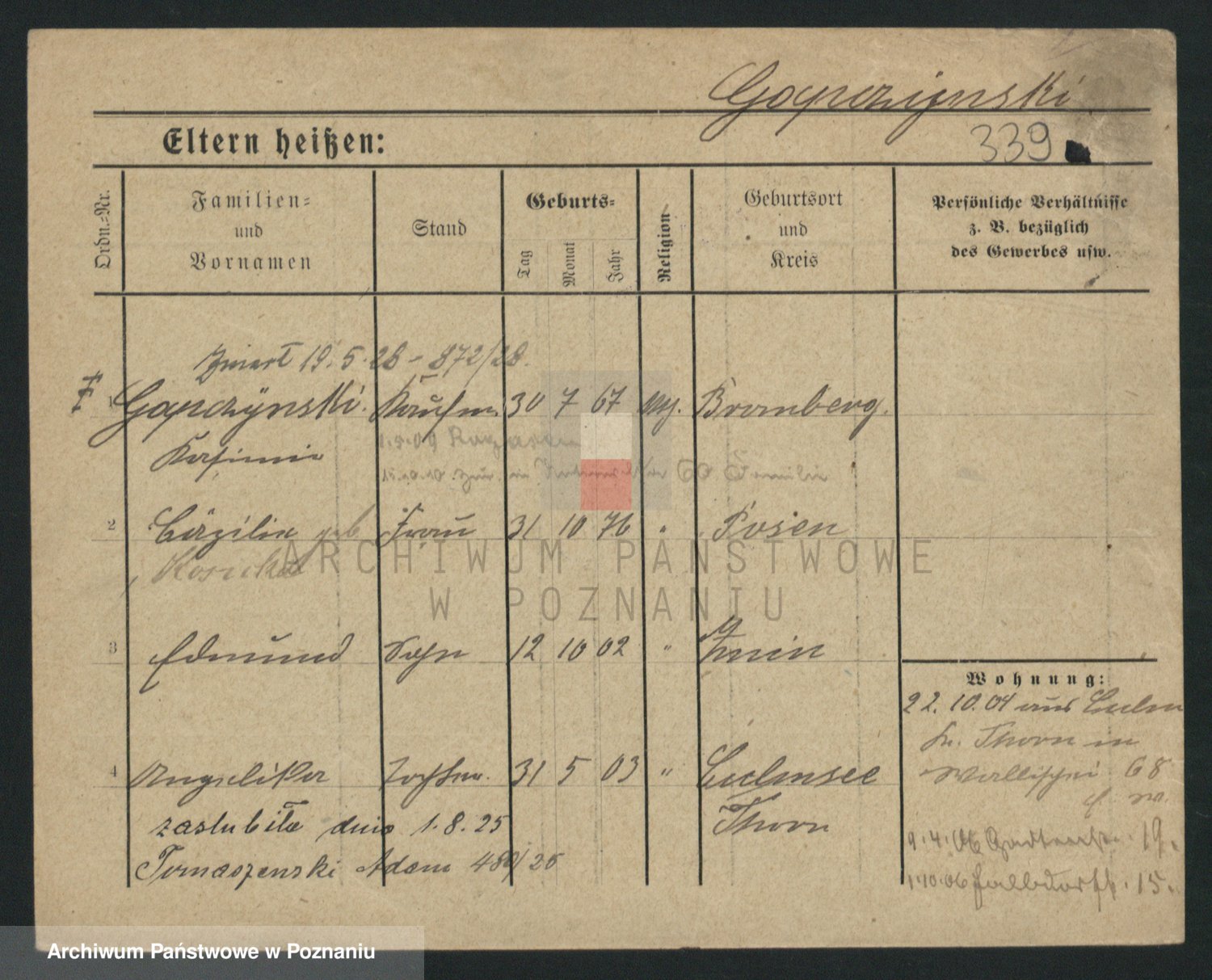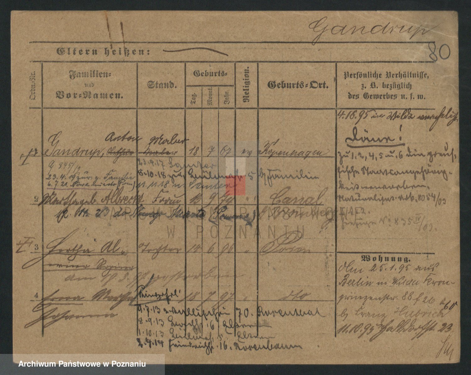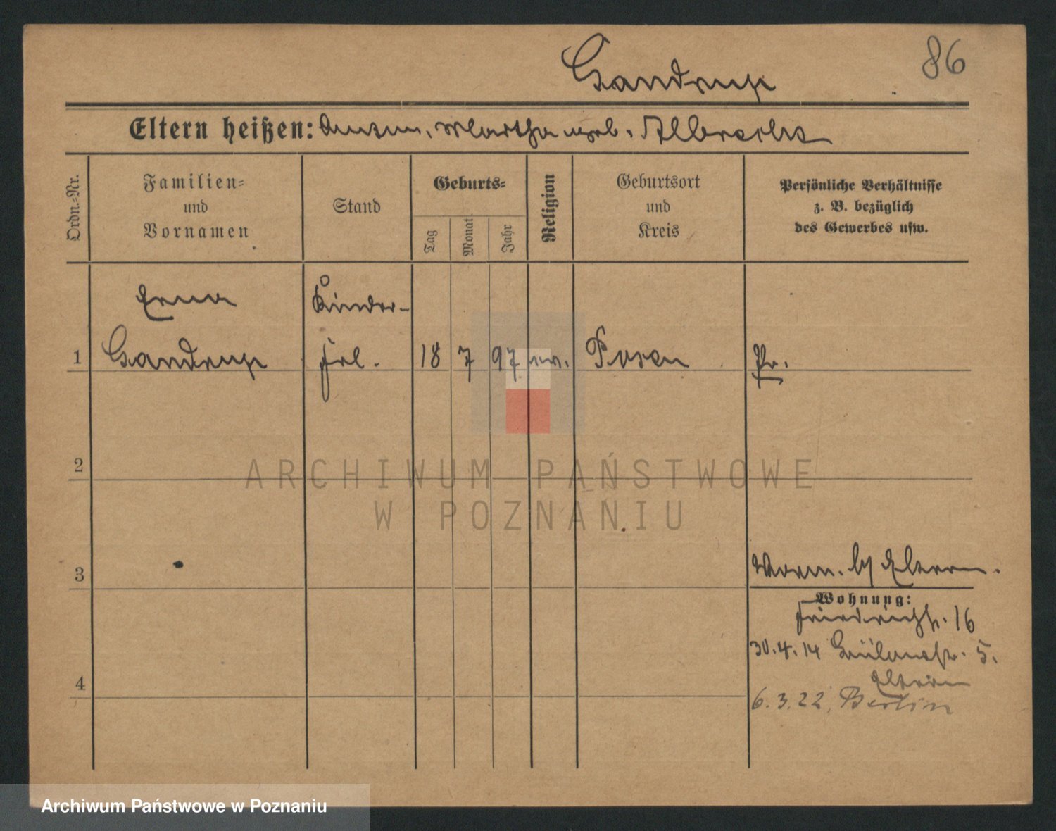Podgląd karty osobowej dostępny jest po kliknięciu na nazwisko lub ikonkę karty. Można dokonywać powiększenia (ikony na górze) lub przechodzić między kolejnymi skanami (strzałki po bokach).