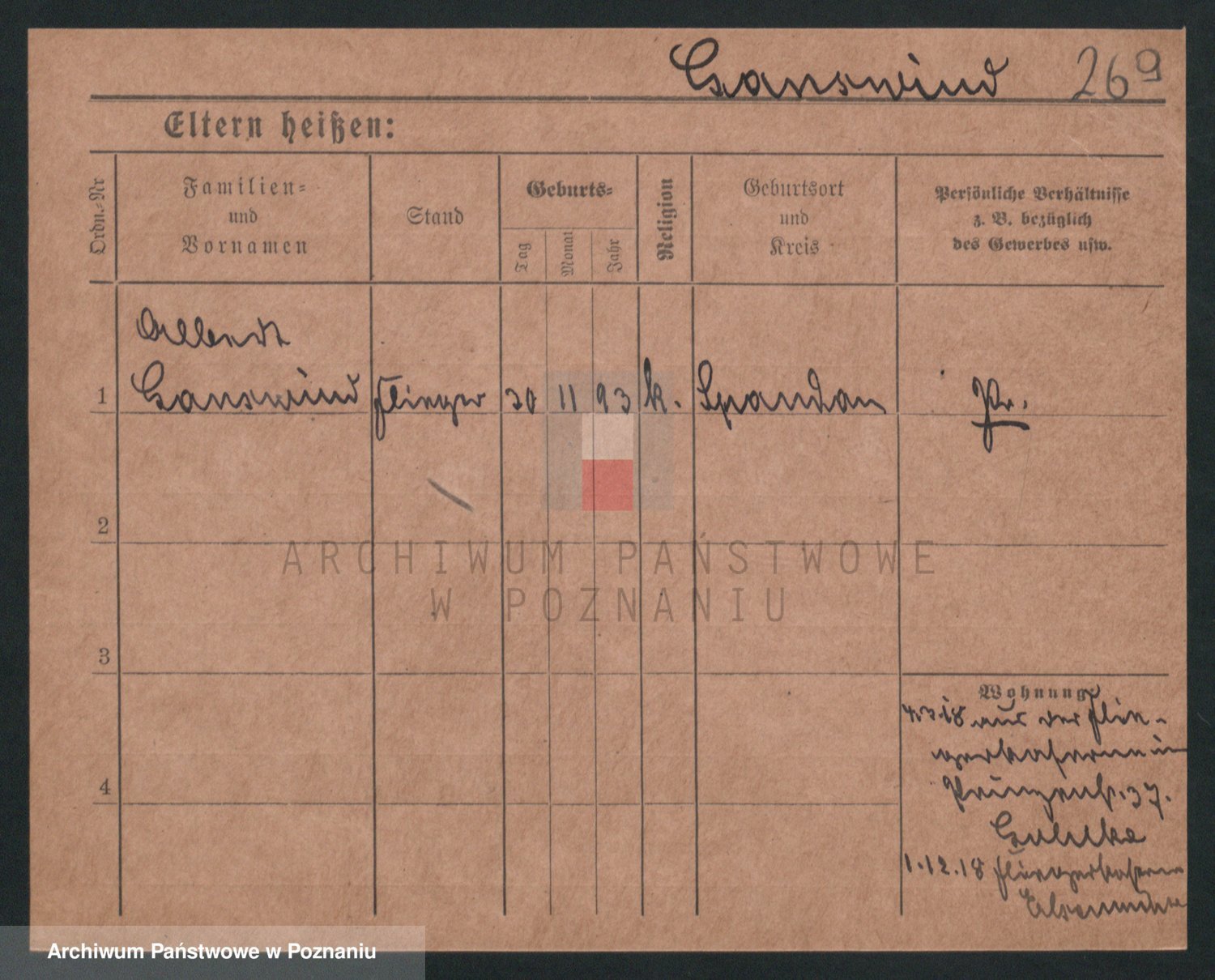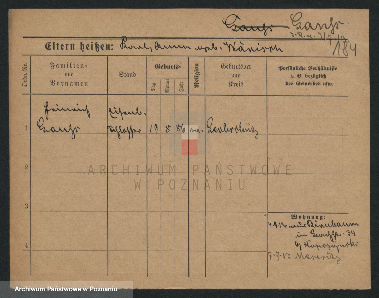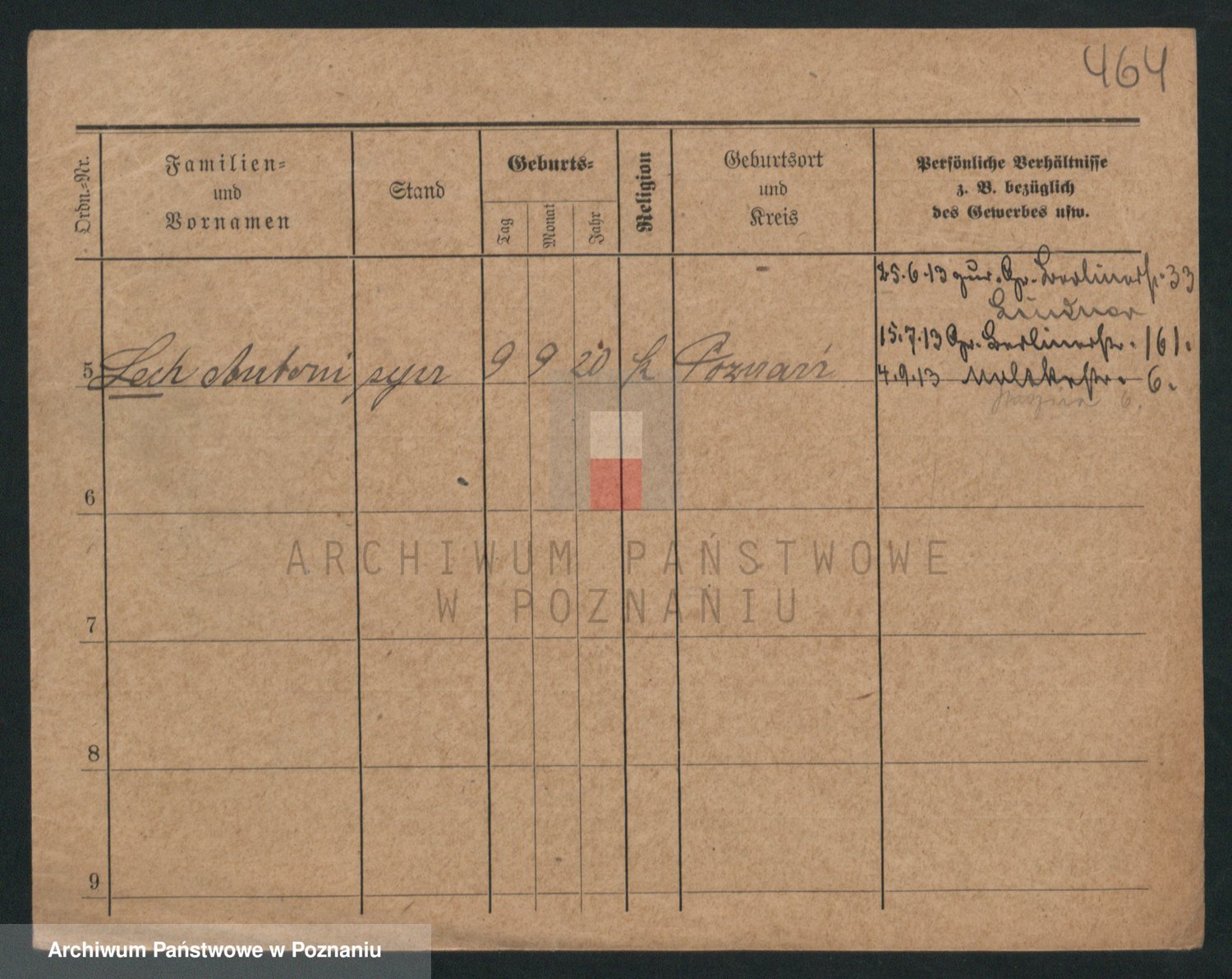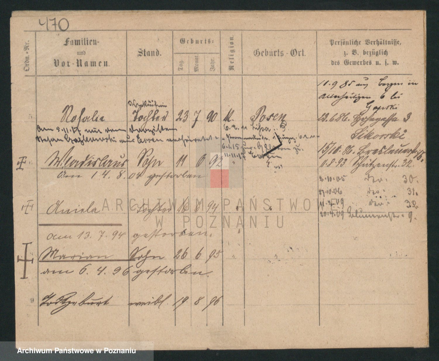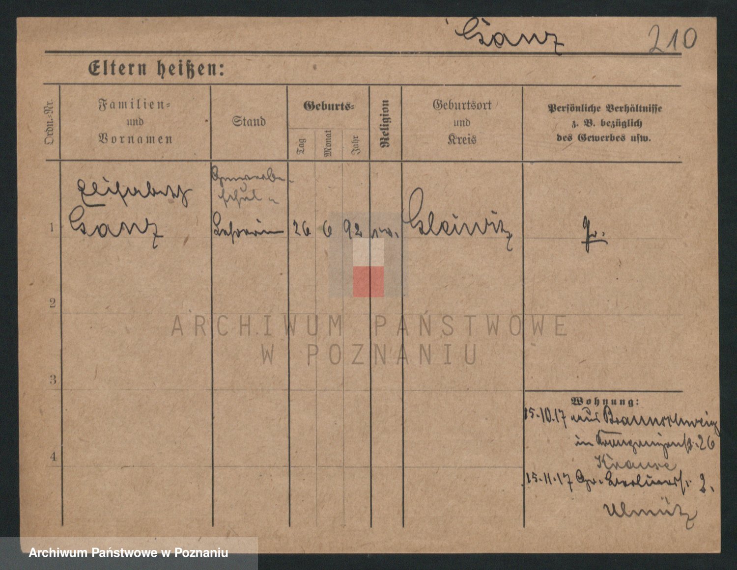 Podgląd karty osobowej dostępny jest po kliknięciu na nazwisko lub ikonkę karty. Można dokonywać powiększenia (ikony na górze) lub przechodzić między kolejnymi skanami (strzałki po bokach).