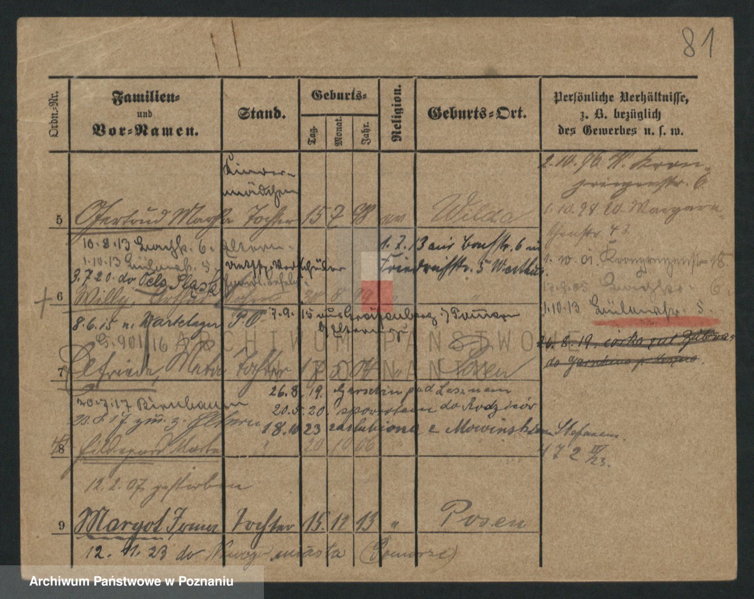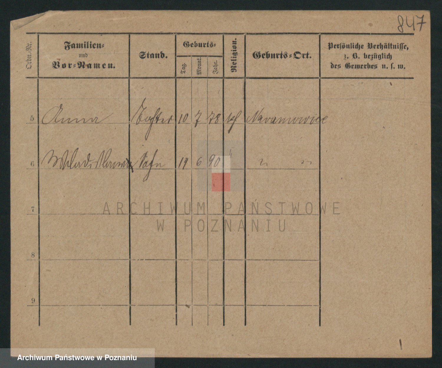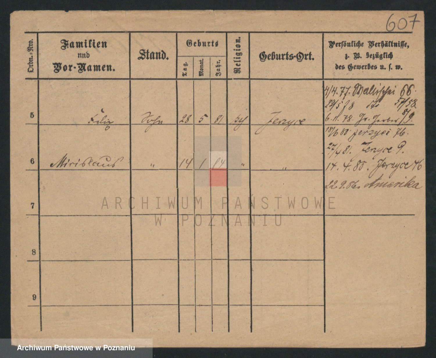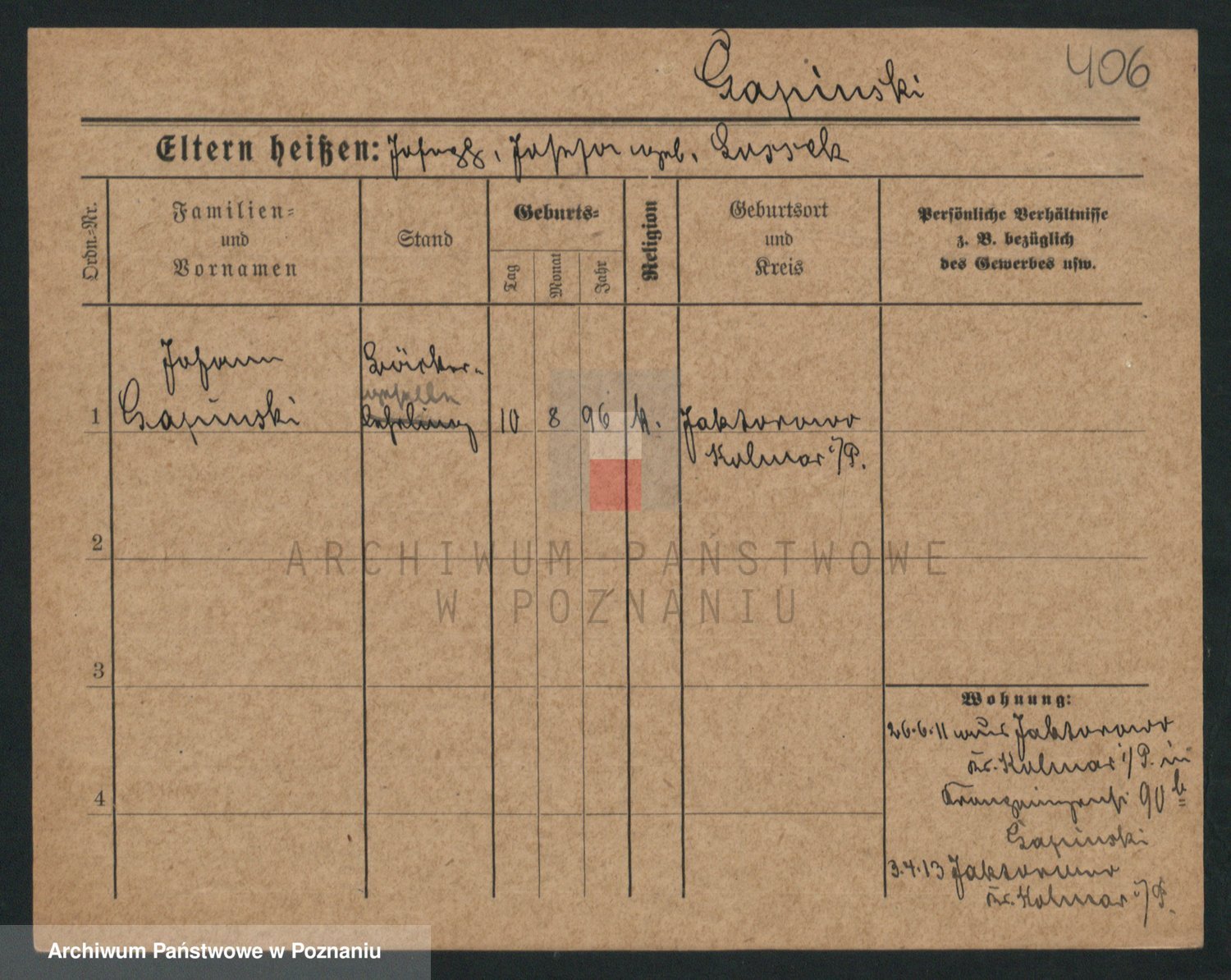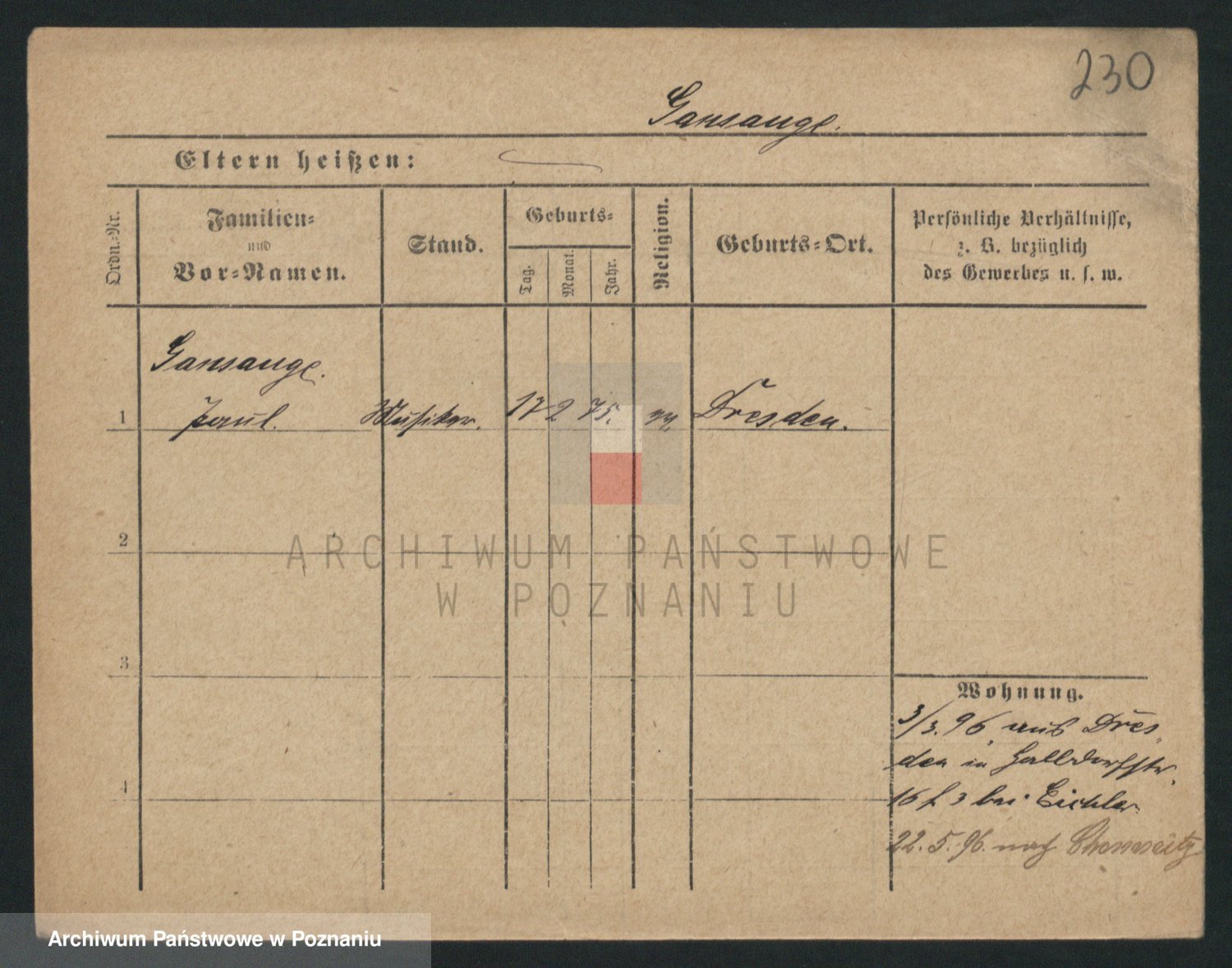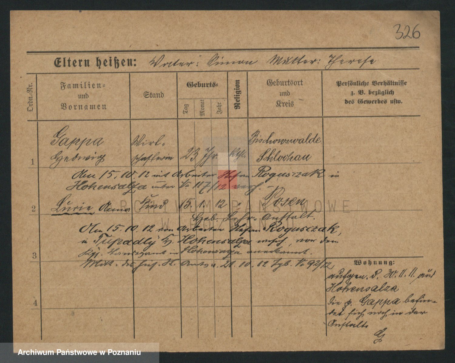Podgląd karty osobowej dostępny jest po kliknięciu na nazwisko lub ikonkę karty. Można dokonywać powiększenia (ikony na górze) lub przechodzić między kolejnymi skanami (strzałki po bokach).