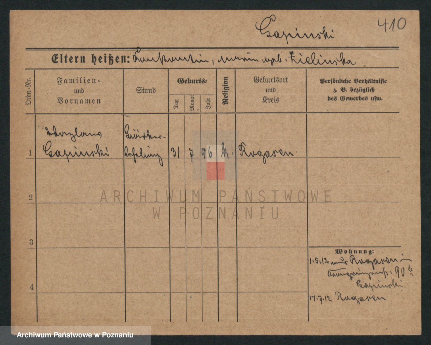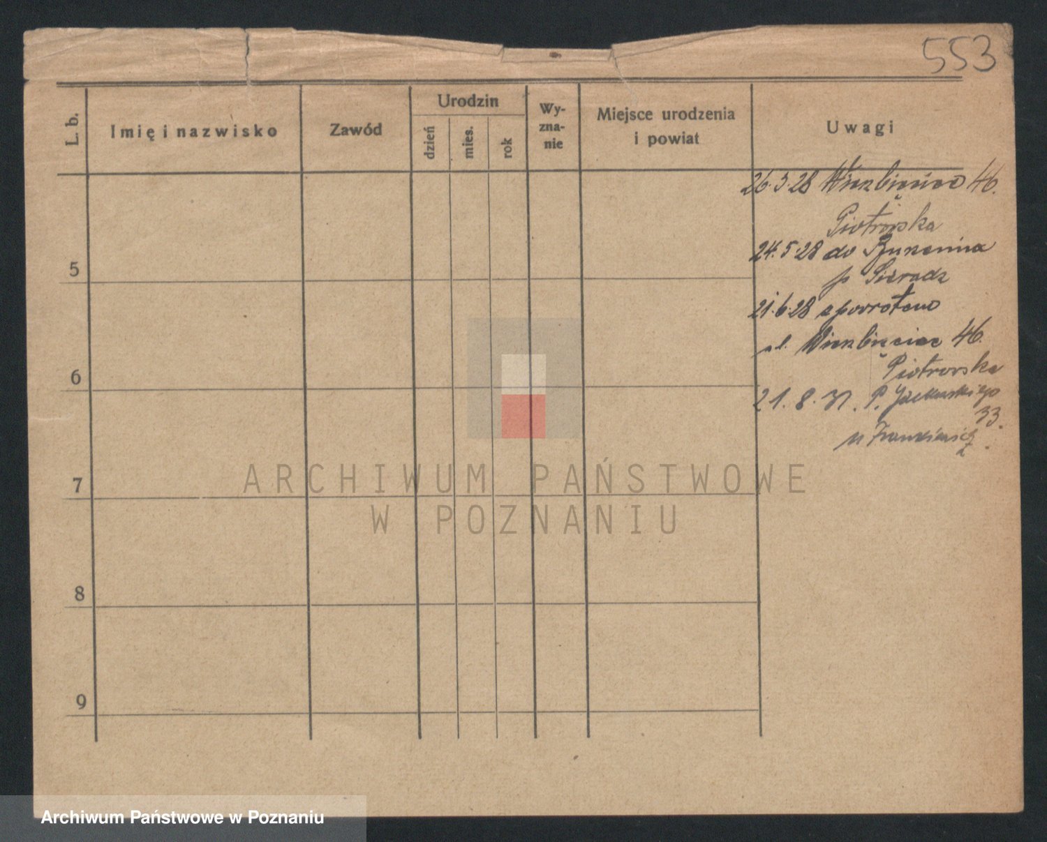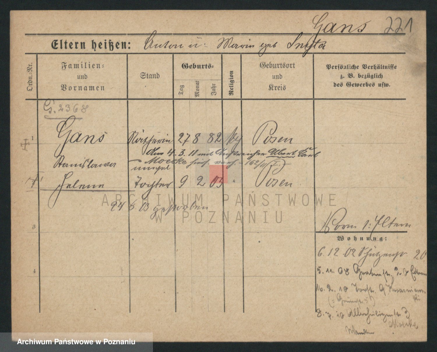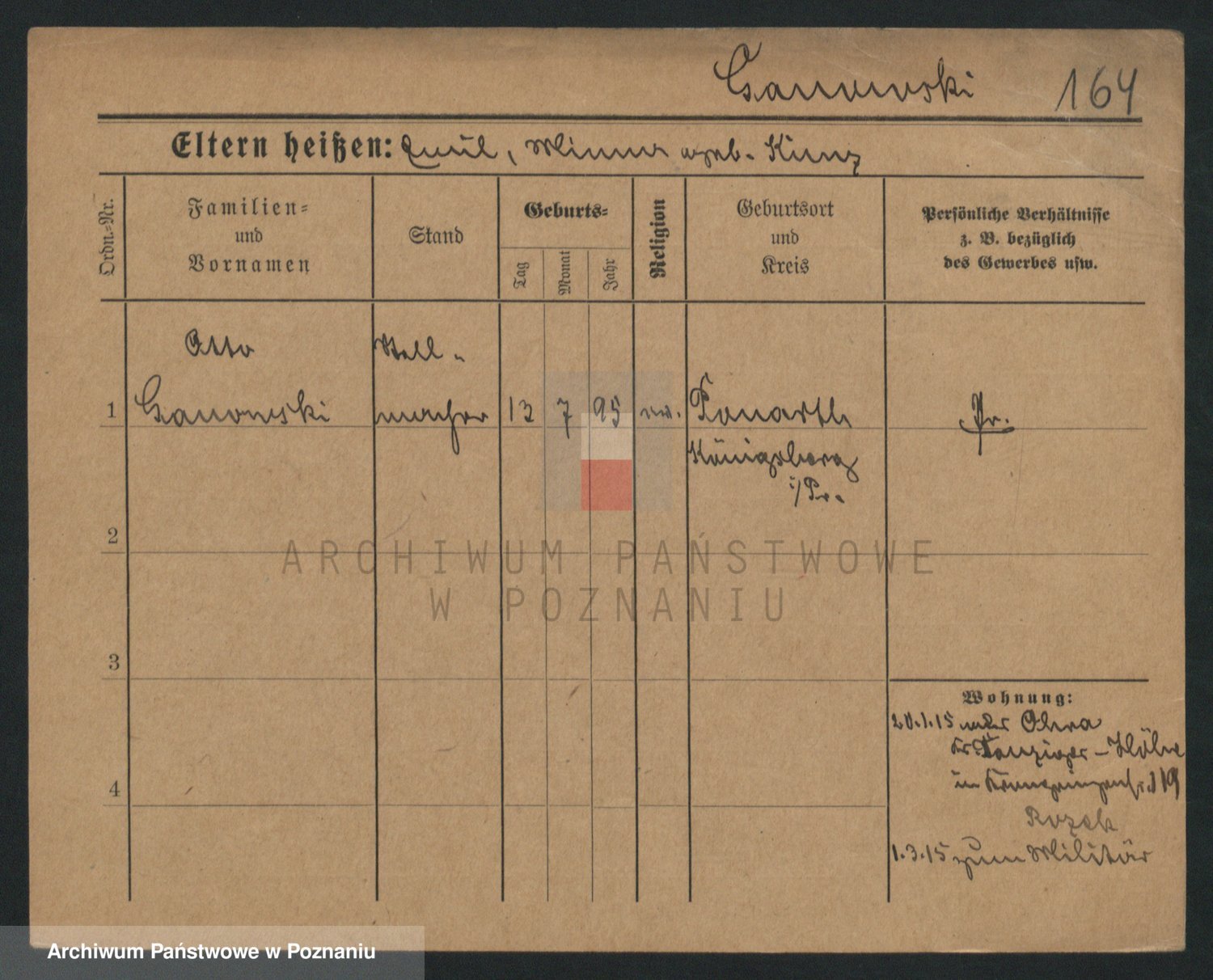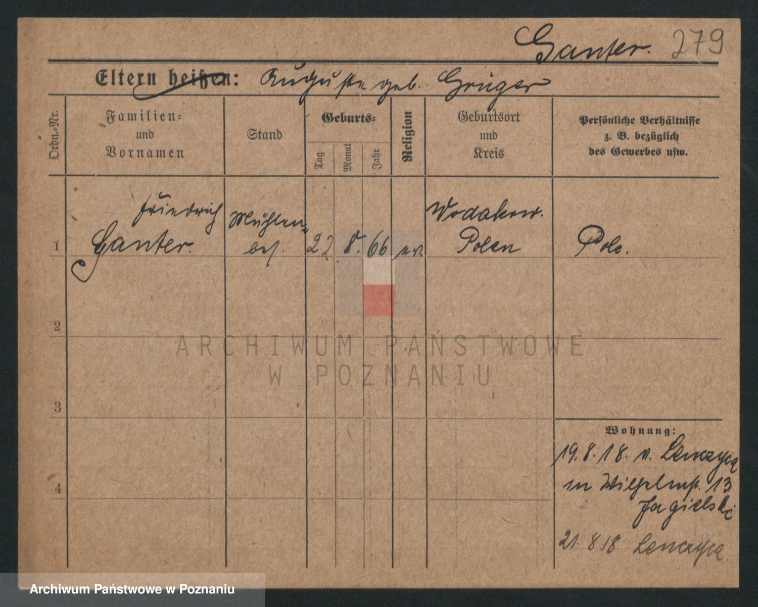 Podgląd karty osobowej dostępny jest po kliknięciu na nazwisko lub ikonkę karty. Można dokonywać powiększenia (ikony na górze) lub przechodzić między kolejnymi skanami (strzałki po bokach).
