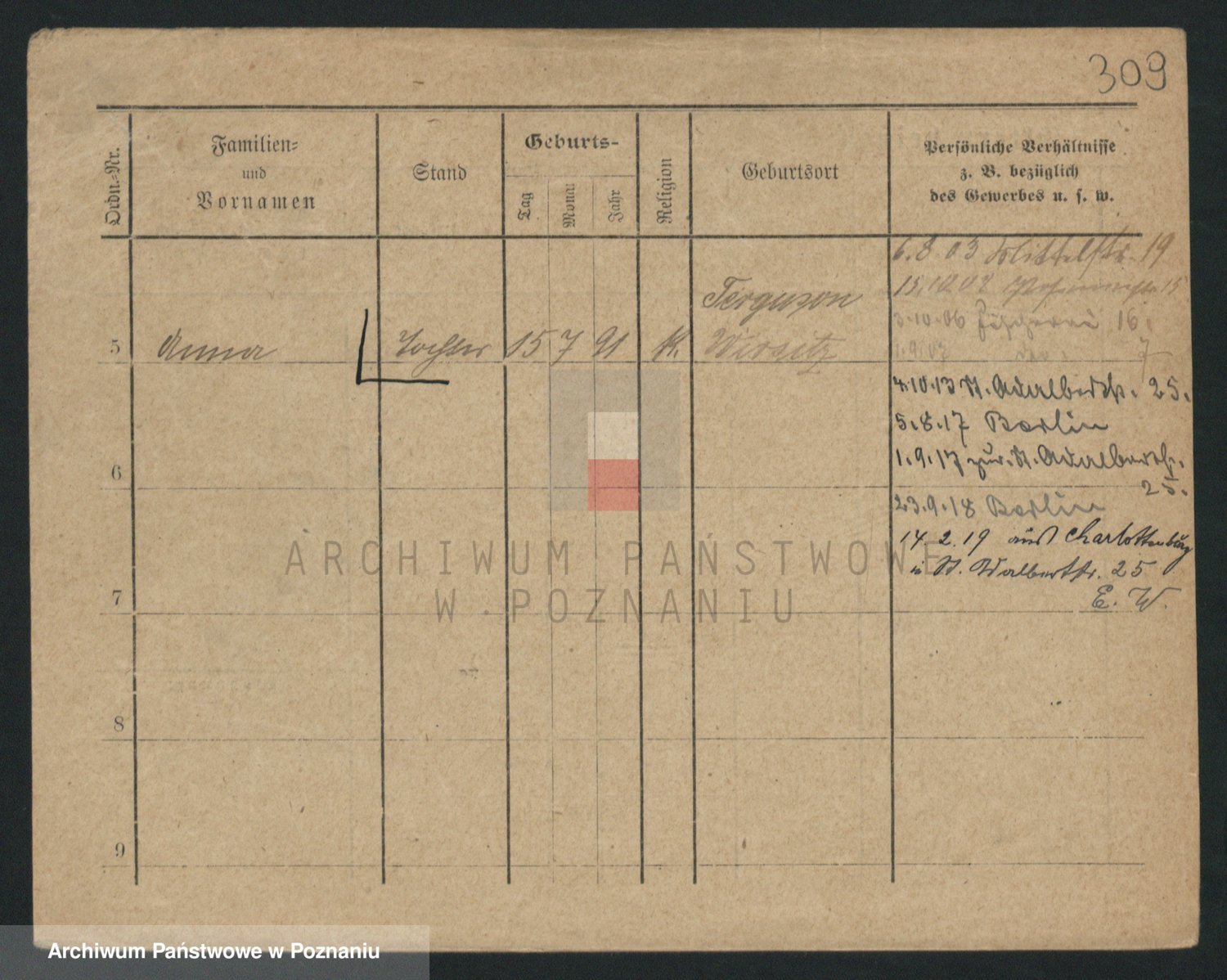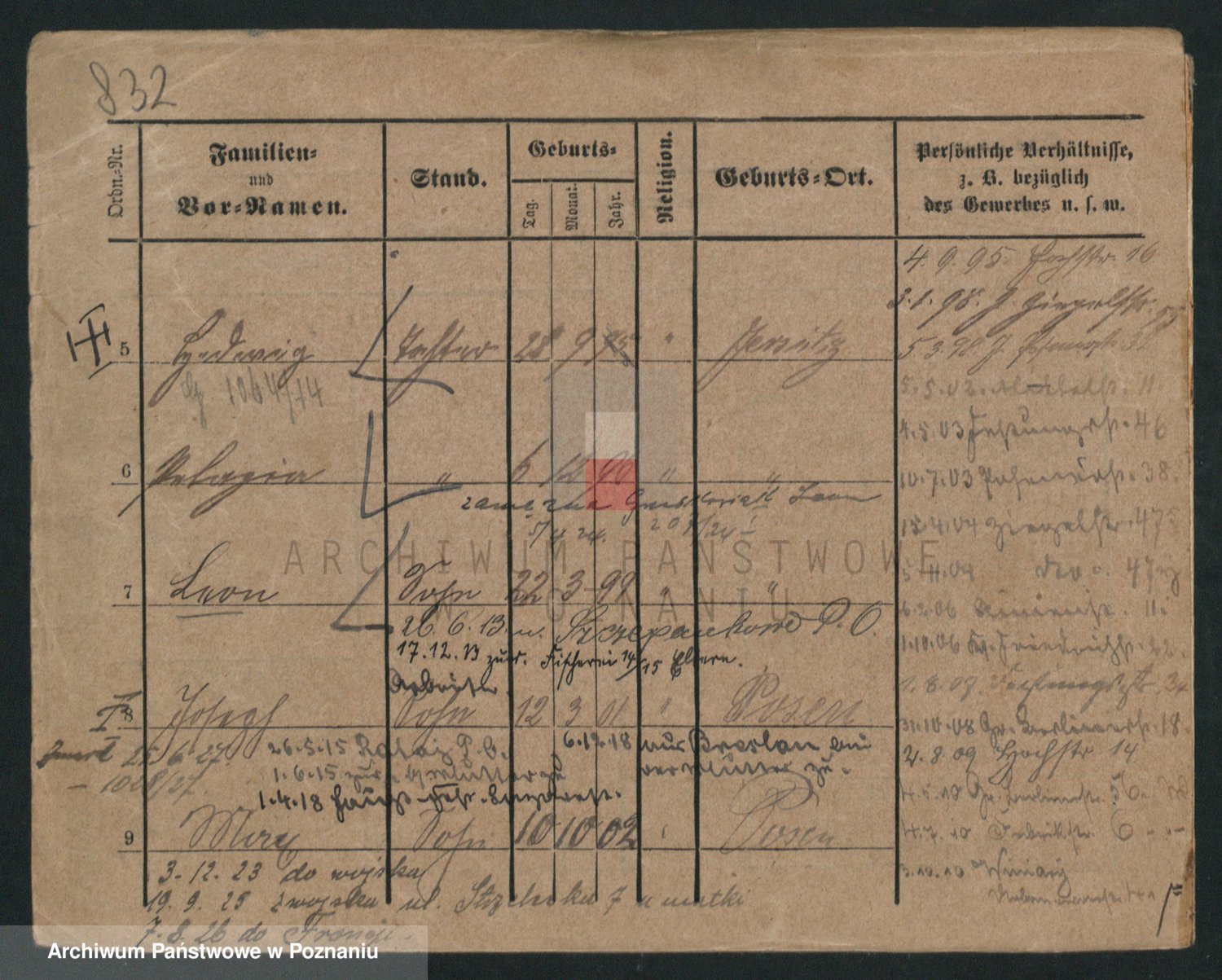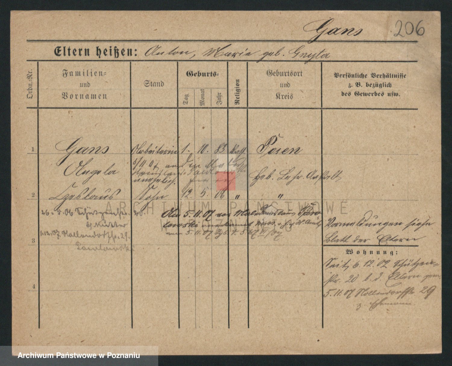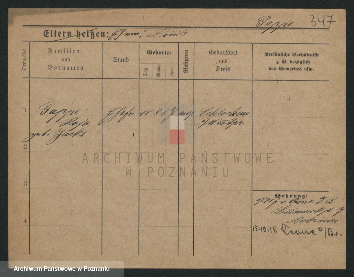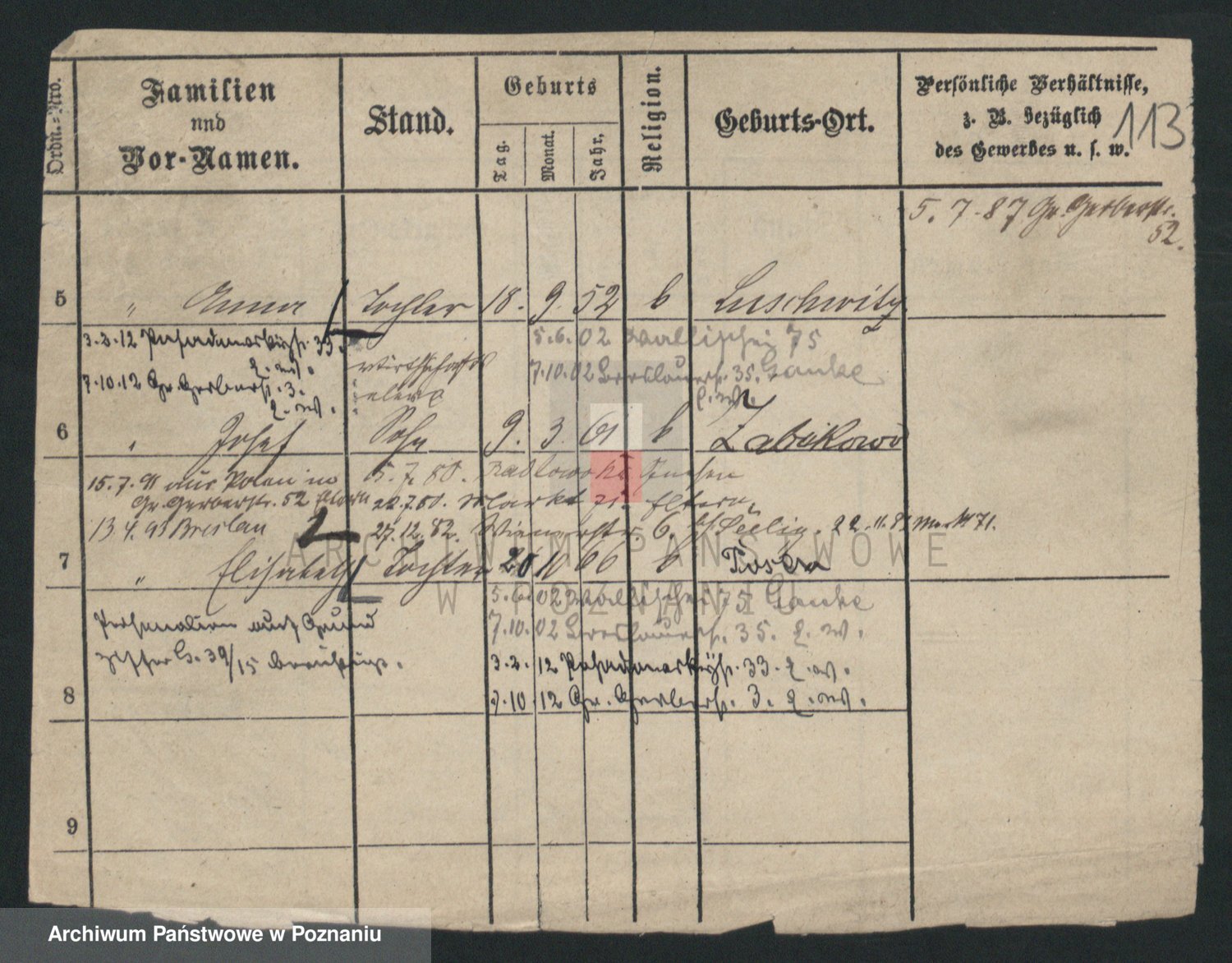 Podgląd karty osobowej dostępny jest po kliknięciu na nazwisko lub ikonkę karty. Można dokonywać powiększenia (ikony na górze) lub przechodzić między kolejnymi skanami (strzałki po bokach).
