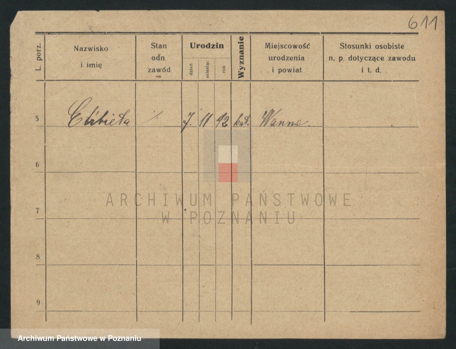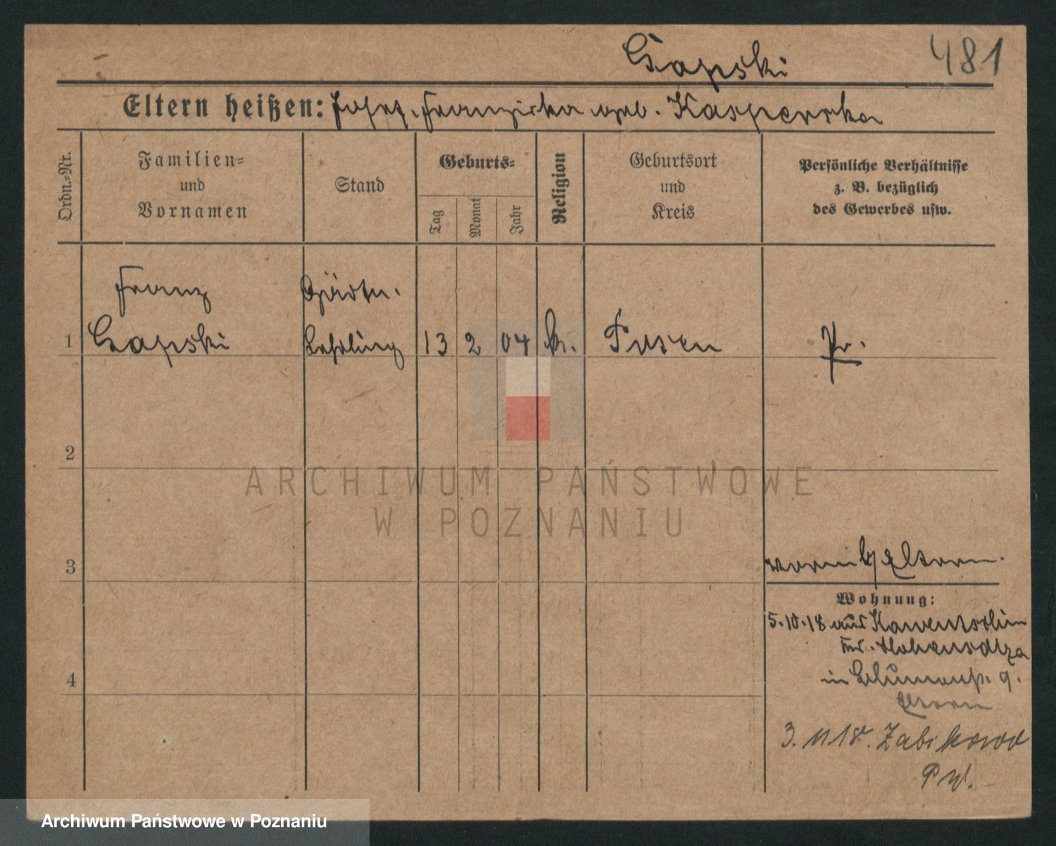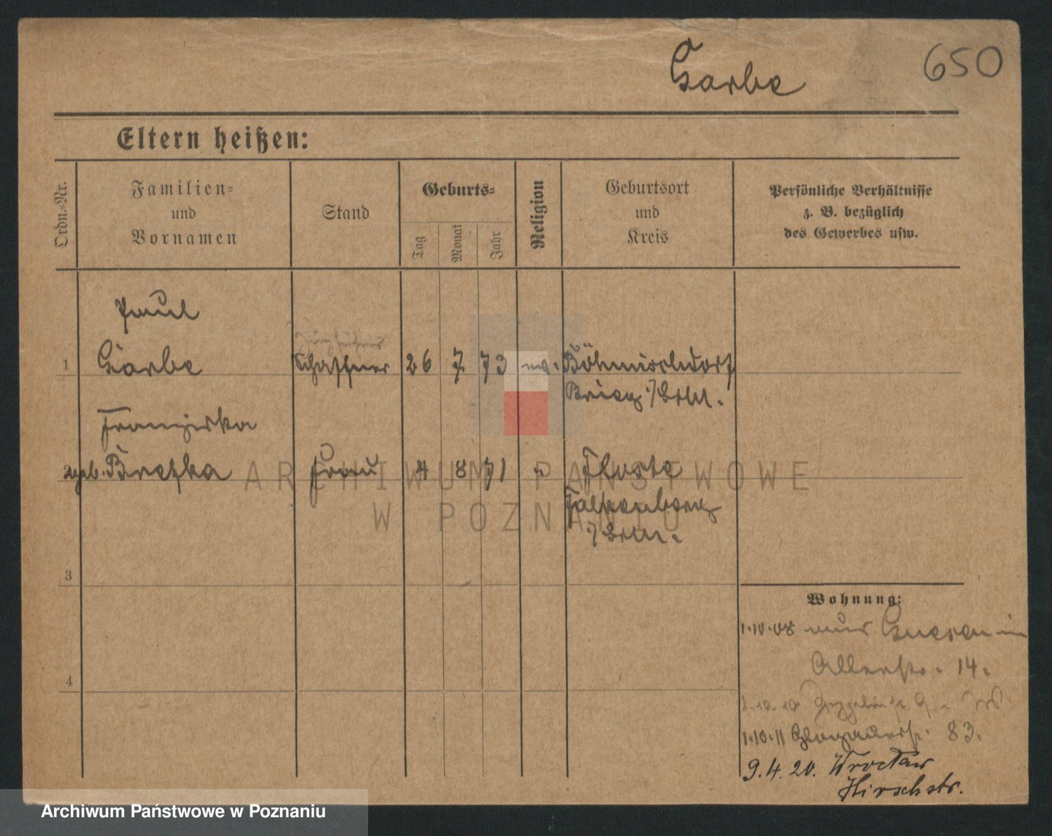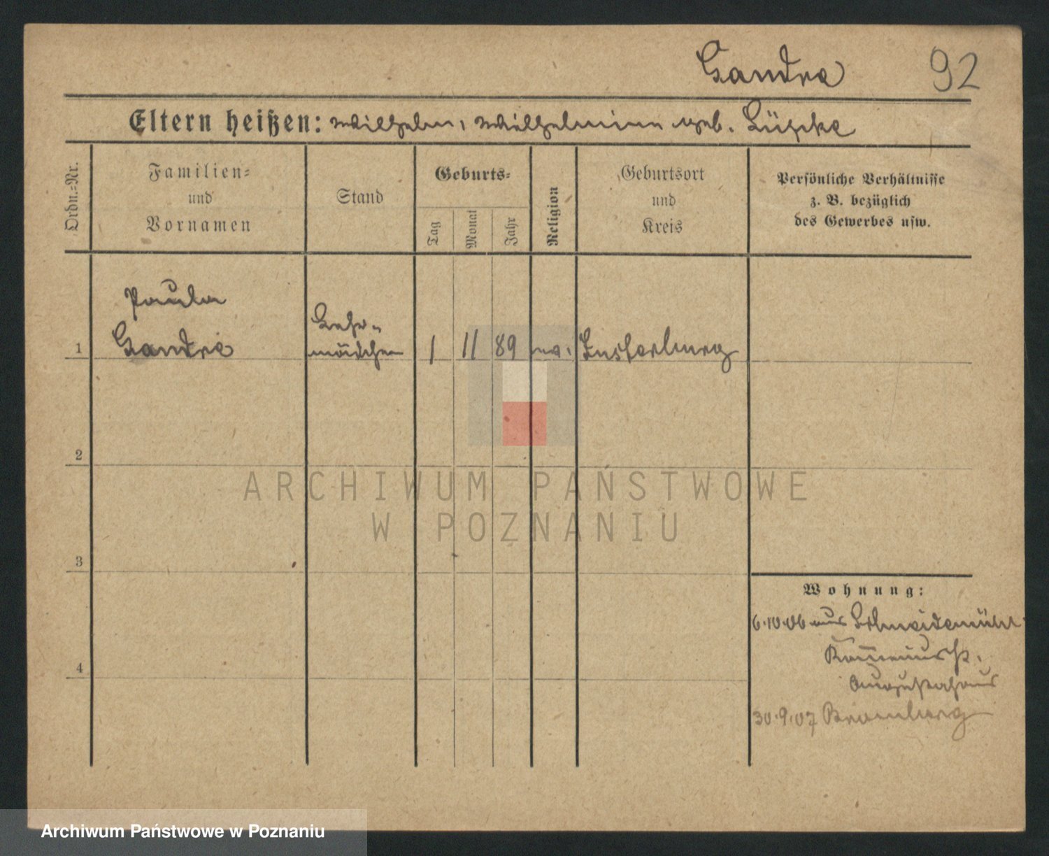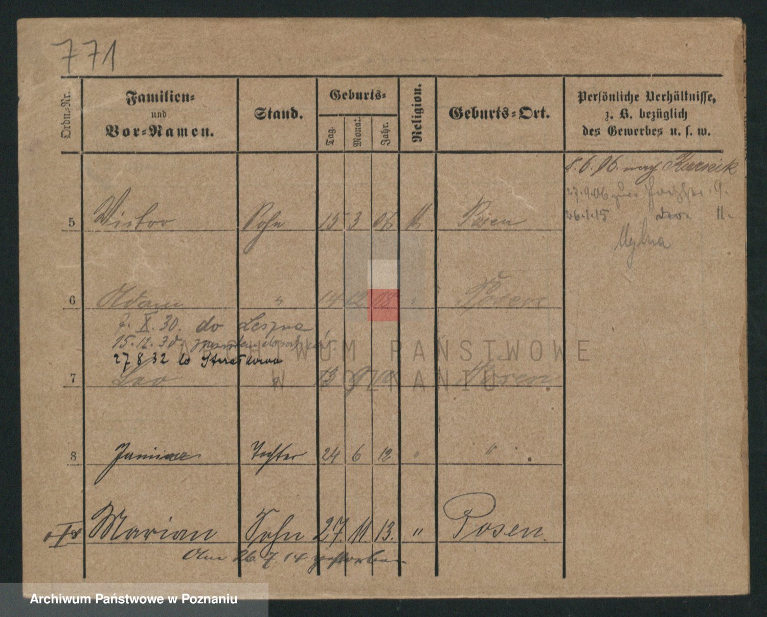 Podgląd karty osobowej dostępny jest po kliknięciu na nazwisko lub ikonkę karty. Można dokonywać powiększenia (ikony na górze) lub przechodzić między kolejnymi skanami (strzałki po bokach).