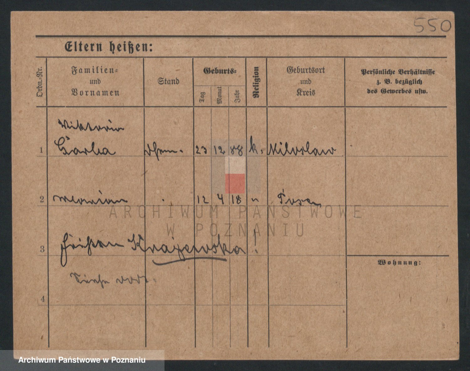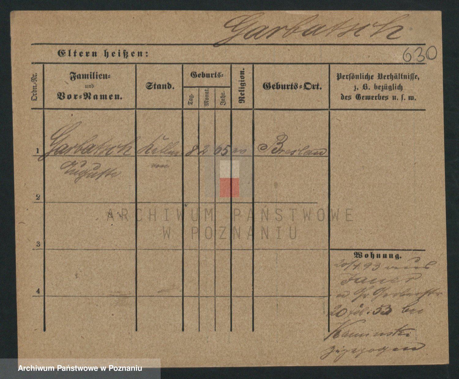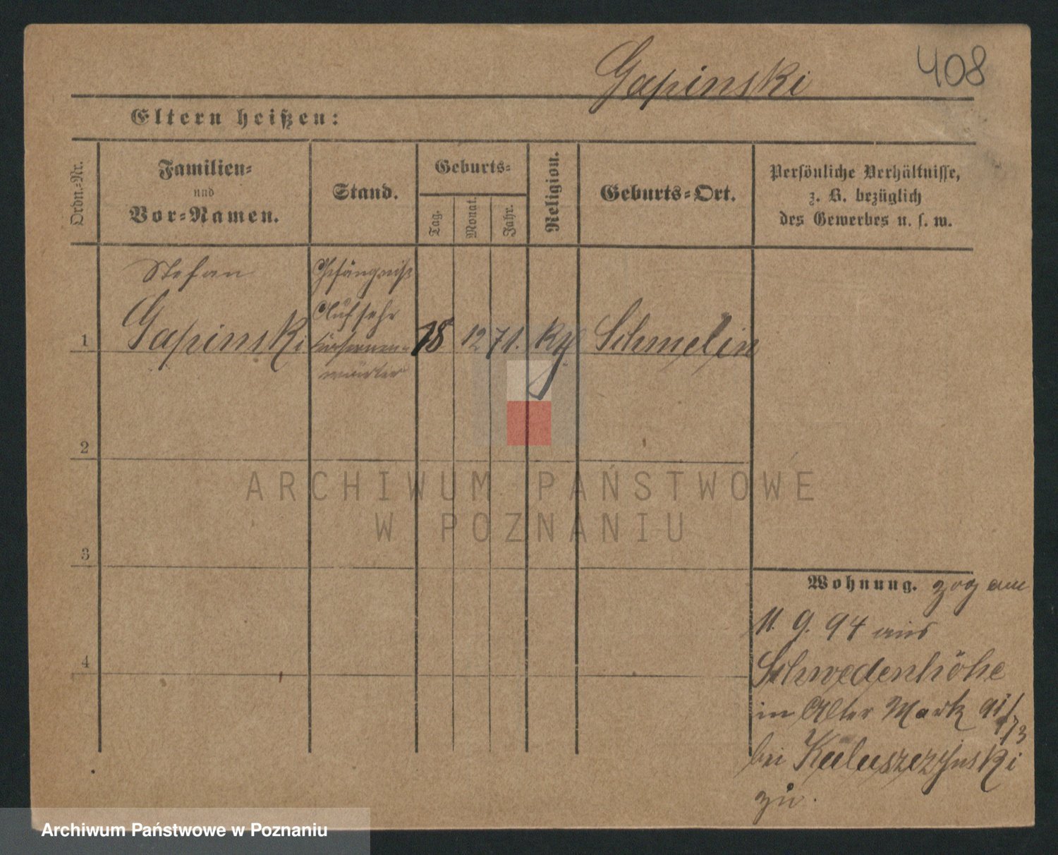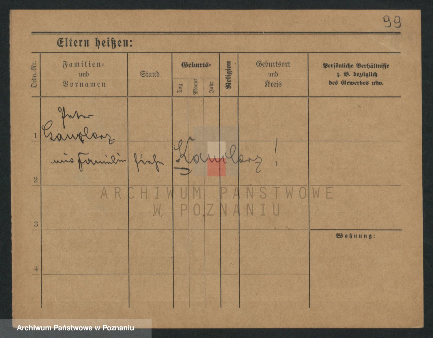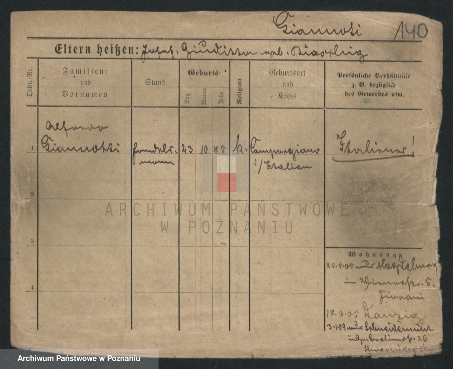 Podgląd karty osobowej dostępny jest po kliknięciu na nazwisko lub ikonkę karty. Można dokonywać powiększenia (ikony na górze) lub przechodzić między kolejnymi skanami (strzałki po bokach).