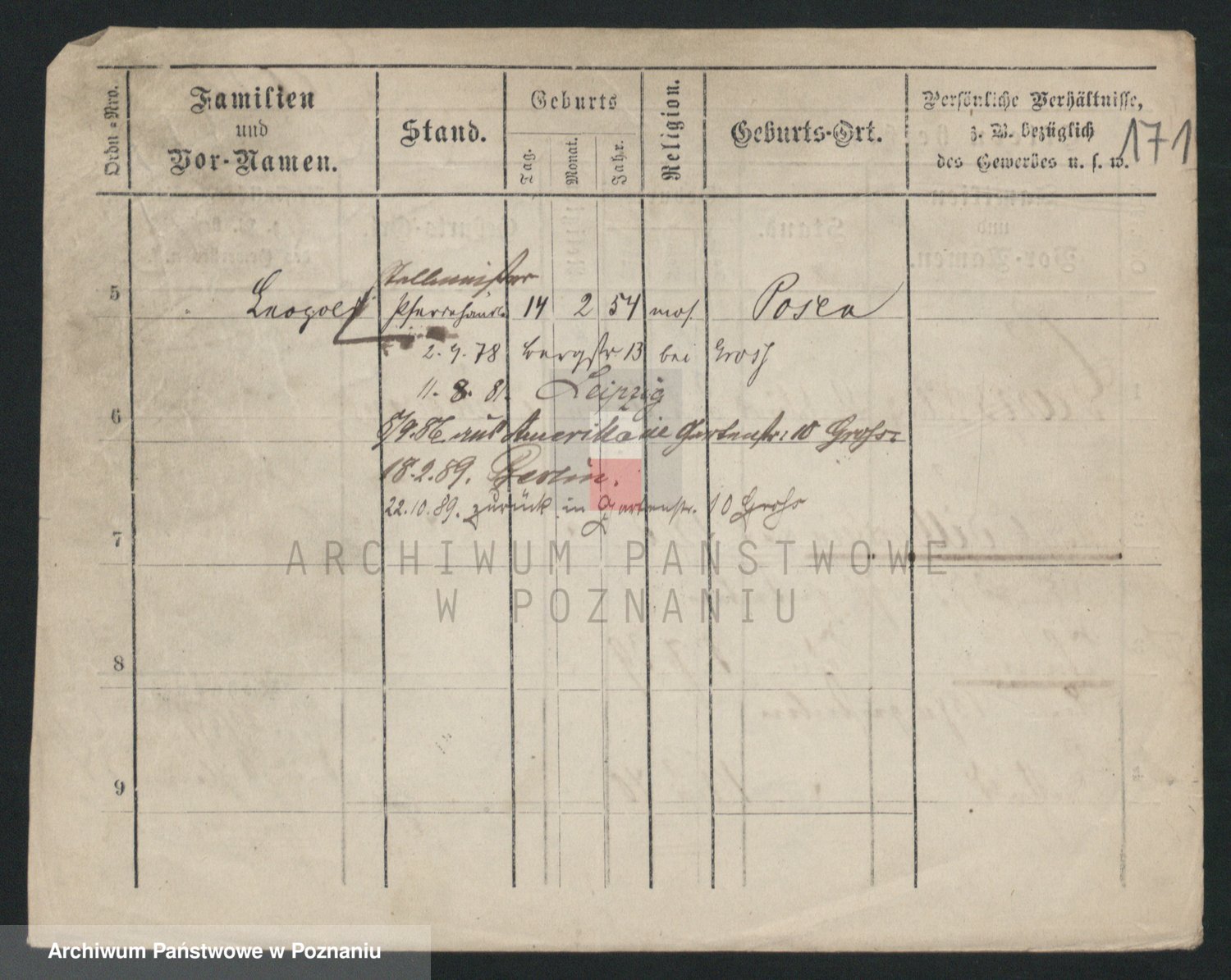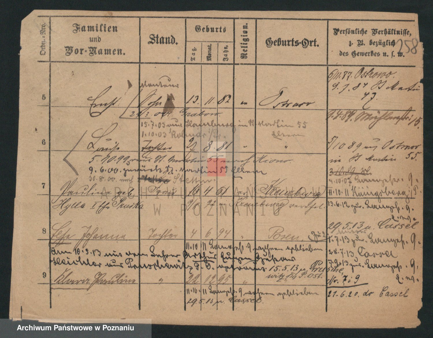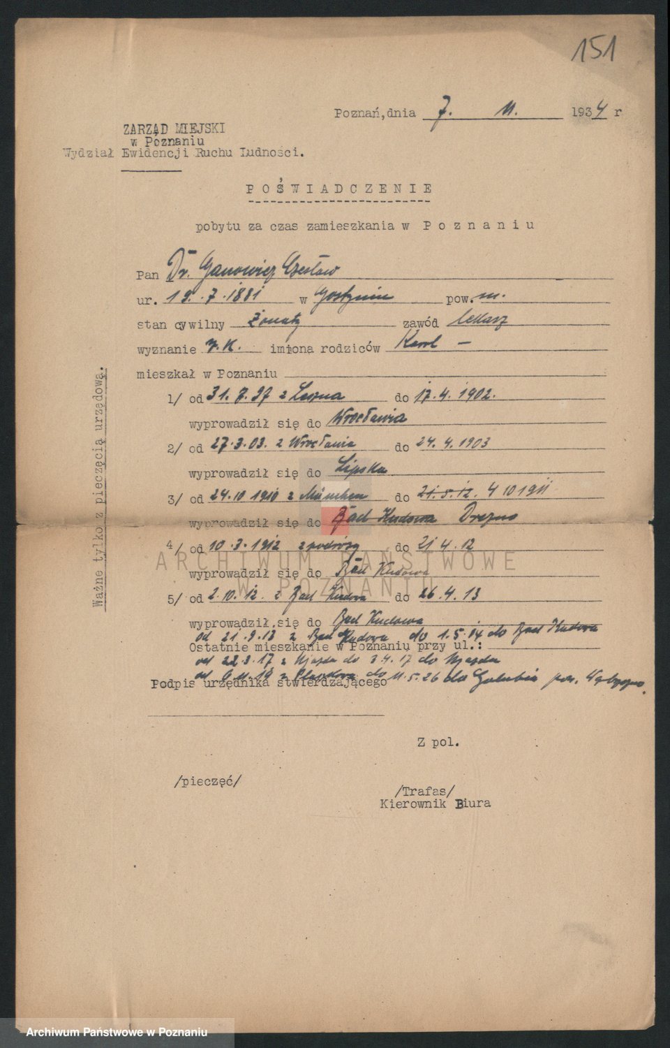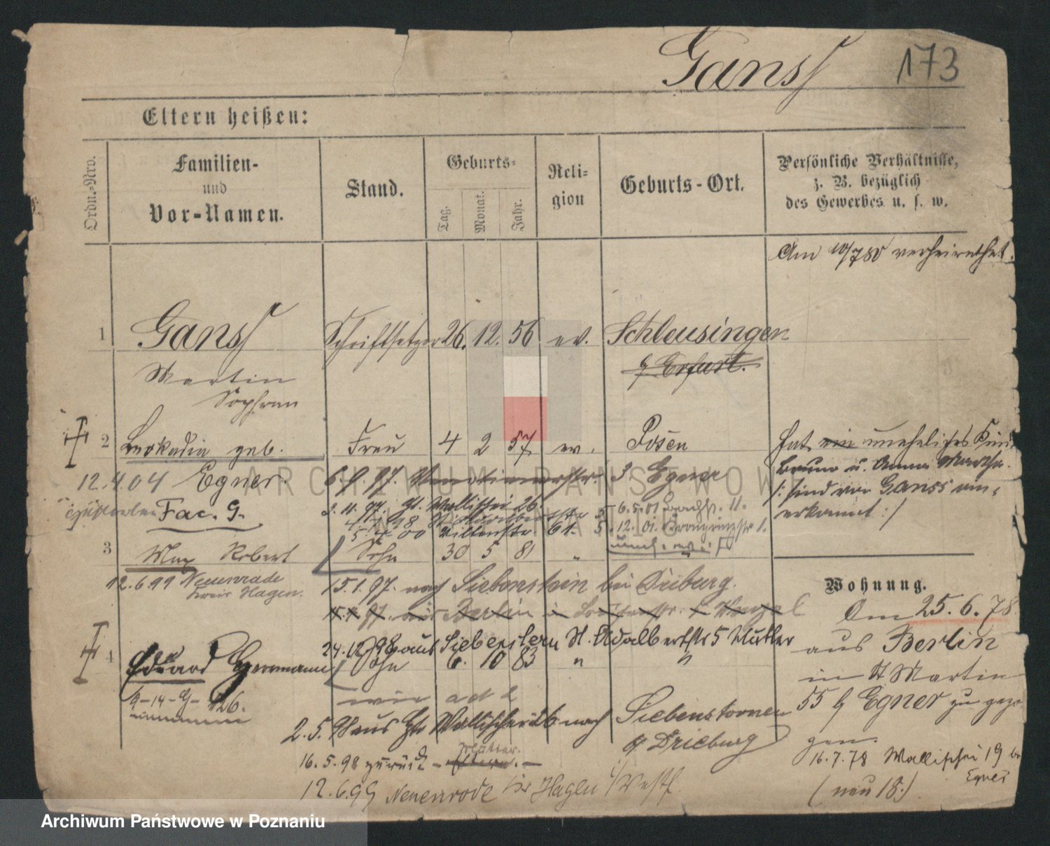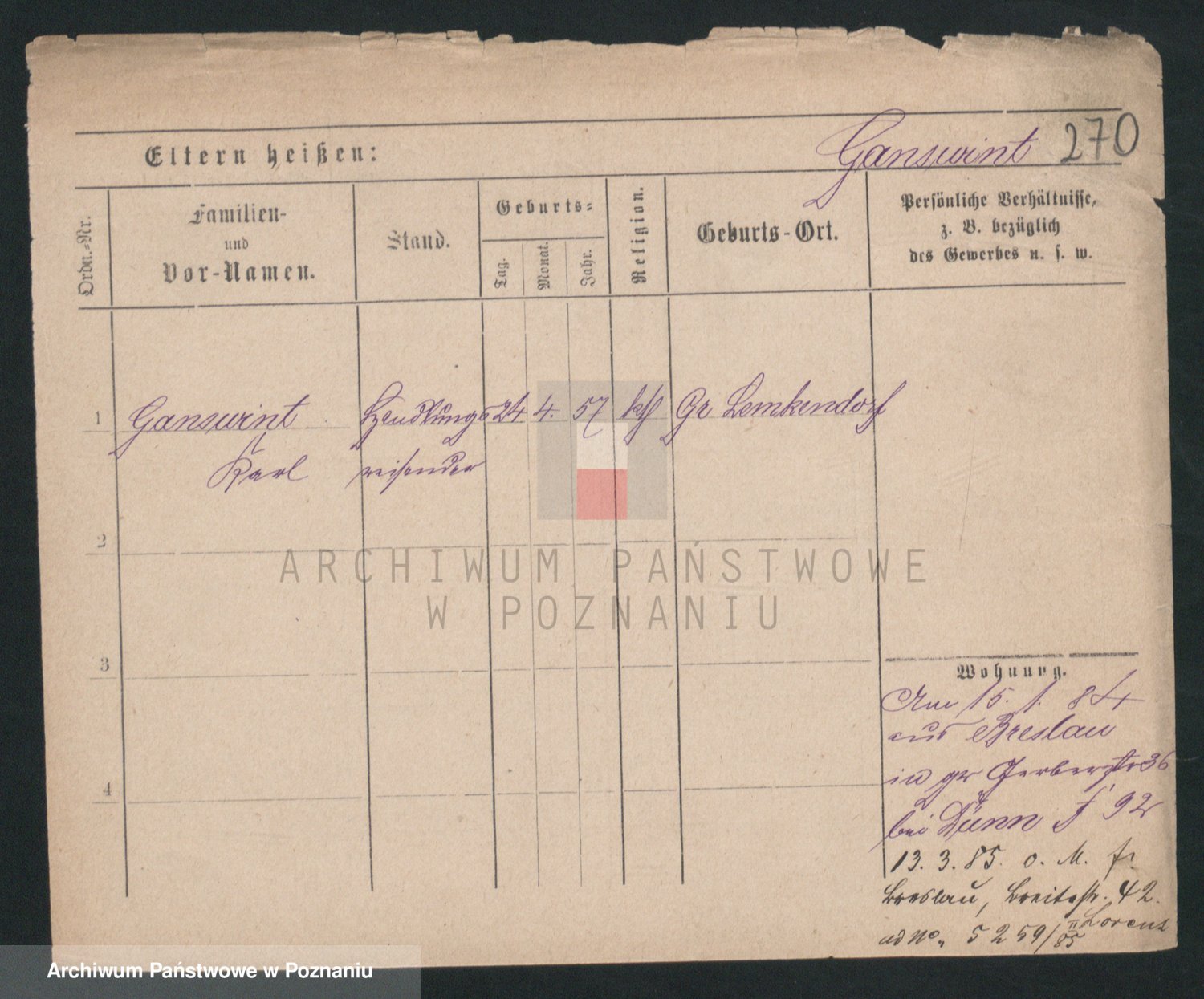 Podgląd karty osobowej dostępny jest po kliknięciu na nazwisko lub ikonkę karty. Można dokonywać powiększenia (ikony na górze) lub przechodzić między kolejnymi skanami (strzałki po bokach).