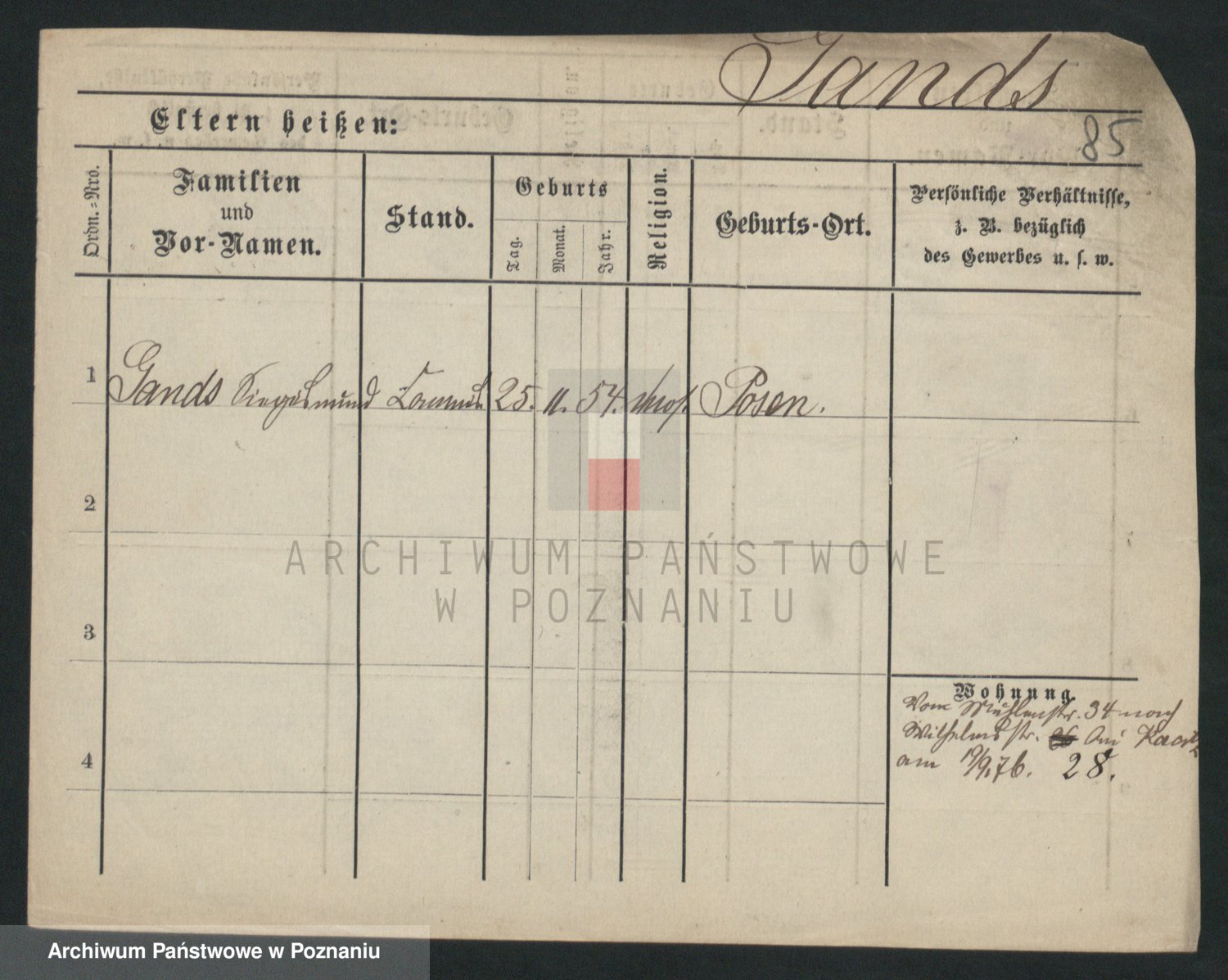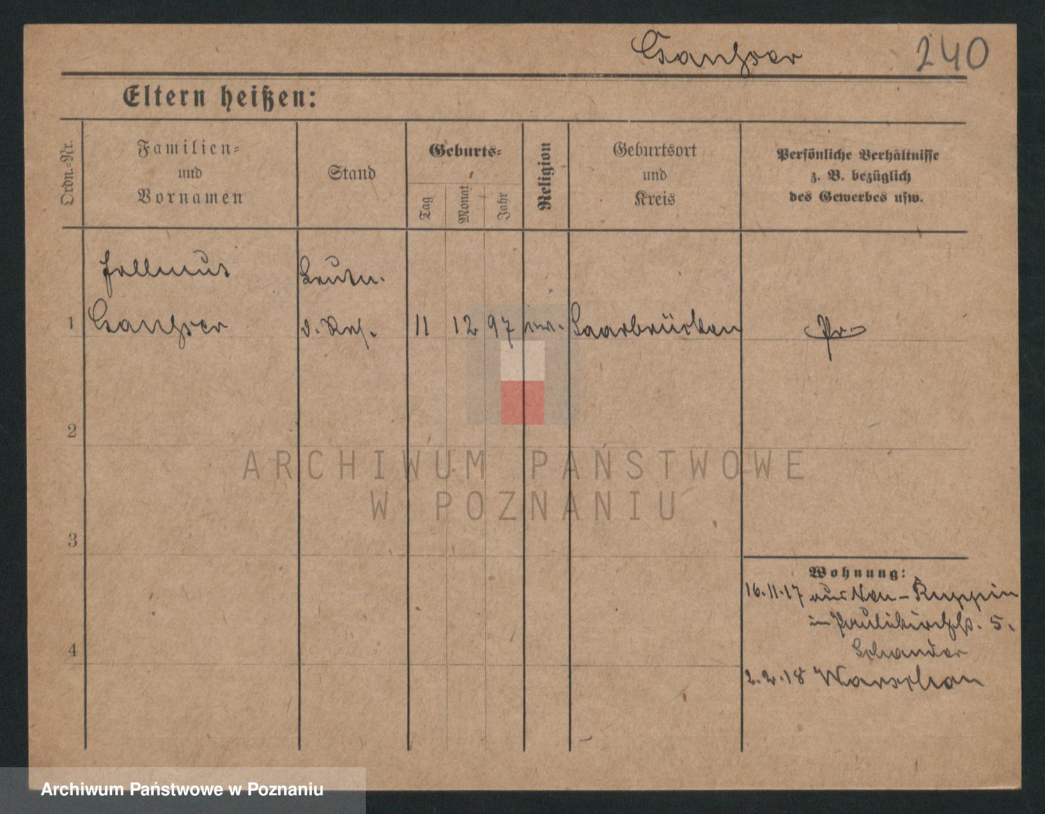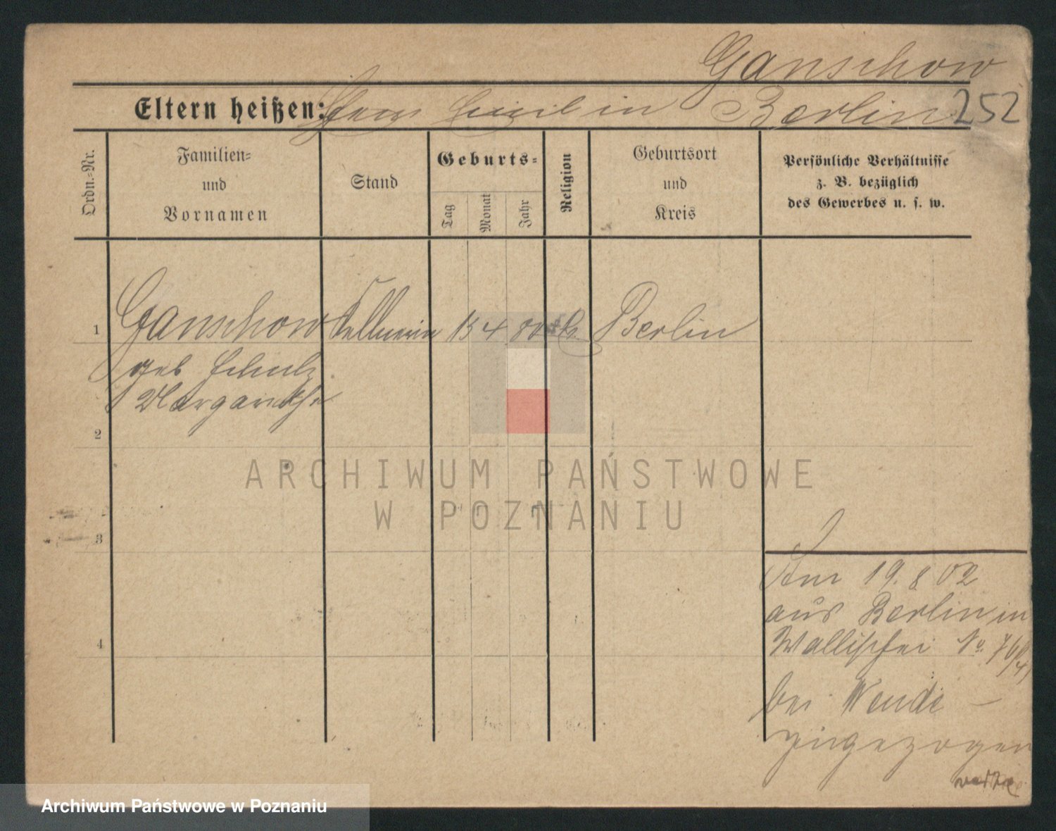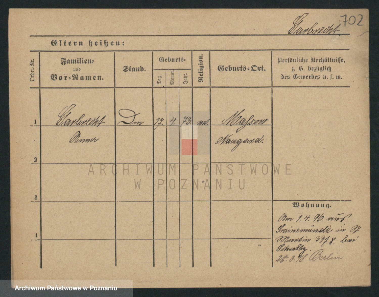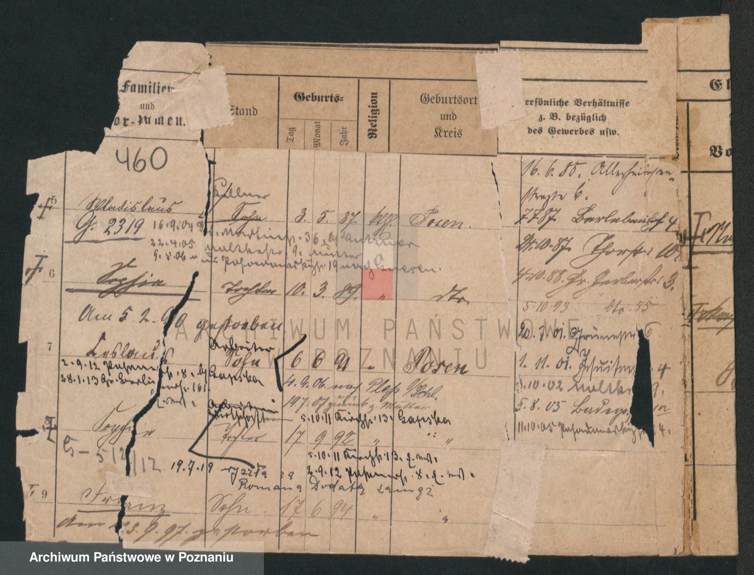 Podgląd karty osobowej dostępny jest po kliknięciu na nazwisko lub ikonkę karty. Można dokonywać powiększenia (ikony na górze) lub przechodzić między kolejnymi skanami (strzałki po bokach).