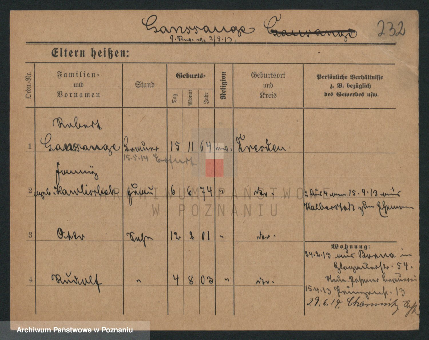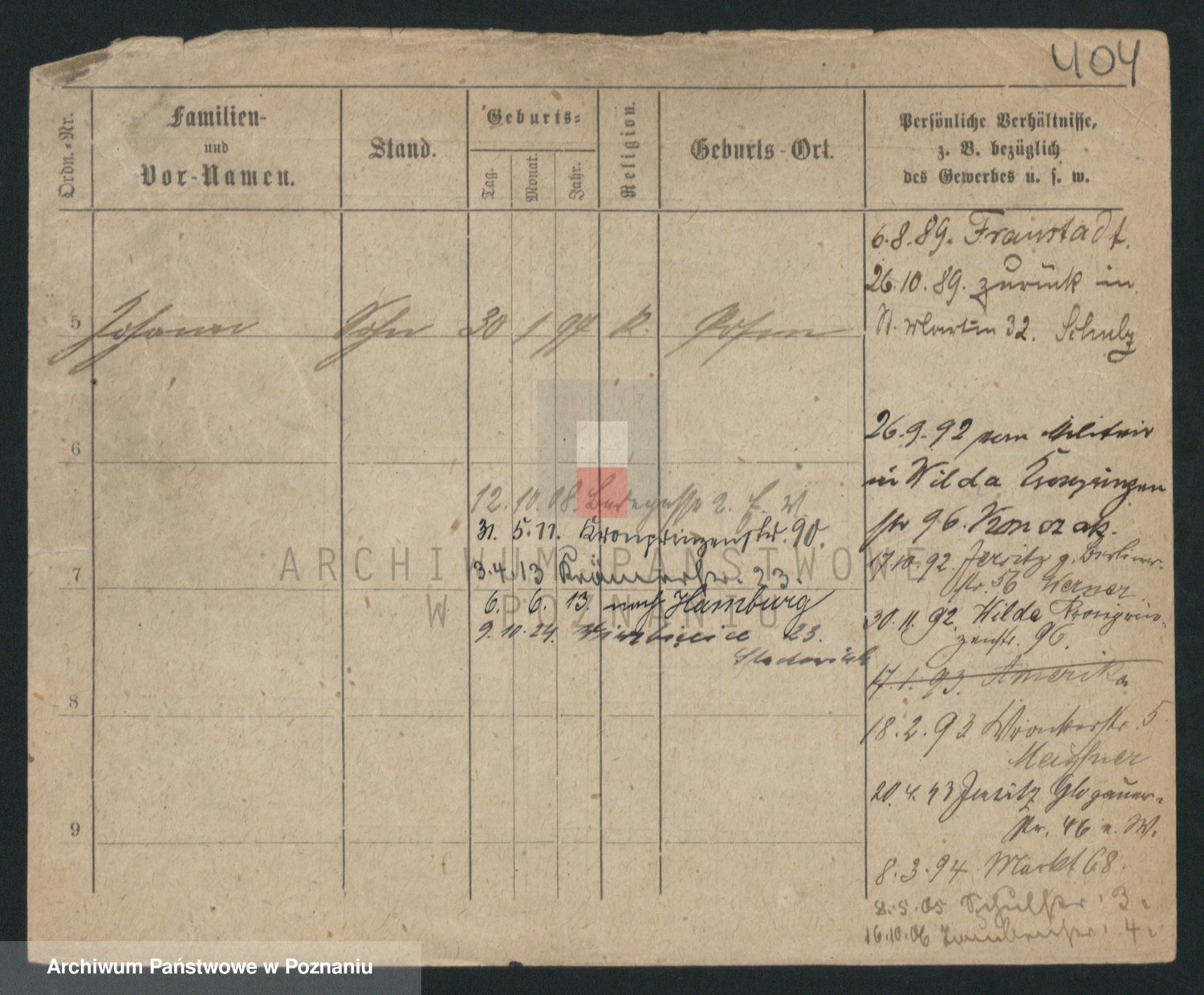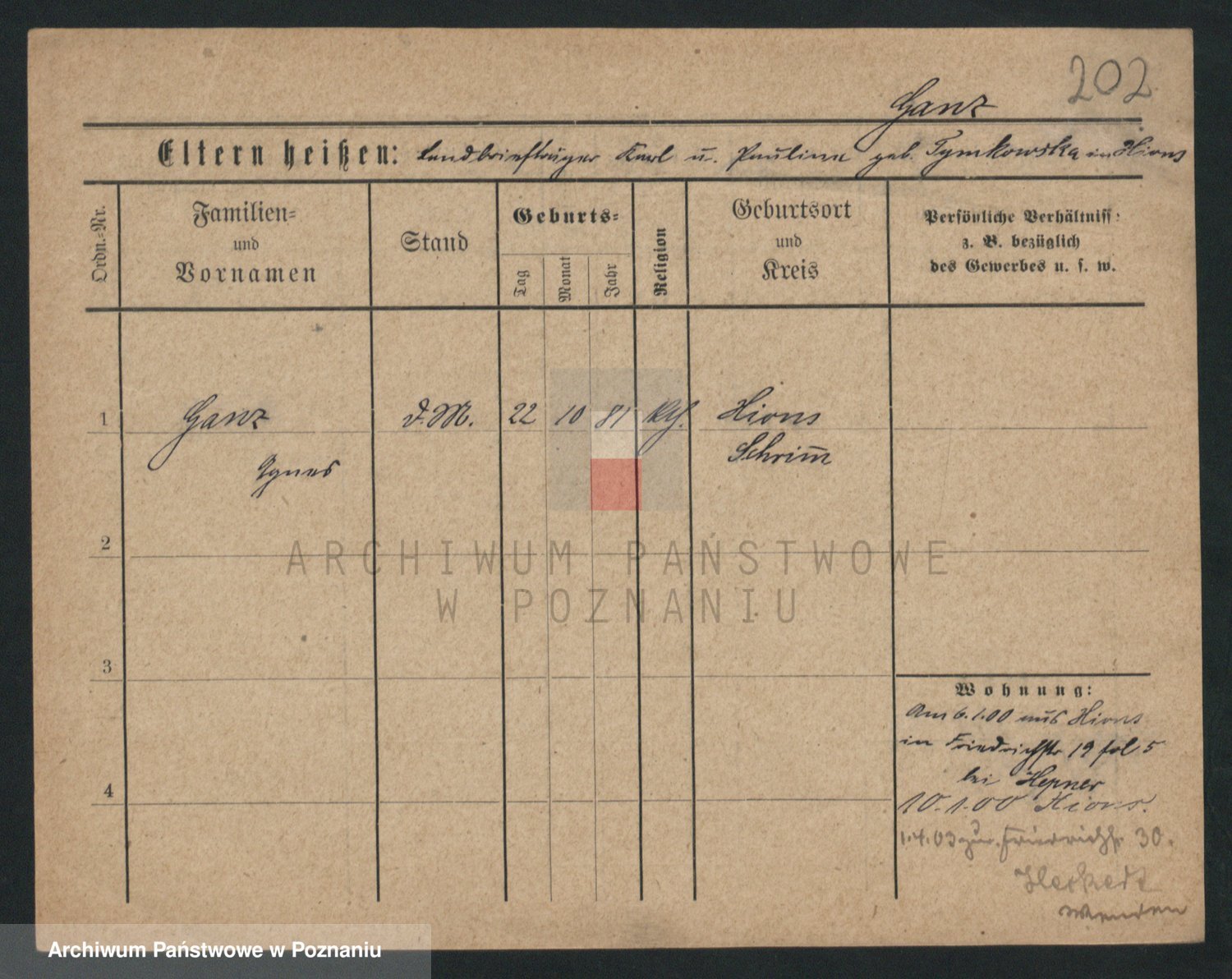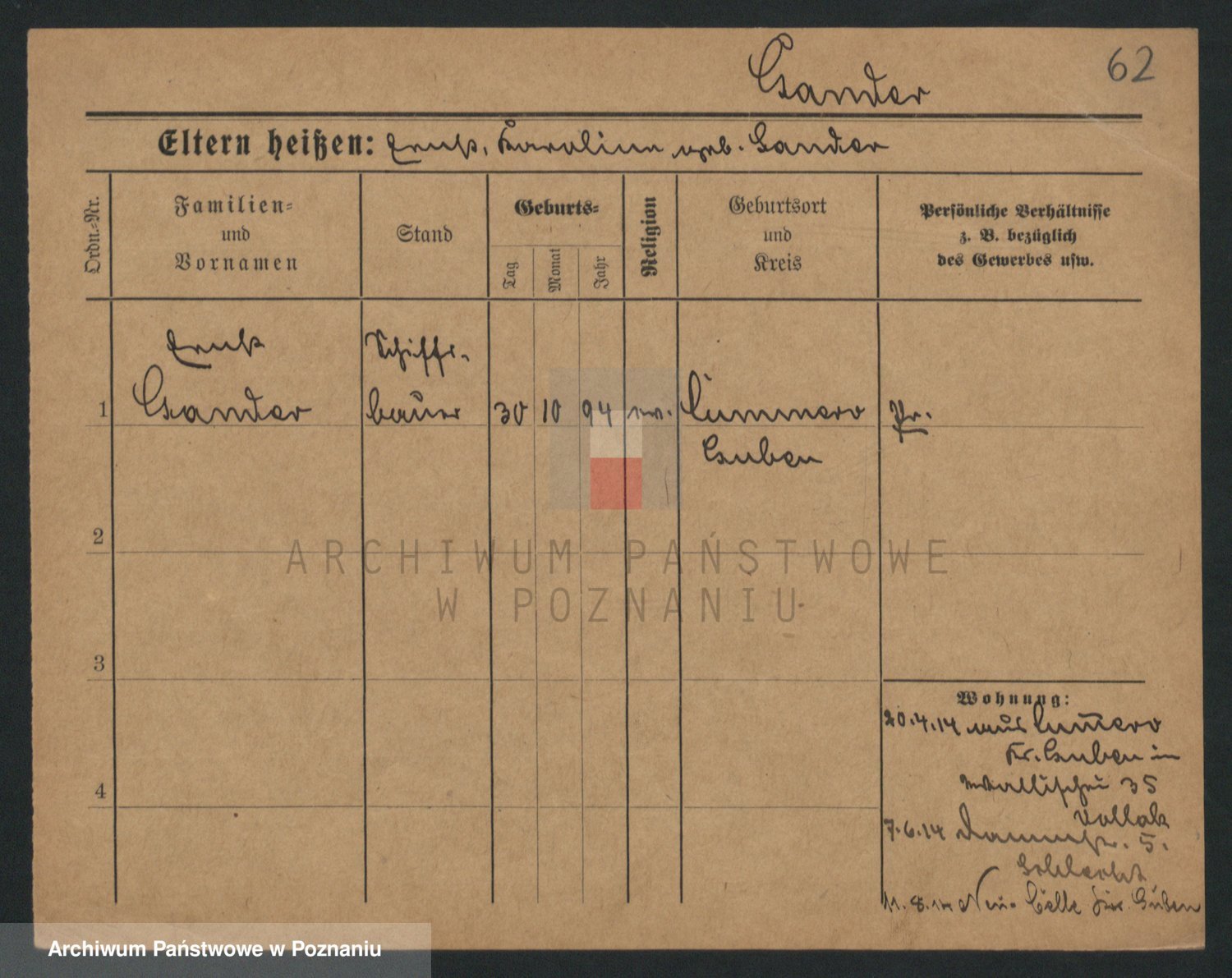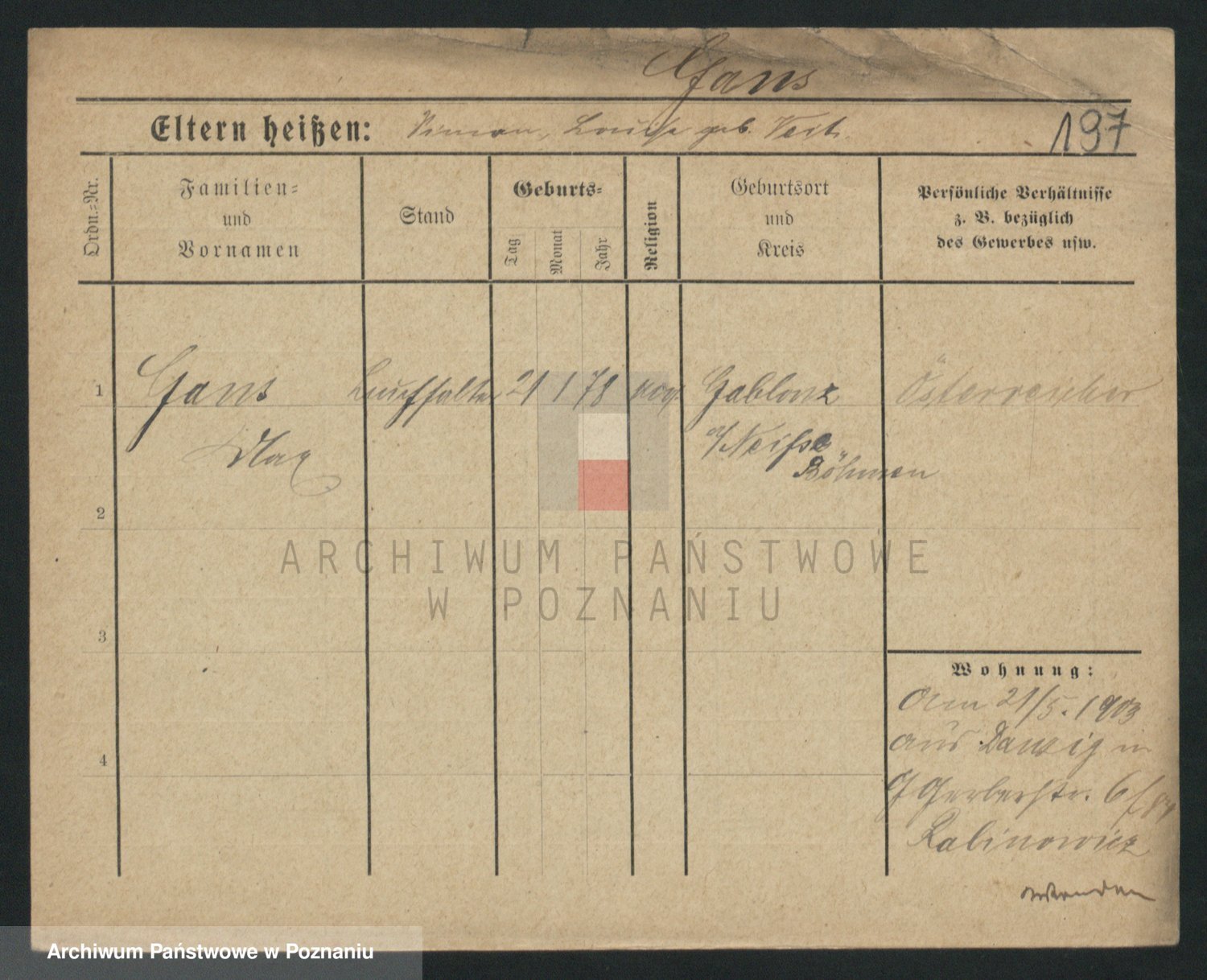 Podgląd karty osobowej dostępny jest po kliknięciu na nazwisko lub ikonkę karty. Można dokonywać powiększenia (ikony na górze) lub przechodzić między kolejnymi skanami (strzałki po bokach).