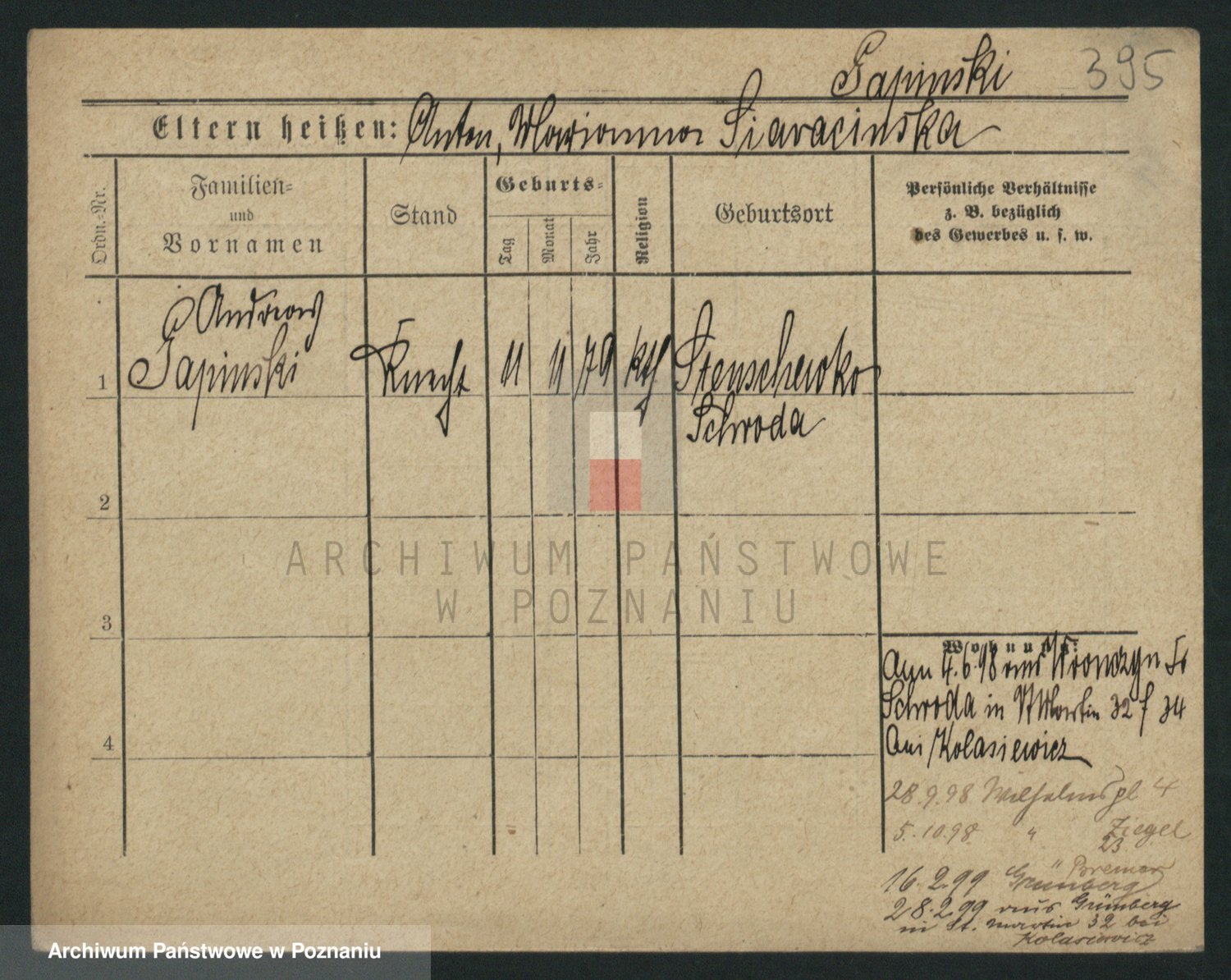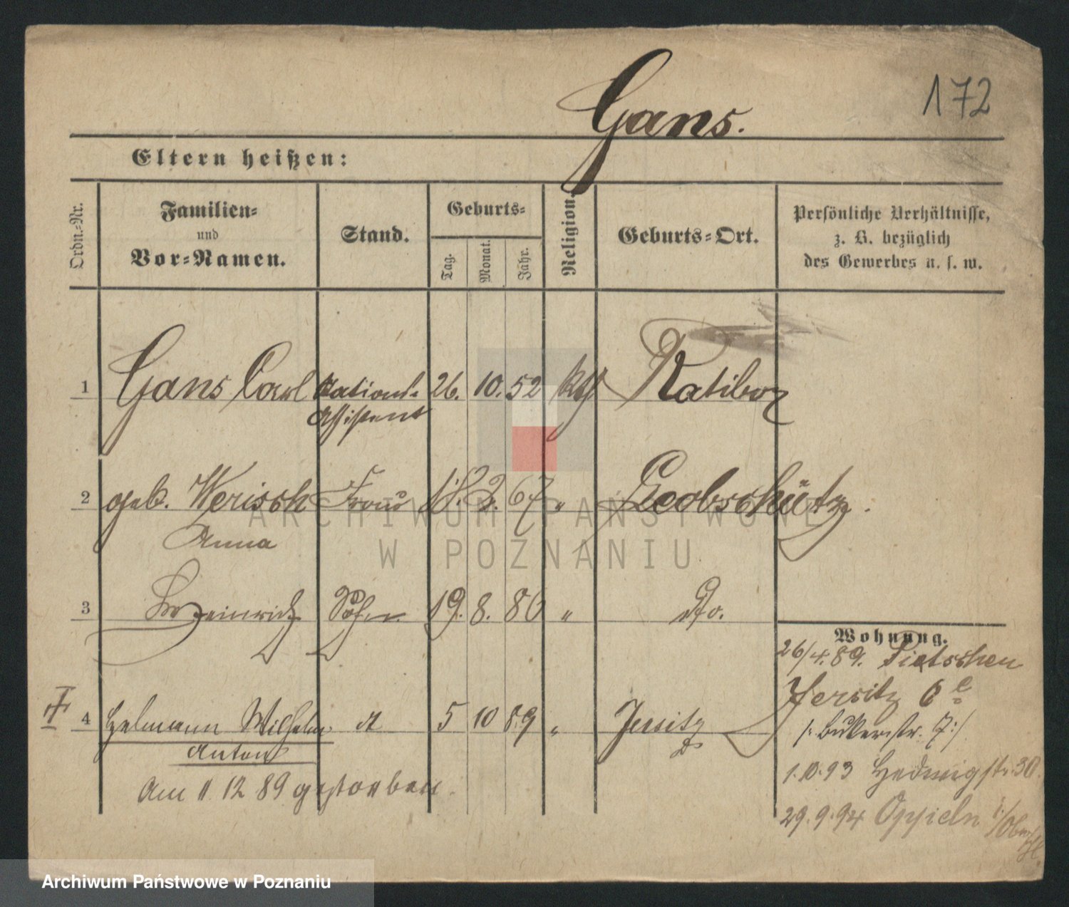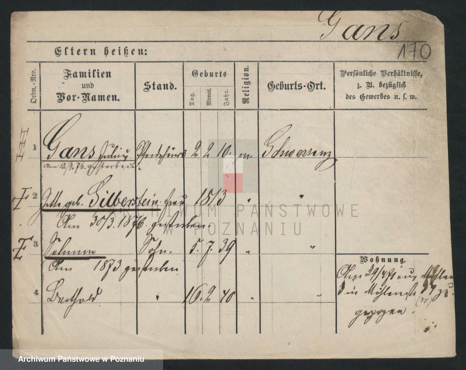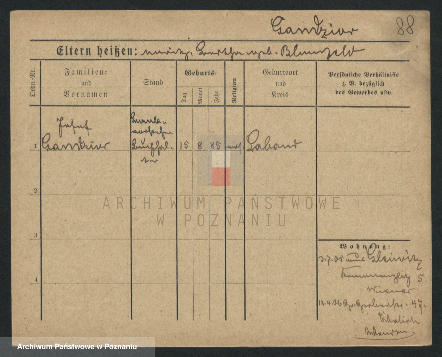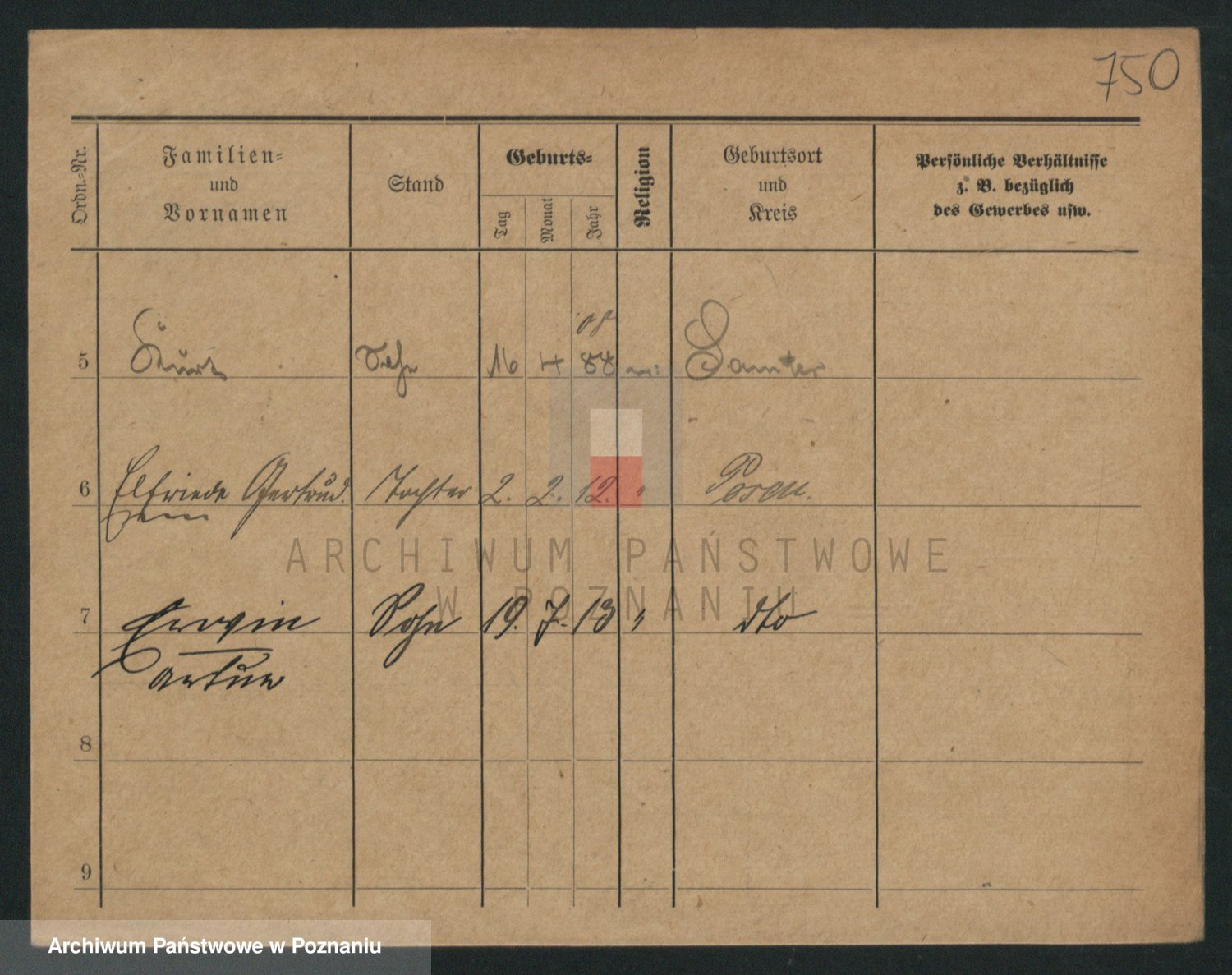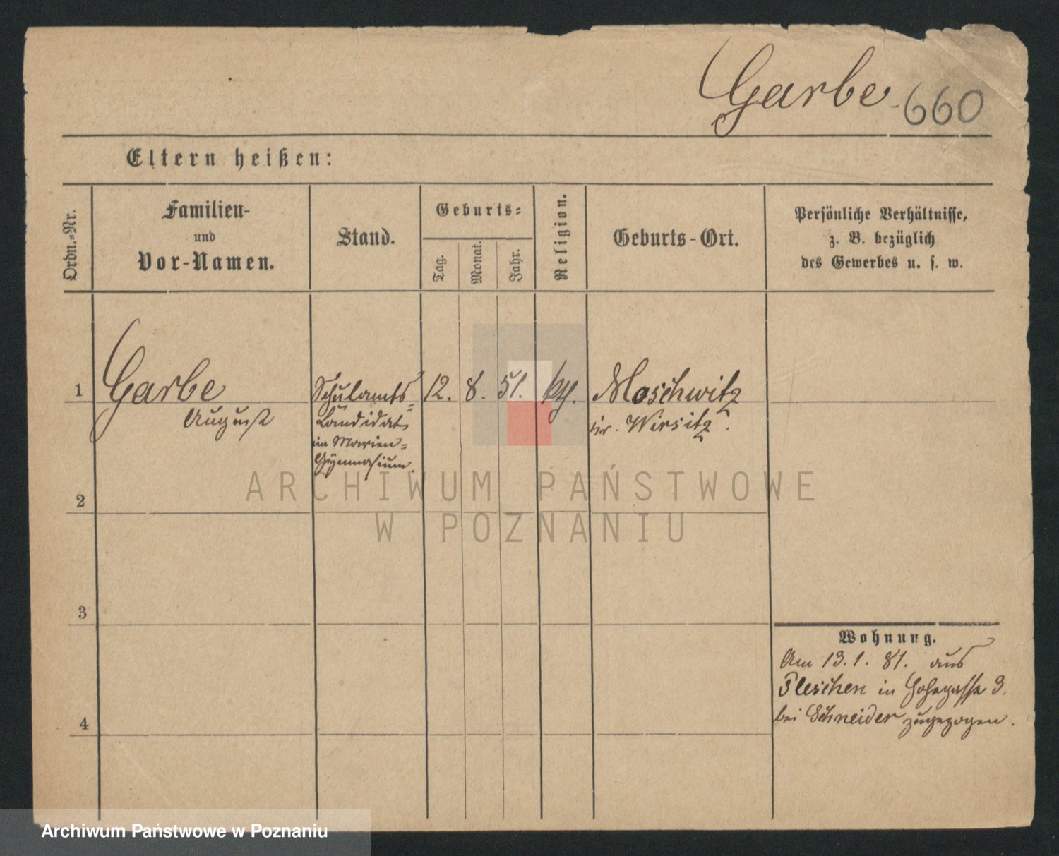 Podgląd karty osobowej dostępny jest po kliknięciu na nazwisko lub ikonkę karty. Można dokonywać powiększenia (ikony na górze) lub przechodzić między kolejnymi skanami (strzałki po bokach).
