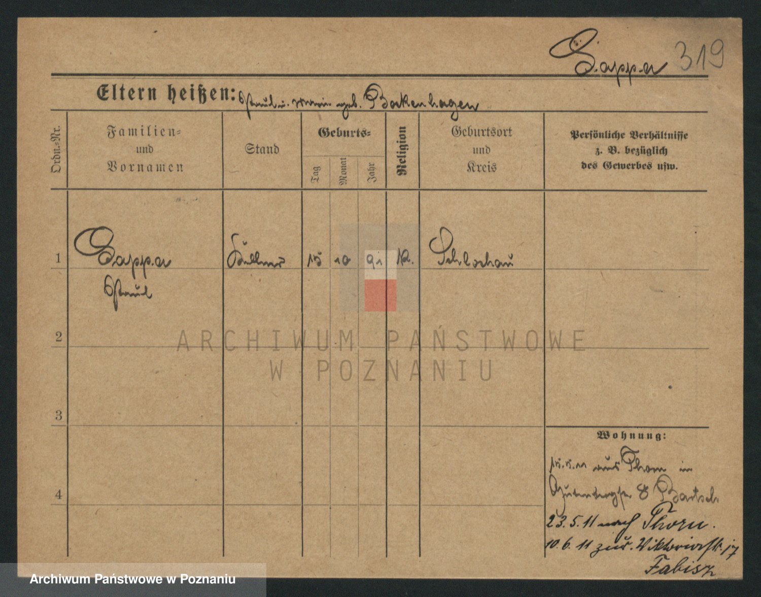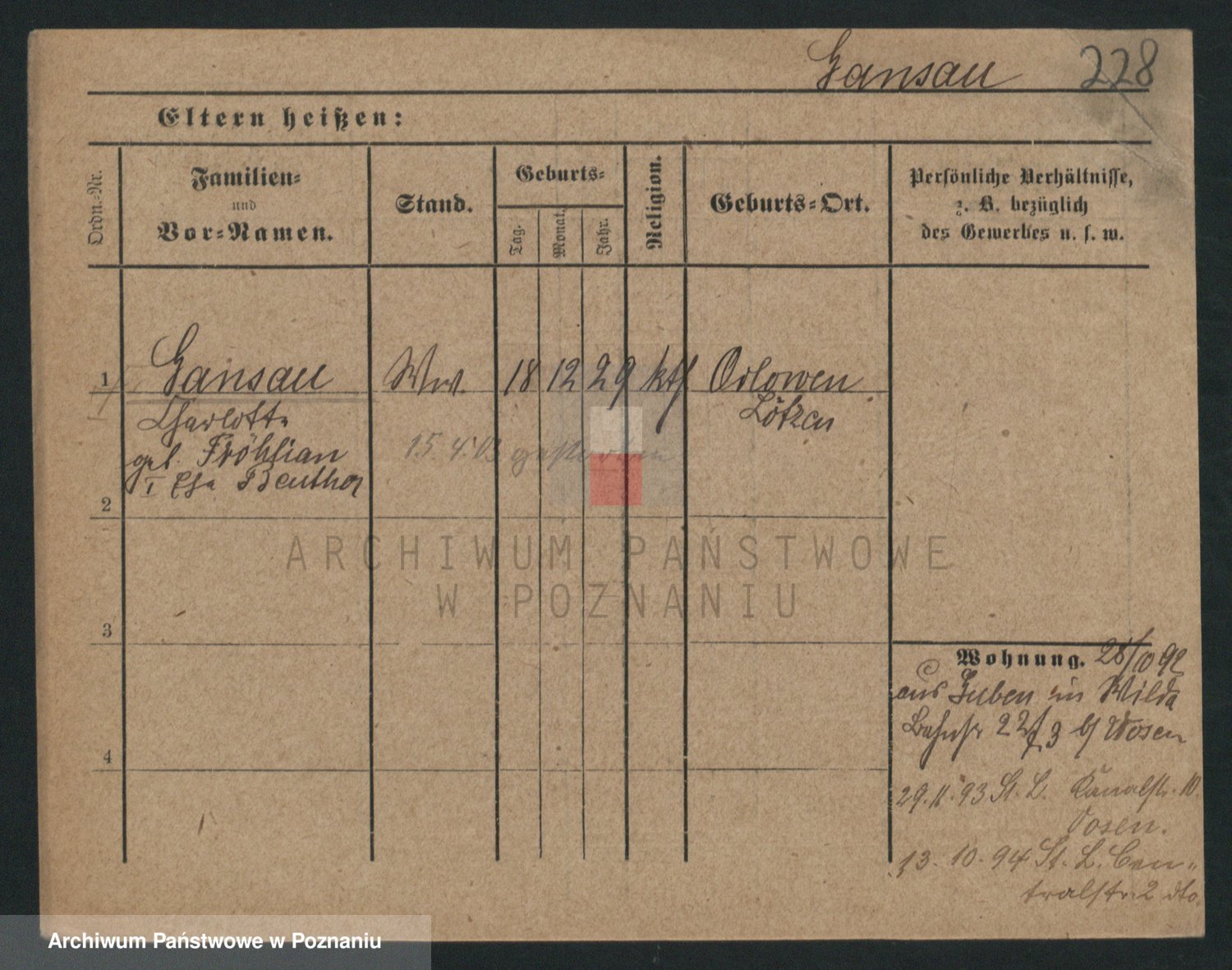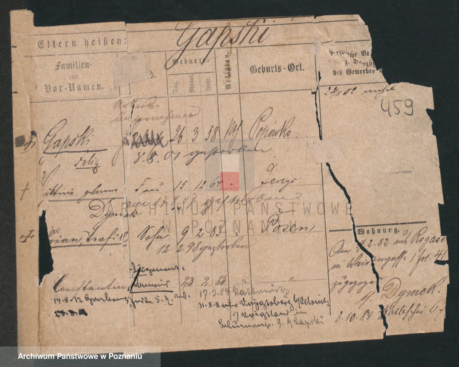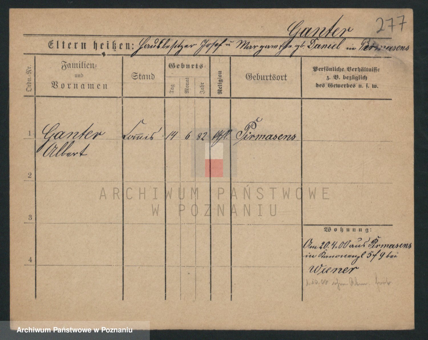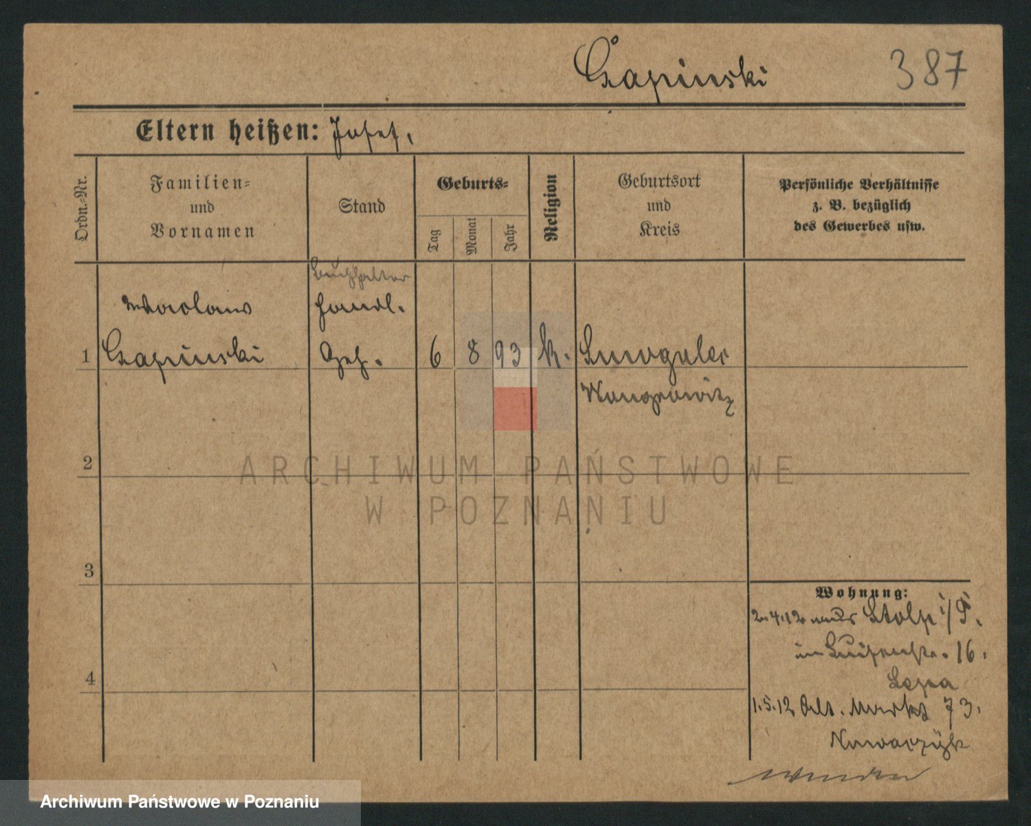 Podgląd karty osobowej dostępny jest po kliknięciu na nazwisko lub ikonkę karty. Można dokonywać powiększenia (ikony na górze) lub przechodzić między kolejnymi skanami (strzałki po bokach).