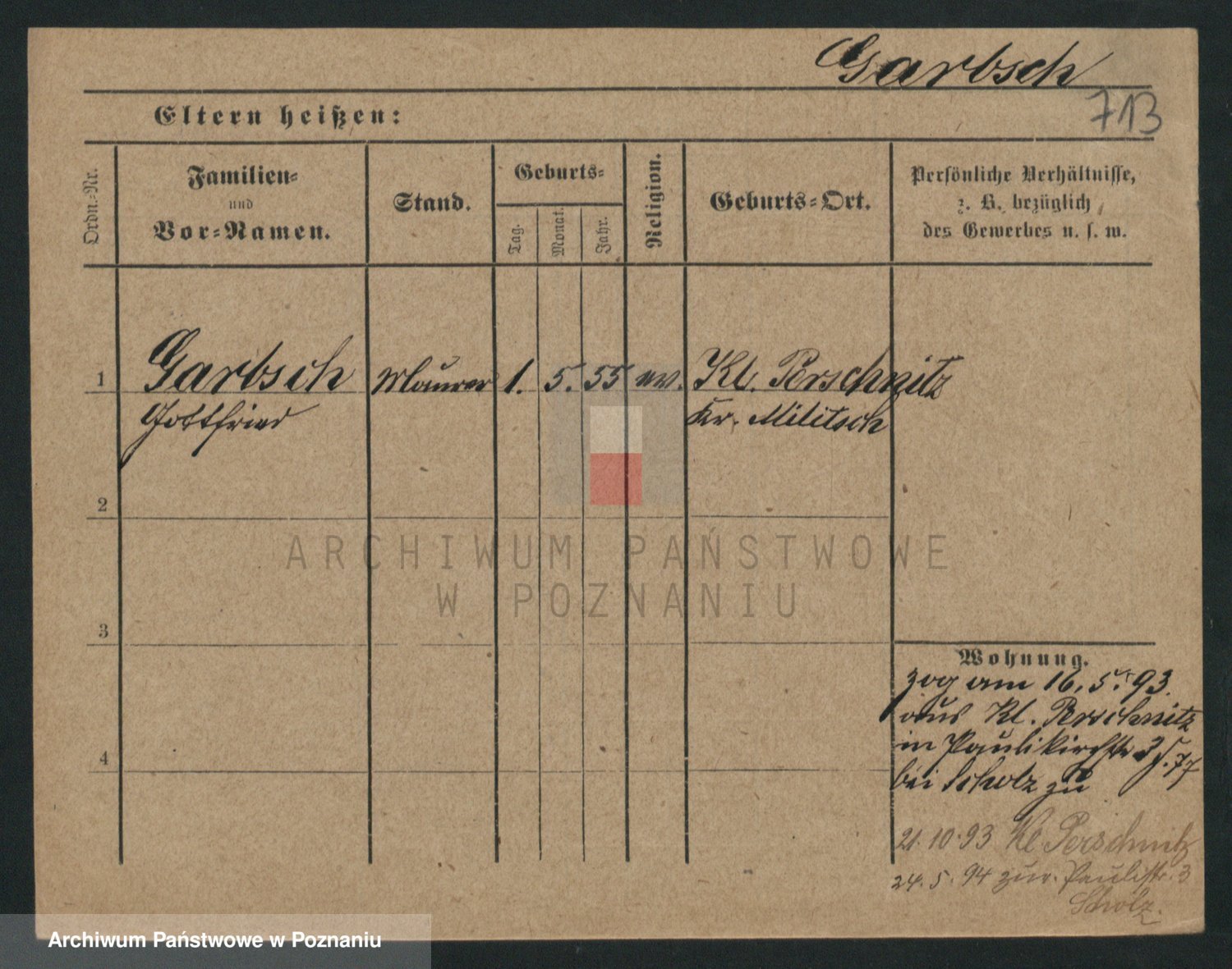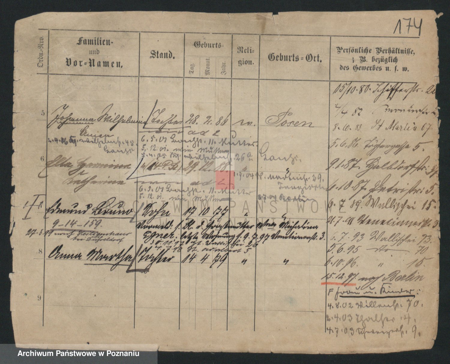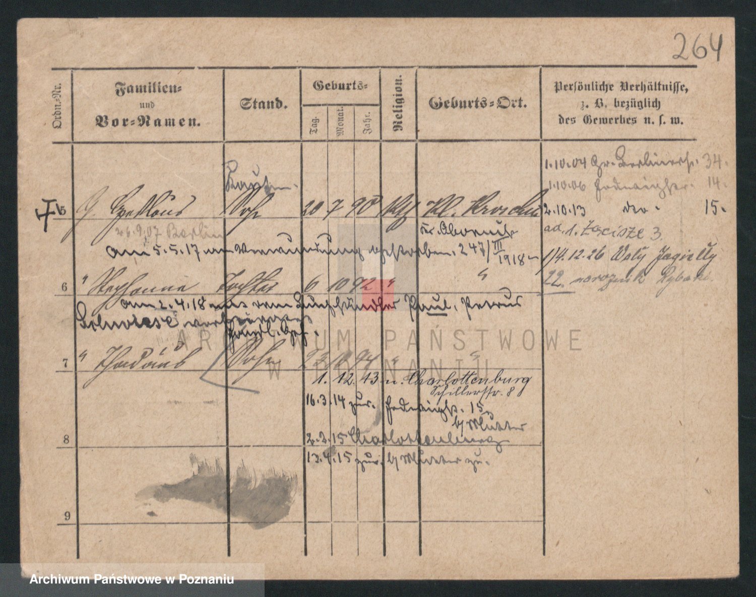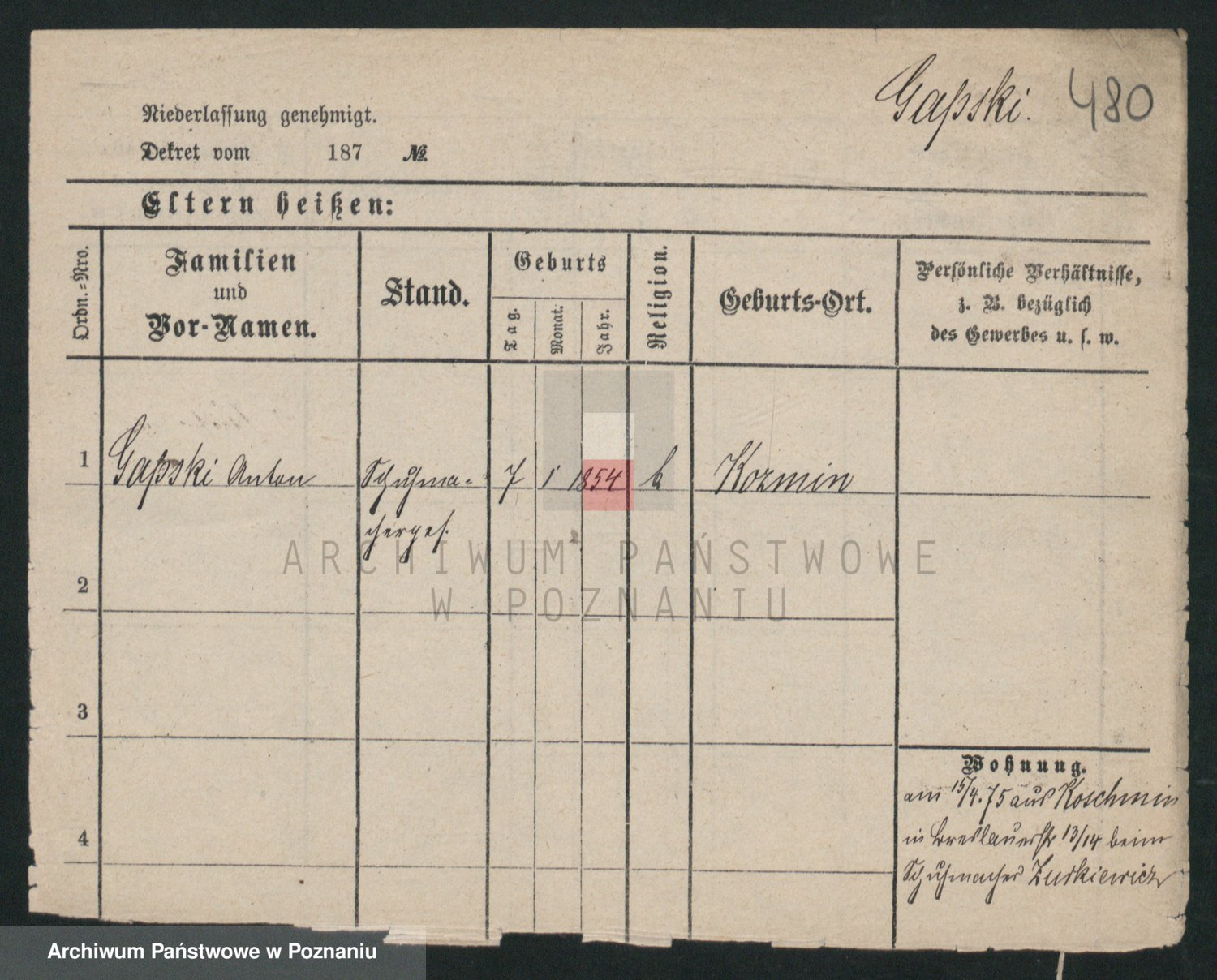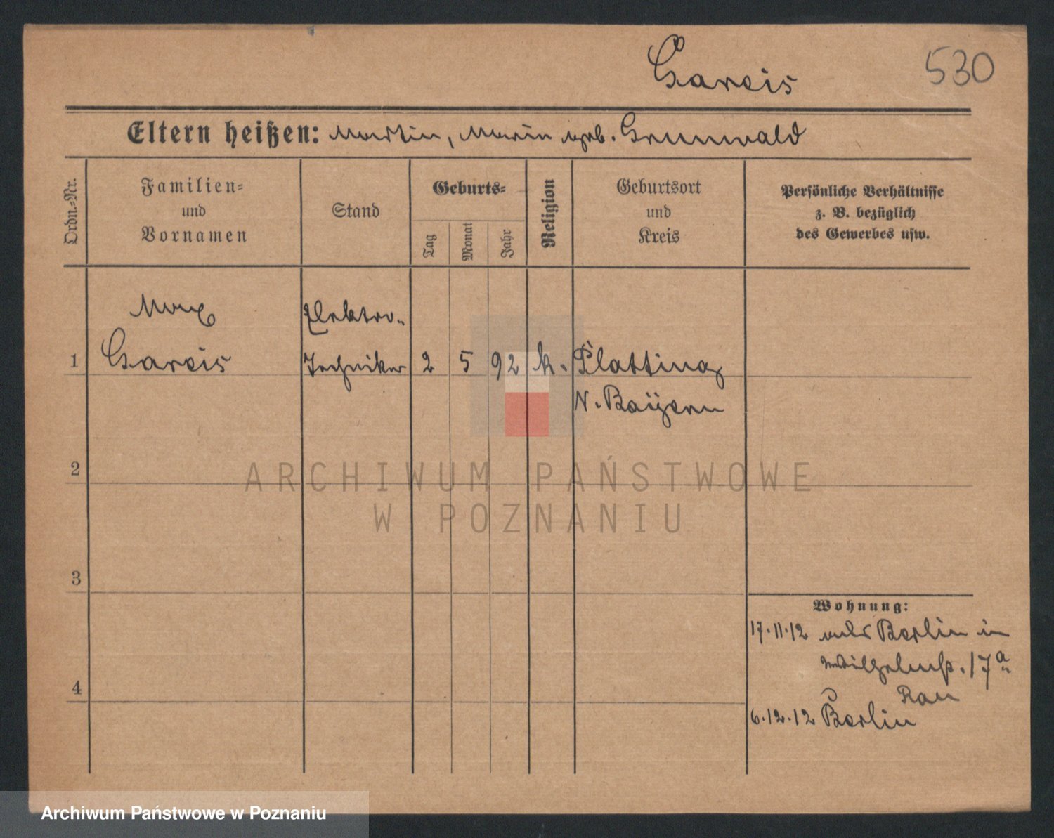 Podgląd karty osobowej dostępny jest po kliknięciu na nazwisko lub ikonkę karty. Można dokonywać powiększenia (ikony na górze) lub przechodzić między kolejnymi skanami (strzałki po bokach).