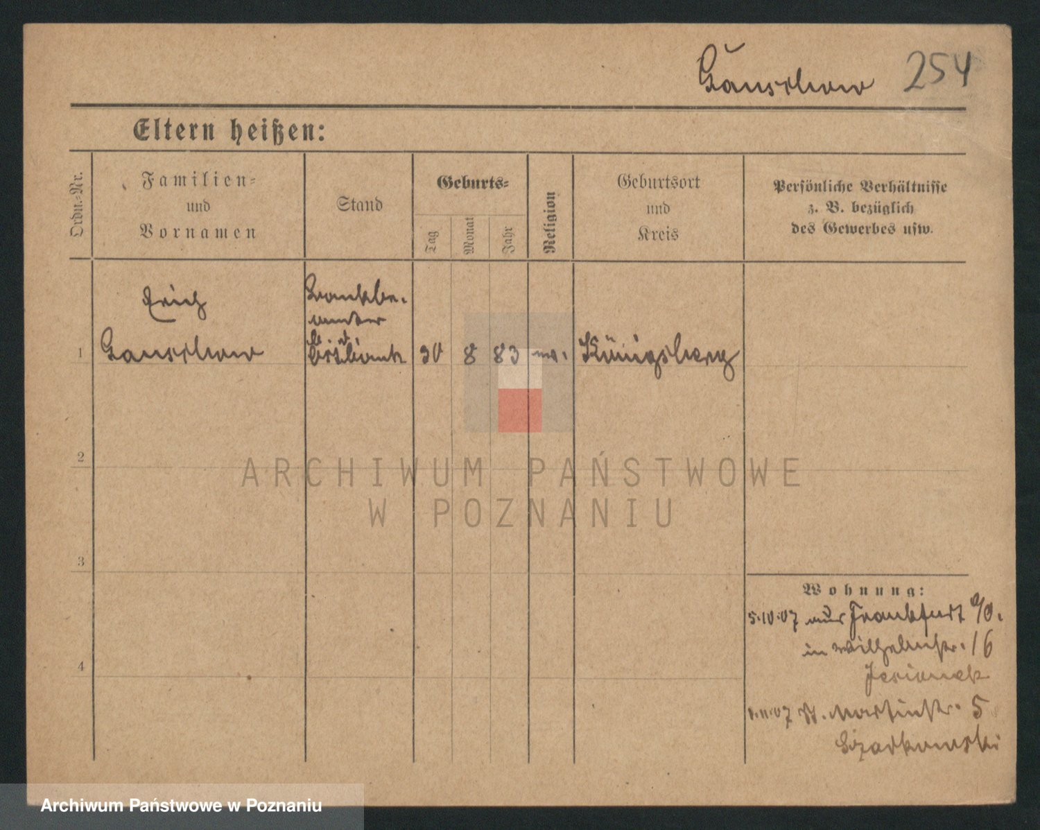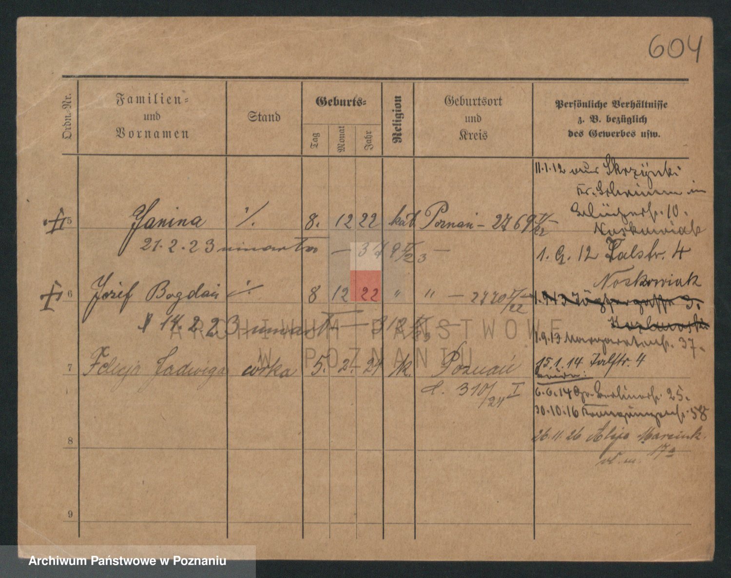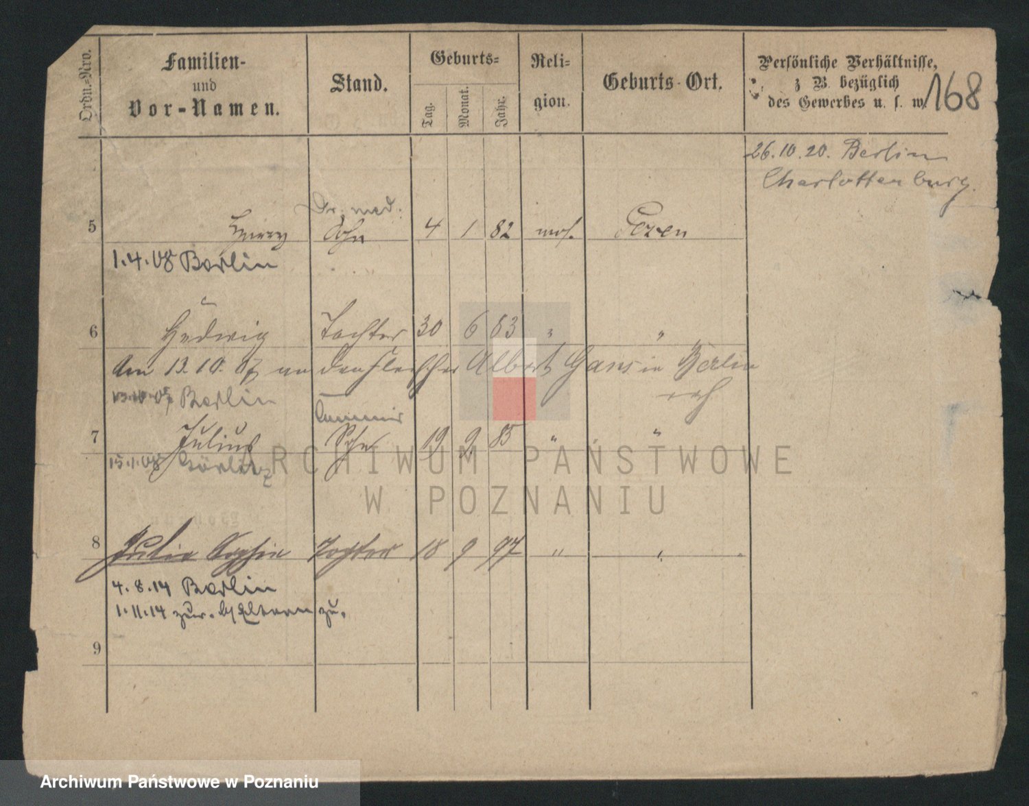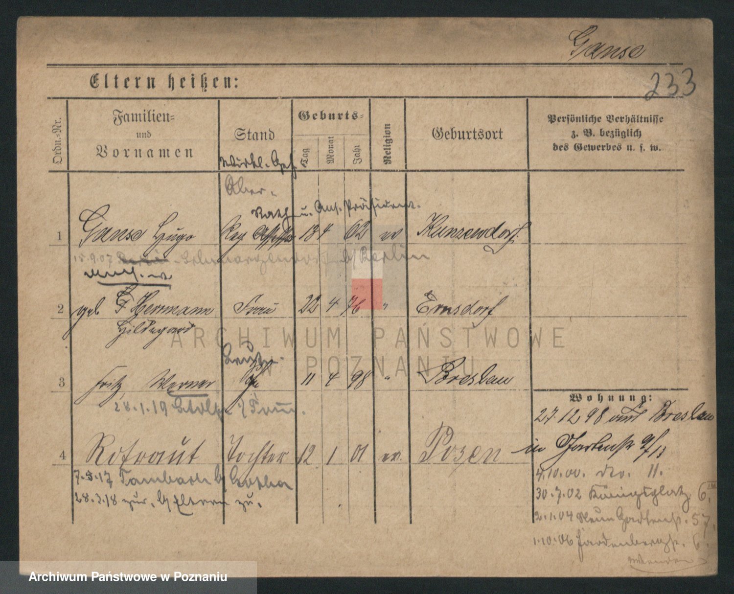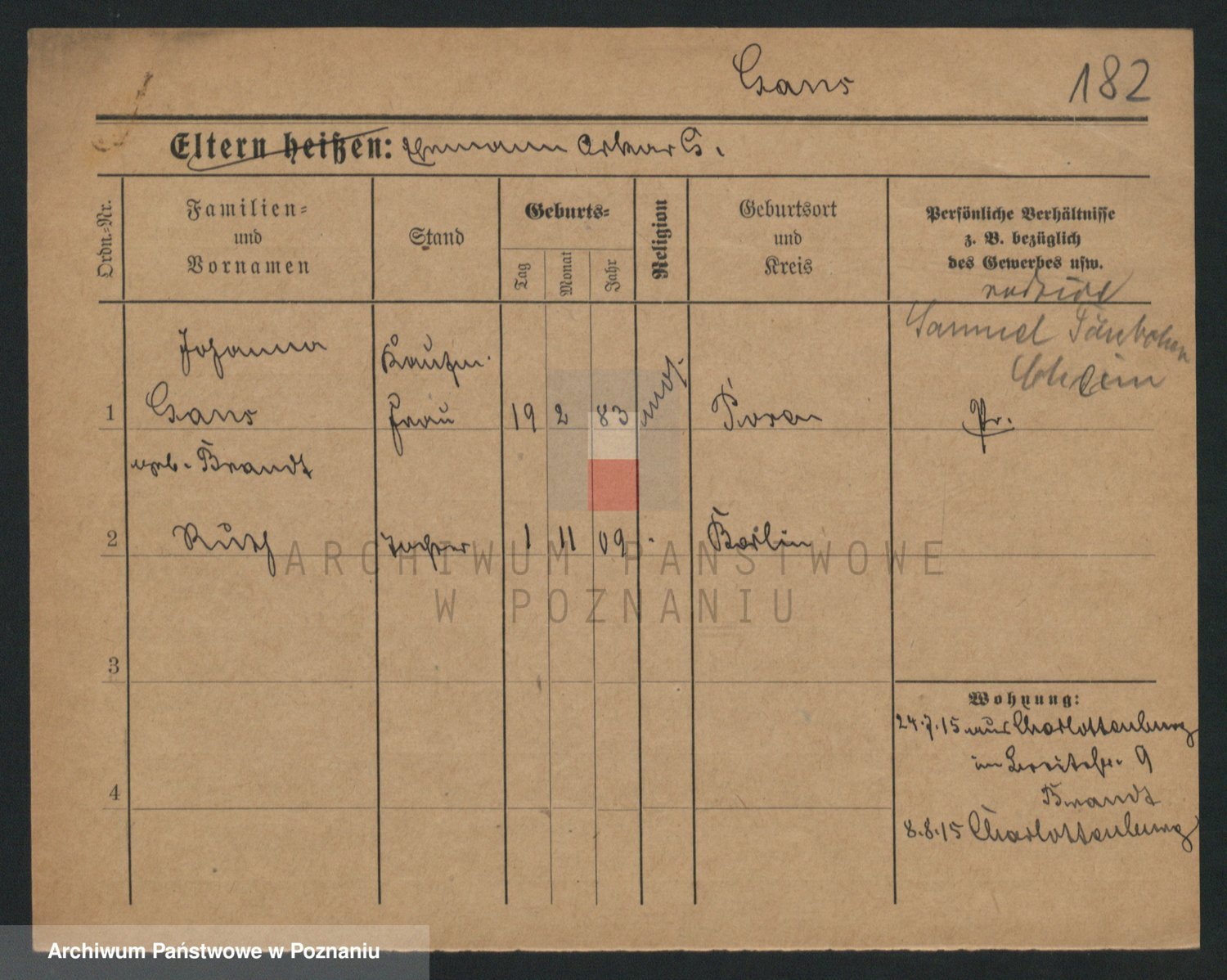 Podgląd karty osobowej dostępny jest po kliknięciu na nazwisko lub ikonkę karty. Można dokonywać powiększenia (ikony na górze) lub przechodzić między kolejnymi skanami (strzałki po bokach).