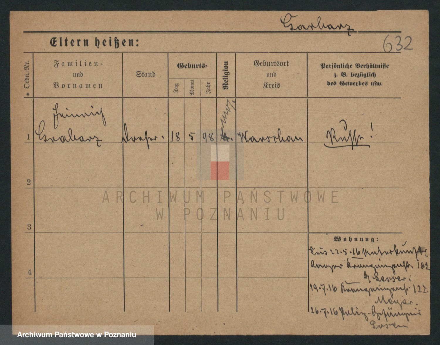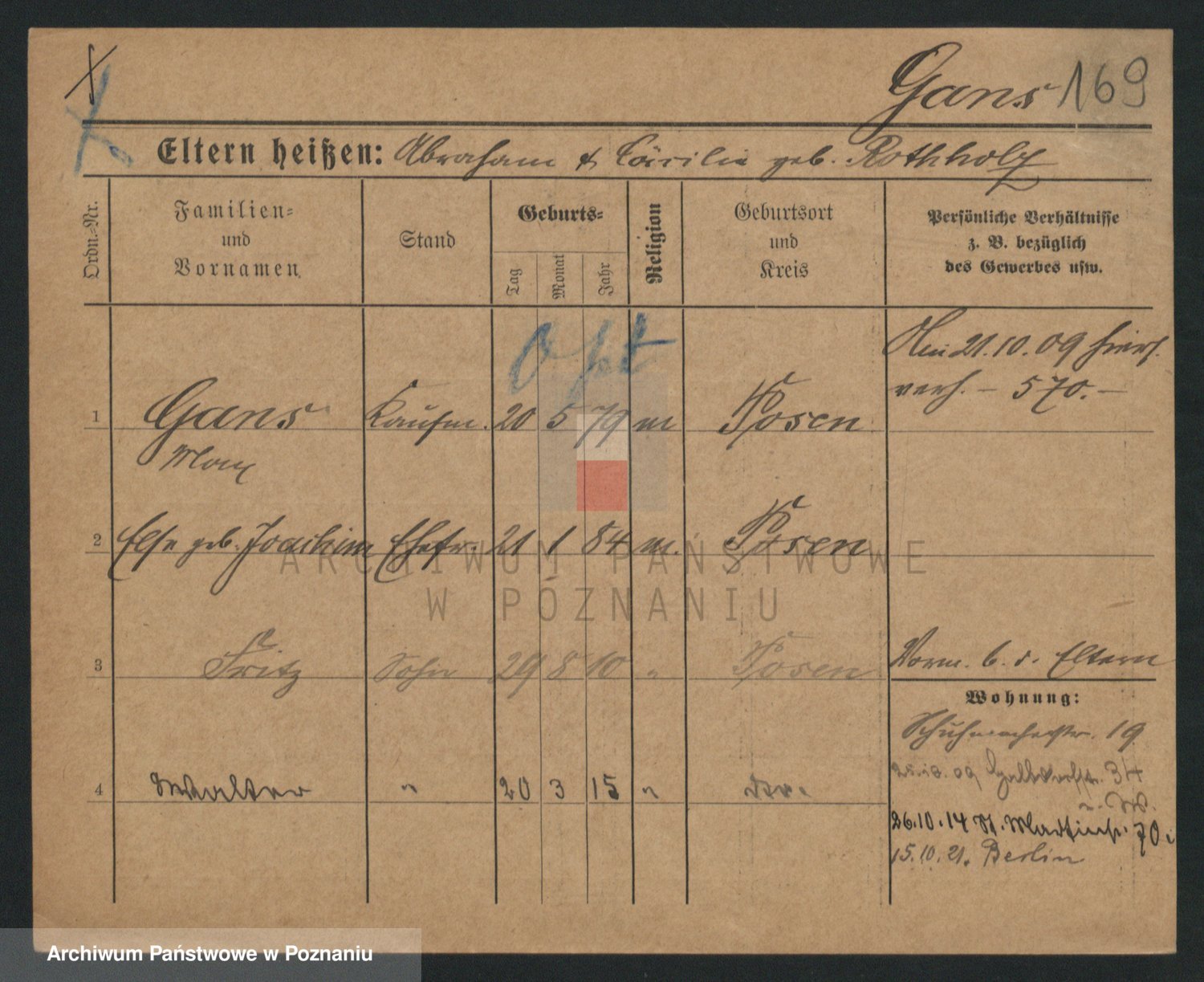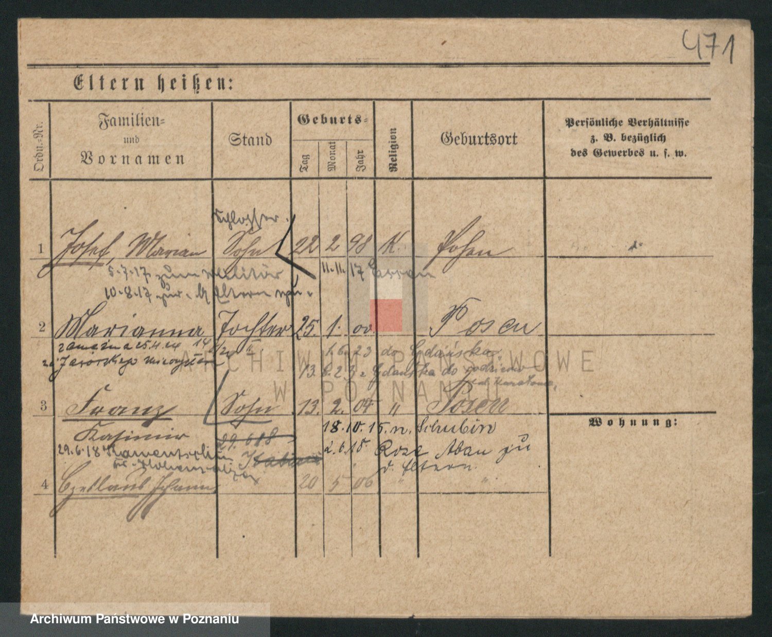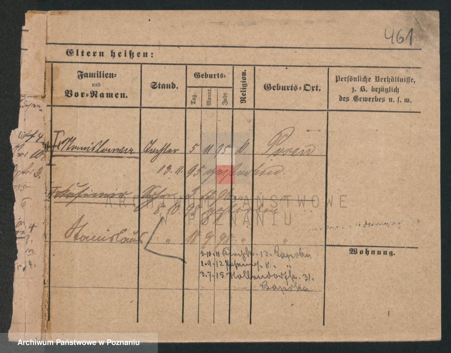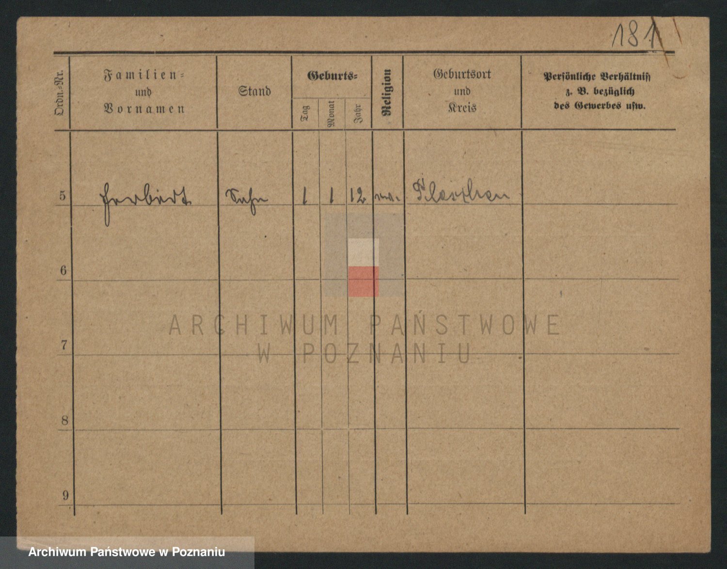 Podgląd karty osobowej dostępny jest po kliknięciu na nazwisko lub ikonkę karty. Można dokonywać powiększenia (ikony na górze) lub przechodzić między kolejnymi skanami (strzałki po bokach).