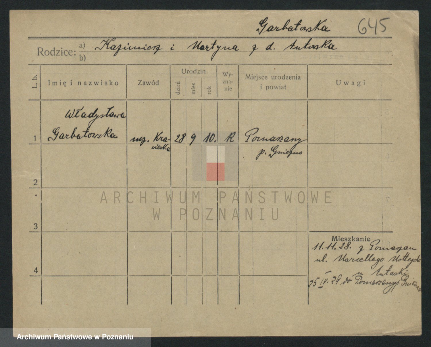 Garczyk z.d. Kubiak, Marja