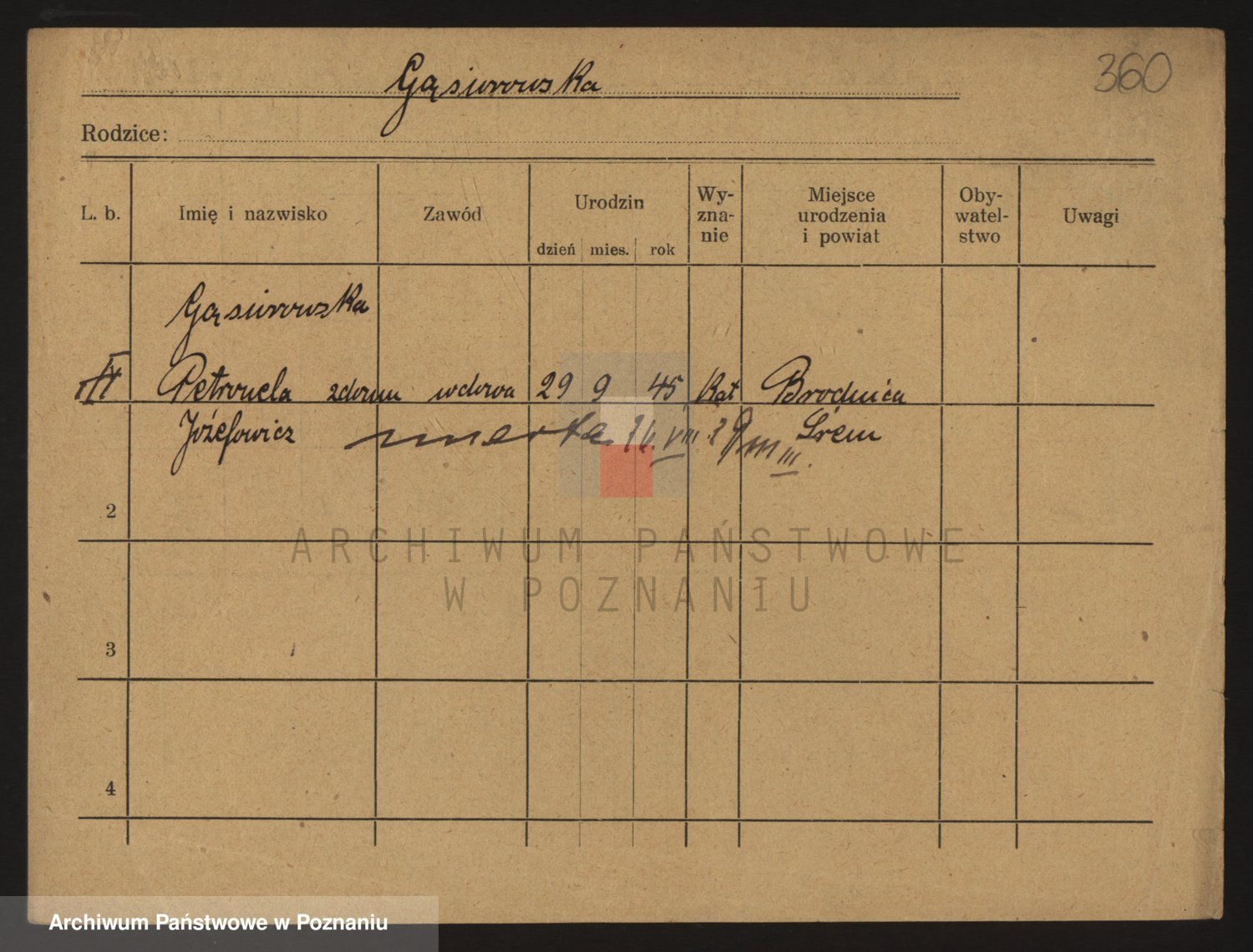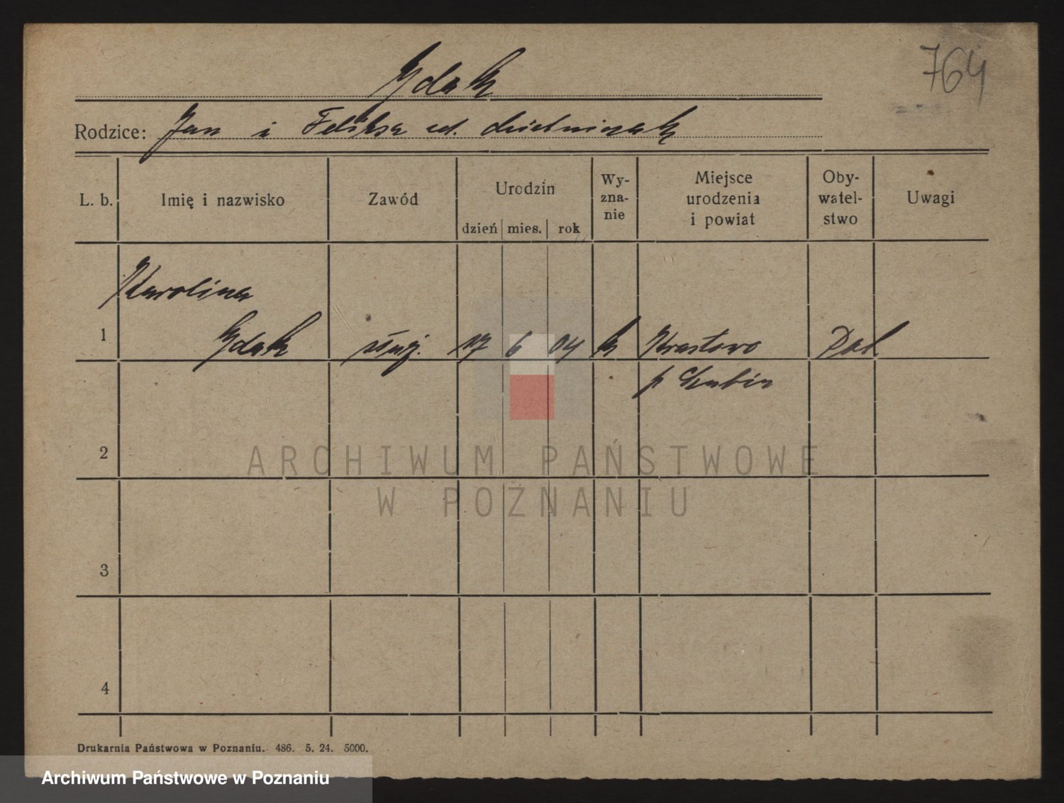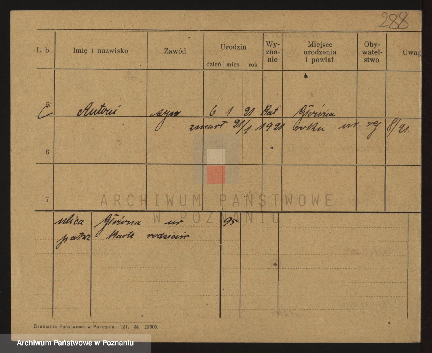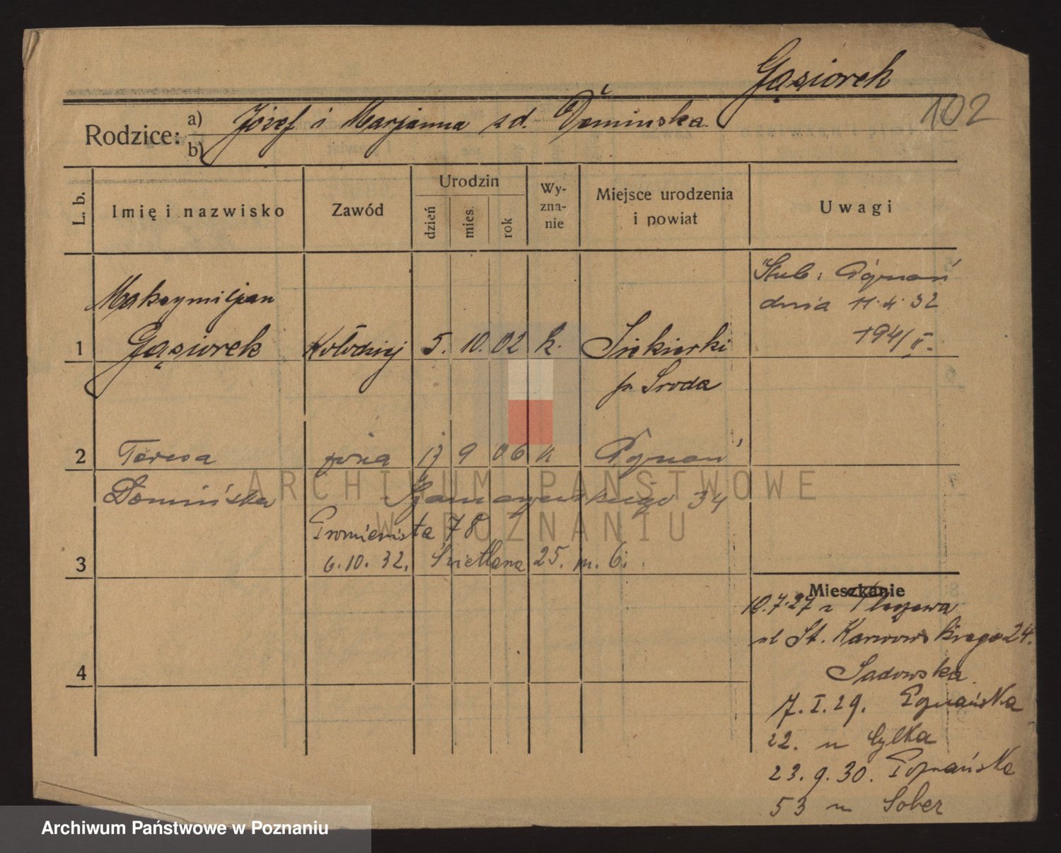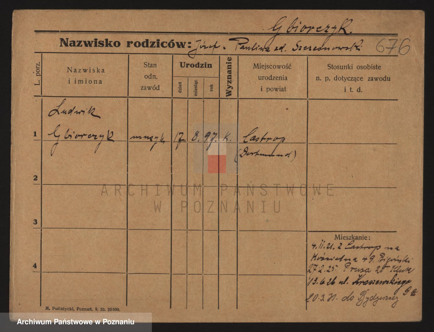 Podgląd karty osobowej dostępny jest po kliknięciu na nazwisko lub ikonkę karty. Można dokonywać powiększenia (ikony na górze) lub przechodzić między kolejnymi skanami (strzałki po bokach).