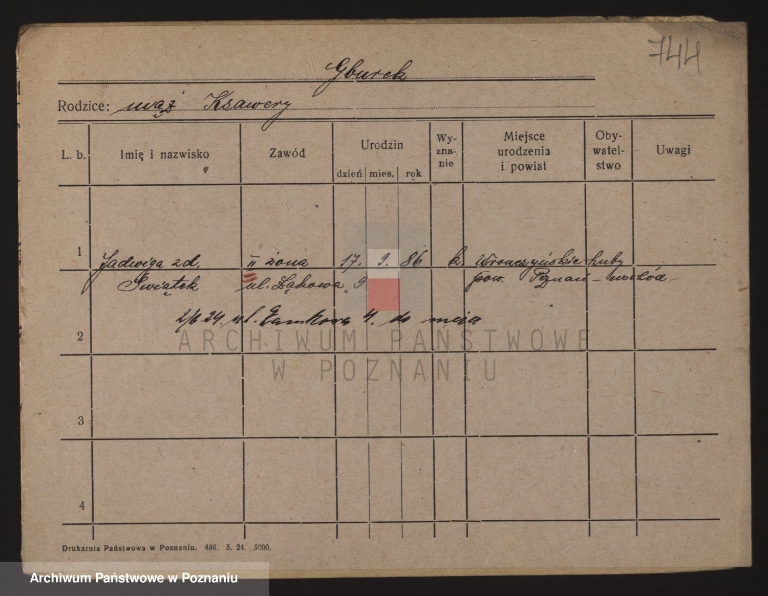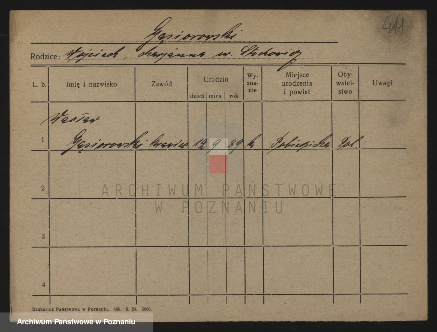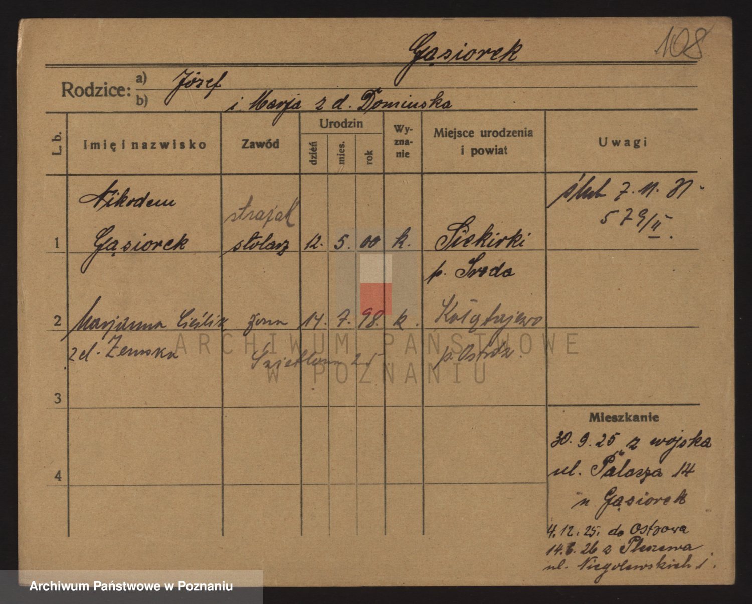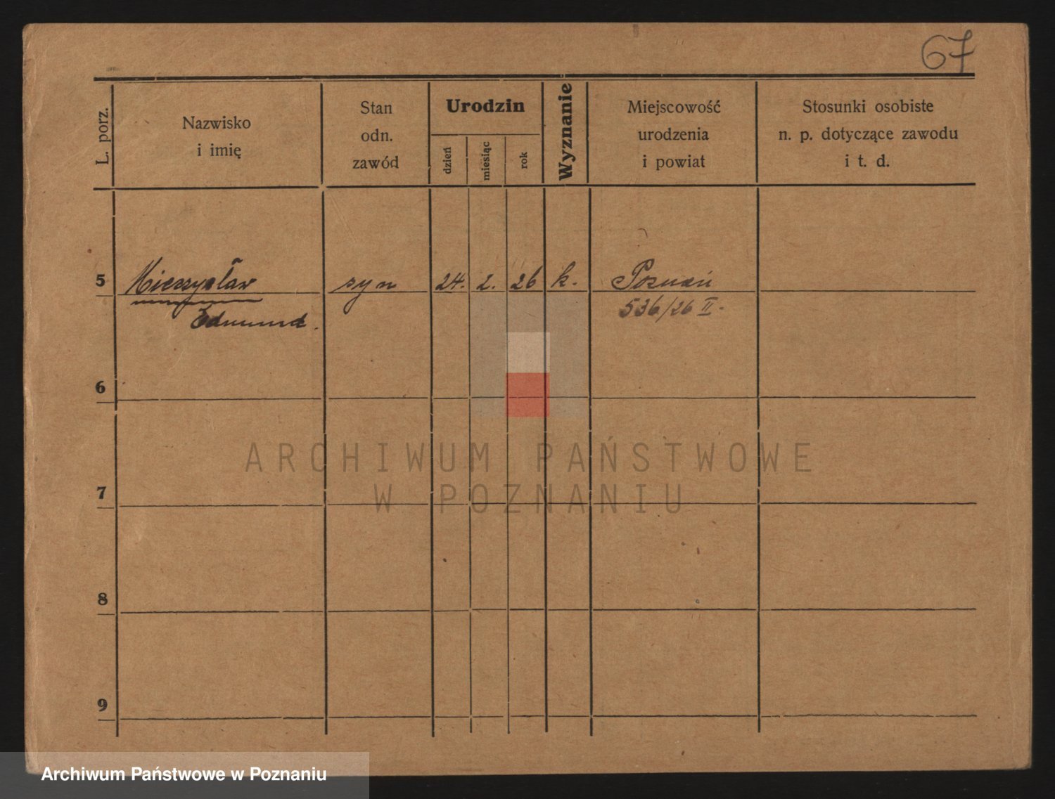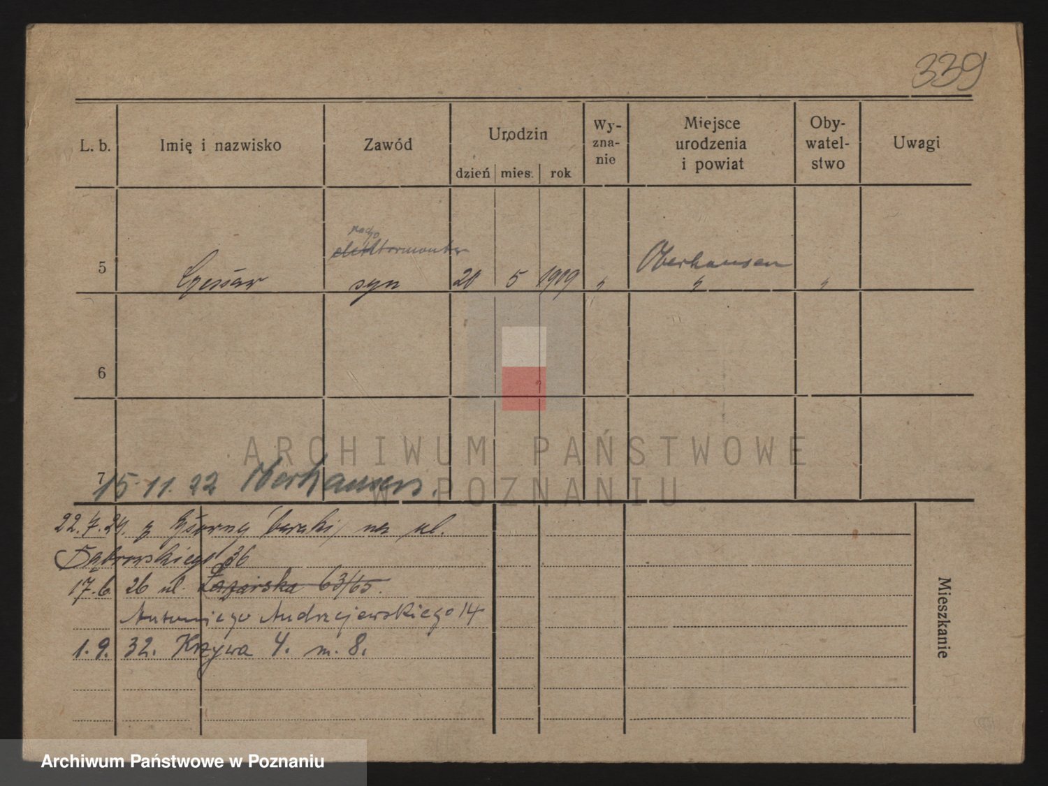 Podgląd karty osobowej dostępny jest po kliknięciu na nazwisko lub ikonkę karty. Można dokonywać powiększenia (ikony na górze) lub przechodzić między kolejnymi skanami (strzałki po bokach).